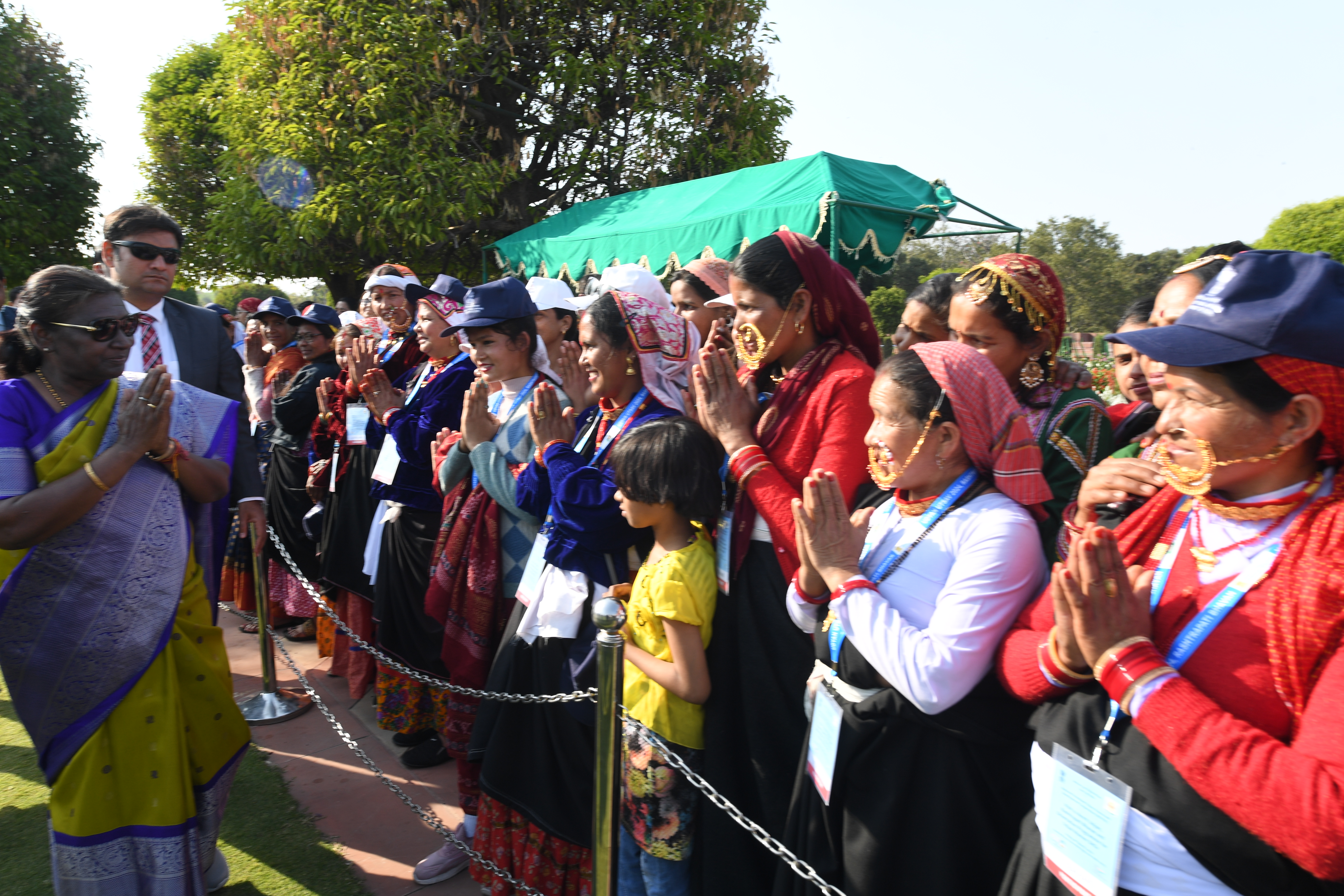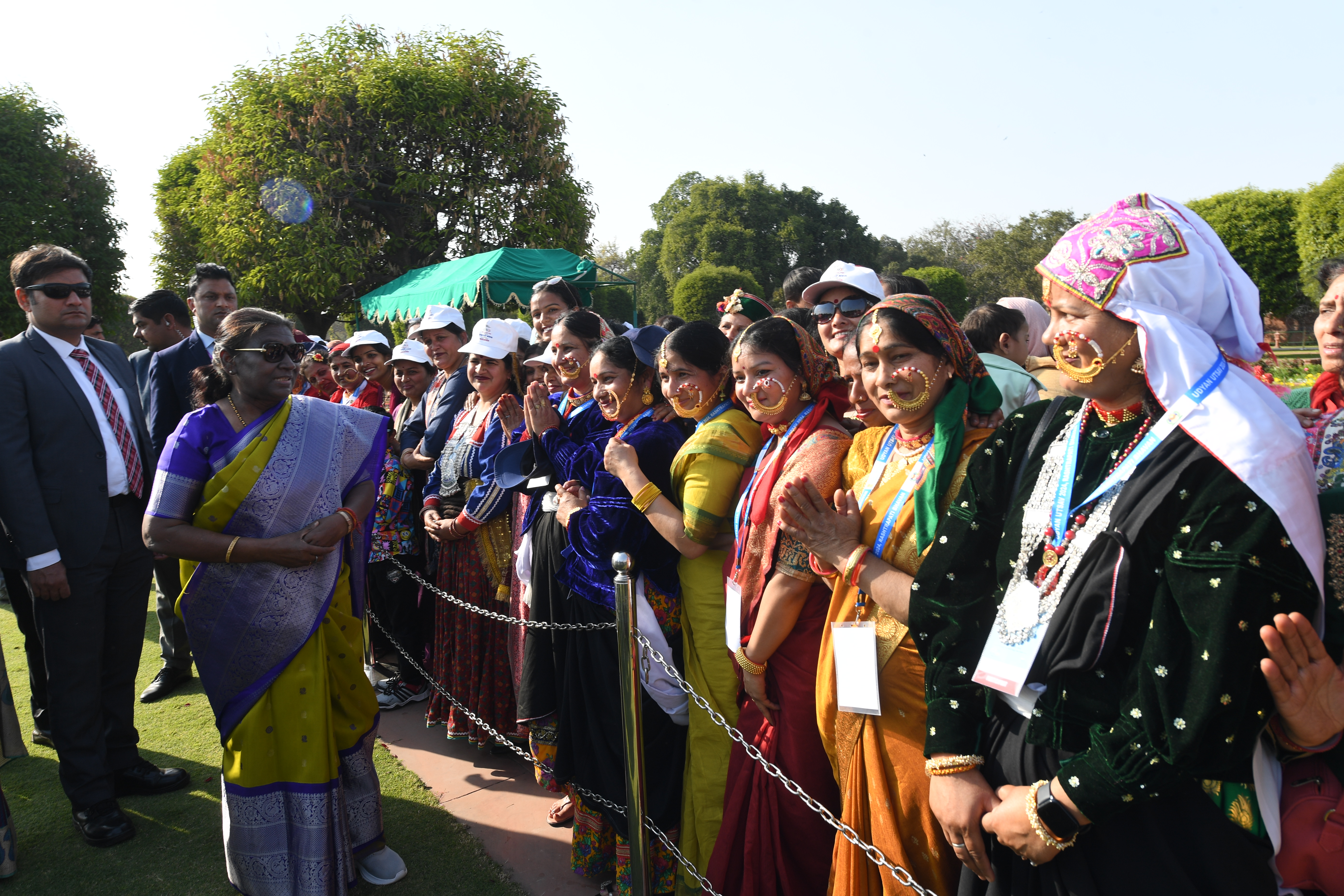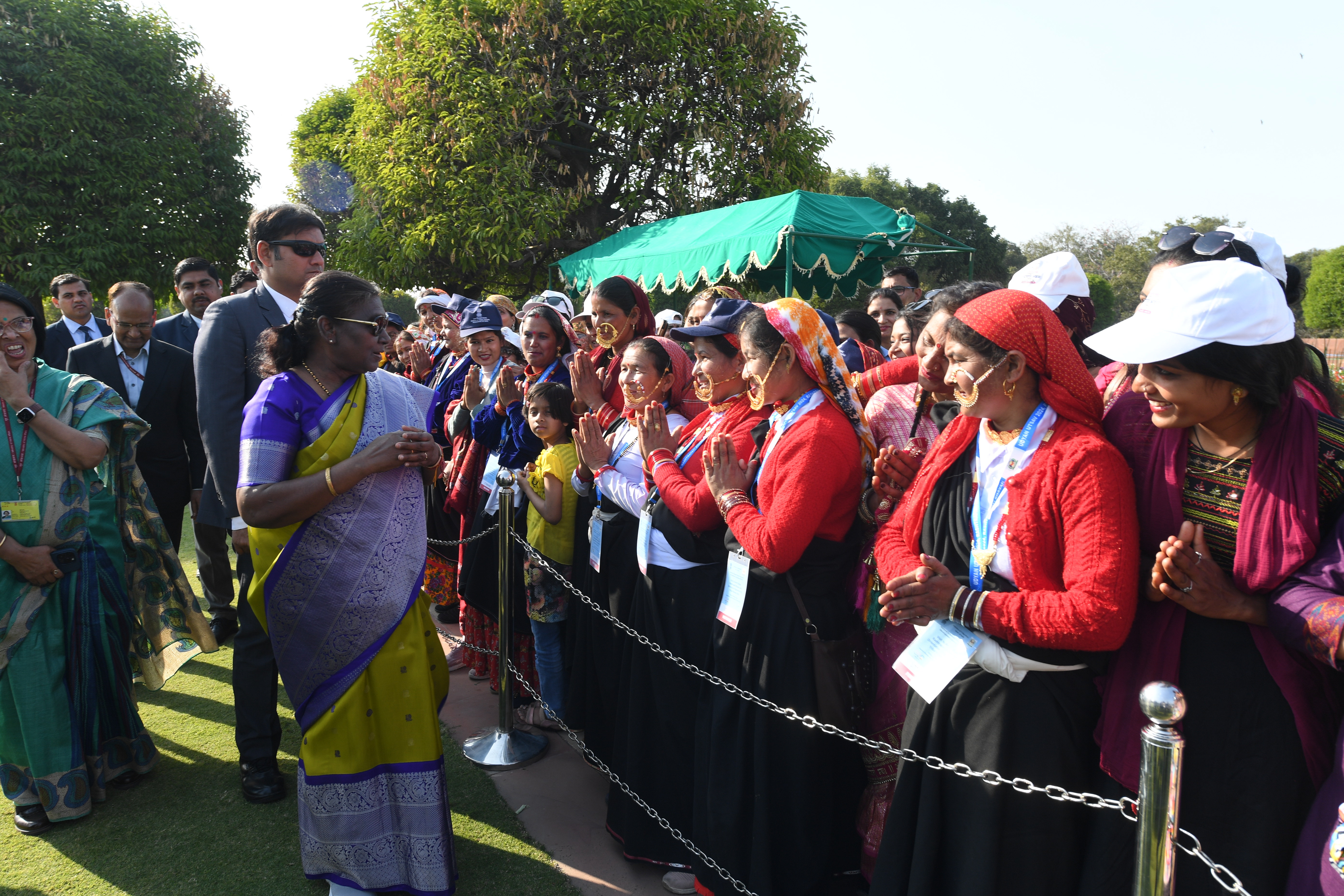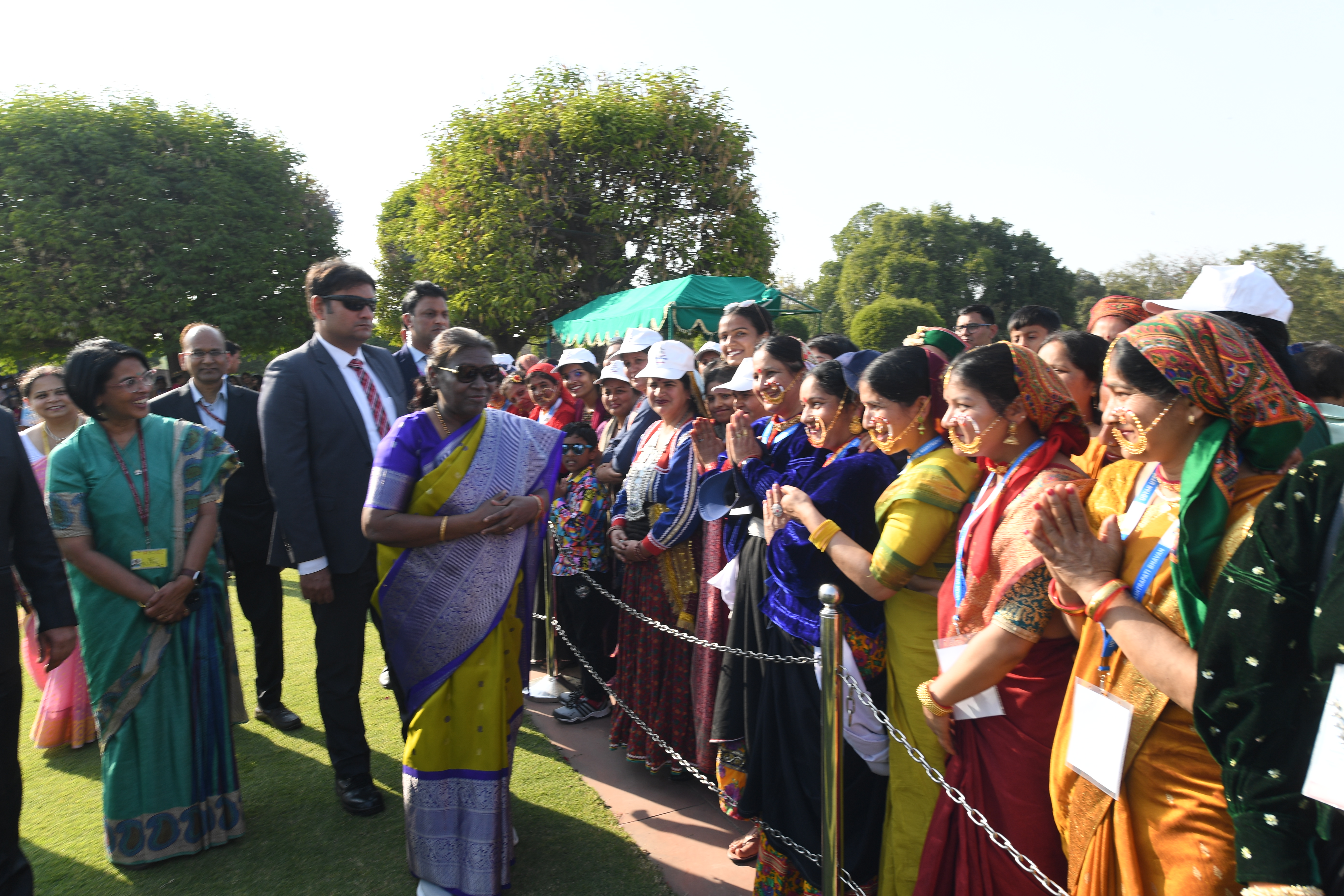| Caption: | The President of India, Smt Droupadi Murmu met women visiting Amrit Udyan on the day reserved for the special category of Women Tribal Women SHGs-II 08-03-2024 |