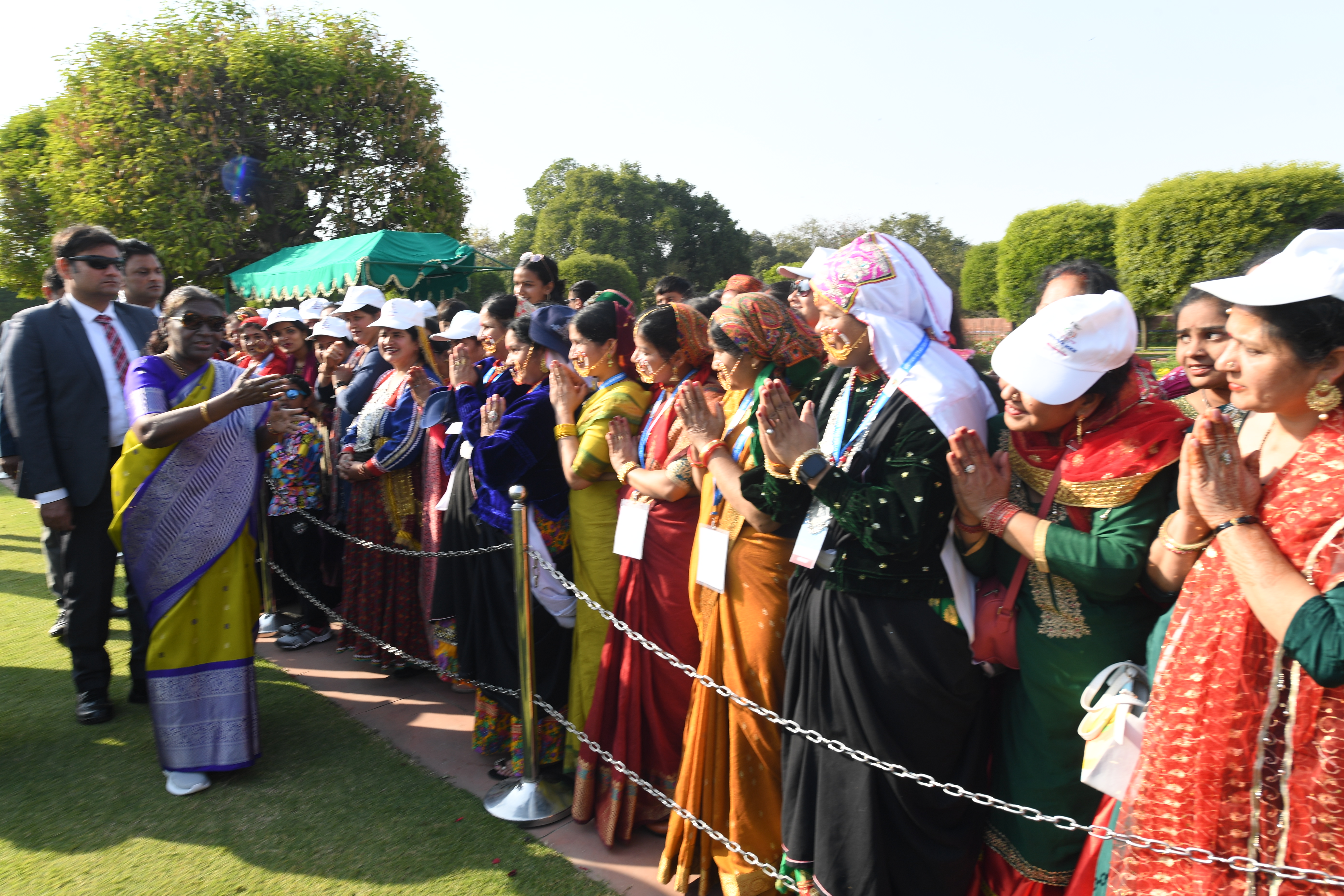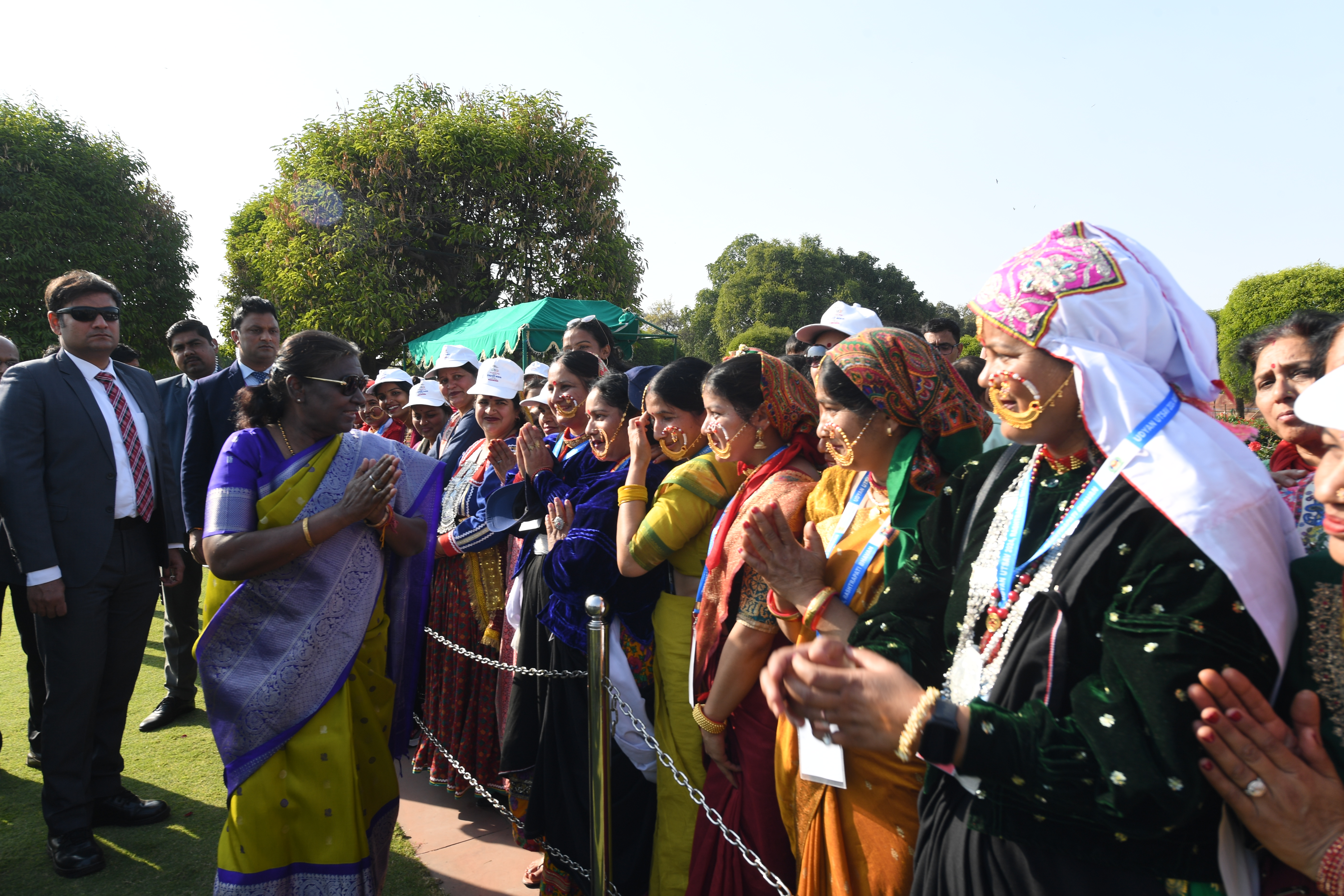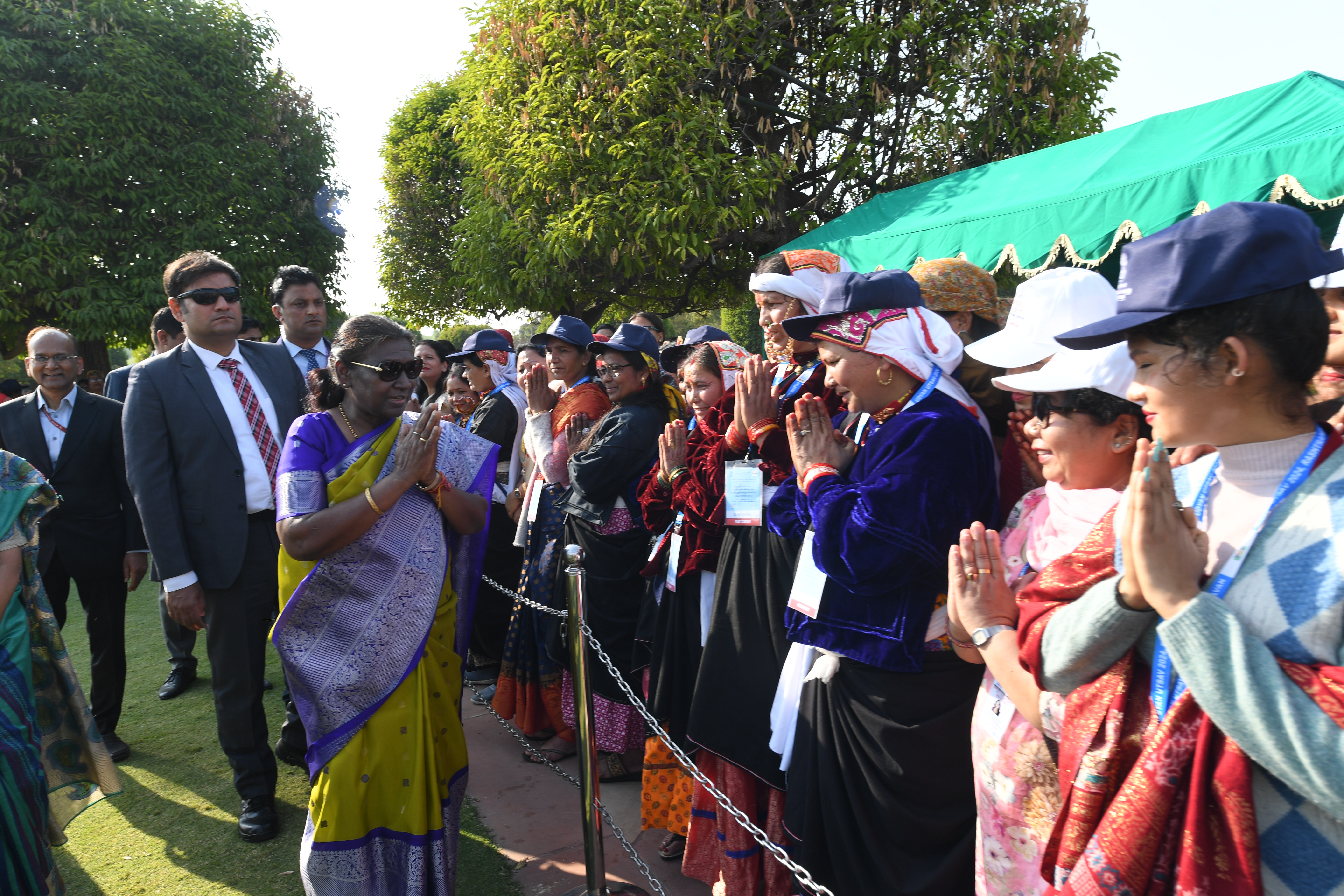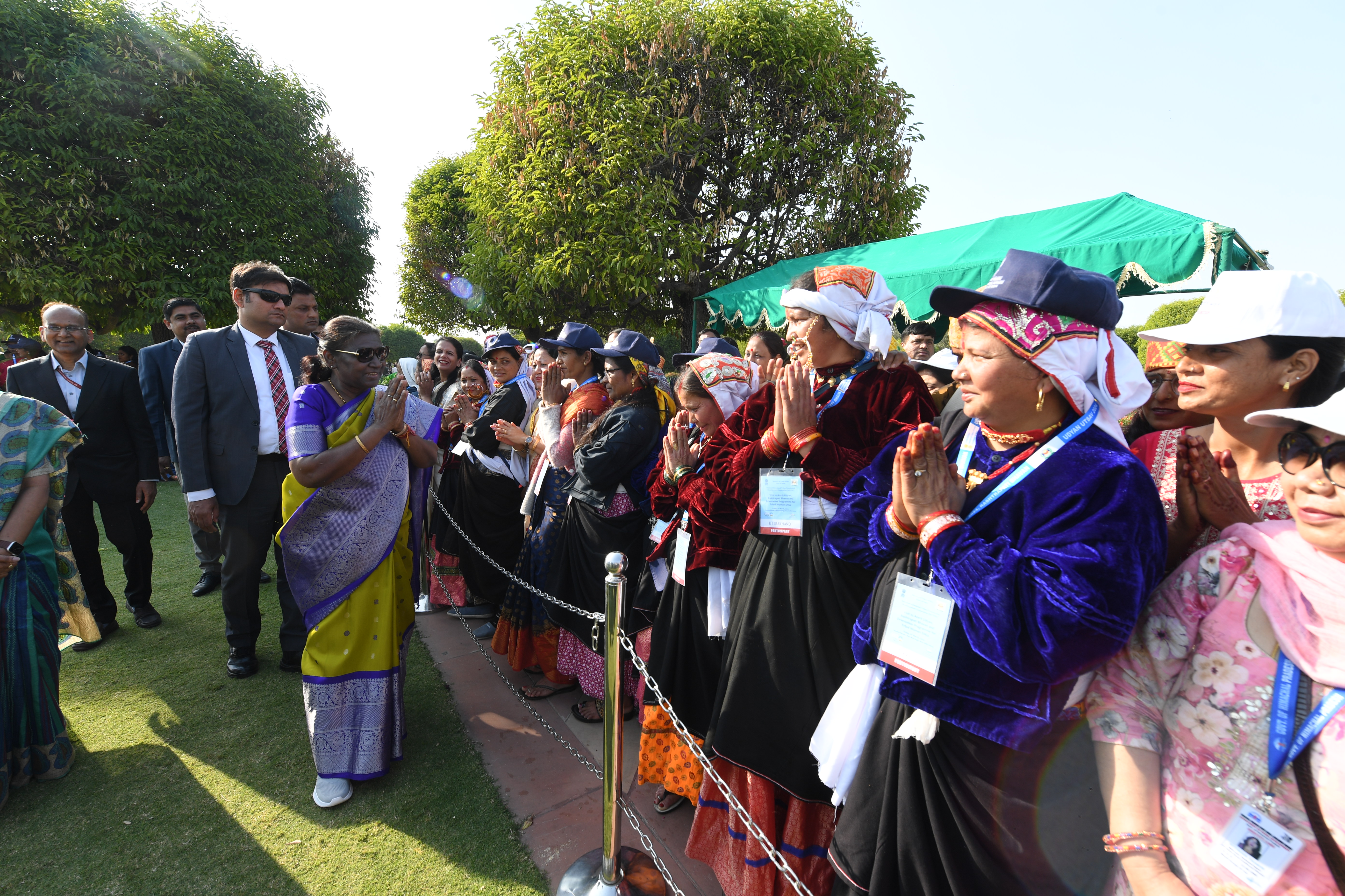 | Caption: | The President of India, Smt Droupadi Murmu met women visiting Amrit Udyan on the day reserved for the special category of Women Tribal Women SHGs-II 08-03-2024 |