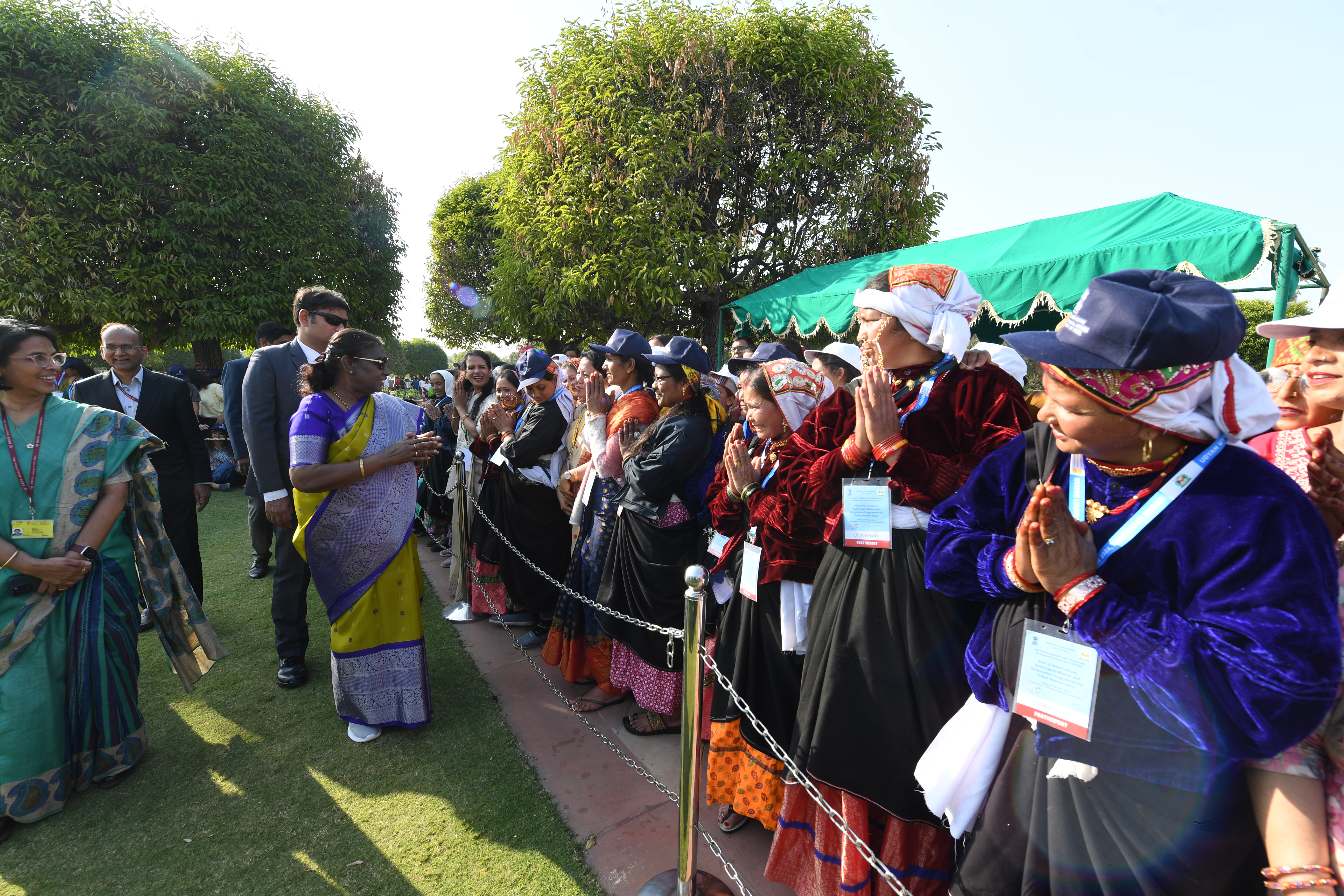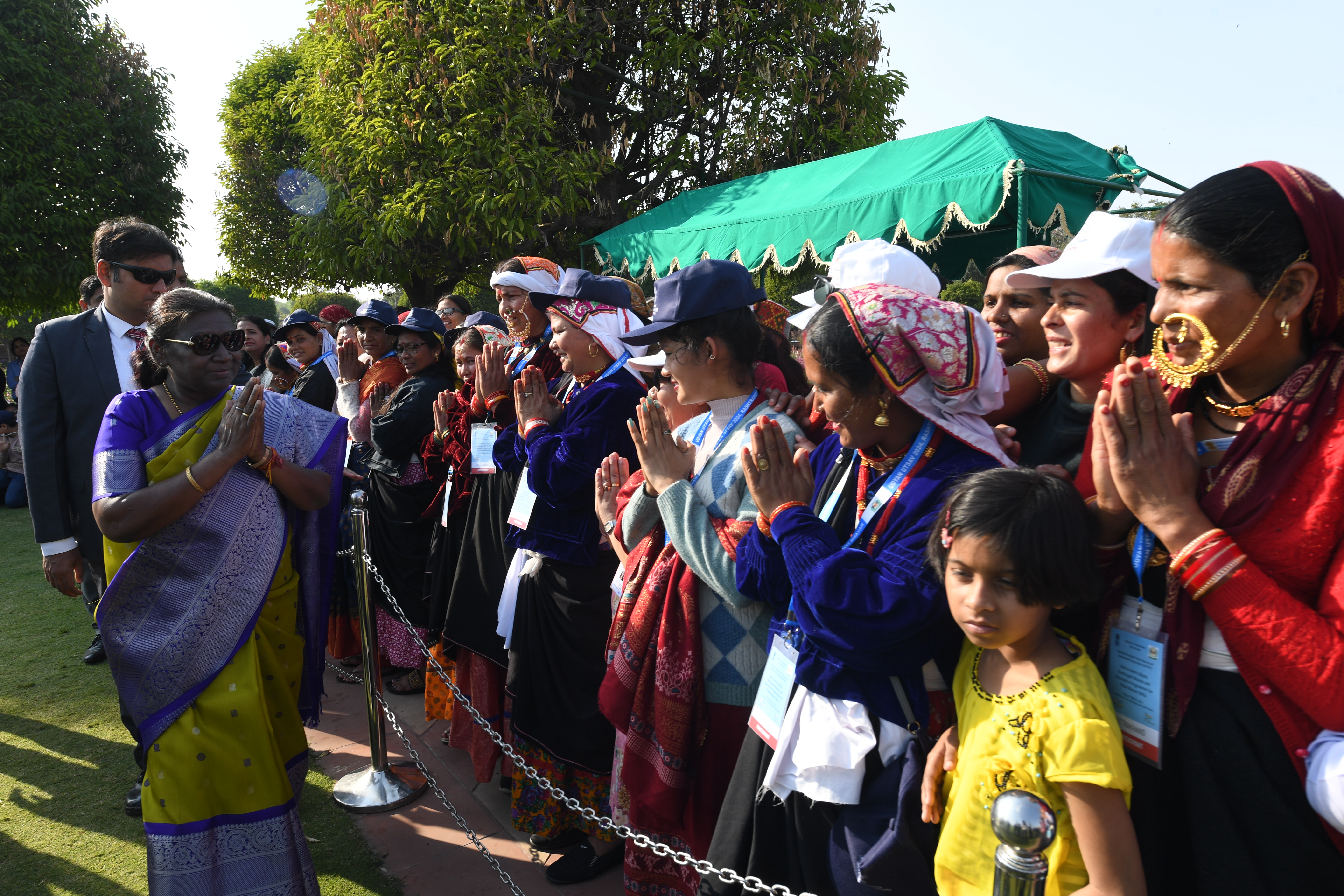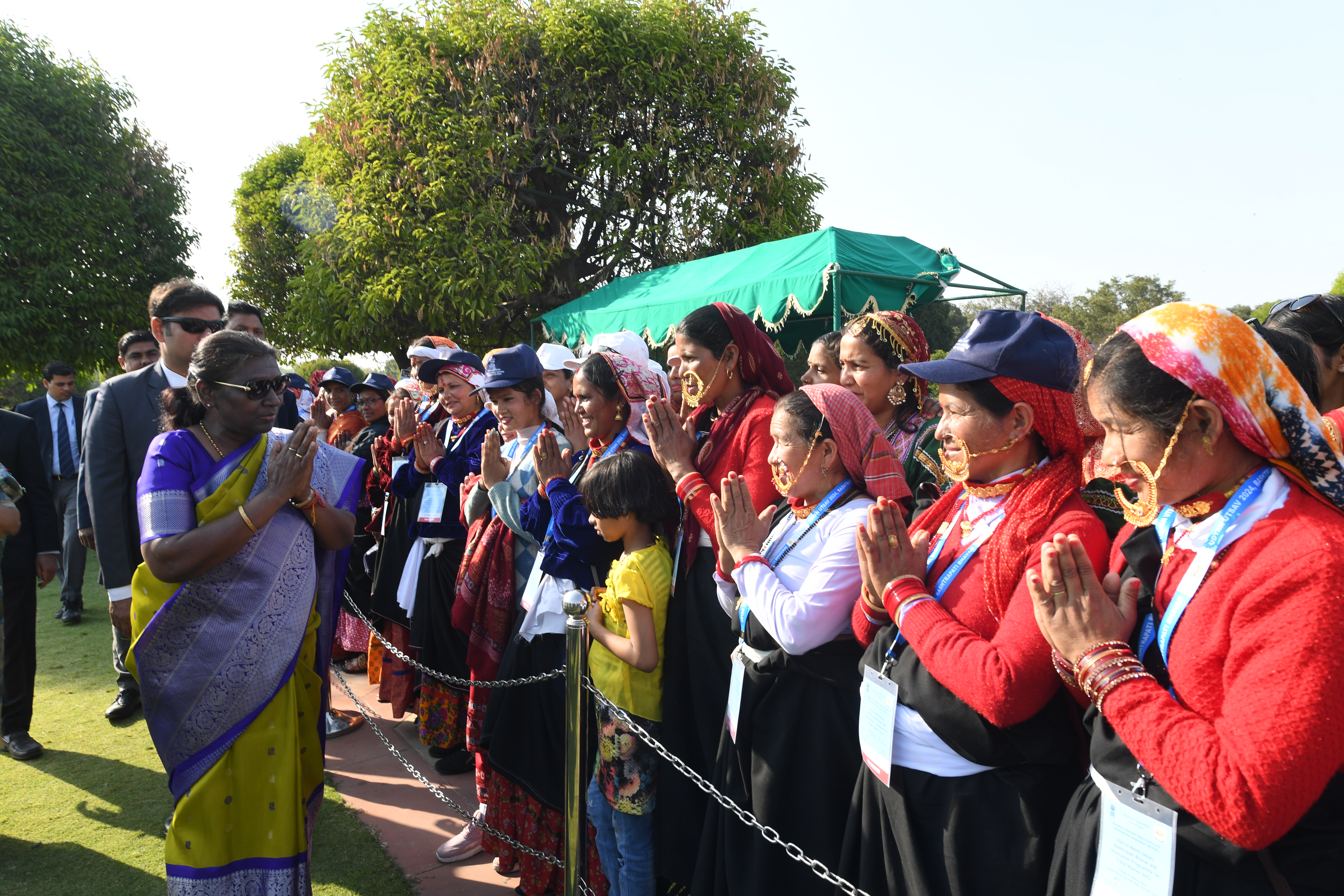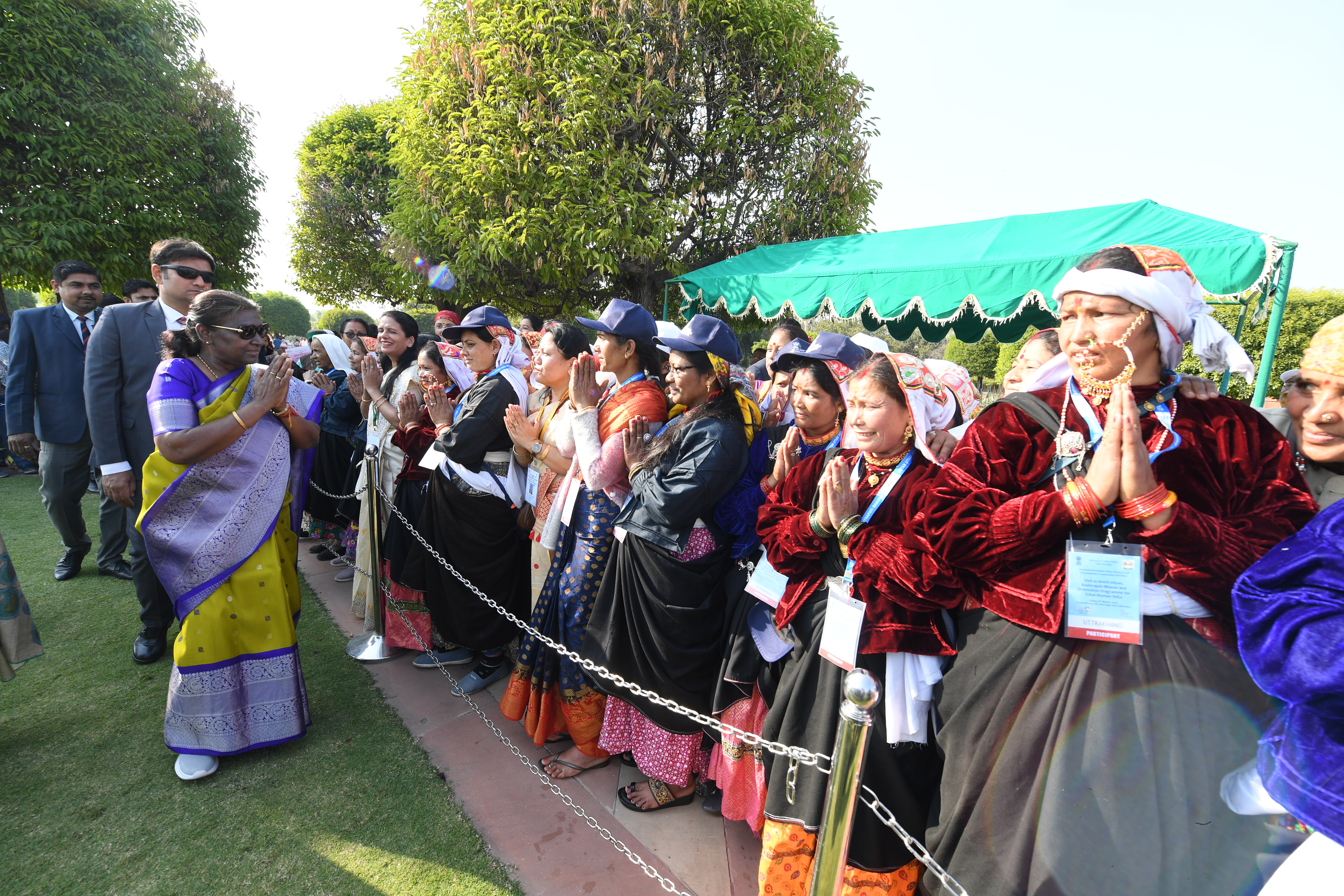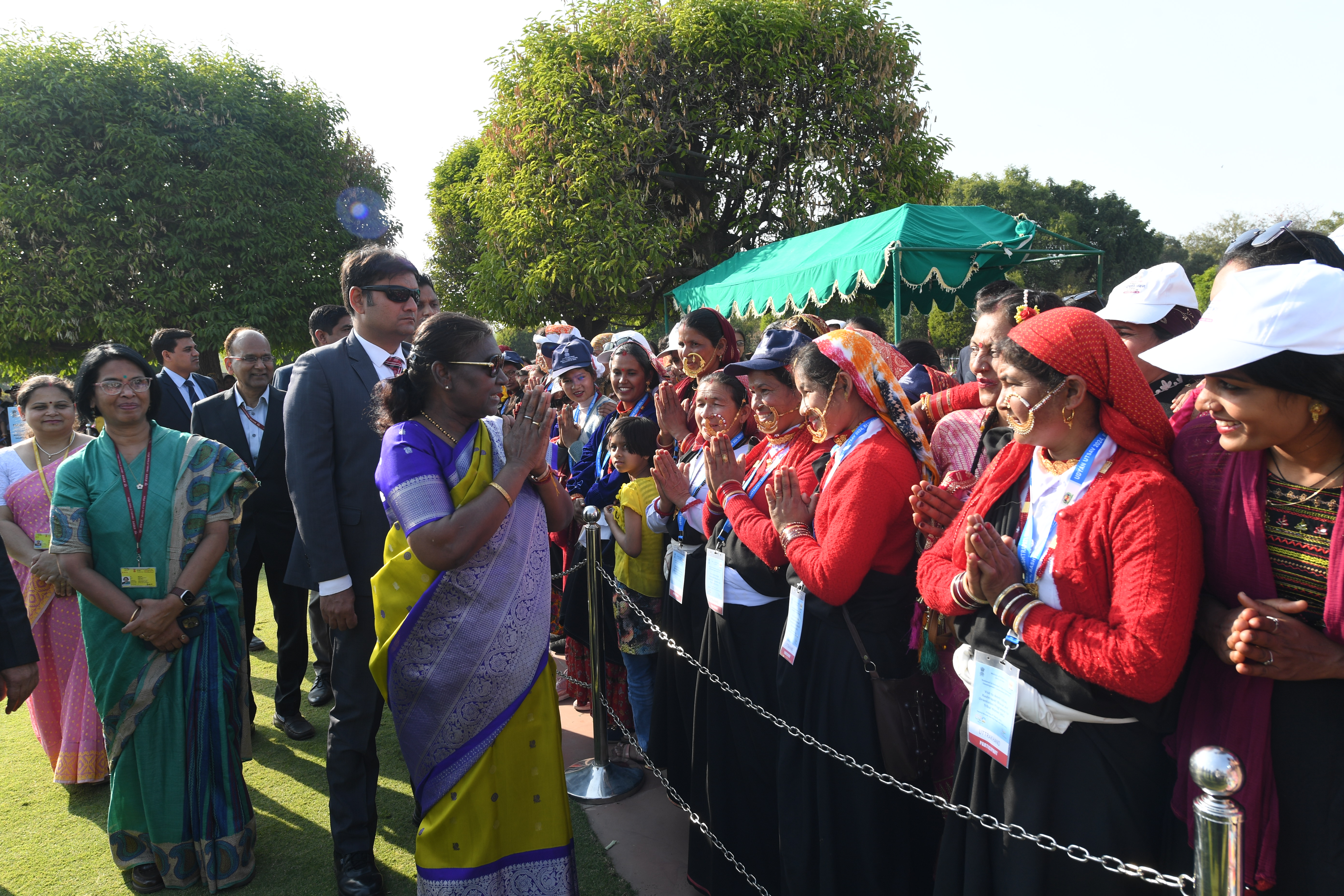 | Caption: | The President of India, Smt Droupadi Murmu met women visiting Amrit Udyan on the day reserved for the special category of Women Tribal Women SHGs-II 08-03-2024 |