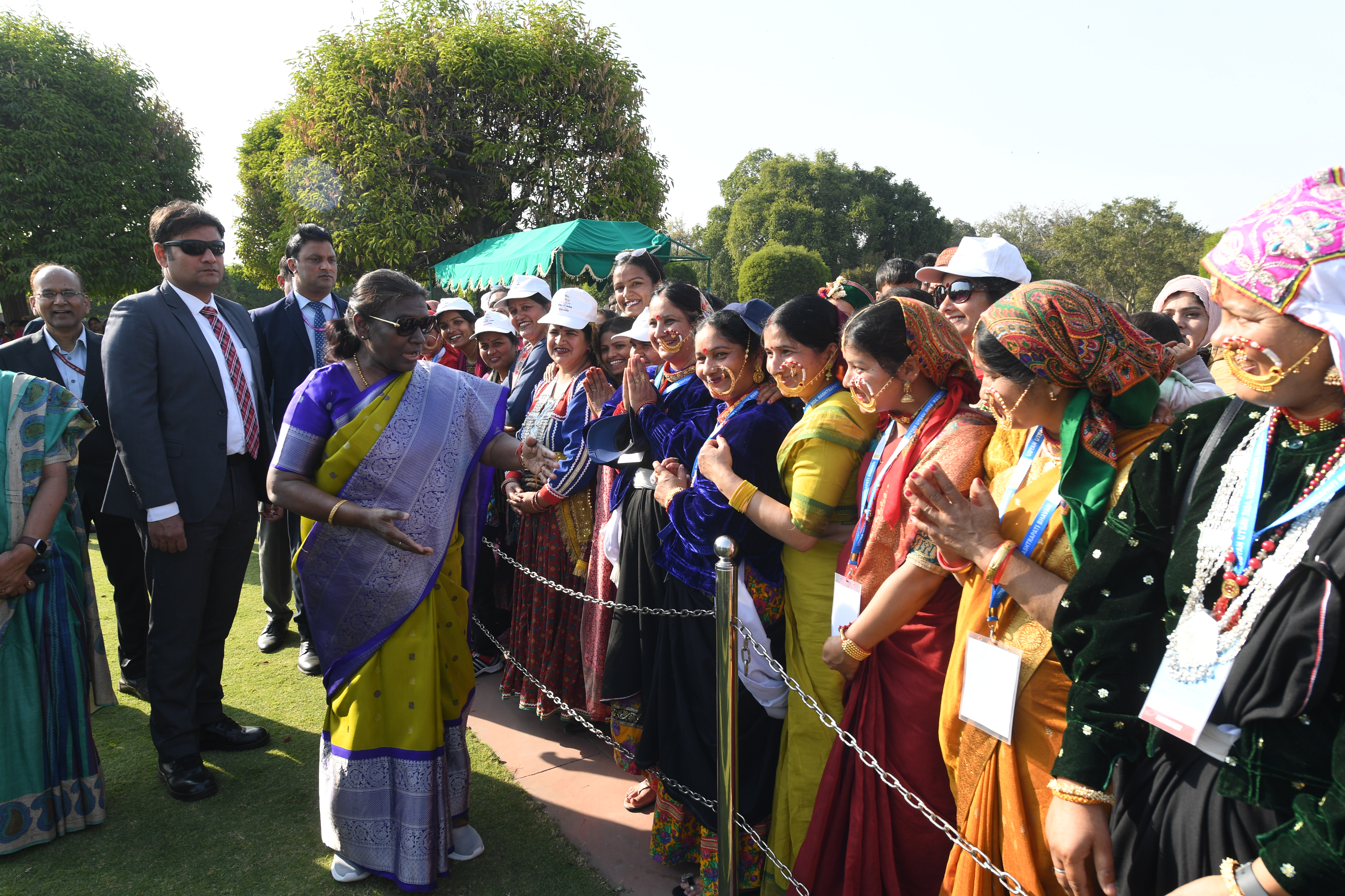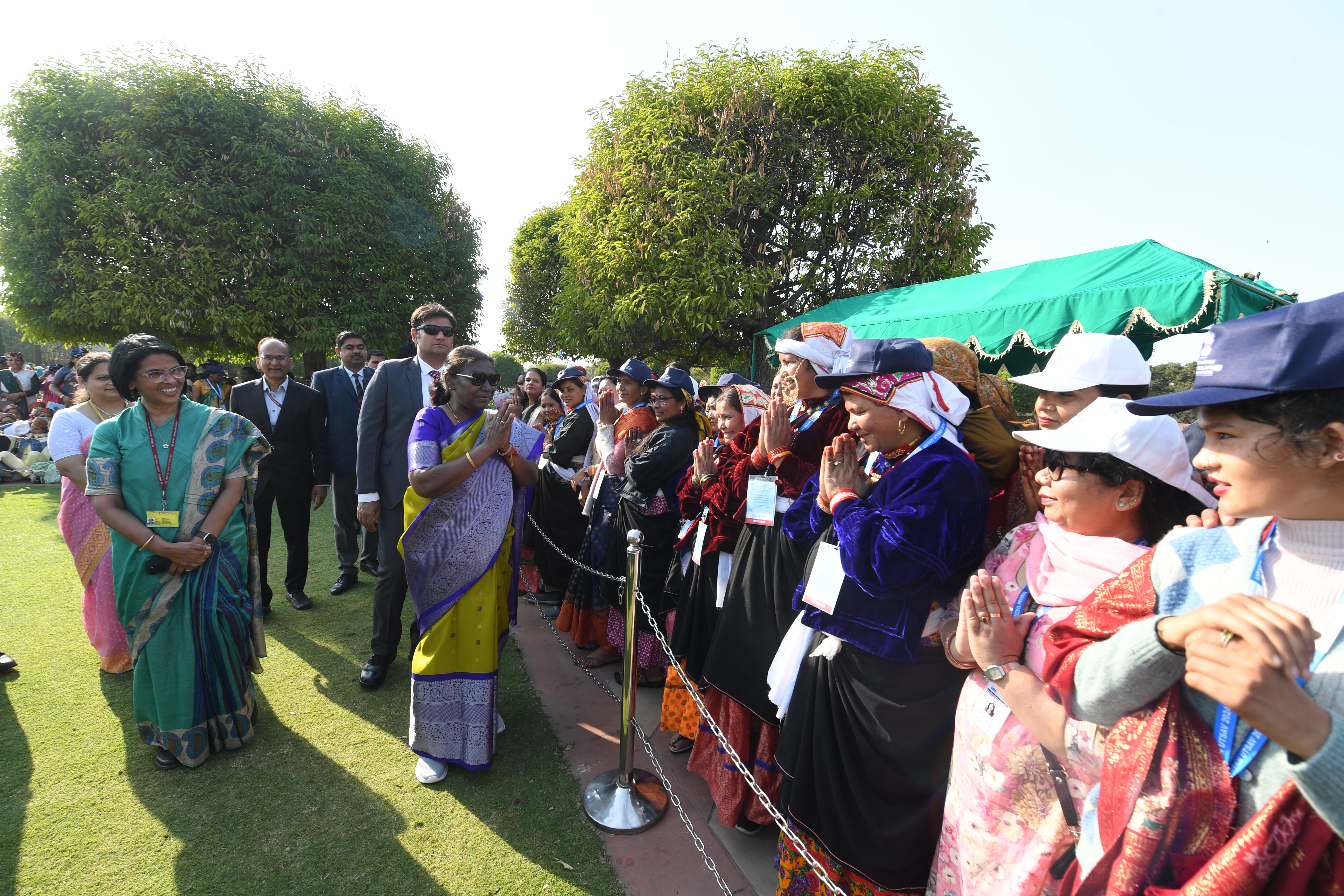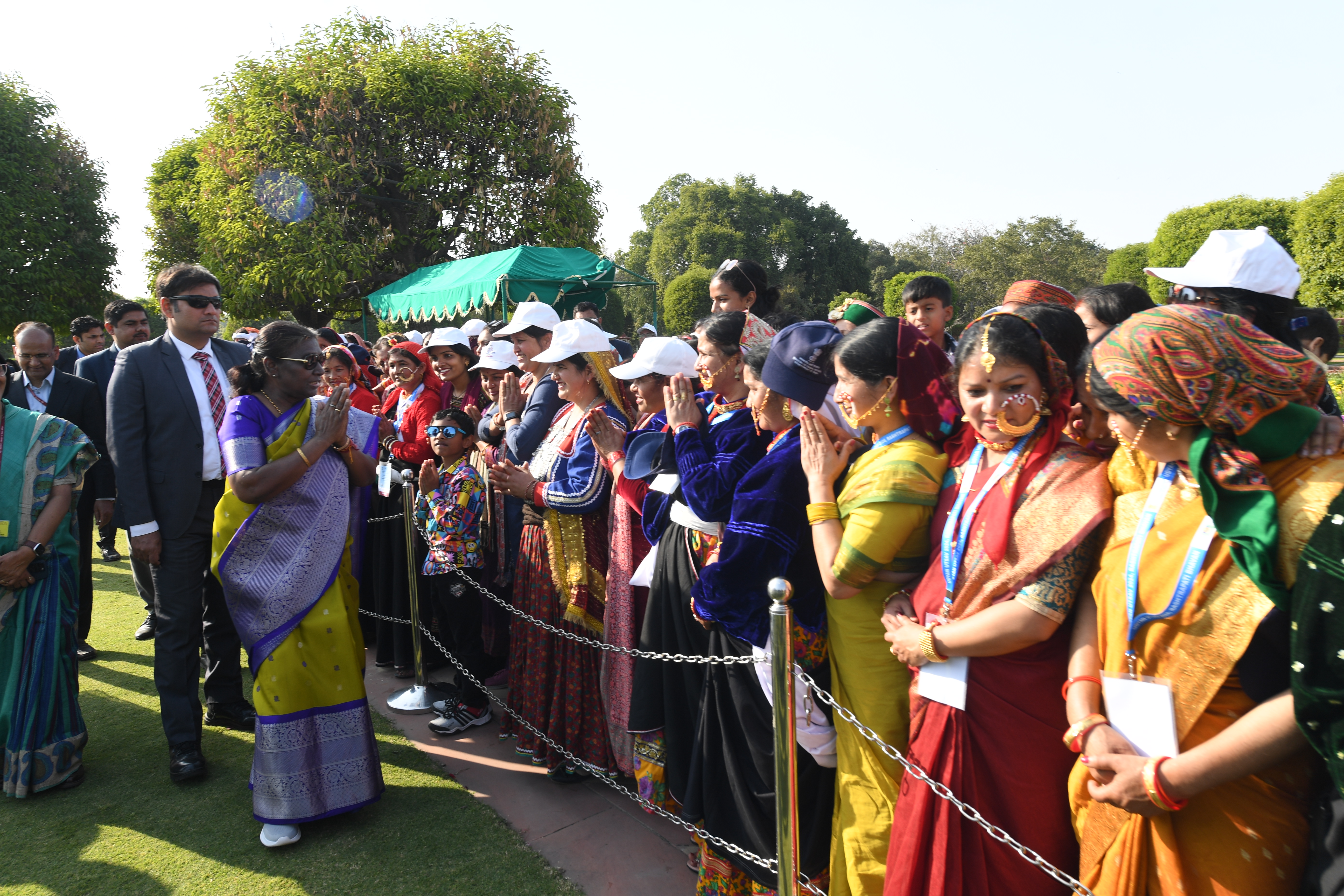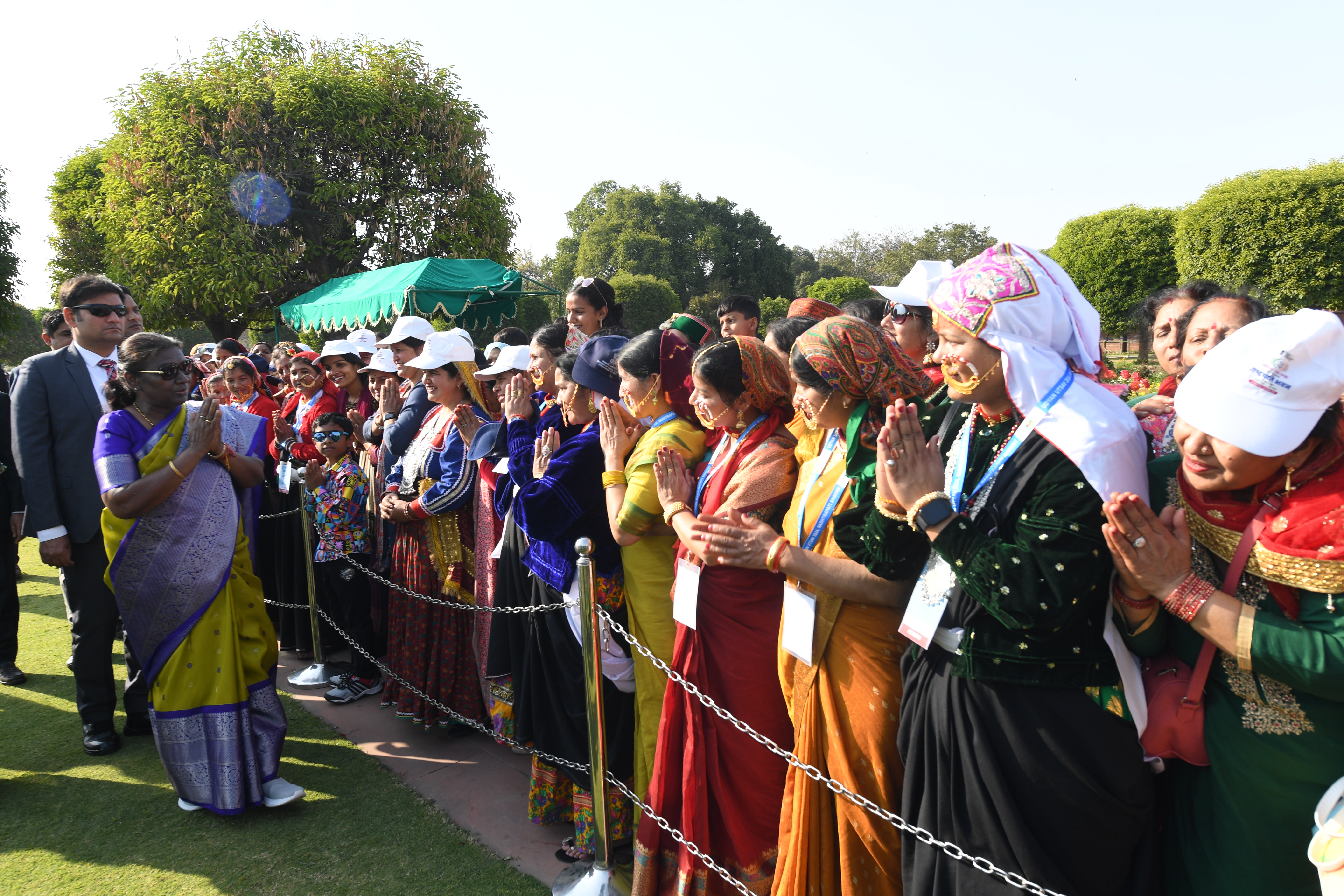 | Caption: | The President of India, Smt Droupadi Murmu met women visiting Amrit Udyan on the day reserved for the special category of Women Tribal Women SHGs-II 08-03-2024 |