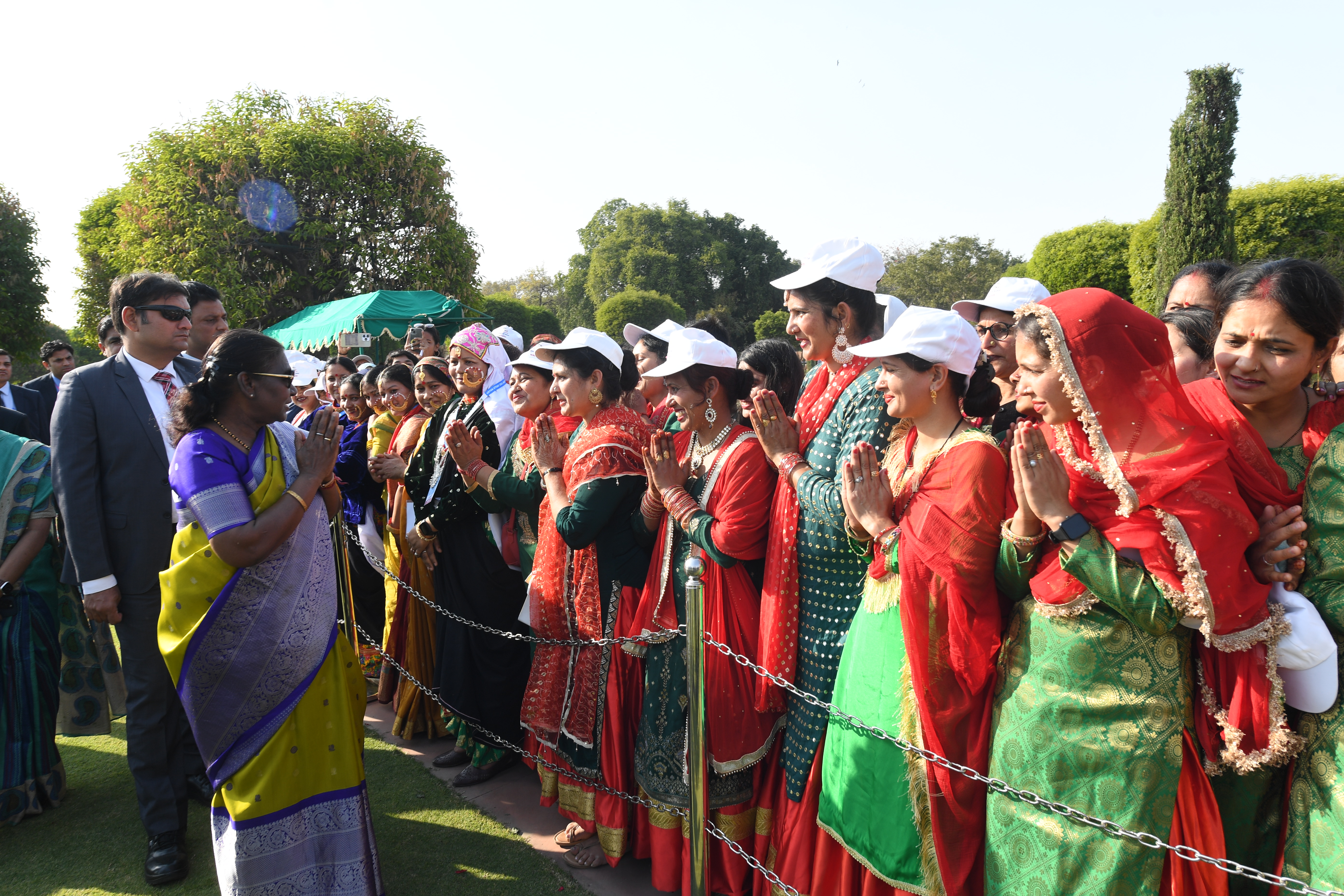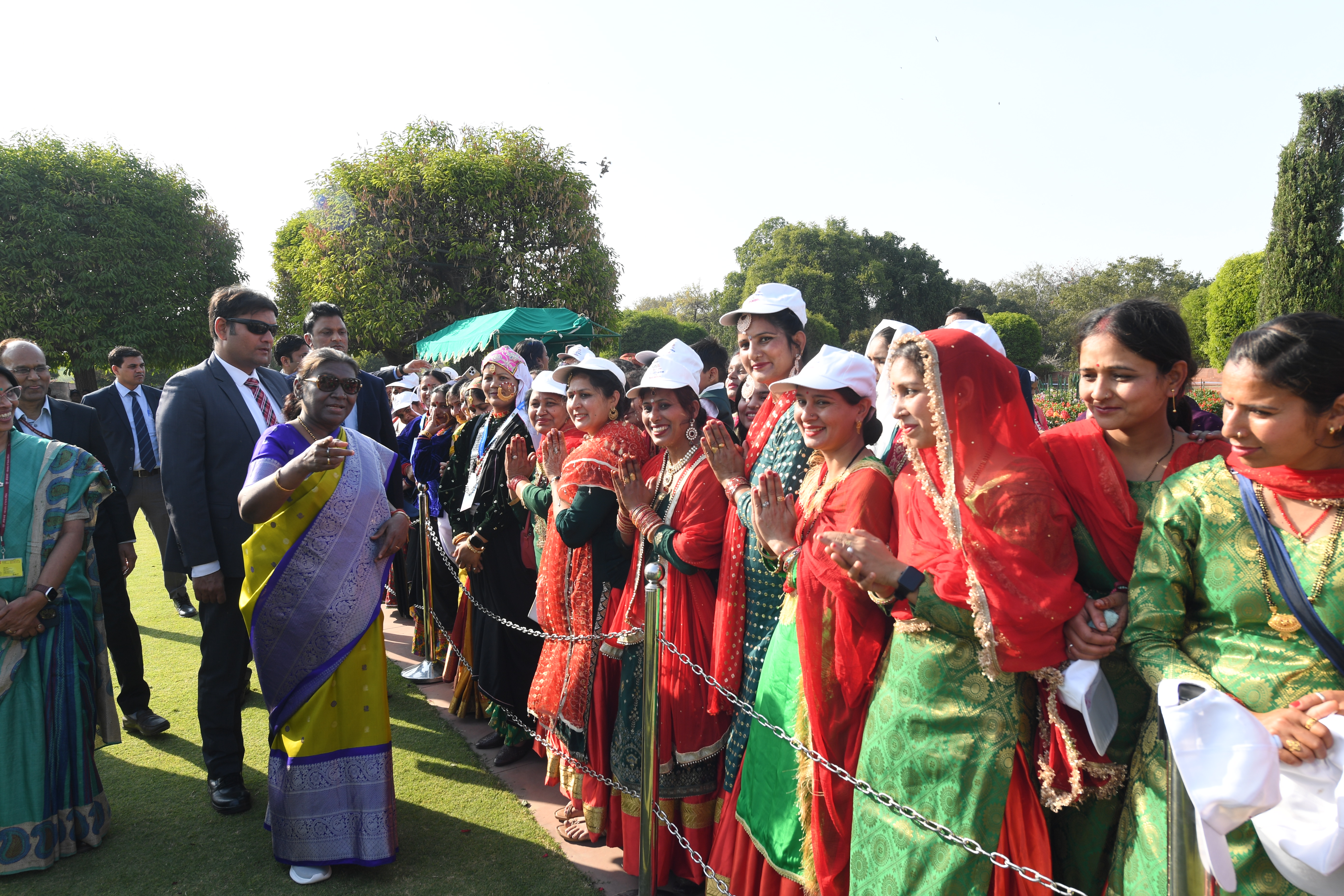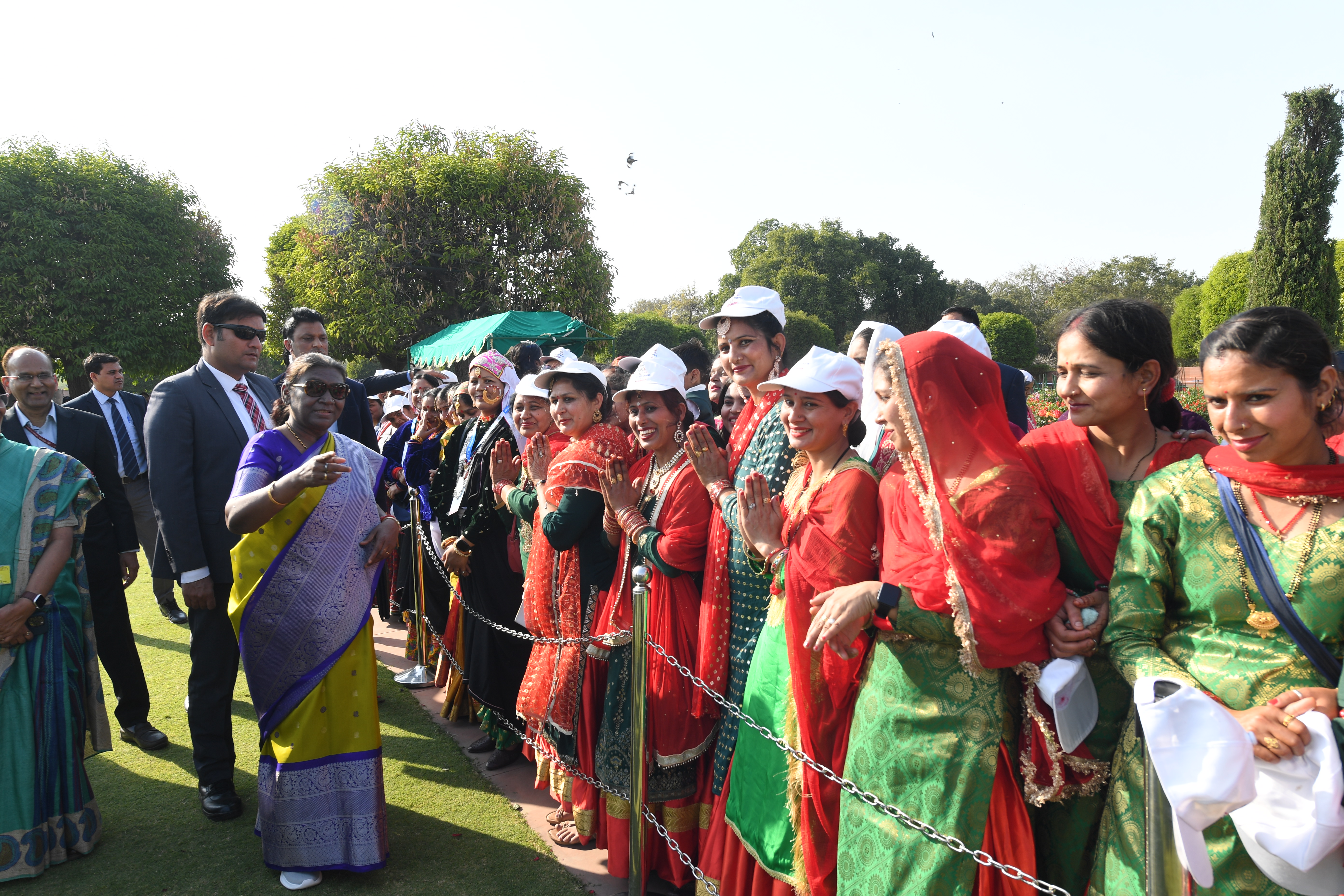 | Caption: | The President of India, Smt Droupadi Murmu met women visiting Amrit Udyan on the day reserved for the special category of Women Tribal Women SHGs-II 08-03-2024 |