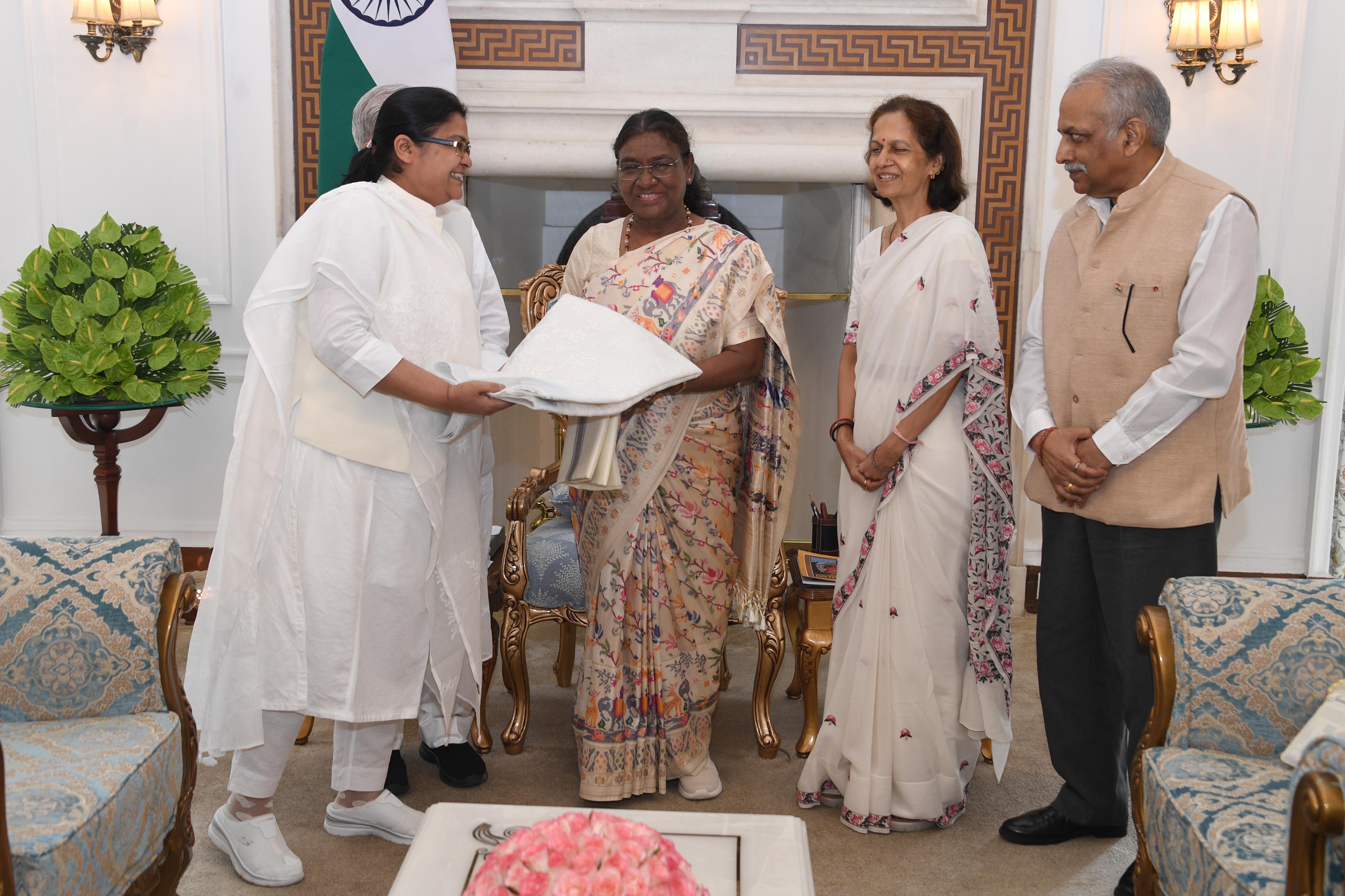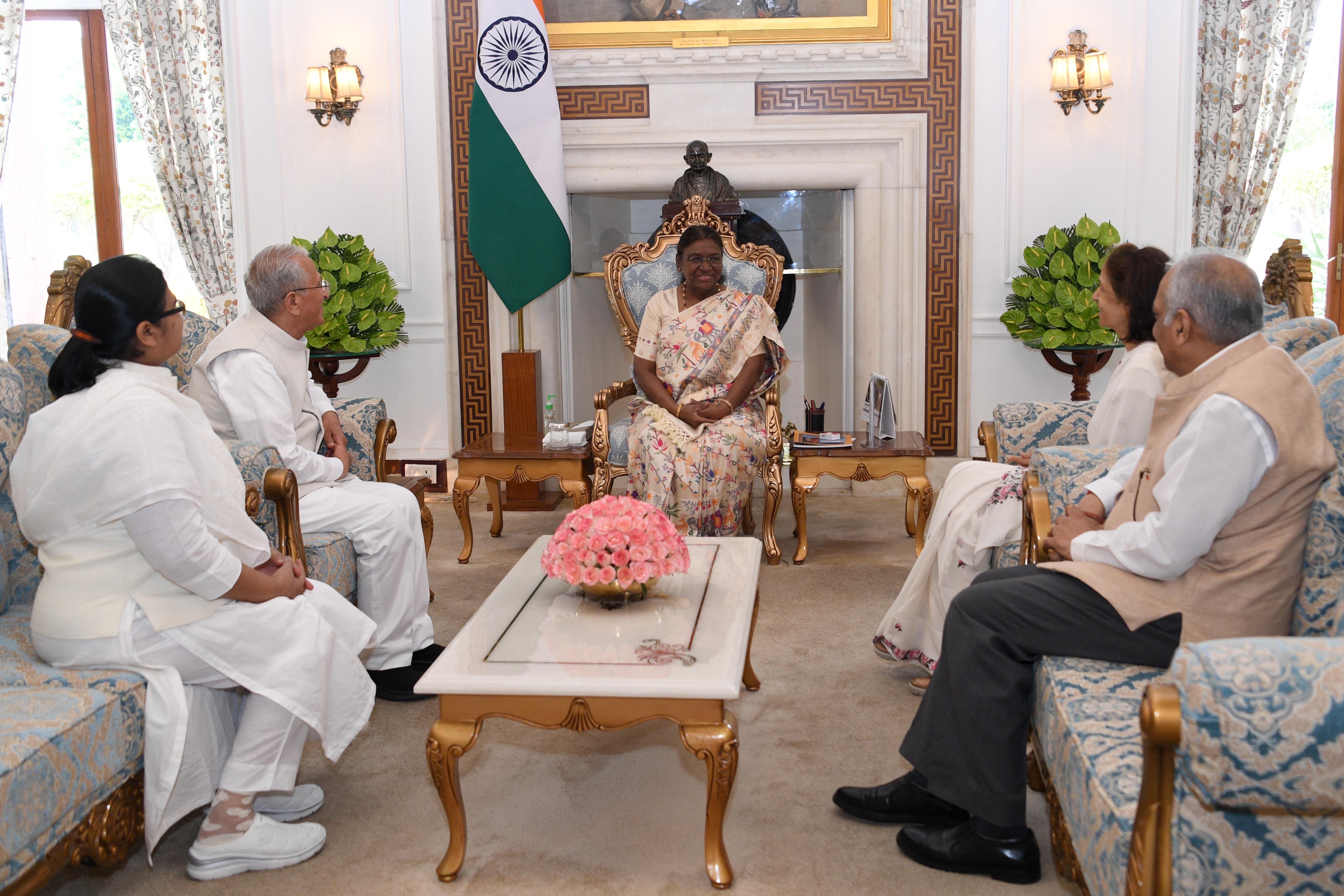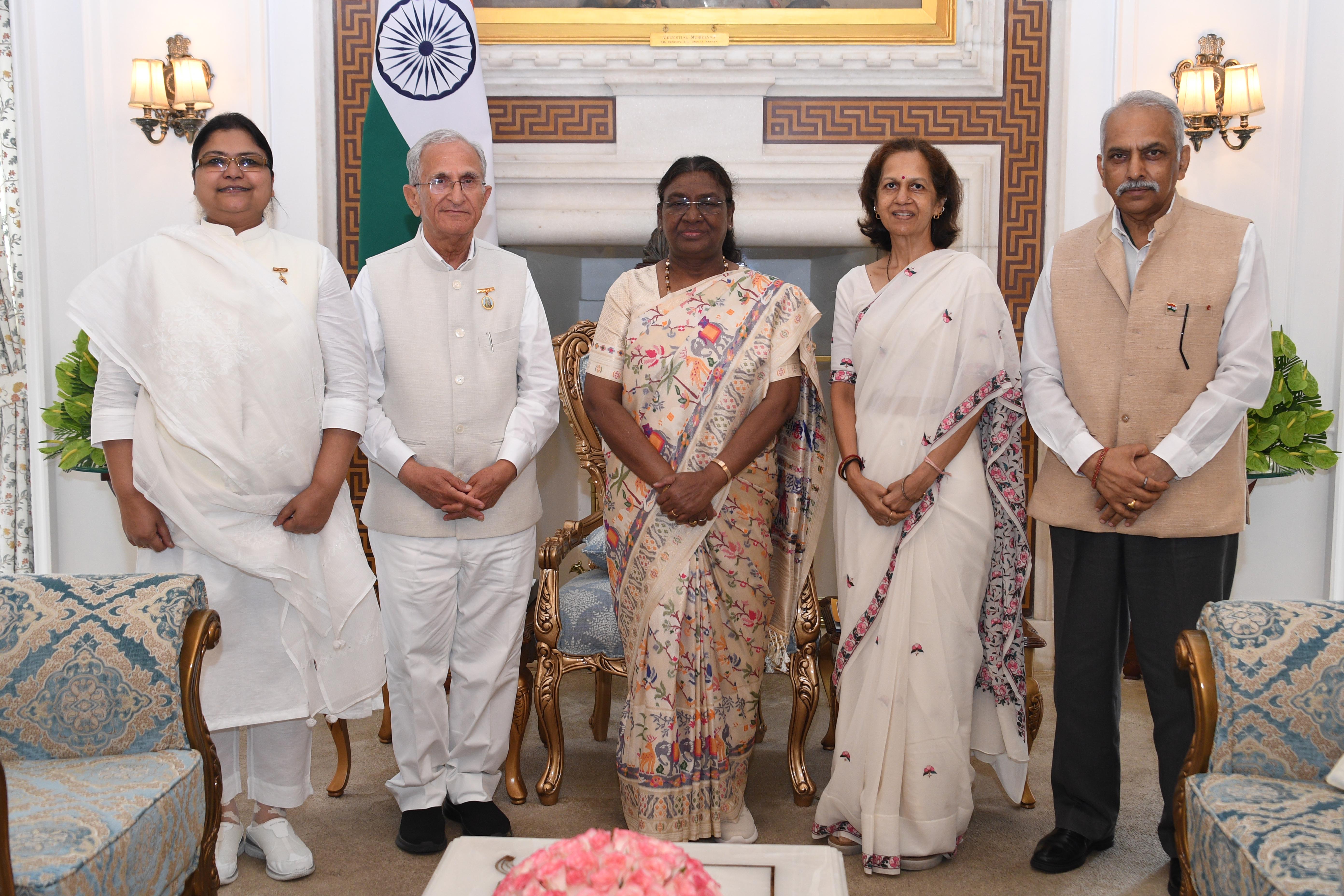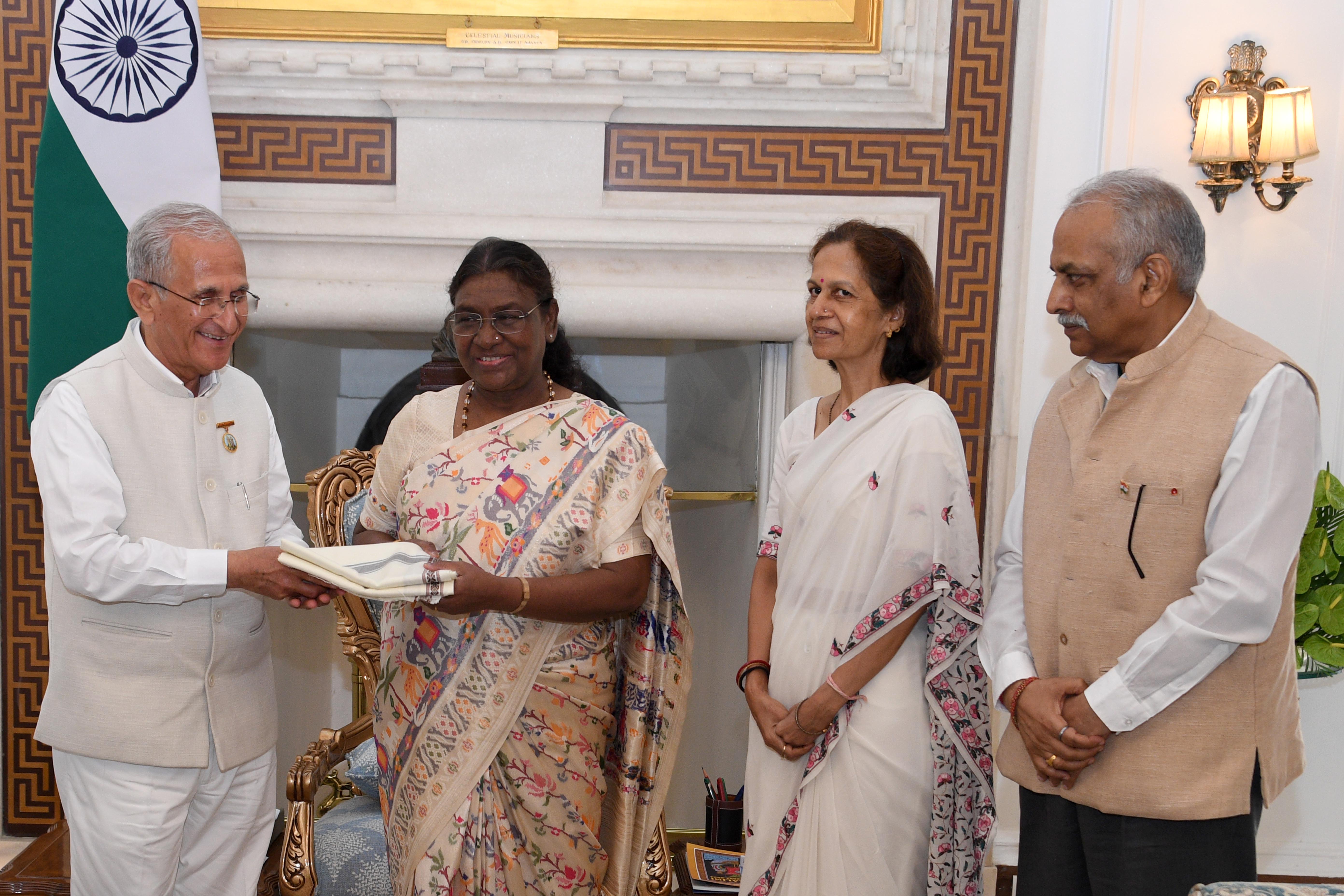 | Caption: | Lt Gen Vinod Khandare, Principal Adviser MoD along with others meeting with the President of India Smt. Droupadi Murmu at Rashtrapati Bhavan on July 22, 2024. |