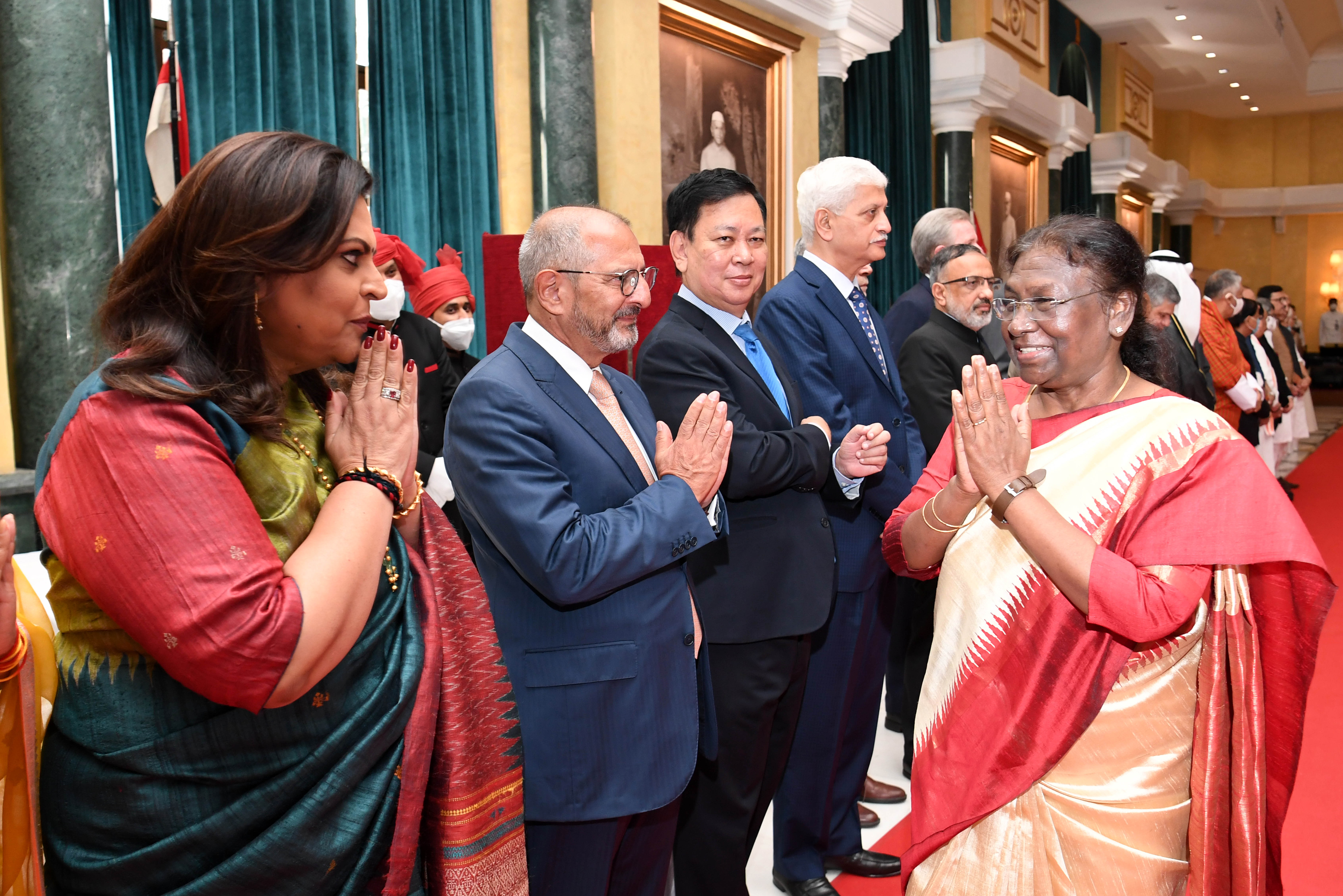 | Caption: | The President of India, Smt. Droupadi Murmu on At Home on the occasion of Independence Day 15-08-2022 |