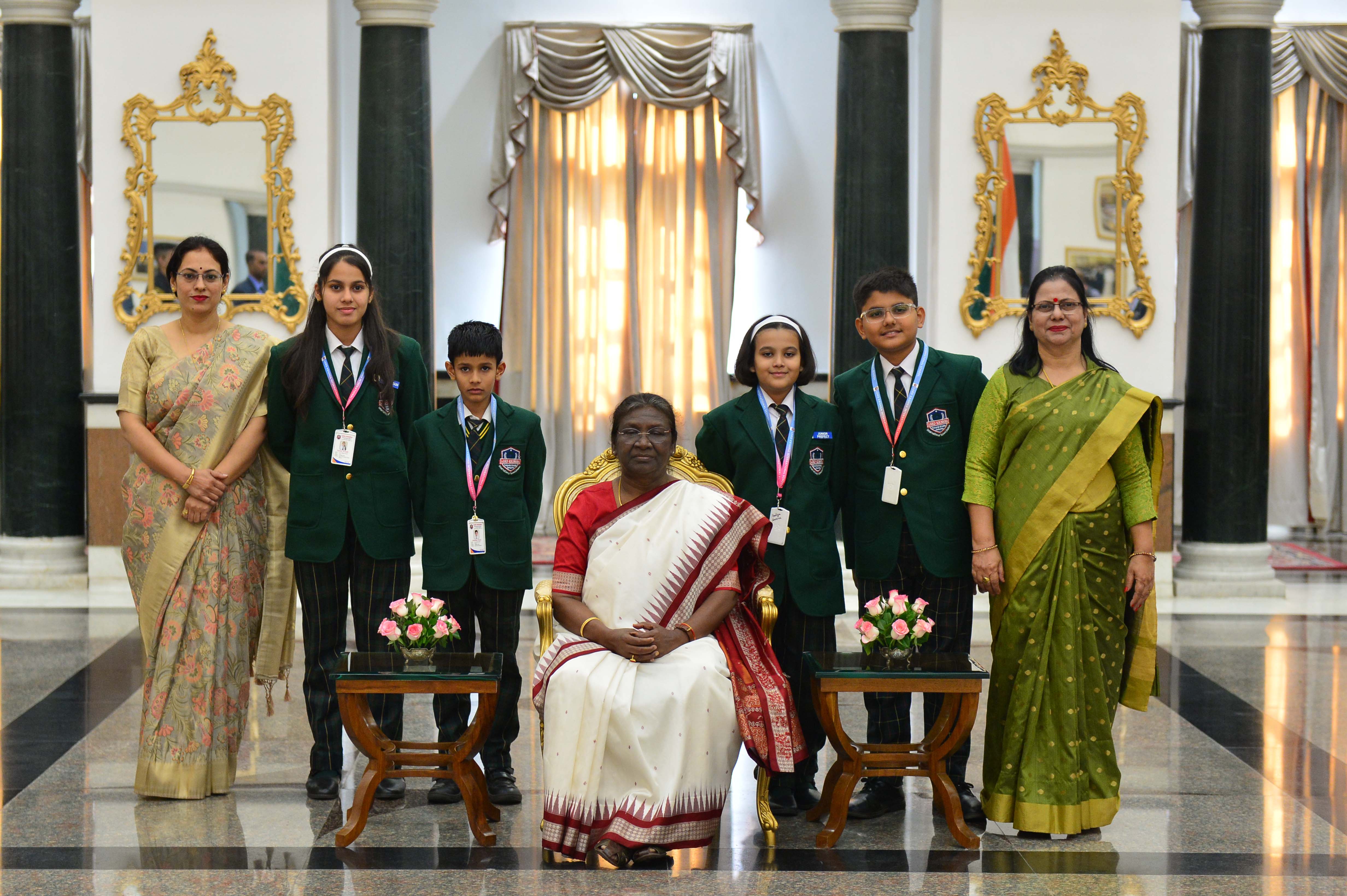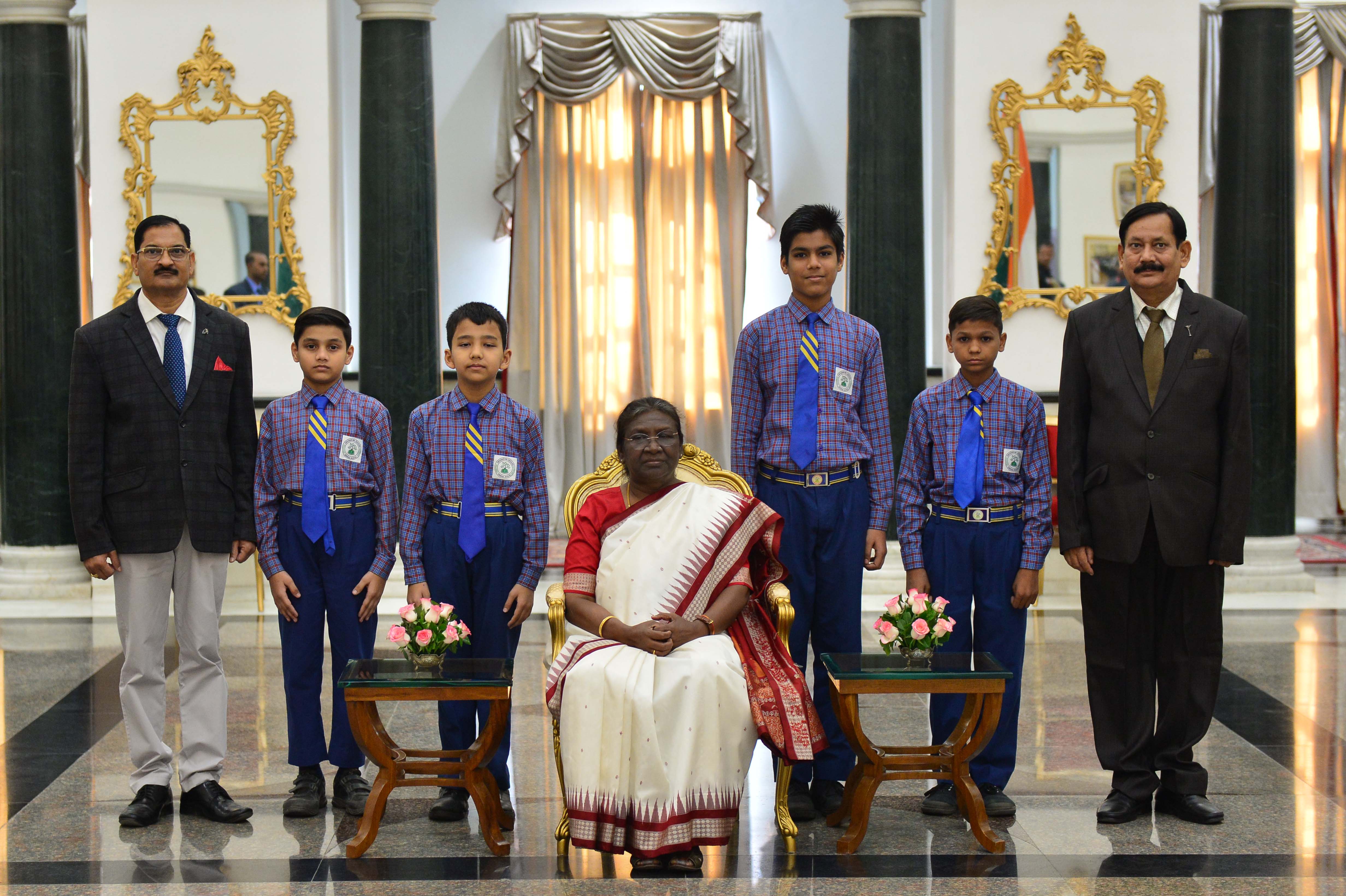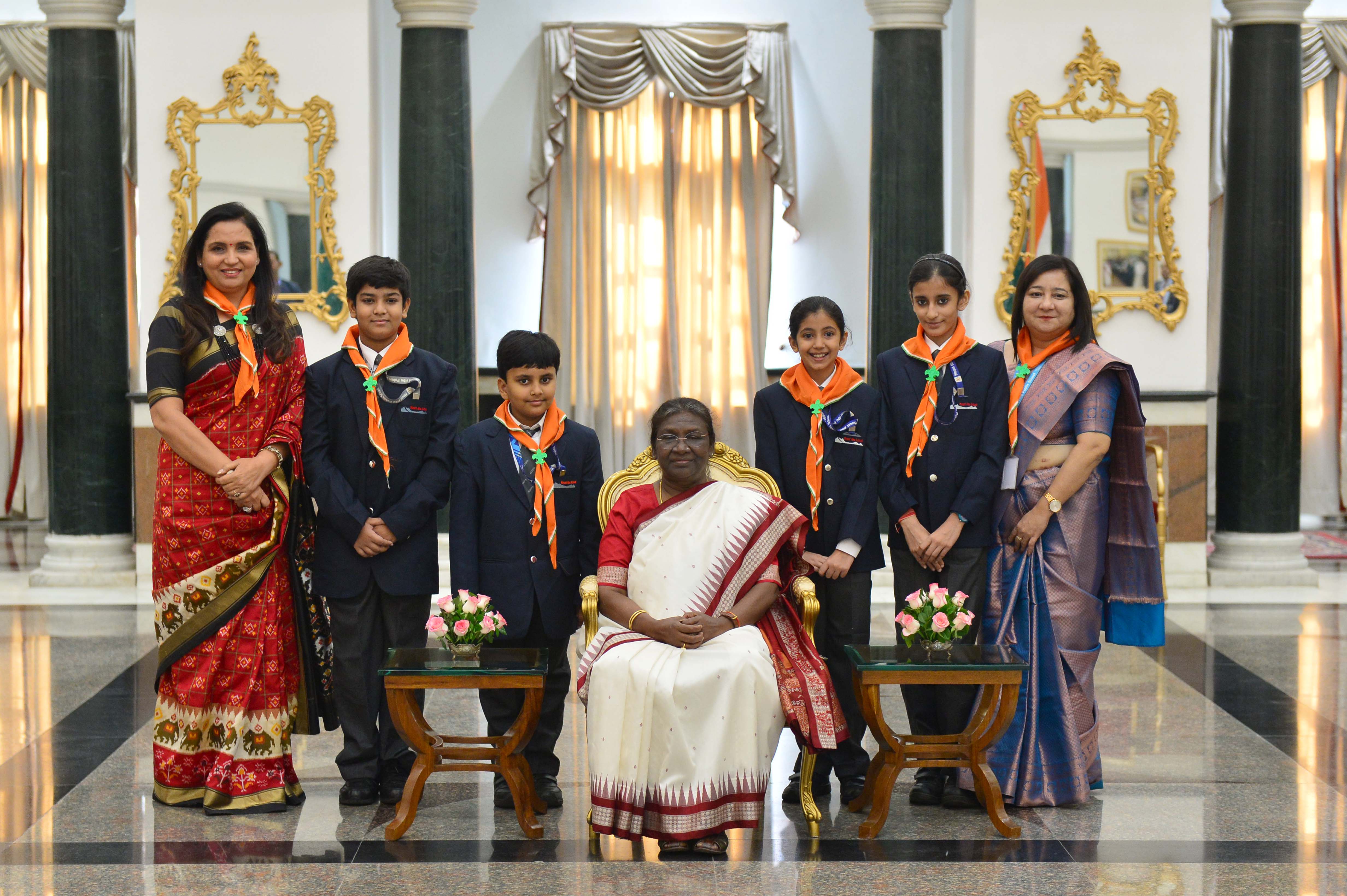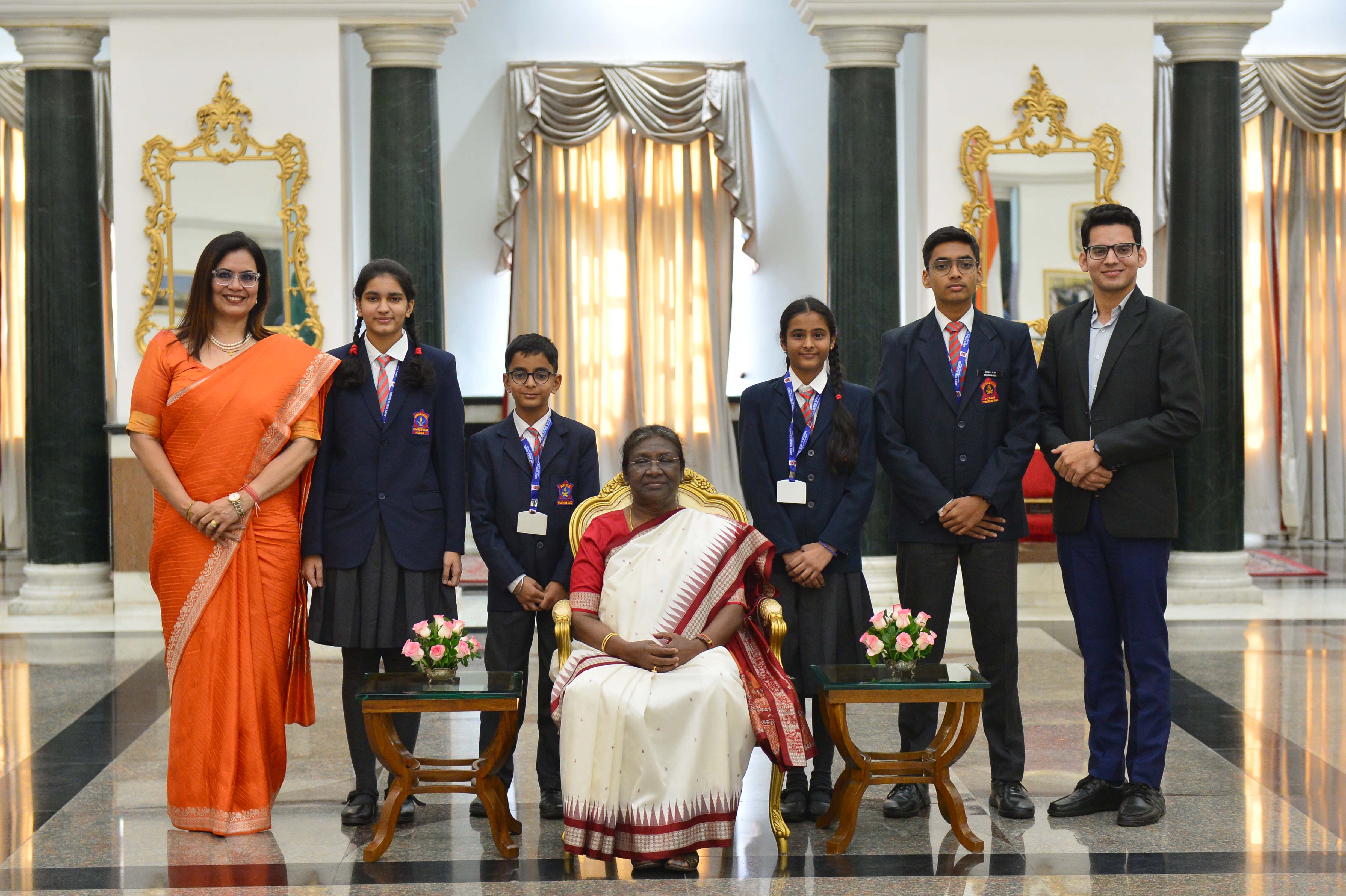 | Caption: | The President of India, Smt. Droupadi Murmu interacting with the students from various schools/organisations at Rashtrapati Bhavan Cultural Centre (RBCC) on November 14, 2022. |