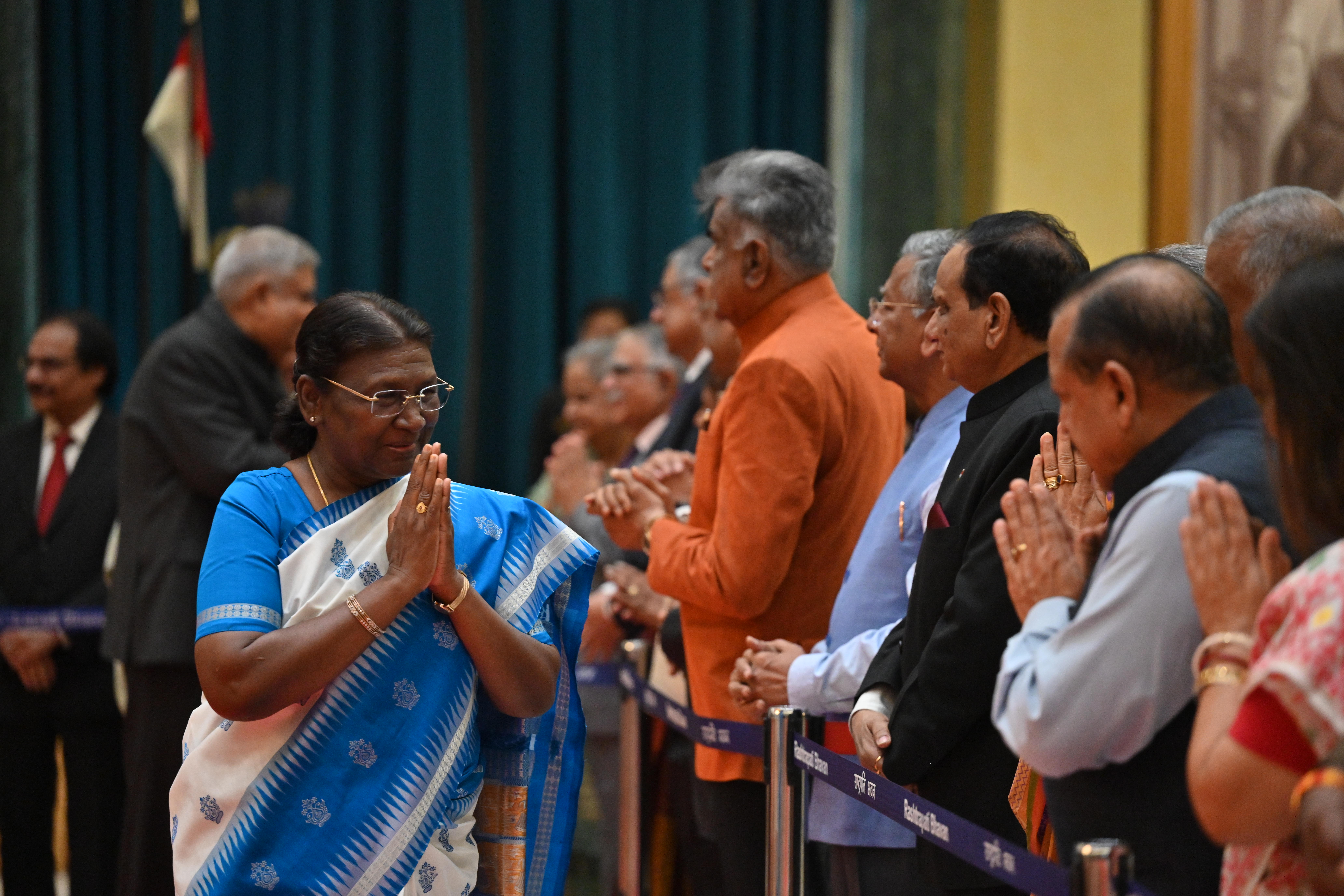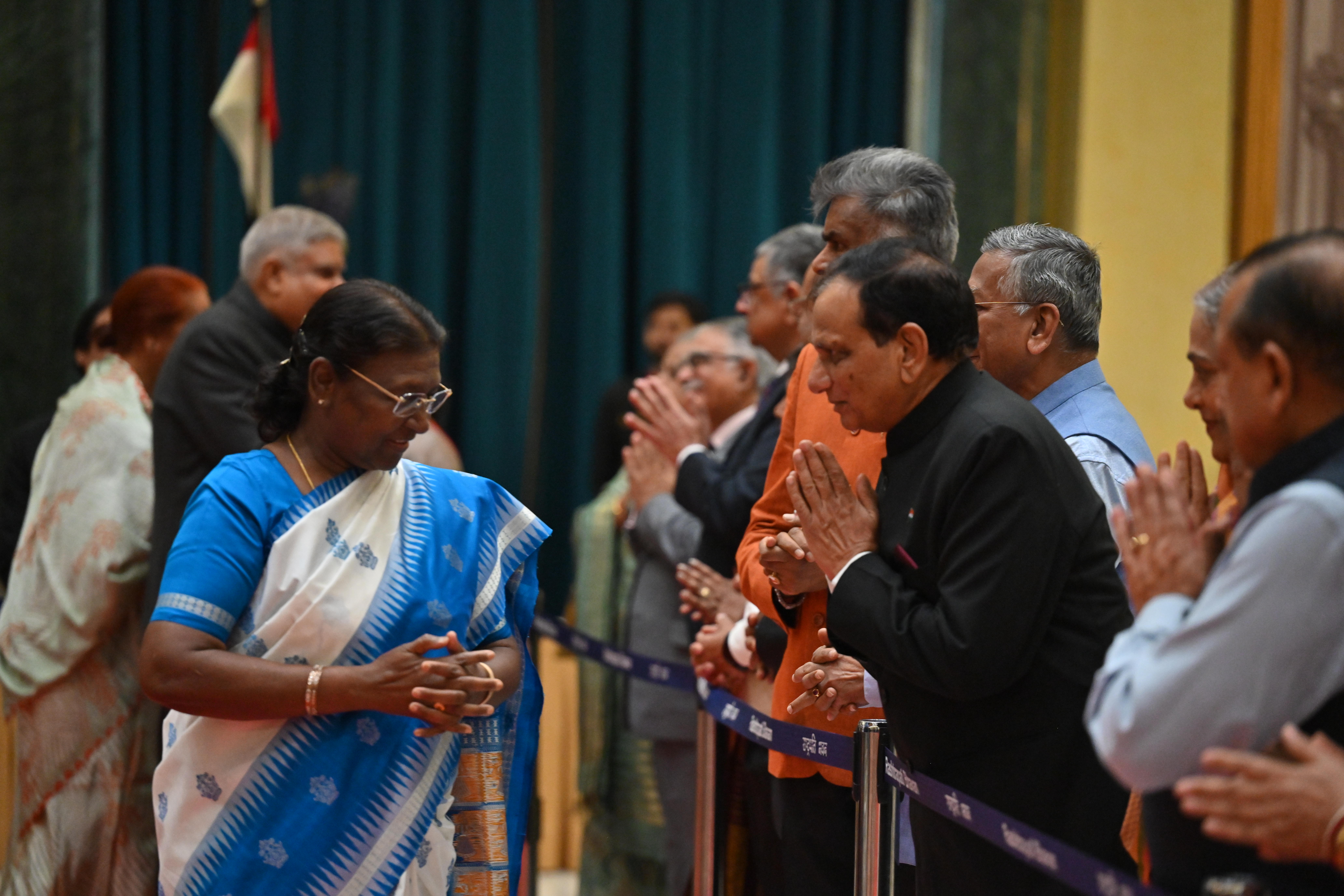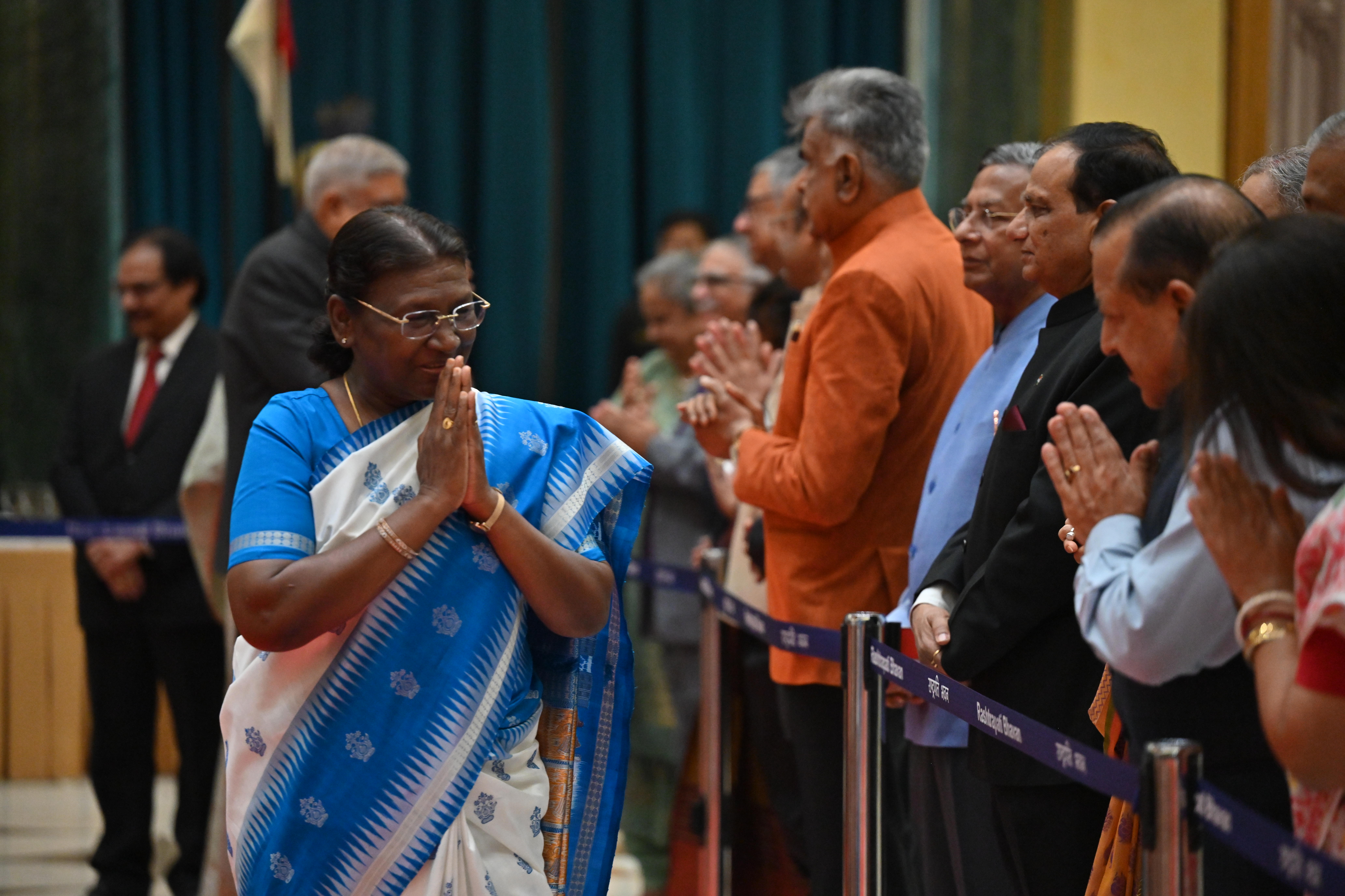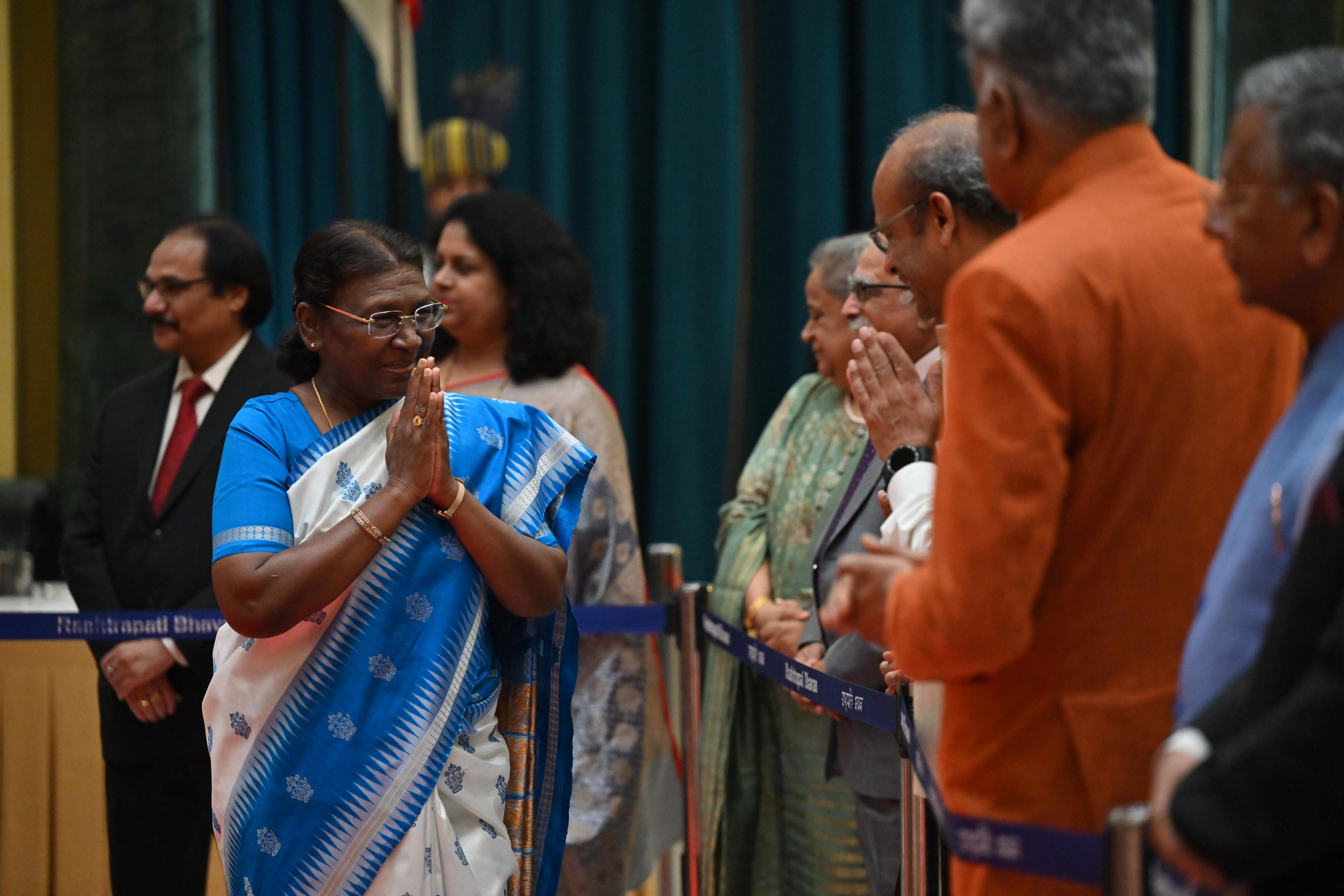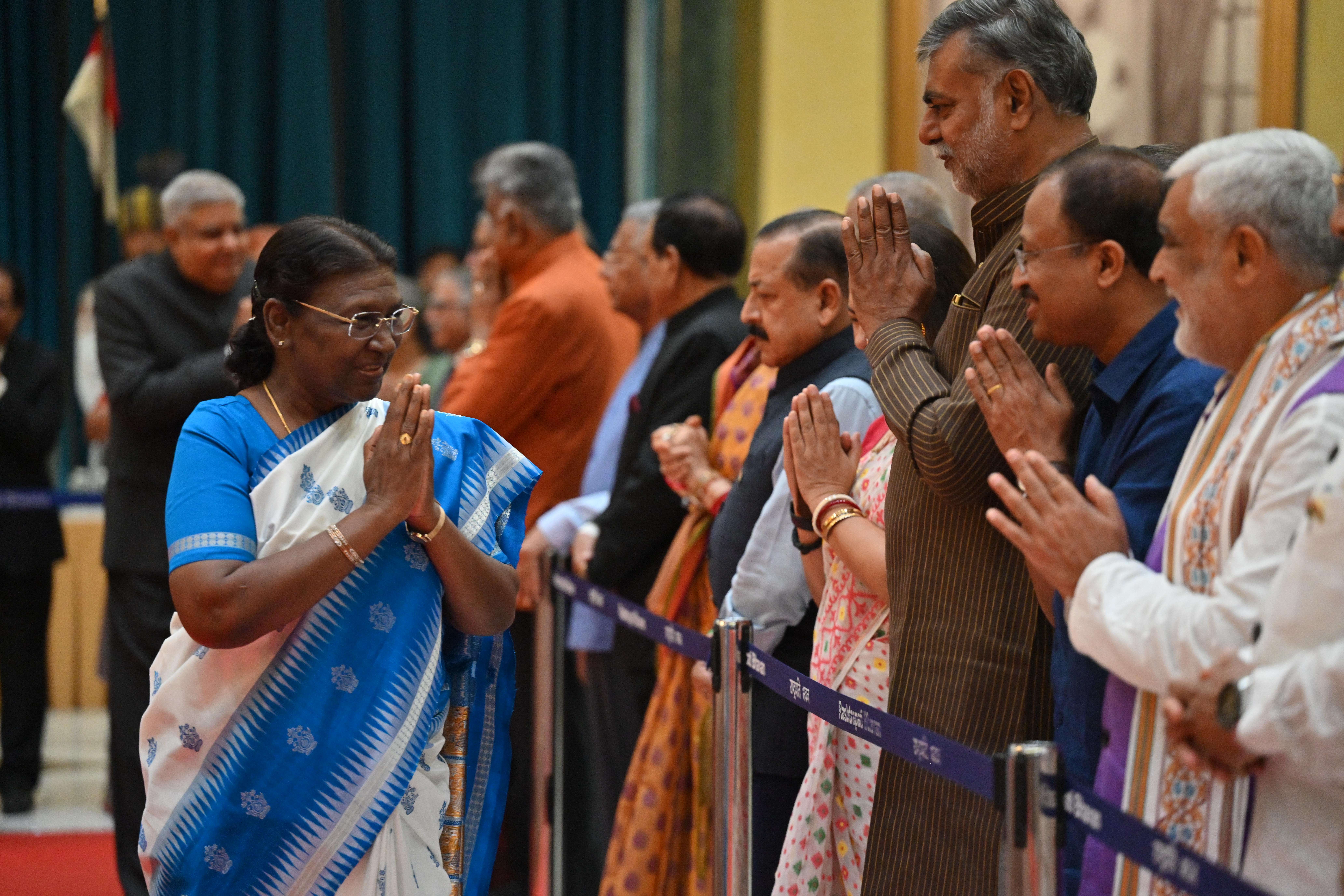 | Caption: | The President of India, Smt. Droupadi Murmu on At Home on the occasion of Independence Day 15-08-2023 |