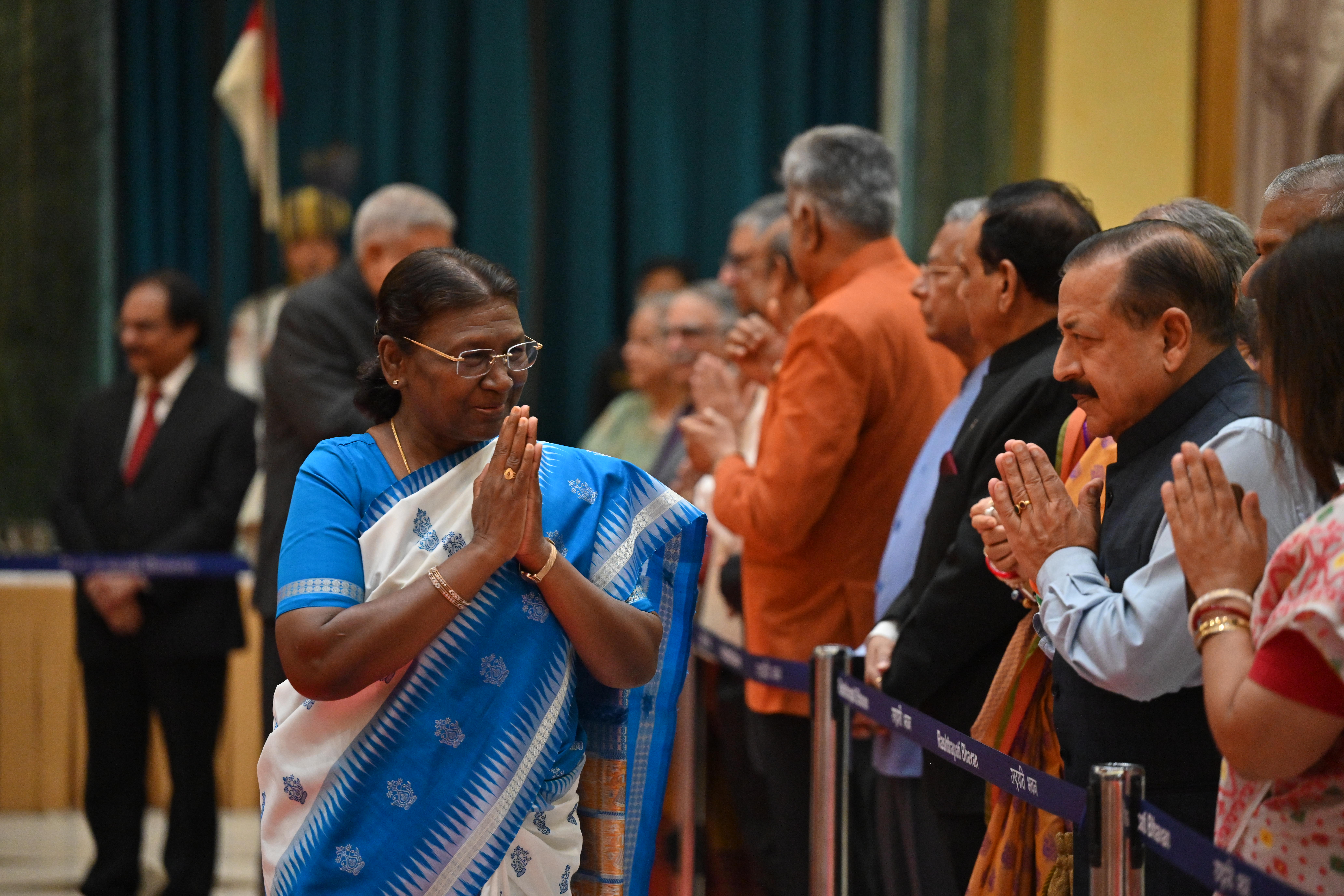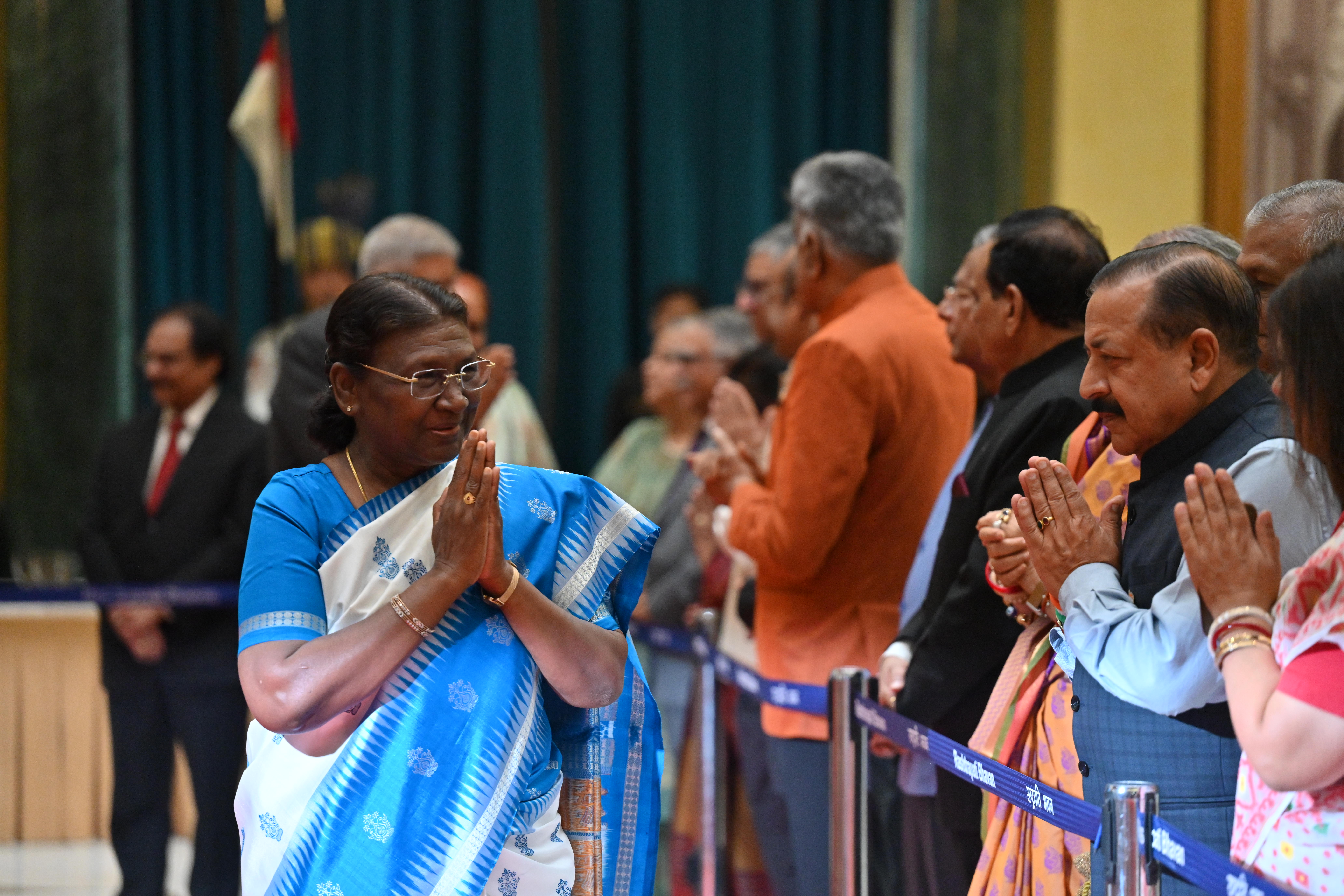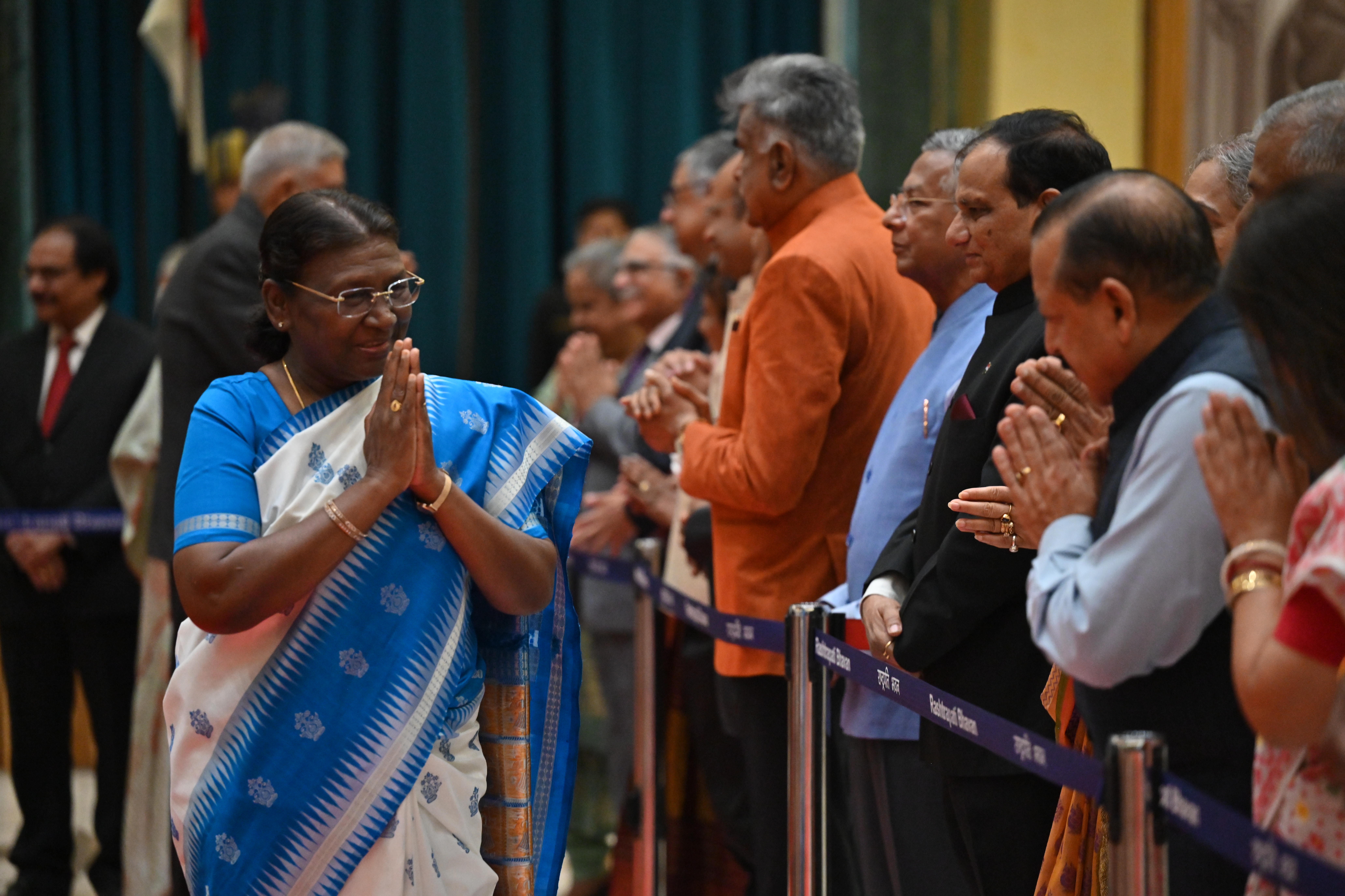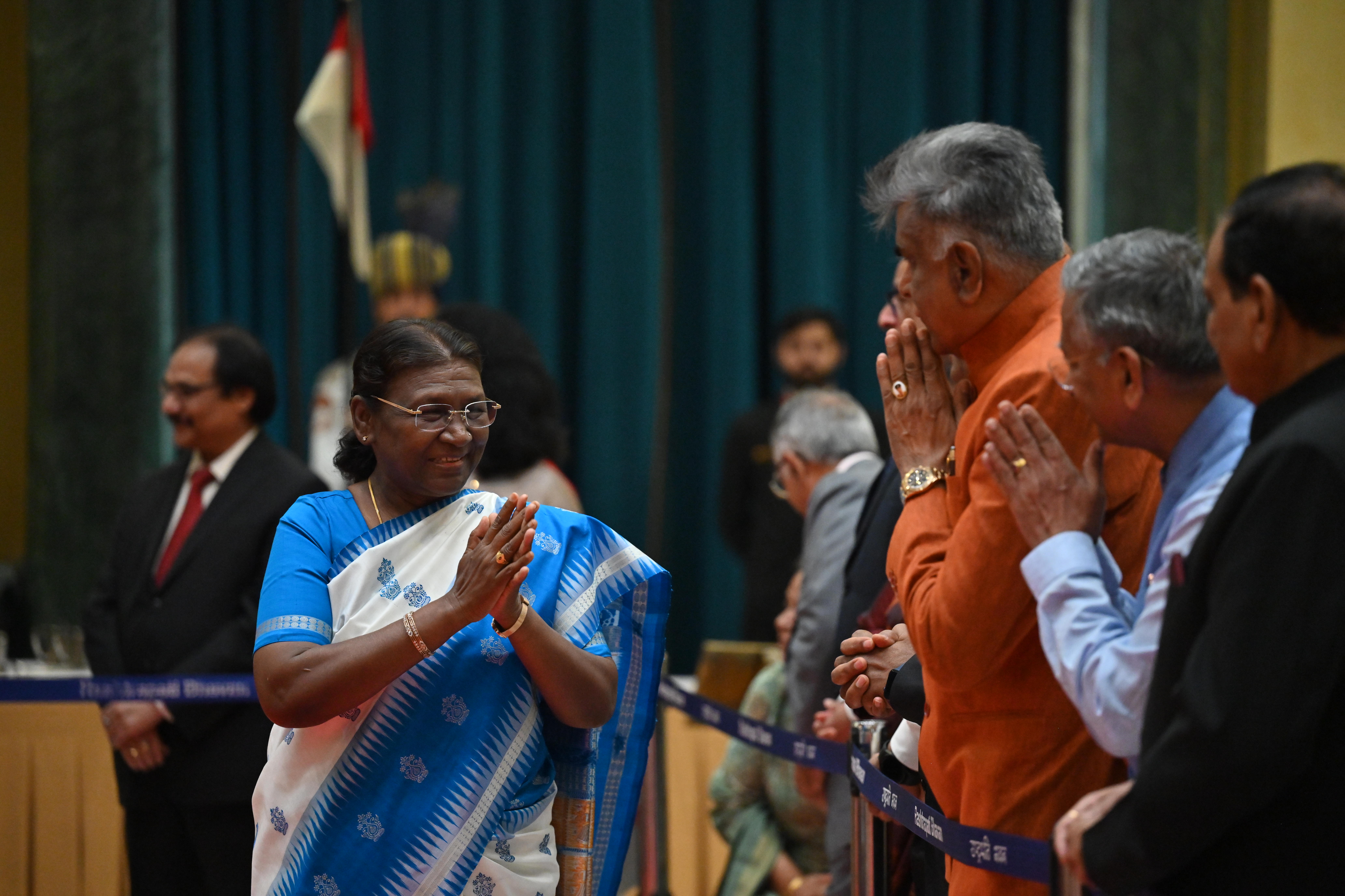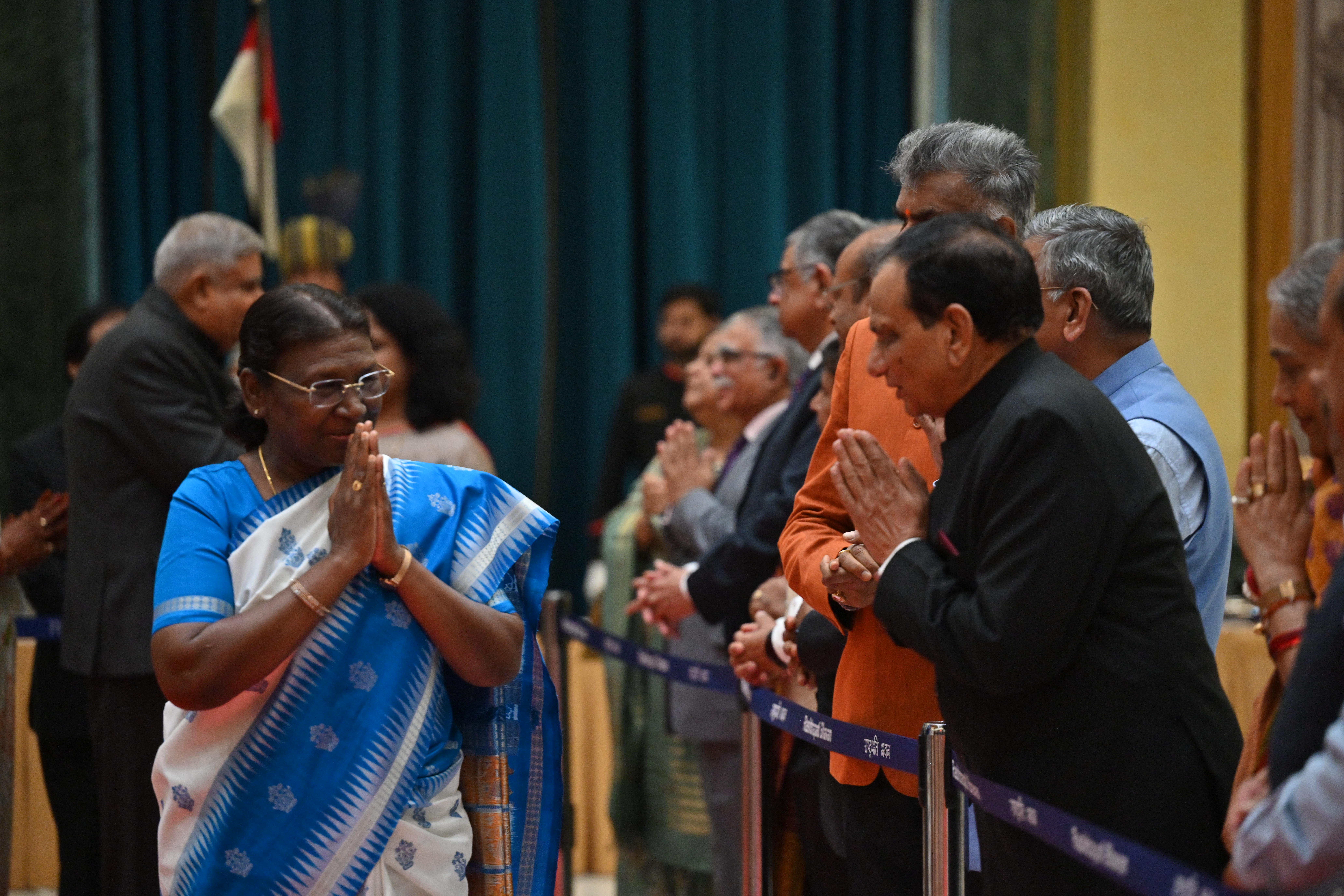 | Caption: | The President of India, Smt. Droupadi Murmu on At Home on the occasion of Independence Day 15-08-2023 |