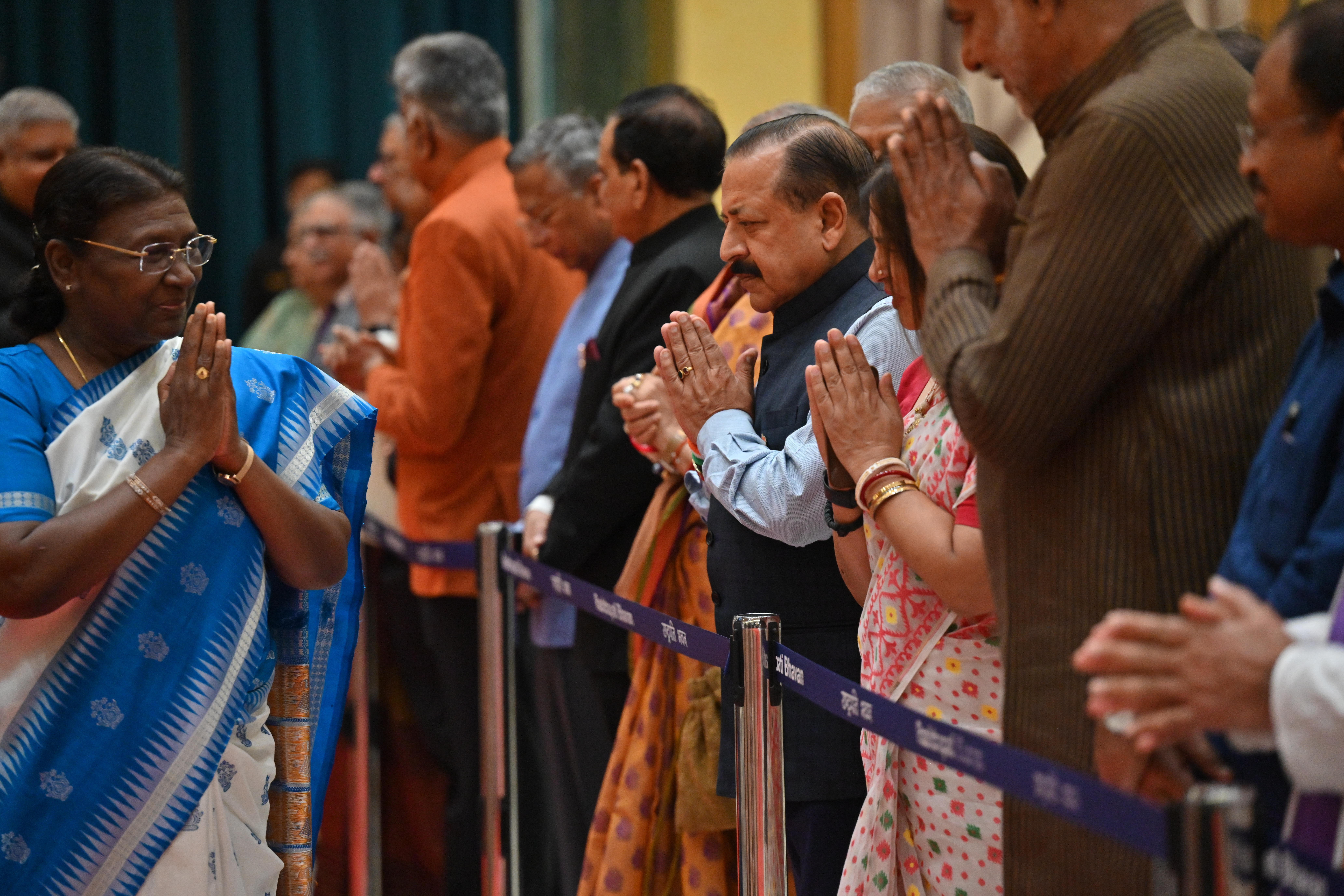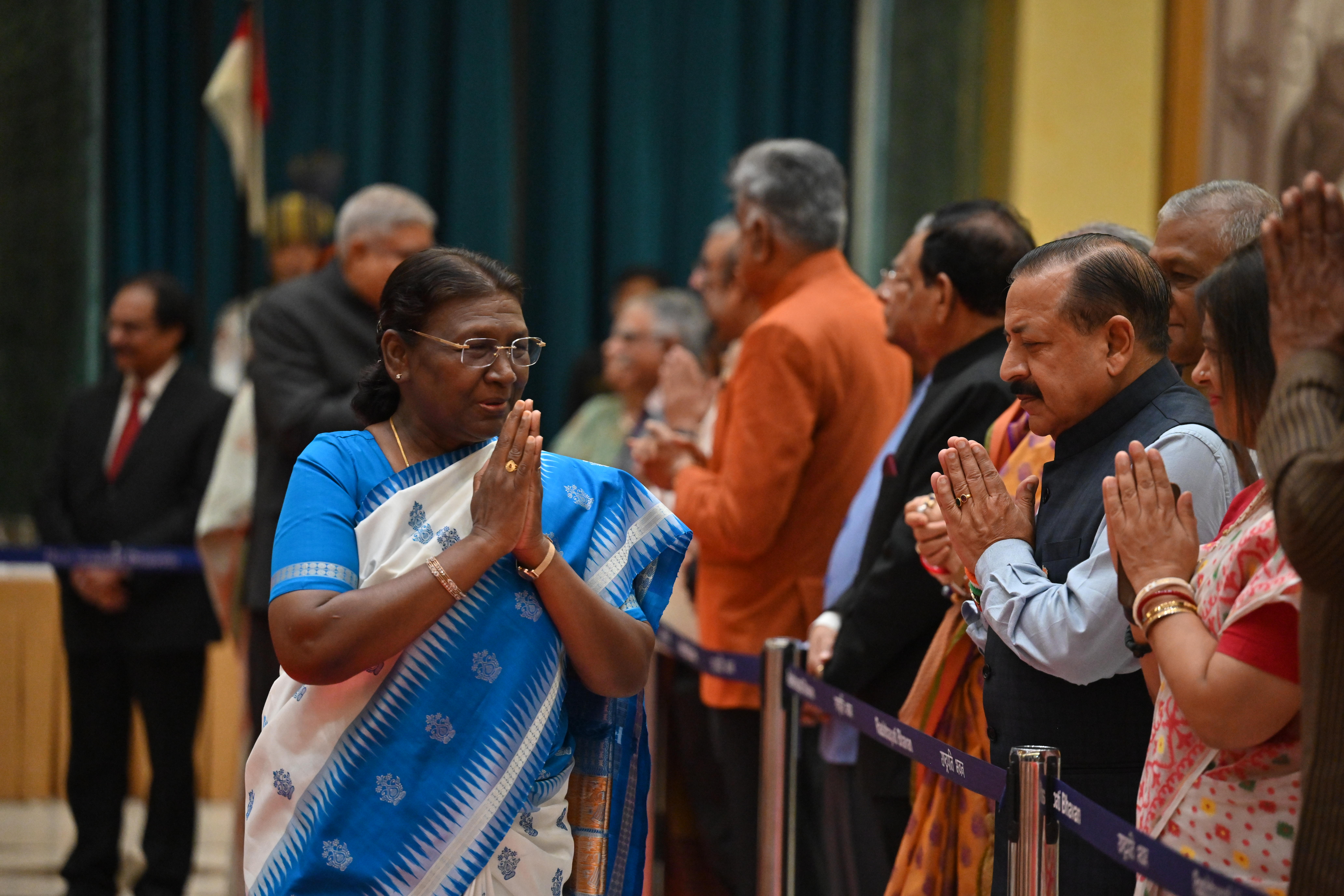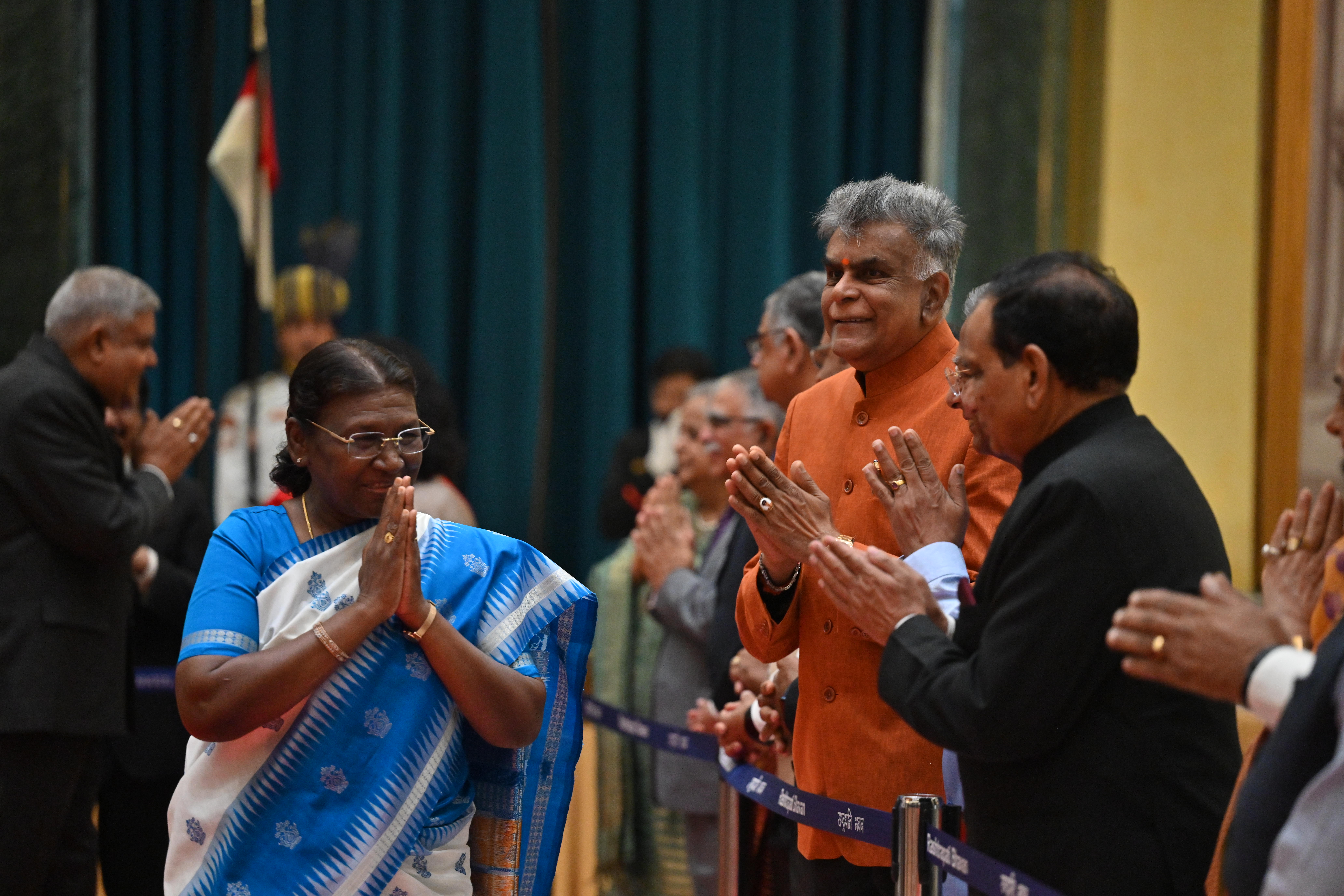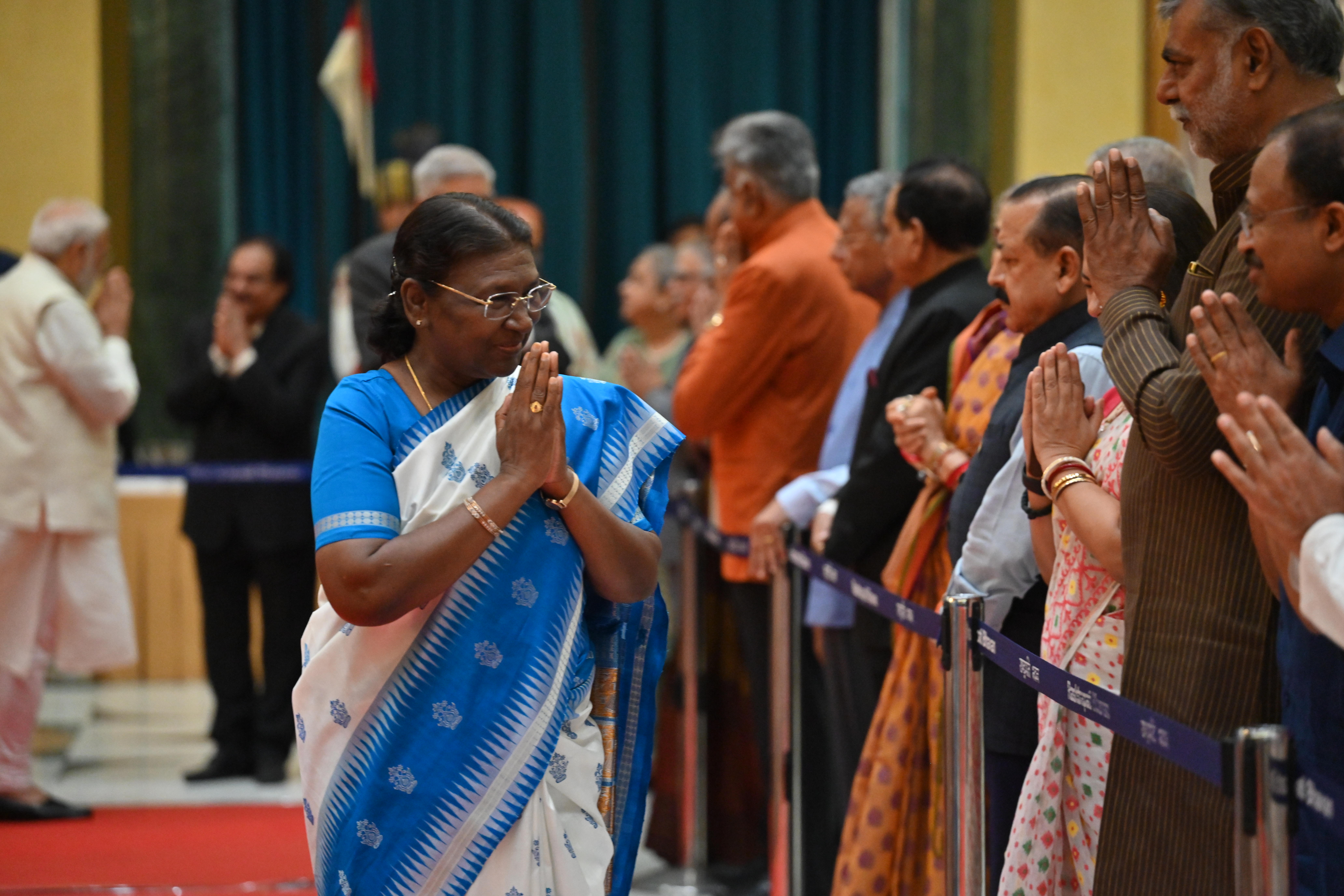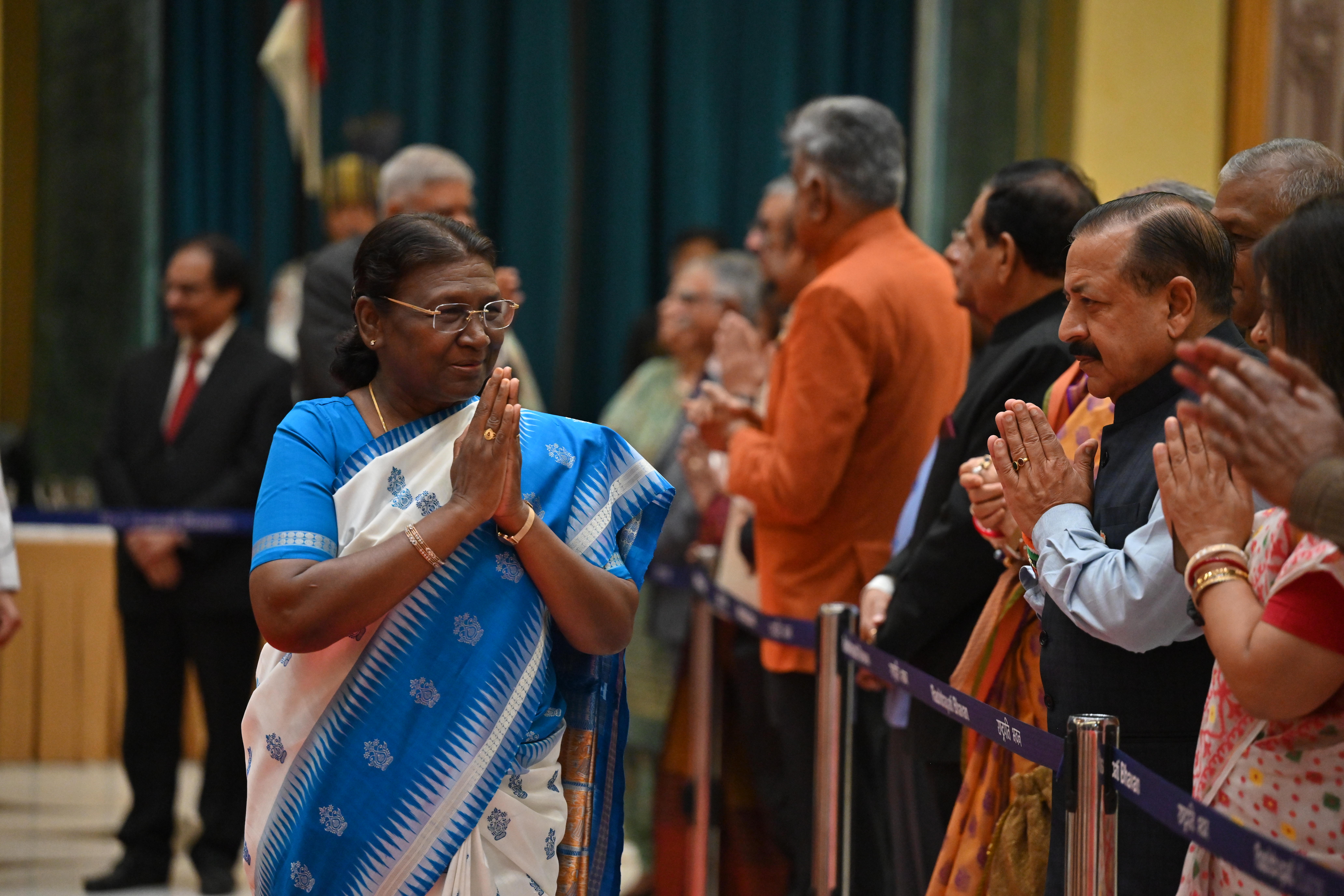 | Caption: | The President of India, Smt. Droupadi Murmu on At Home on the occasion of Independence Day 15-08-2023 |