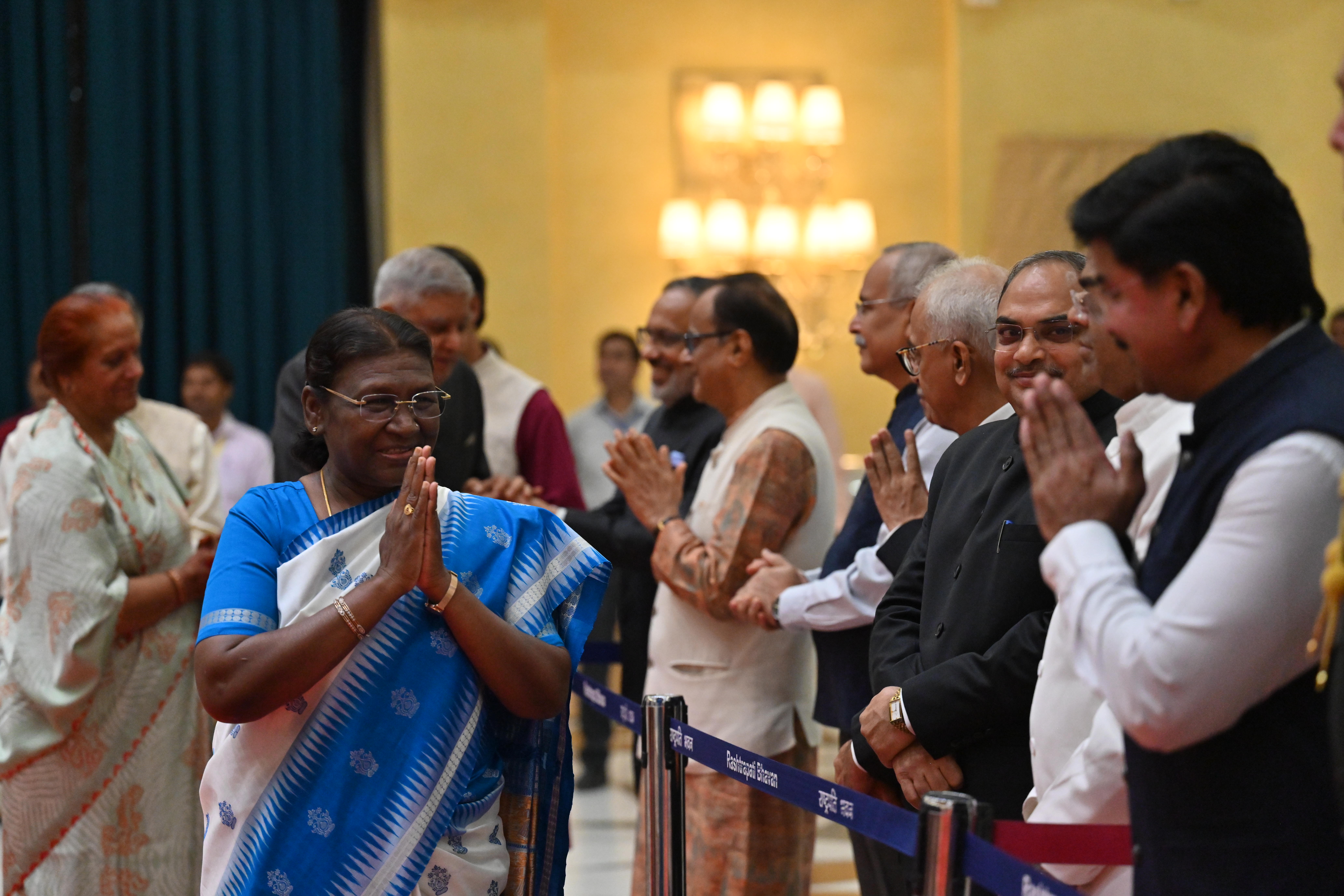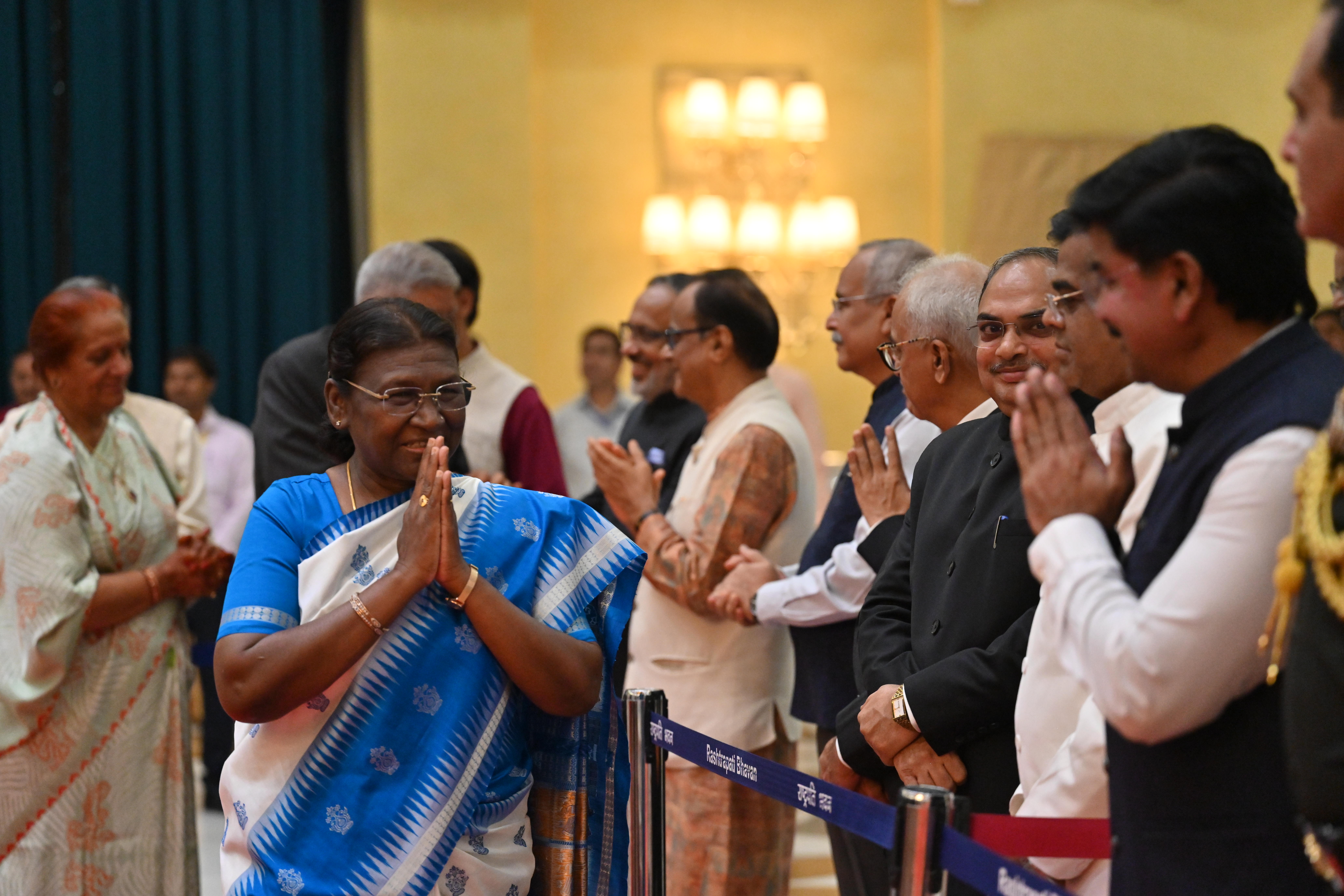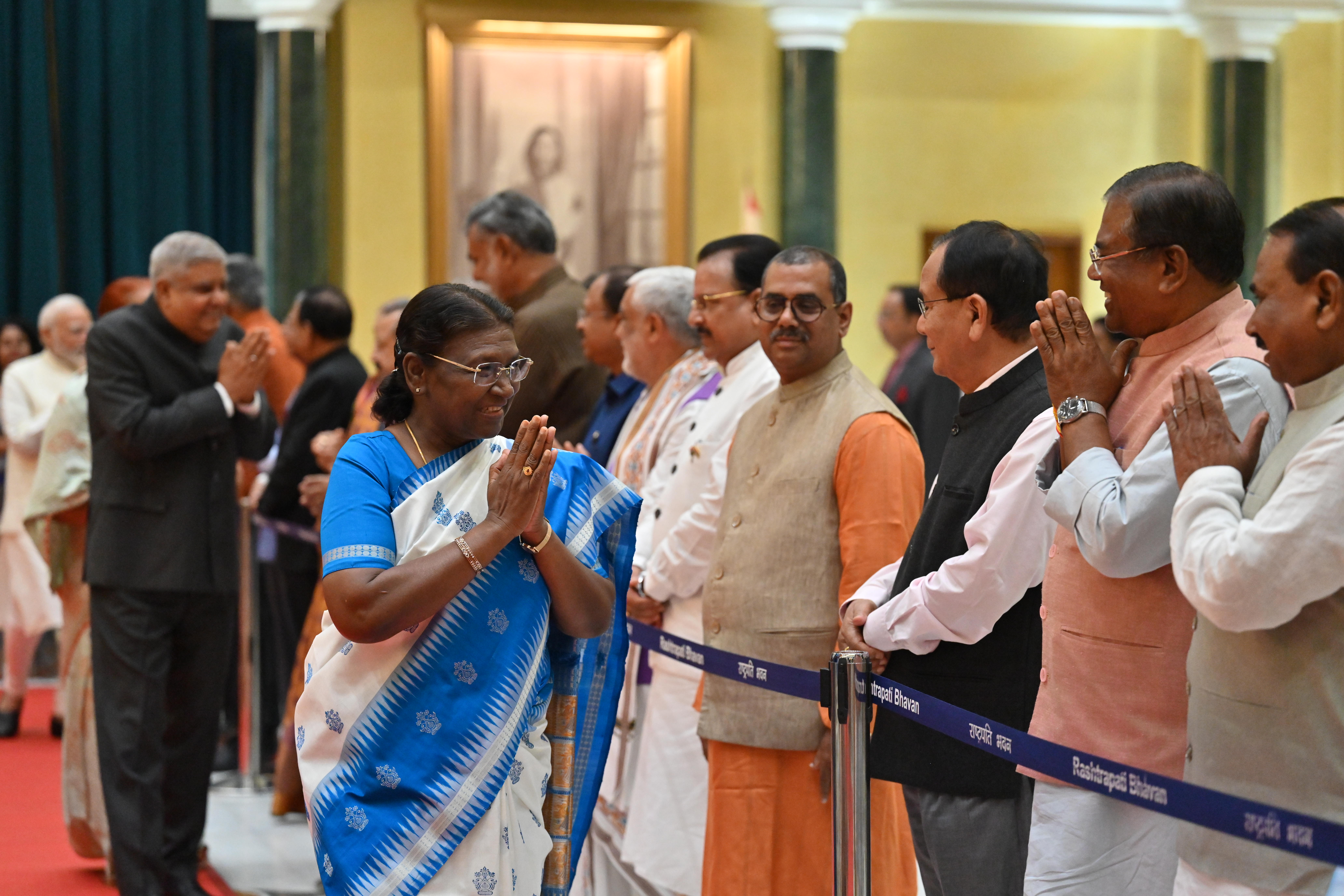 | Caption: | The President of India, Smt. Droupadi Murmu on At Home on the occasion of Independence Day 15-08-2023 |