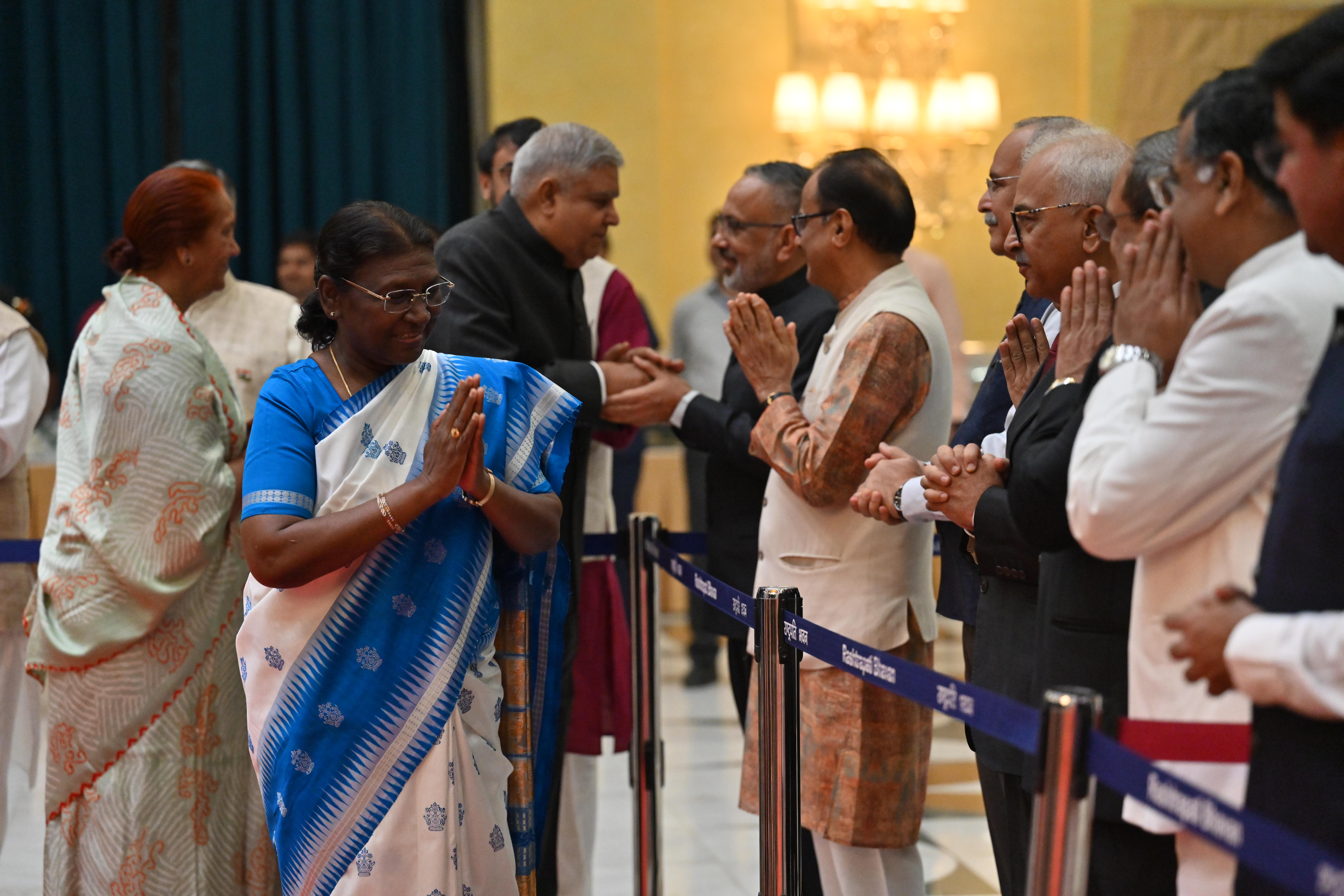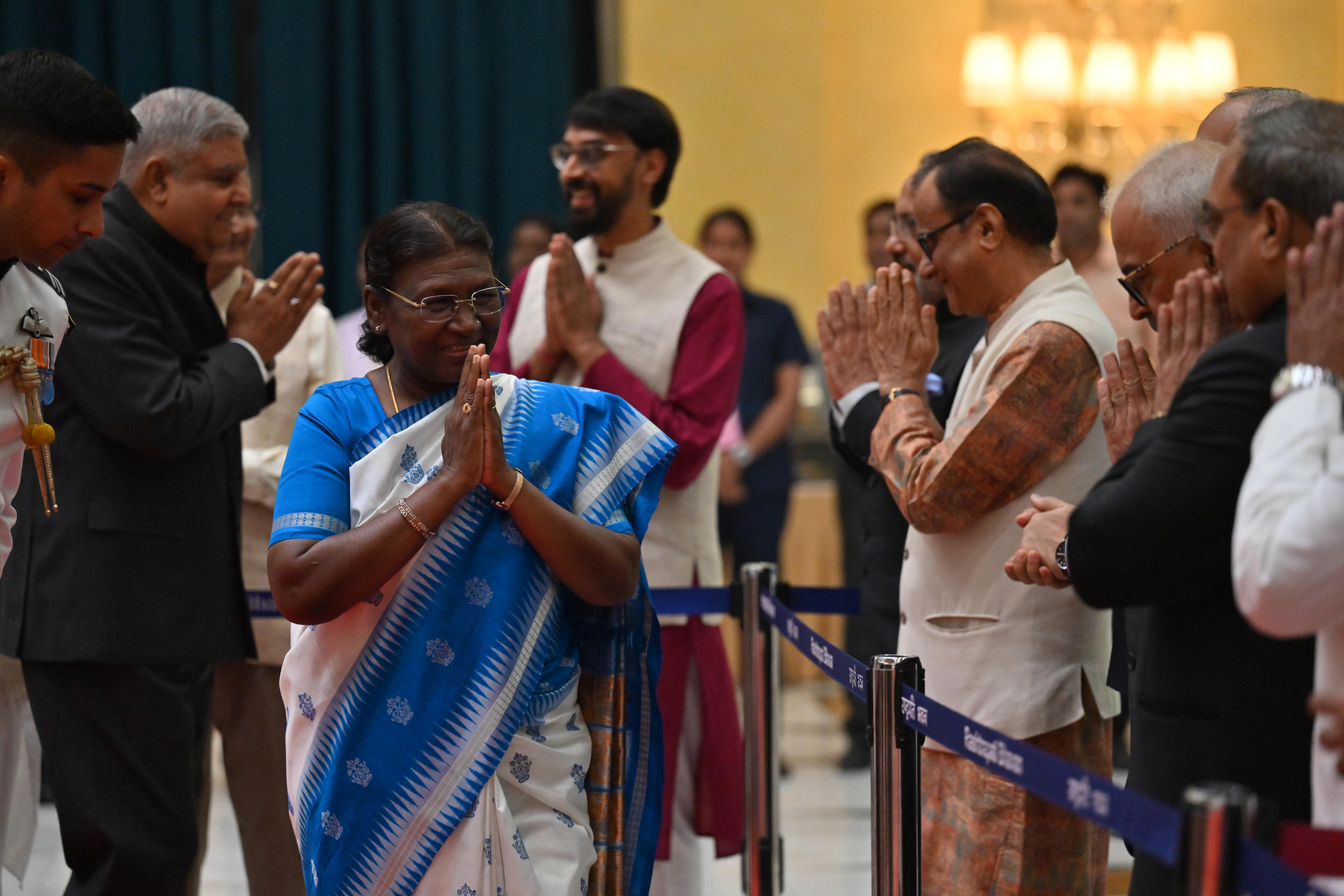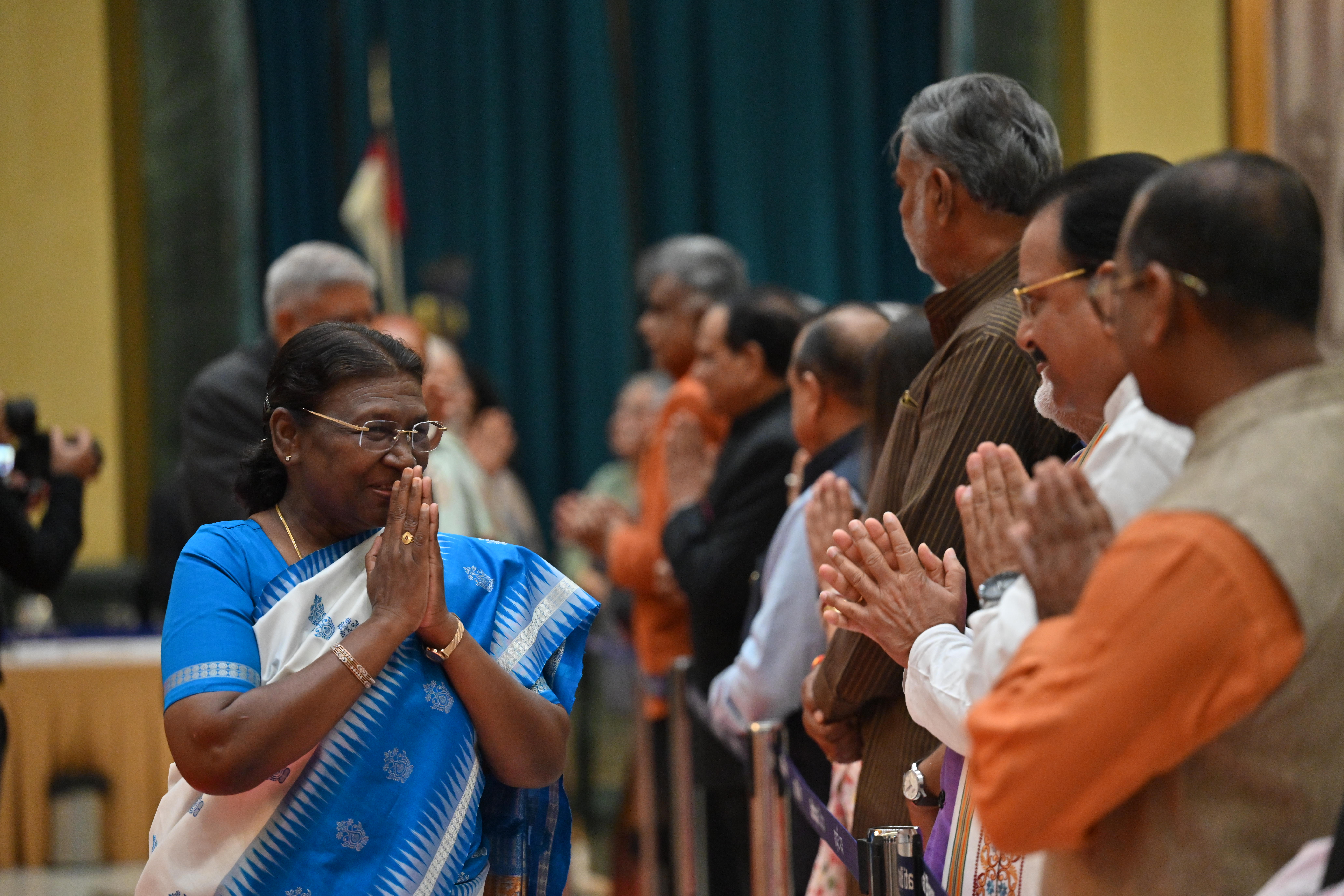 | Caption: | The President of India, Smt. Droupadi Murmu on At Home on the occasion of Independence Day 15-08-2023 |