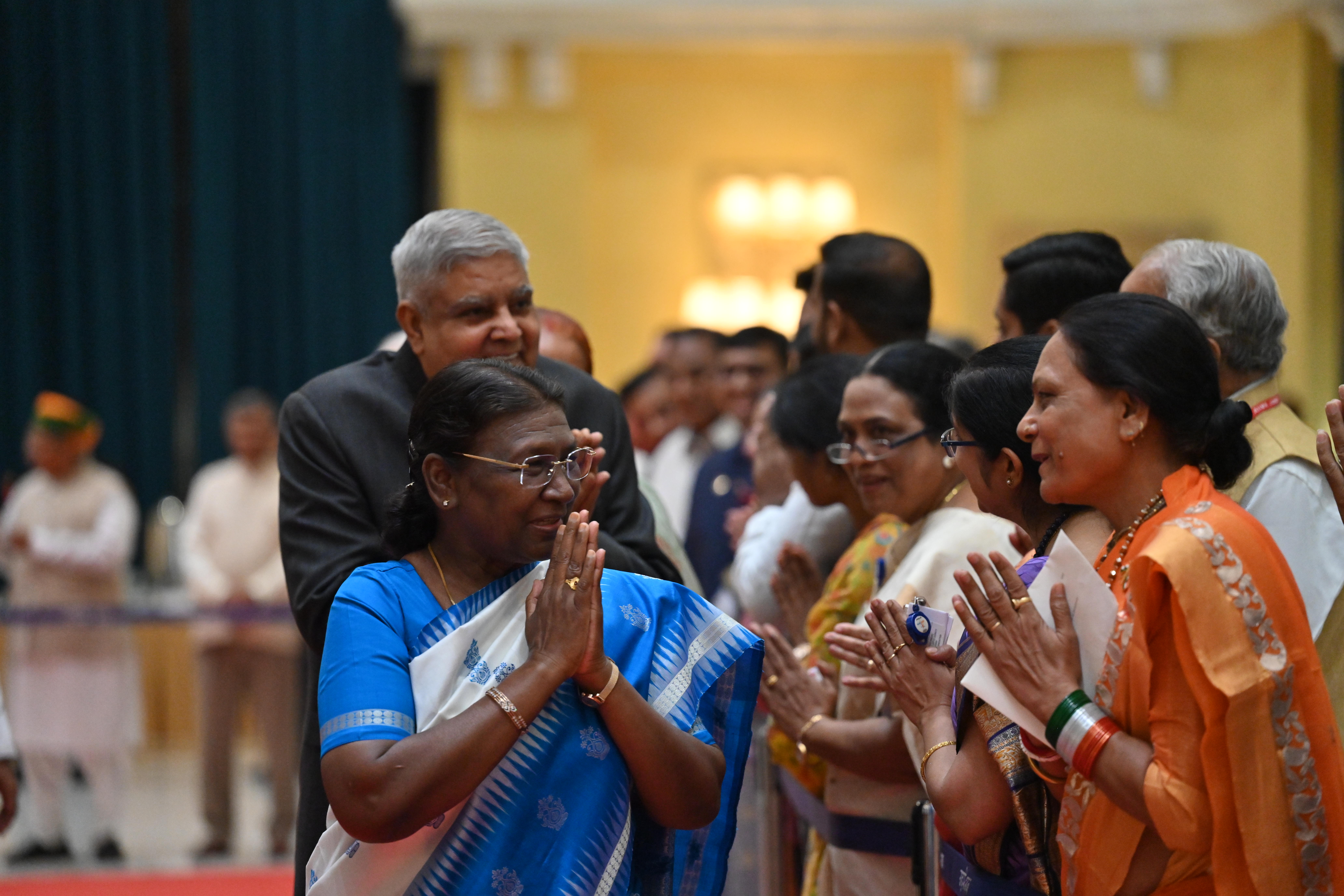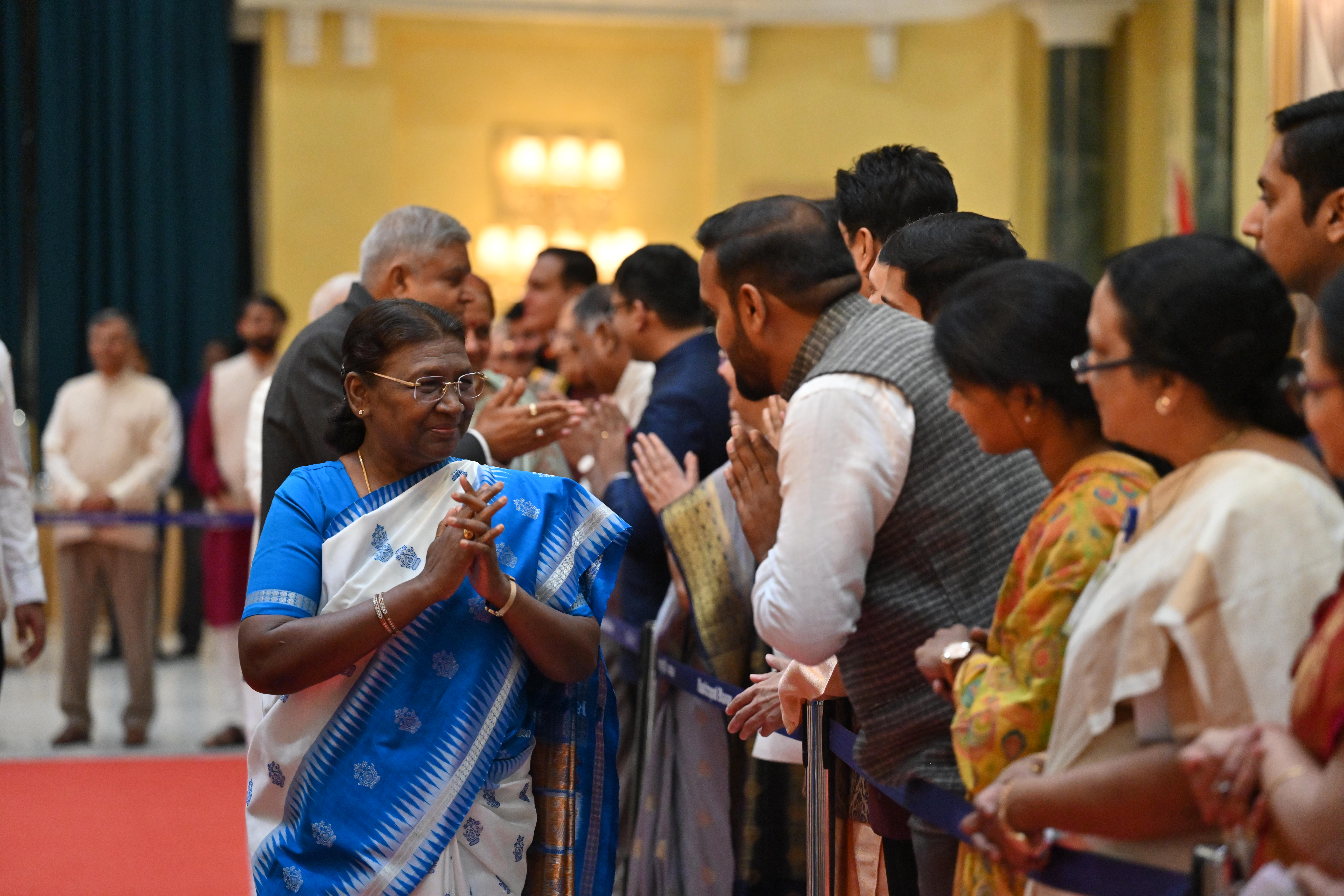 | Caption: | The President of India, Smt. Droupadi Murmu on At Home on the occasion of Independence Day 15-08-2023 |
