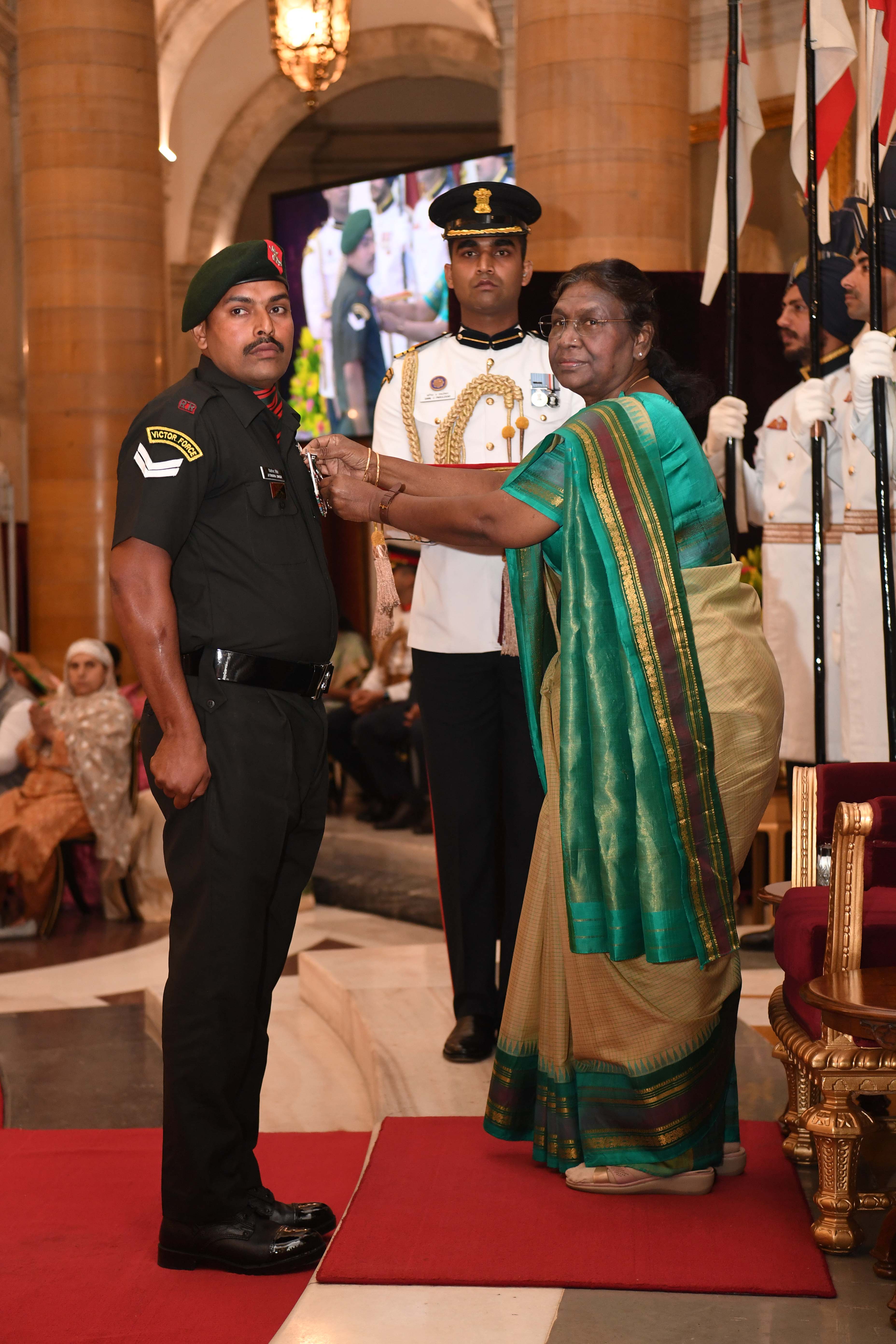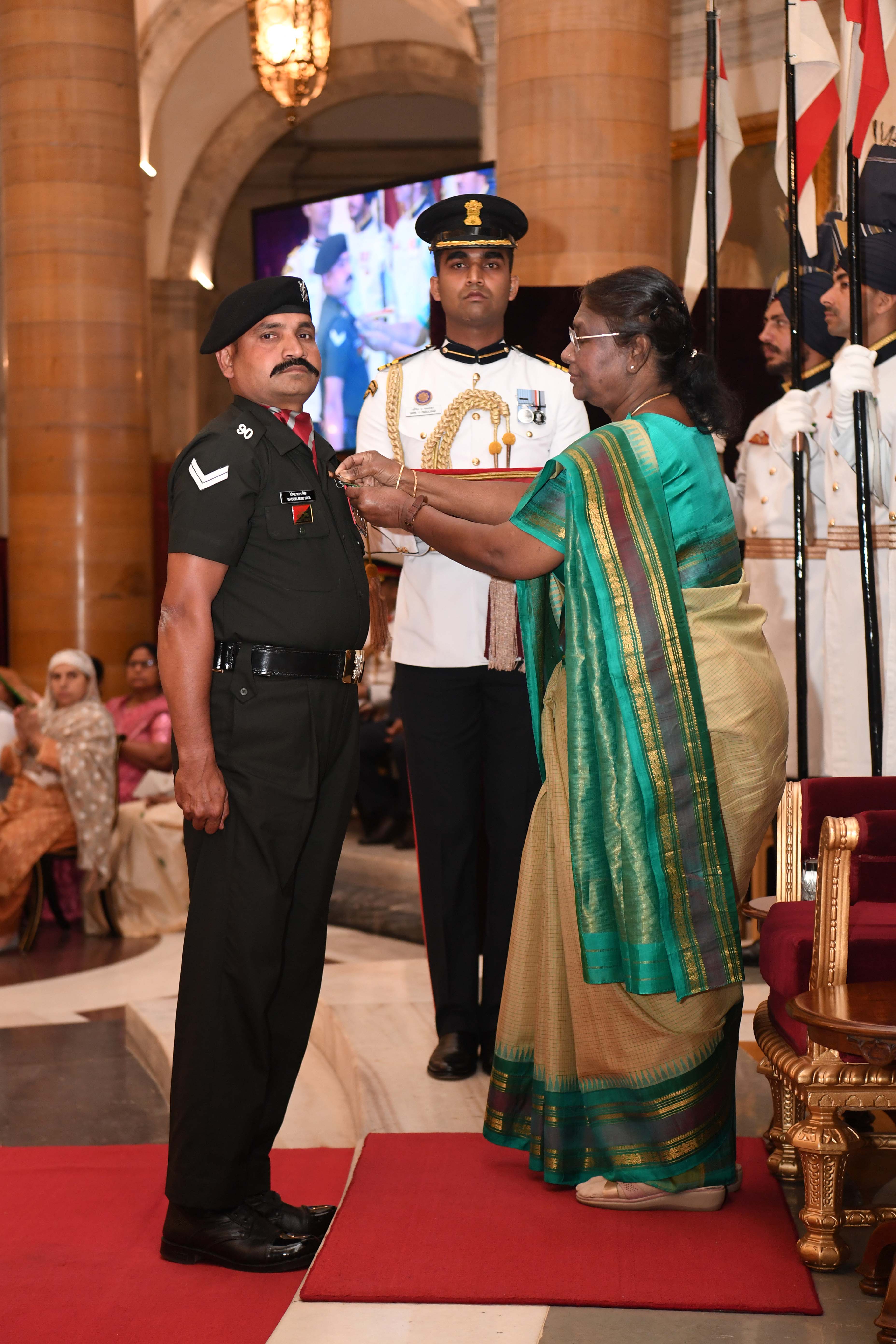 | Caption: | The President of India, Smt Droupadi Murmu presented Gallantry Awards at the Defence Investiture Ceremony-I 2023 held at Rashtrapati Bhavan on May 9, 2023. |