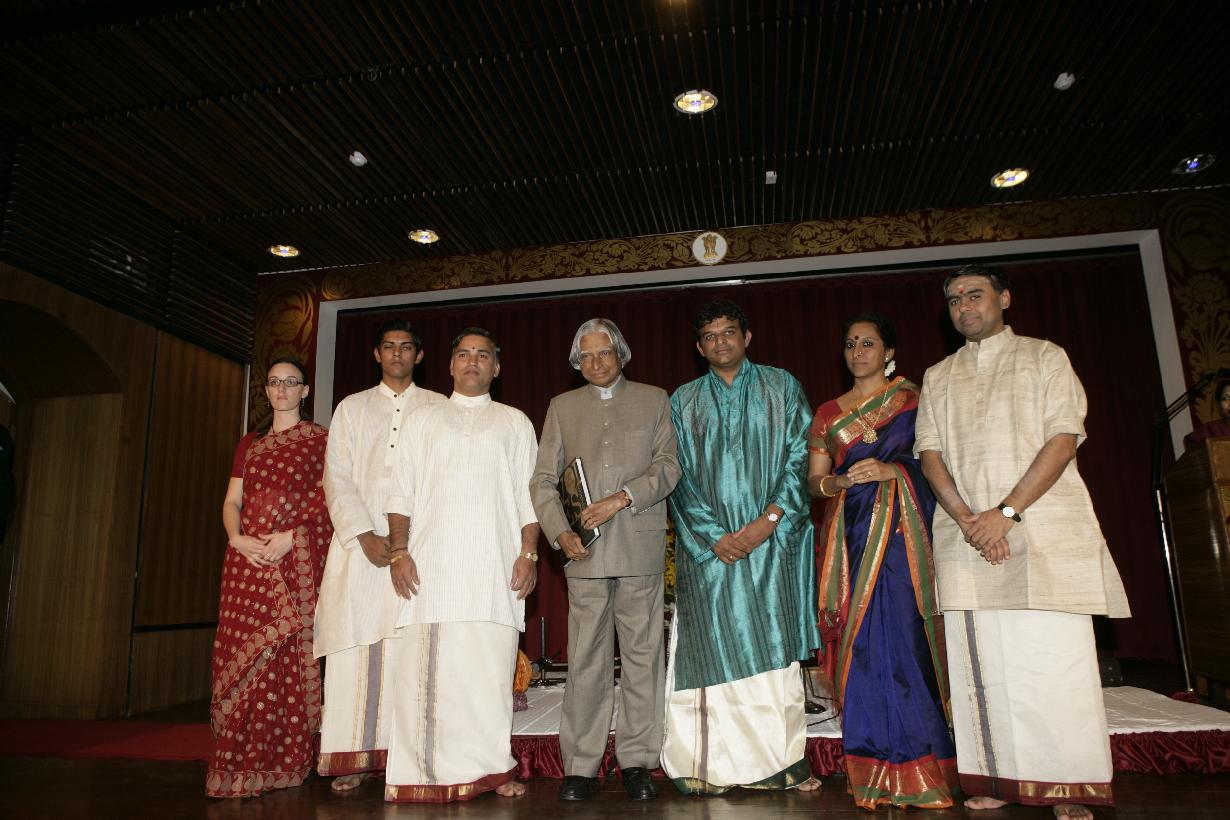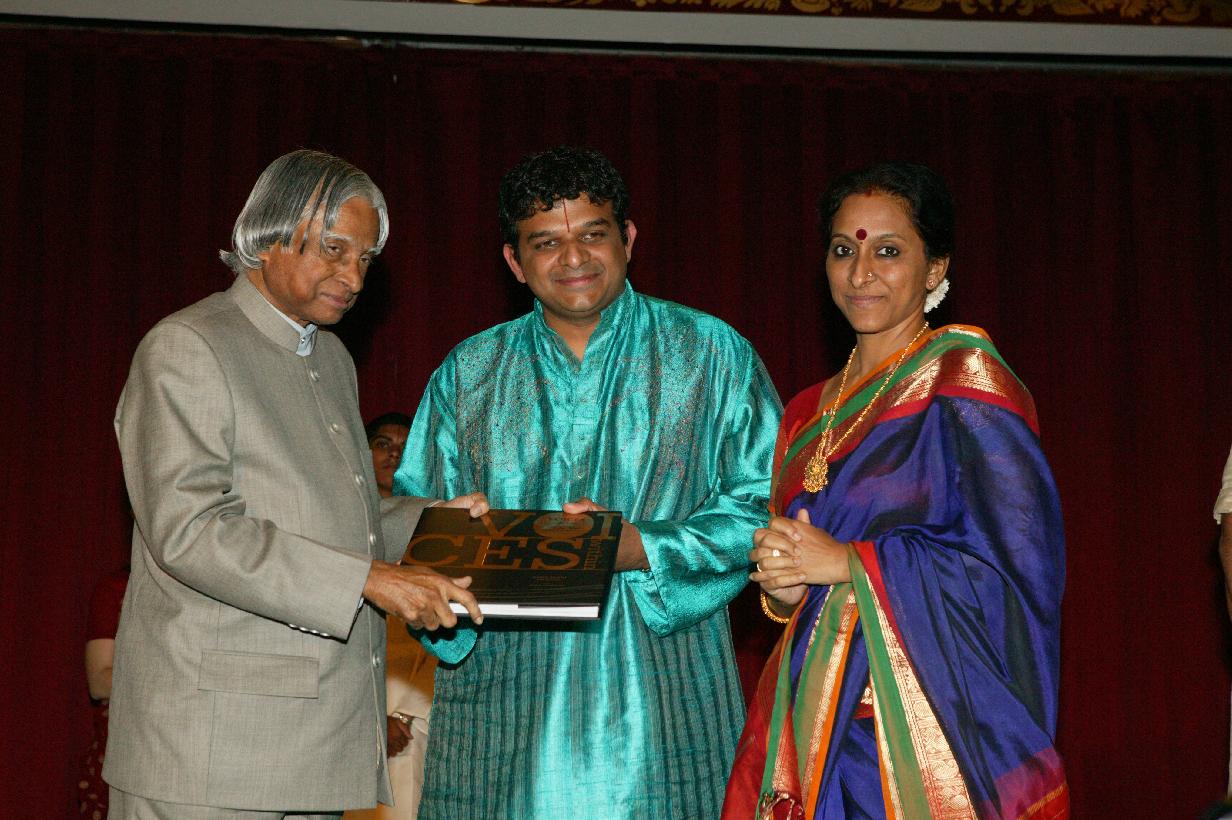 | Caption: | The President of India, Dr A P J Abdul Kalam at the Musical Tribute to the Legends of Carnatic Music by Carnatic Classical Vocalists, Ms Bombay Jayashri and Shri T M Krishna and receiving a Copy of the Book "Voices Within" at the Art Theatre of Rashtrapati Bhavan in New Delhi on Jan 12, 2007 |