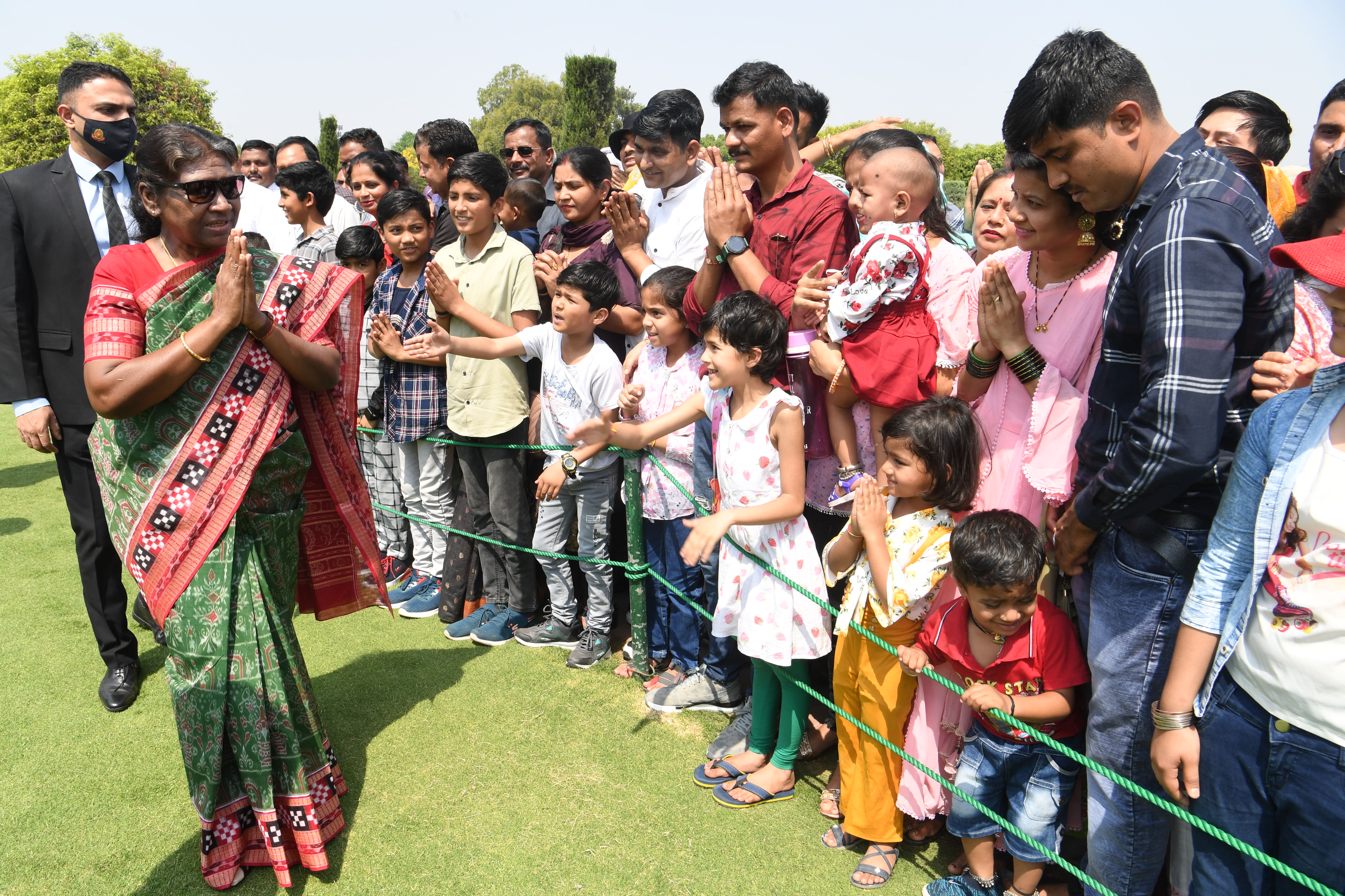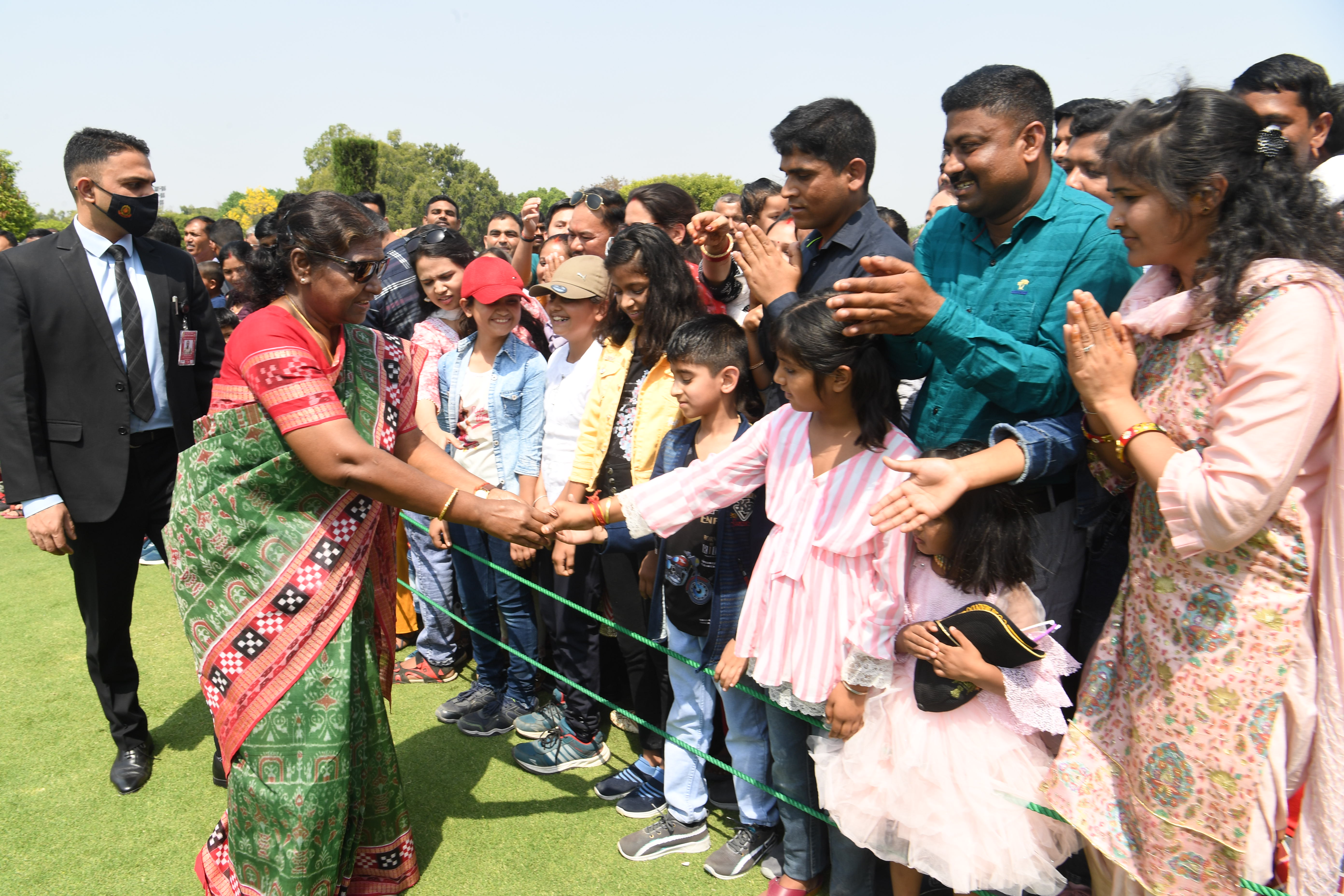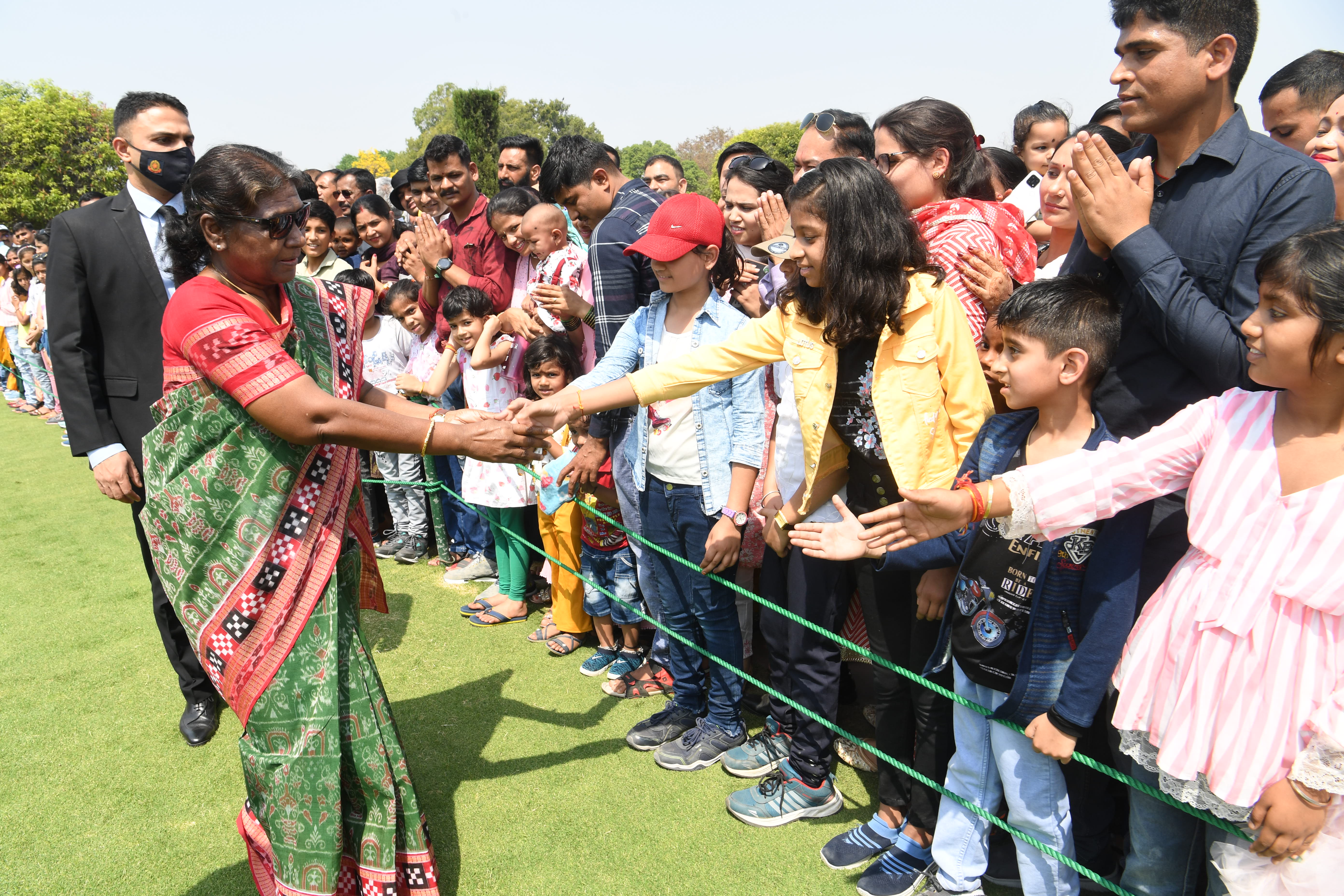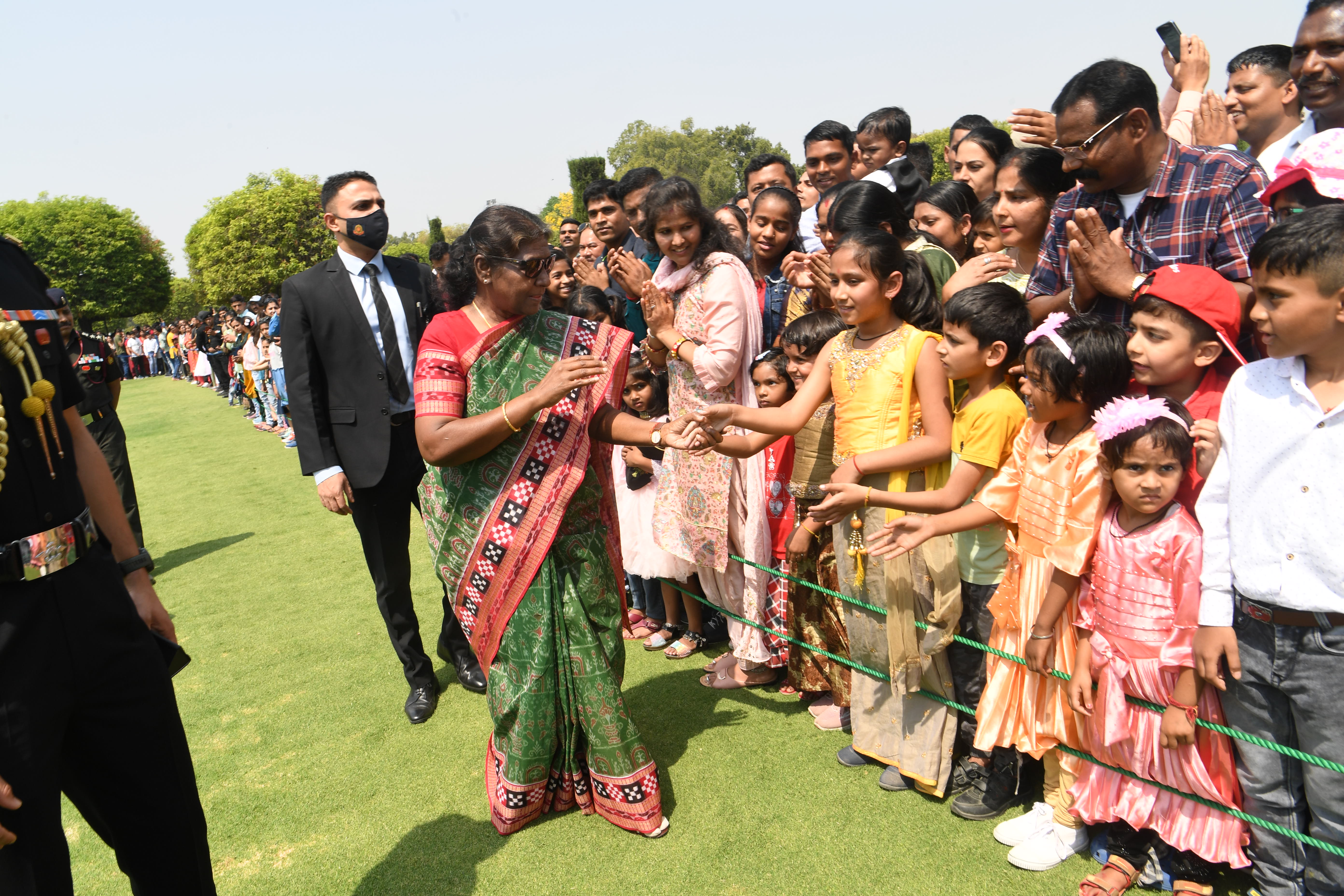 | Caption: | The President of India, Smt. Droupadi Murmu Interaction with the Personnel of Defence Forces and Personnel of Paramilitary Forces and Police at Rashtrapati Bhavan on March 30, 2023. |