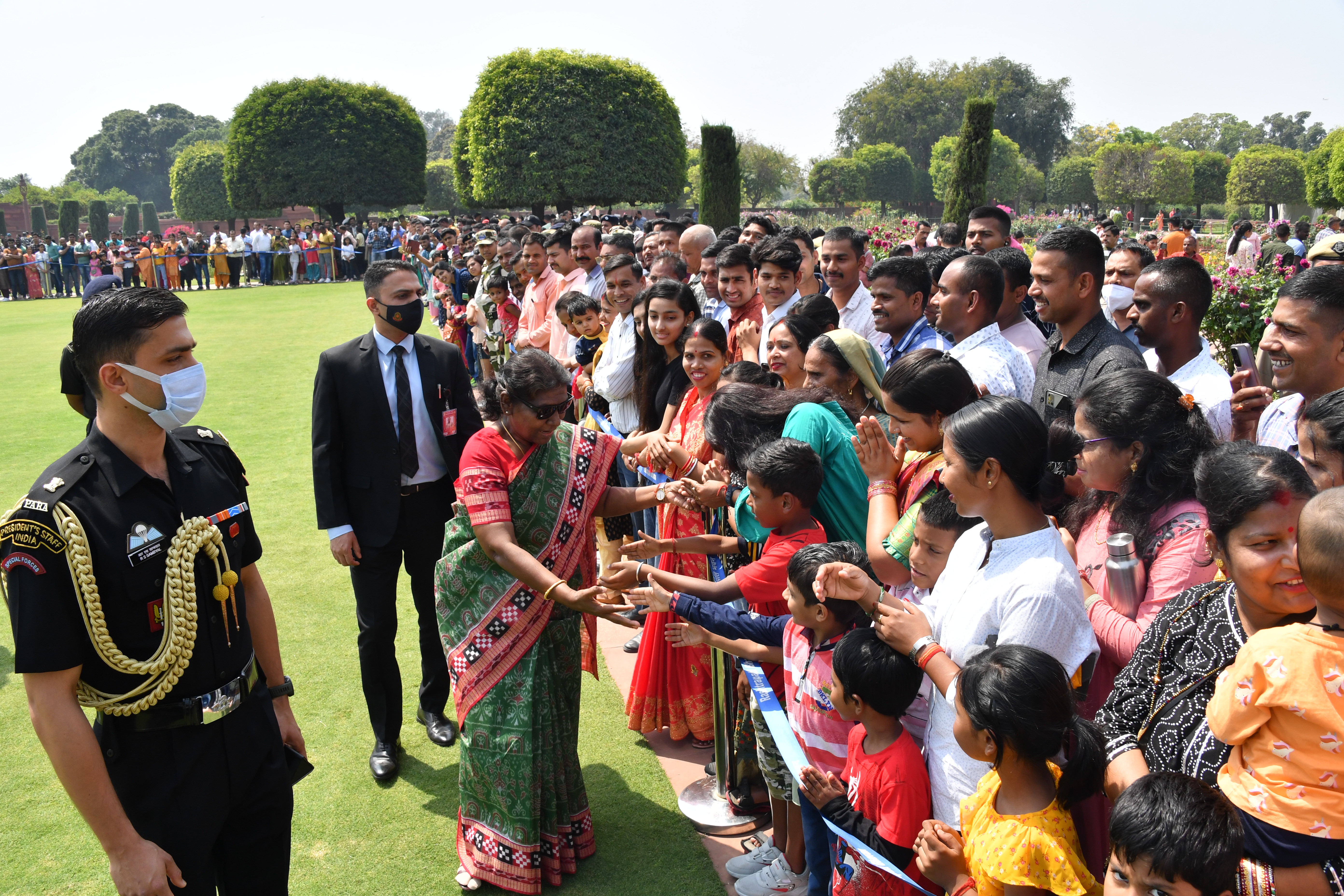 | Caption: | The President of India, Smt. Droupadi Murmu Interaction with the Personnel of Defence Forces and Personnel of Paramilitary Forces and Police at Rashtrapati Bhavan on March 30, 2023. |