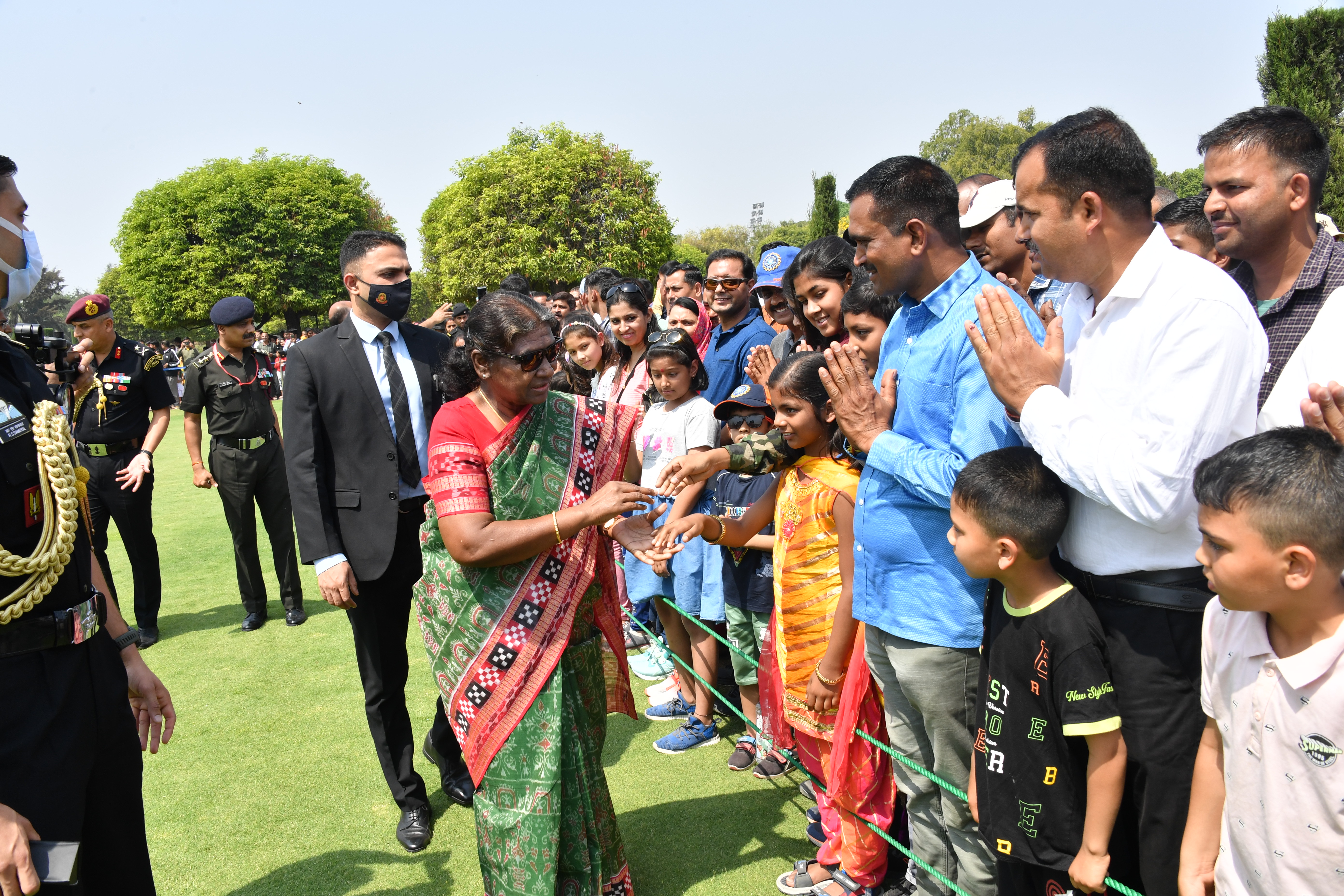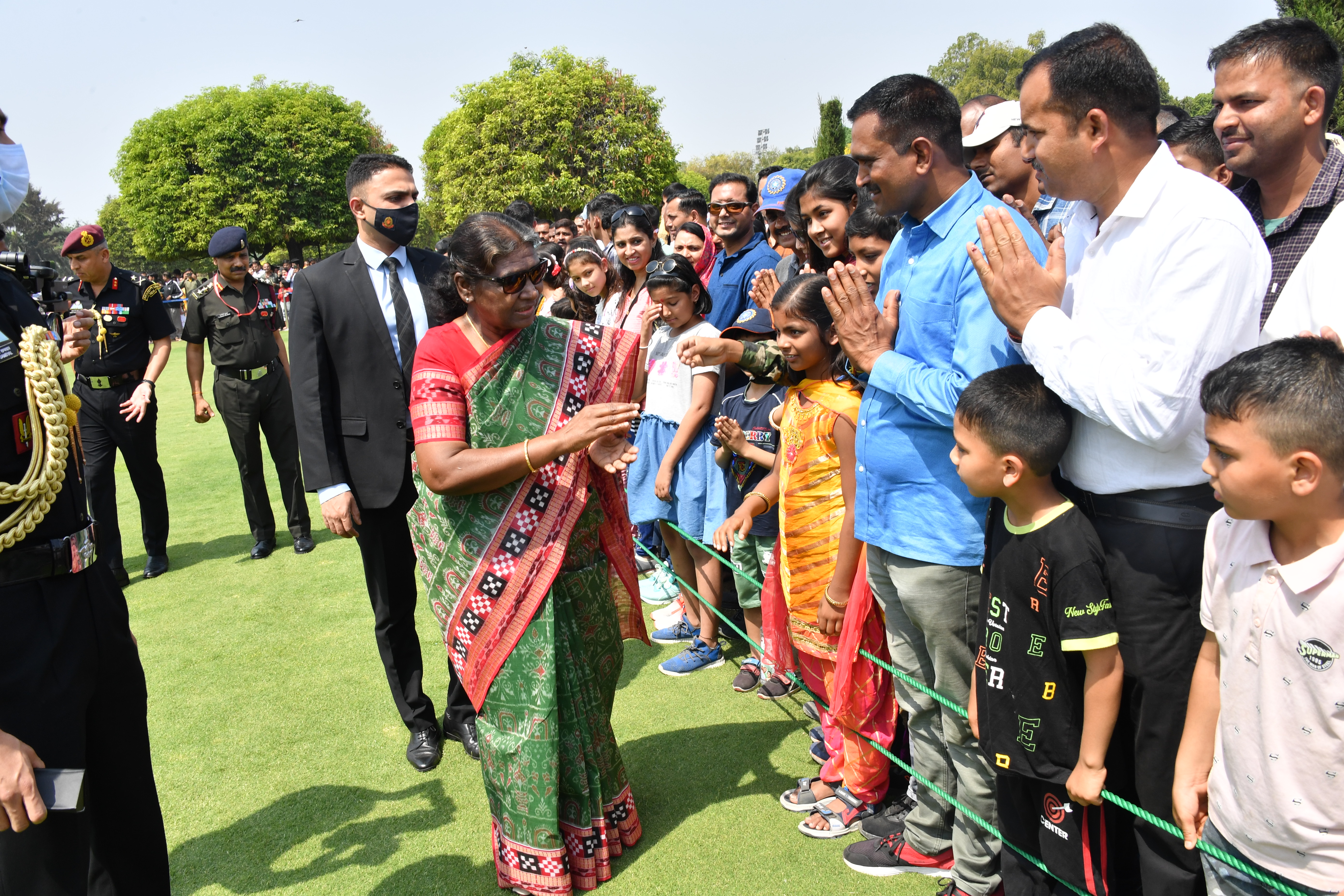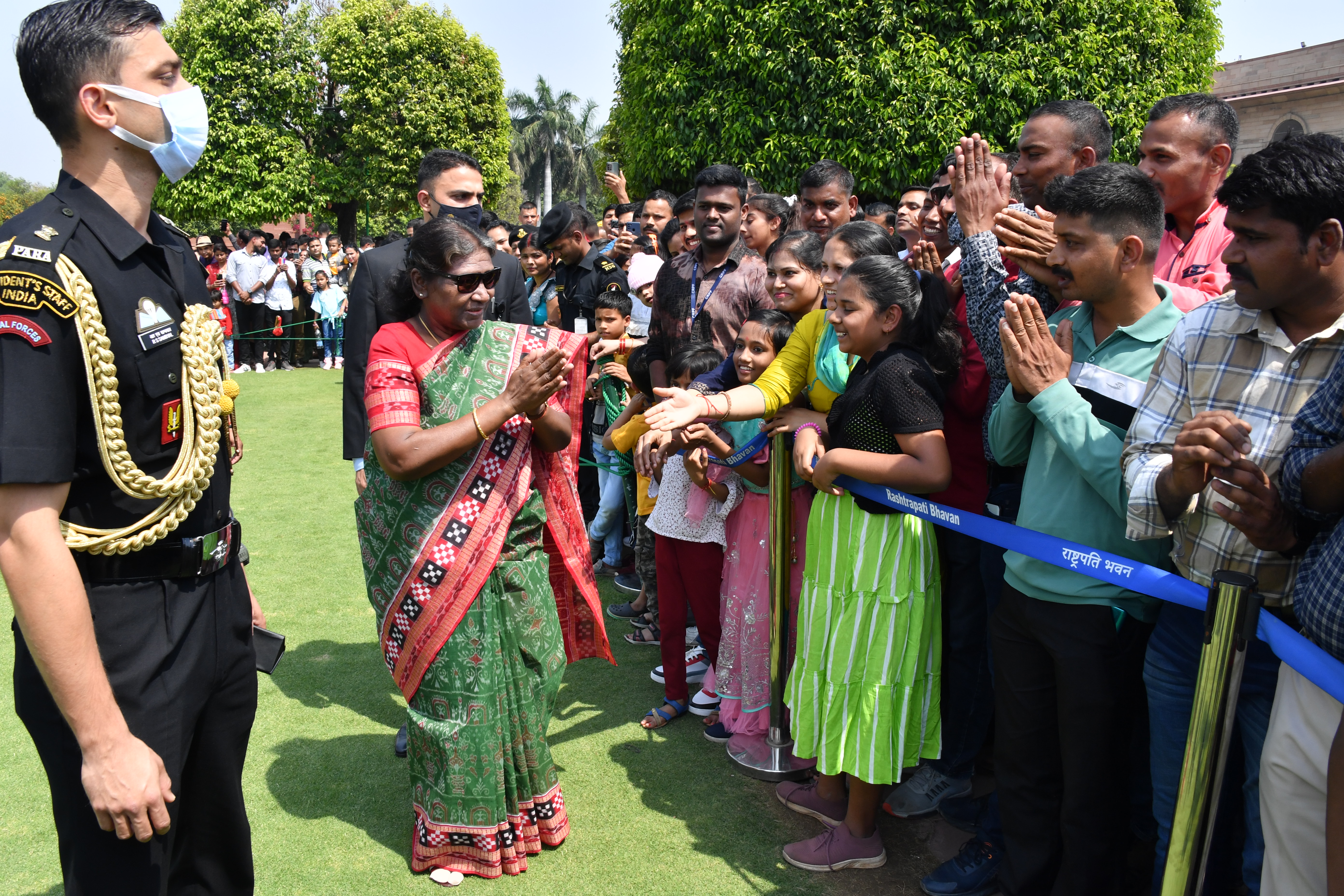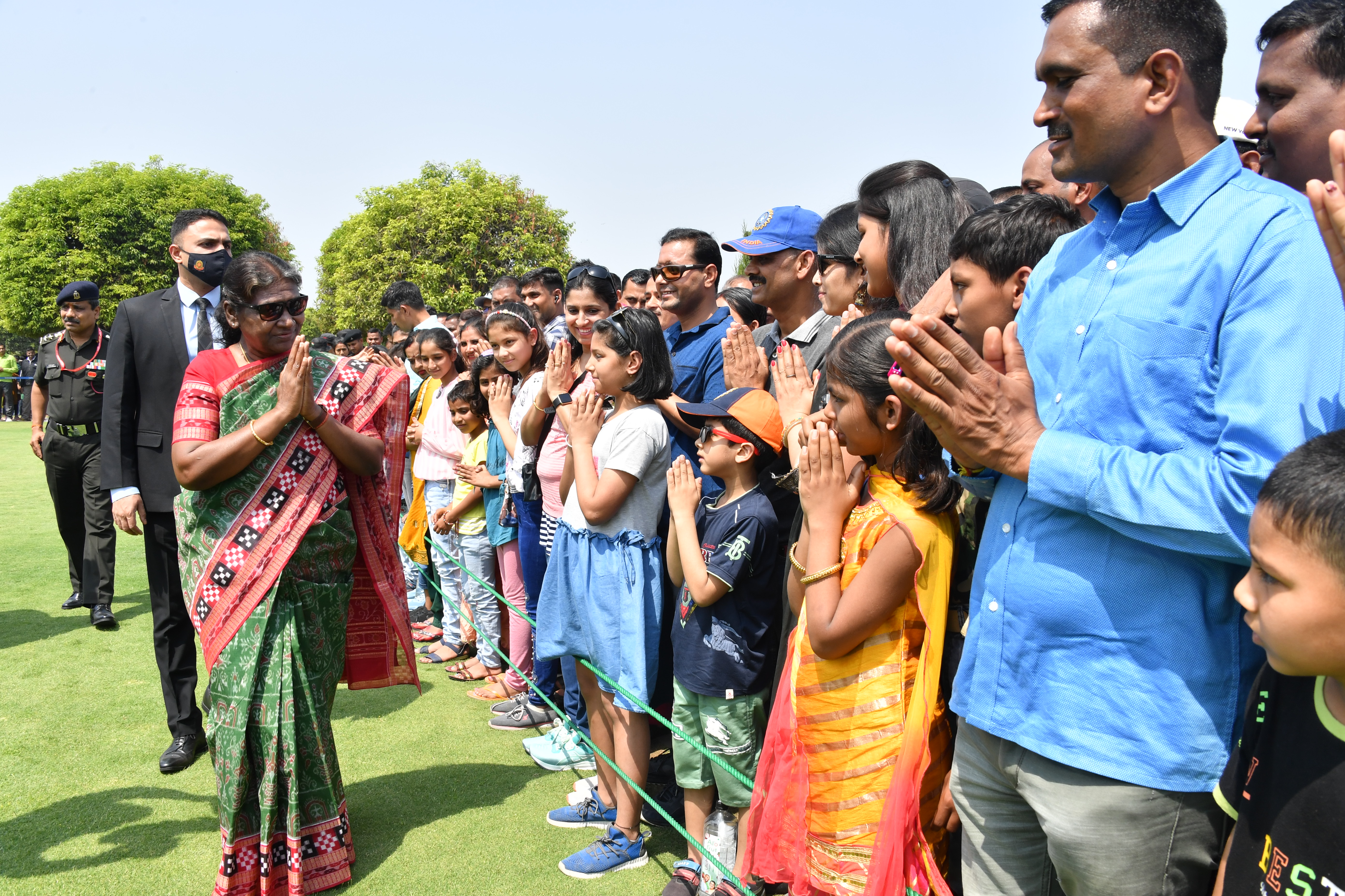 | Caption: | The President of India, Smt. Droupadi Murmu Interaction with the Personnel of Defence Forces and Personnel of Paramilitary Forces and Police at Rashtrapati Bhavan on March 30, 2023. |