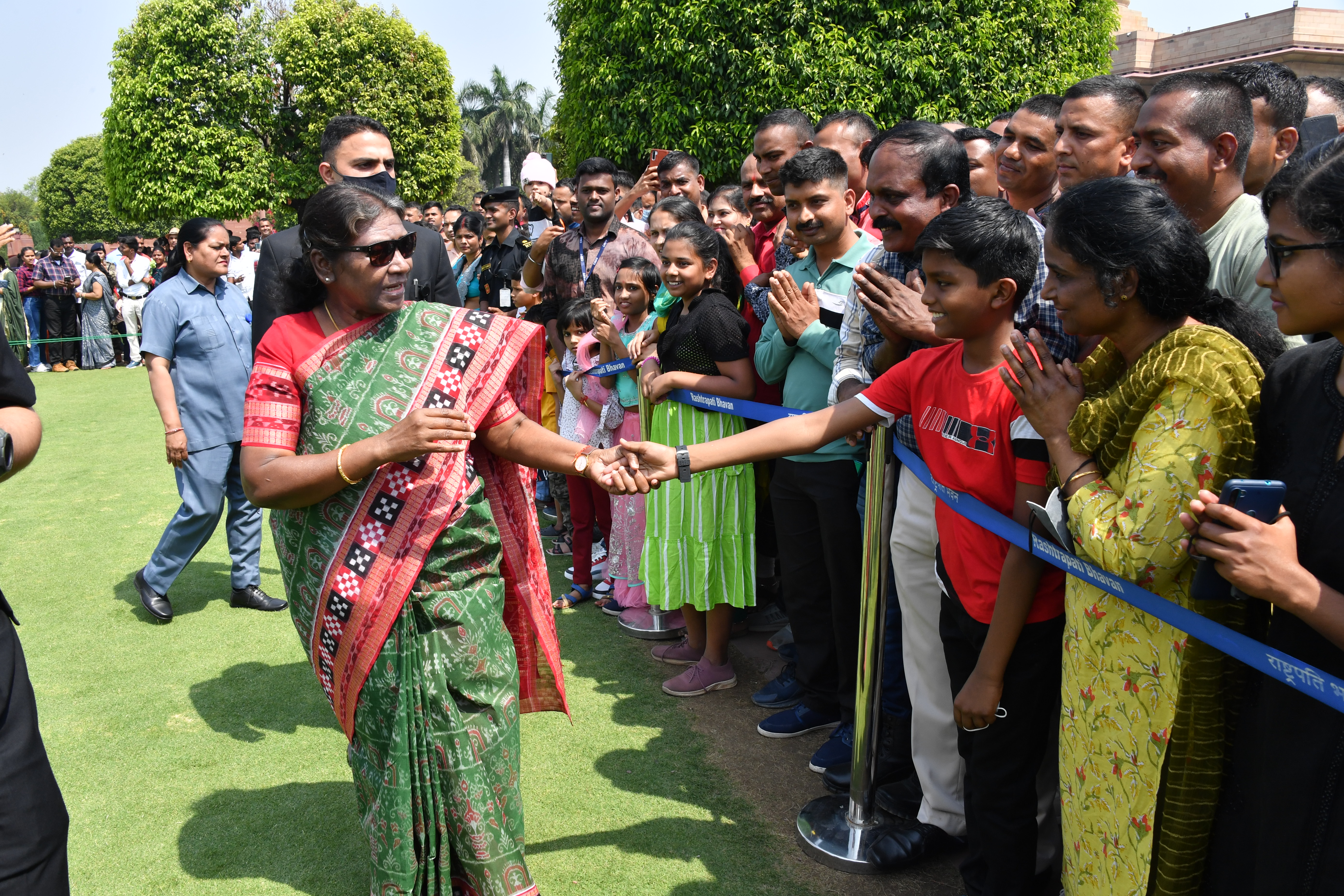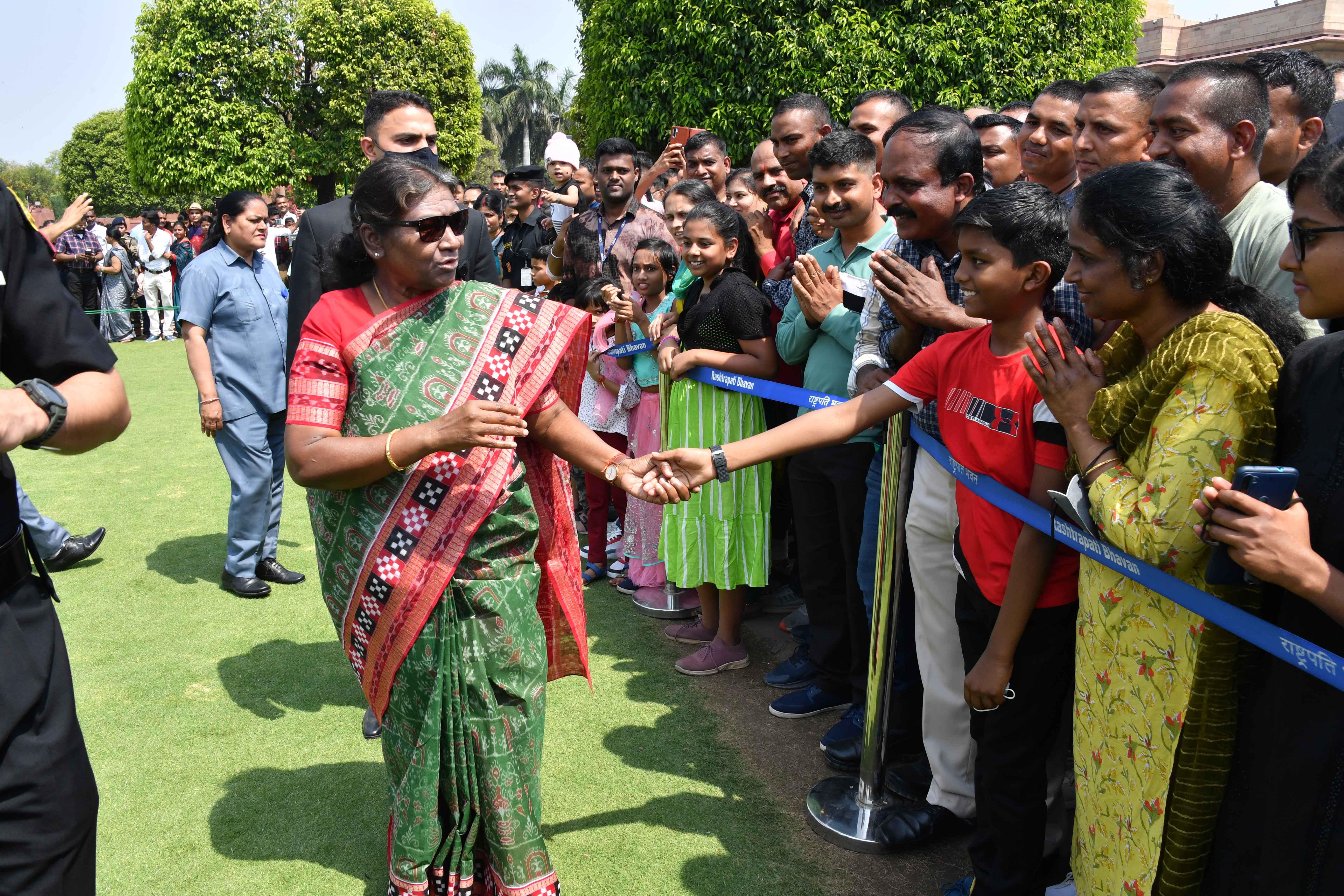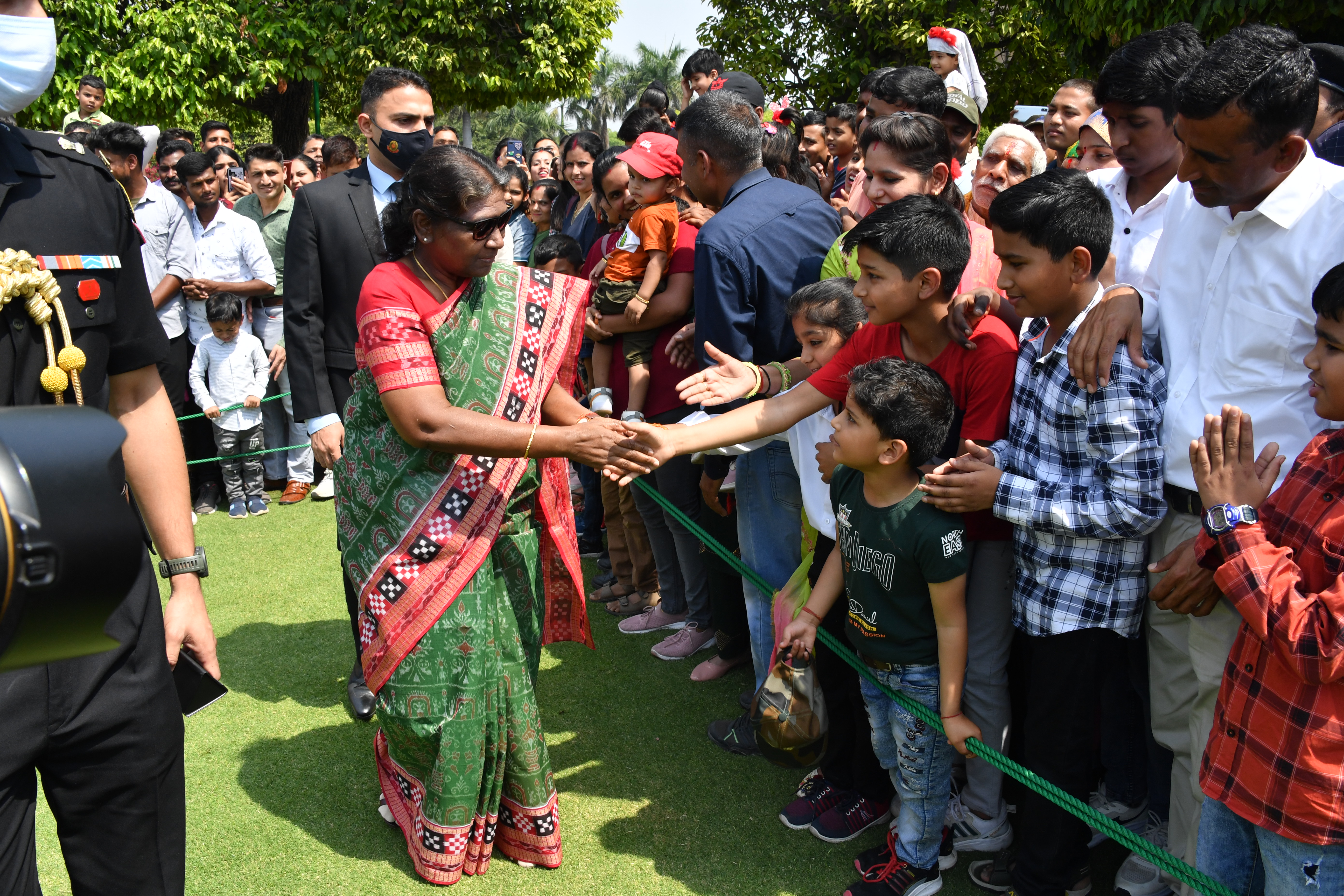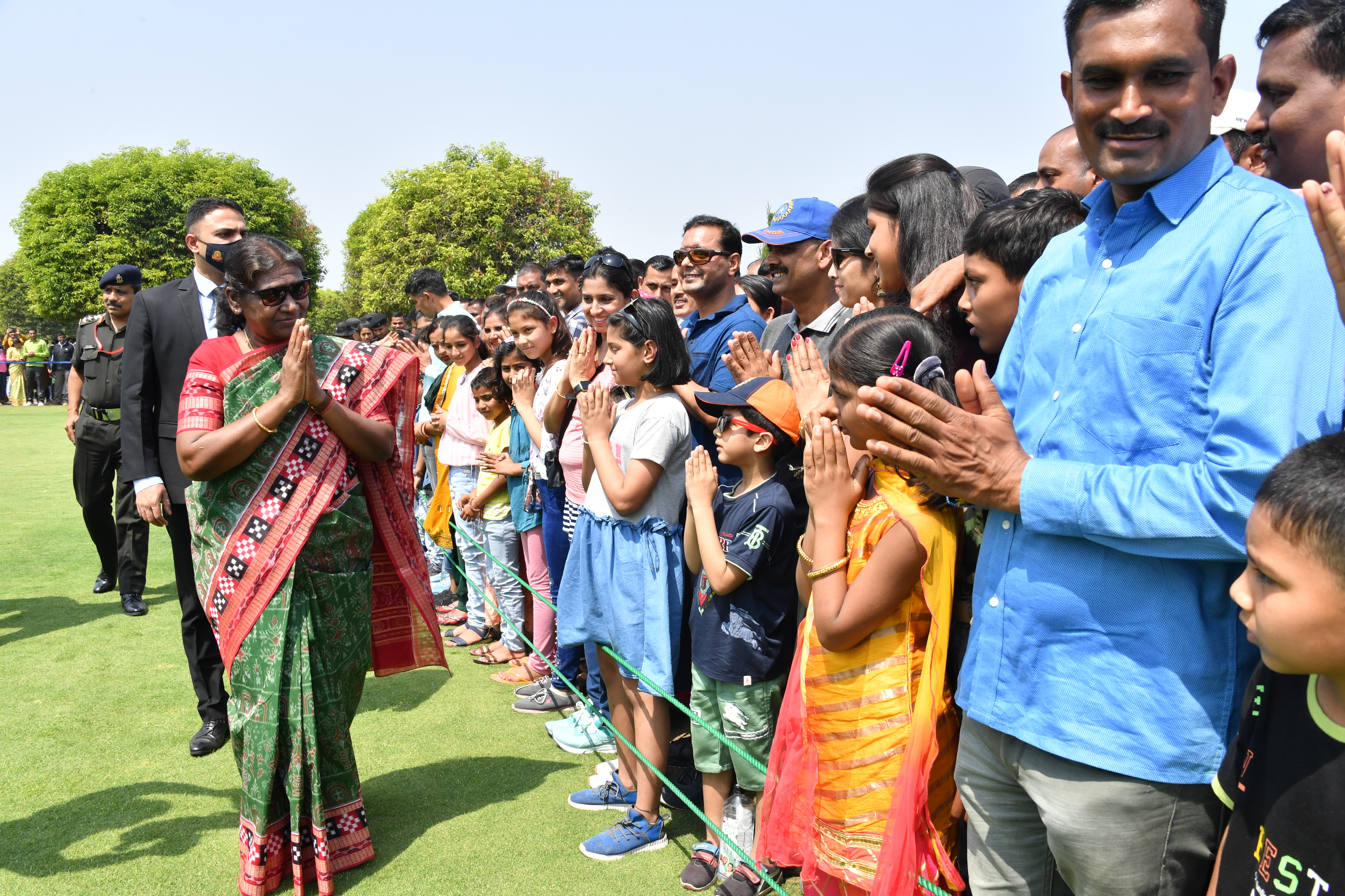 | Caption: | The President of India, Smt. Droupadi Murmu Interaction with the Personnel of Defence Forces and Personnel of Paramilitary Forces and Police at Rashtrapati Bhavan on March 30, 2023. |