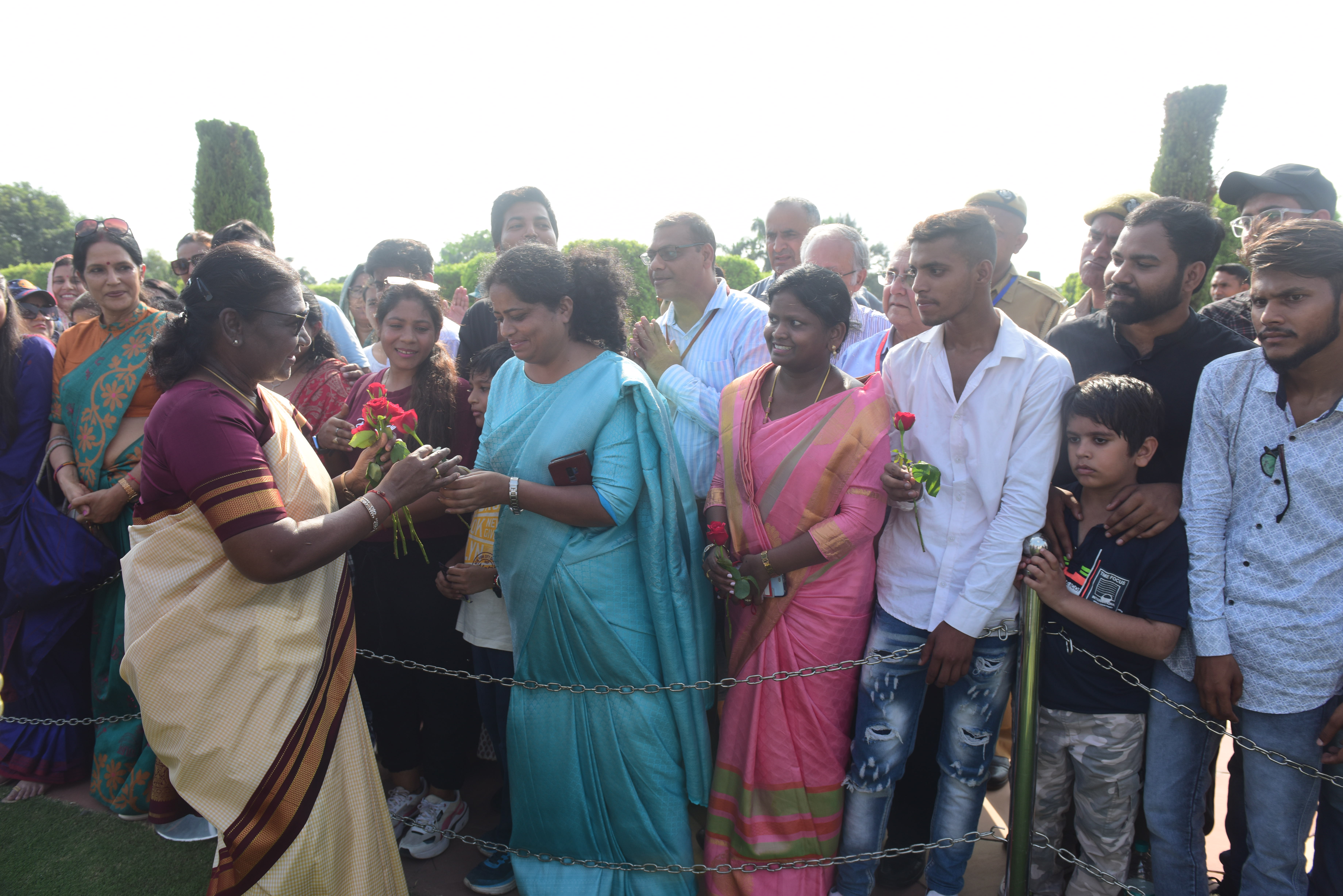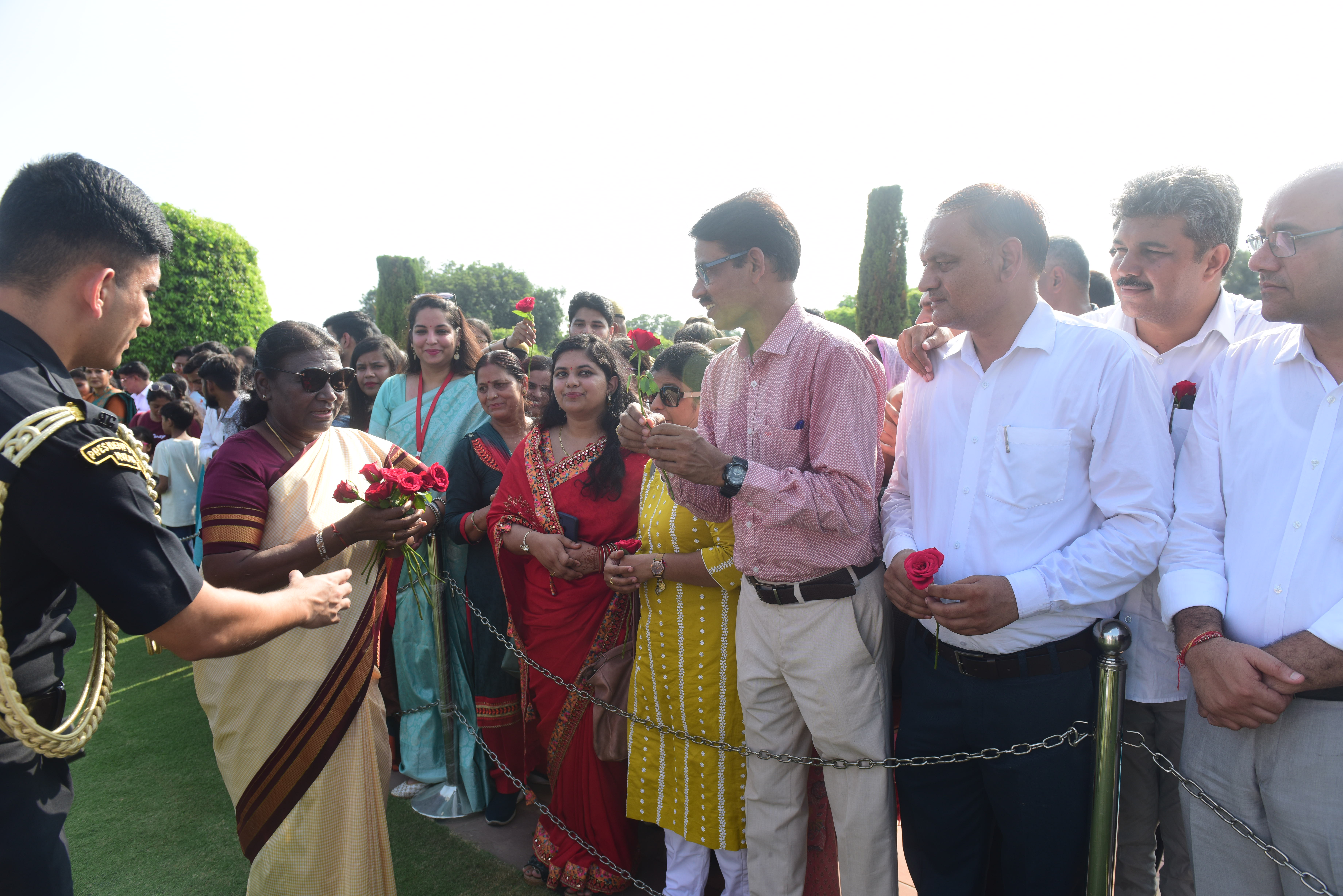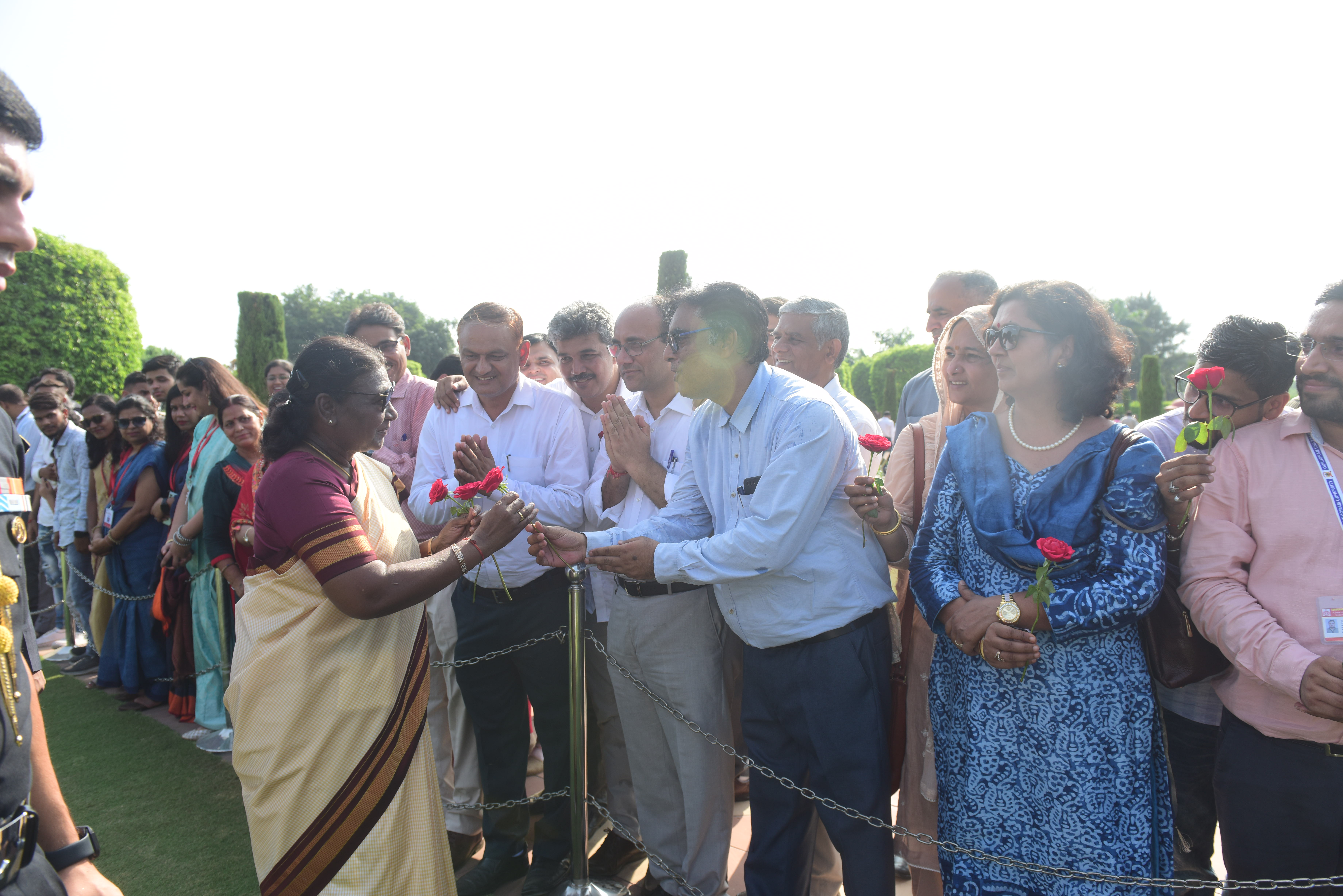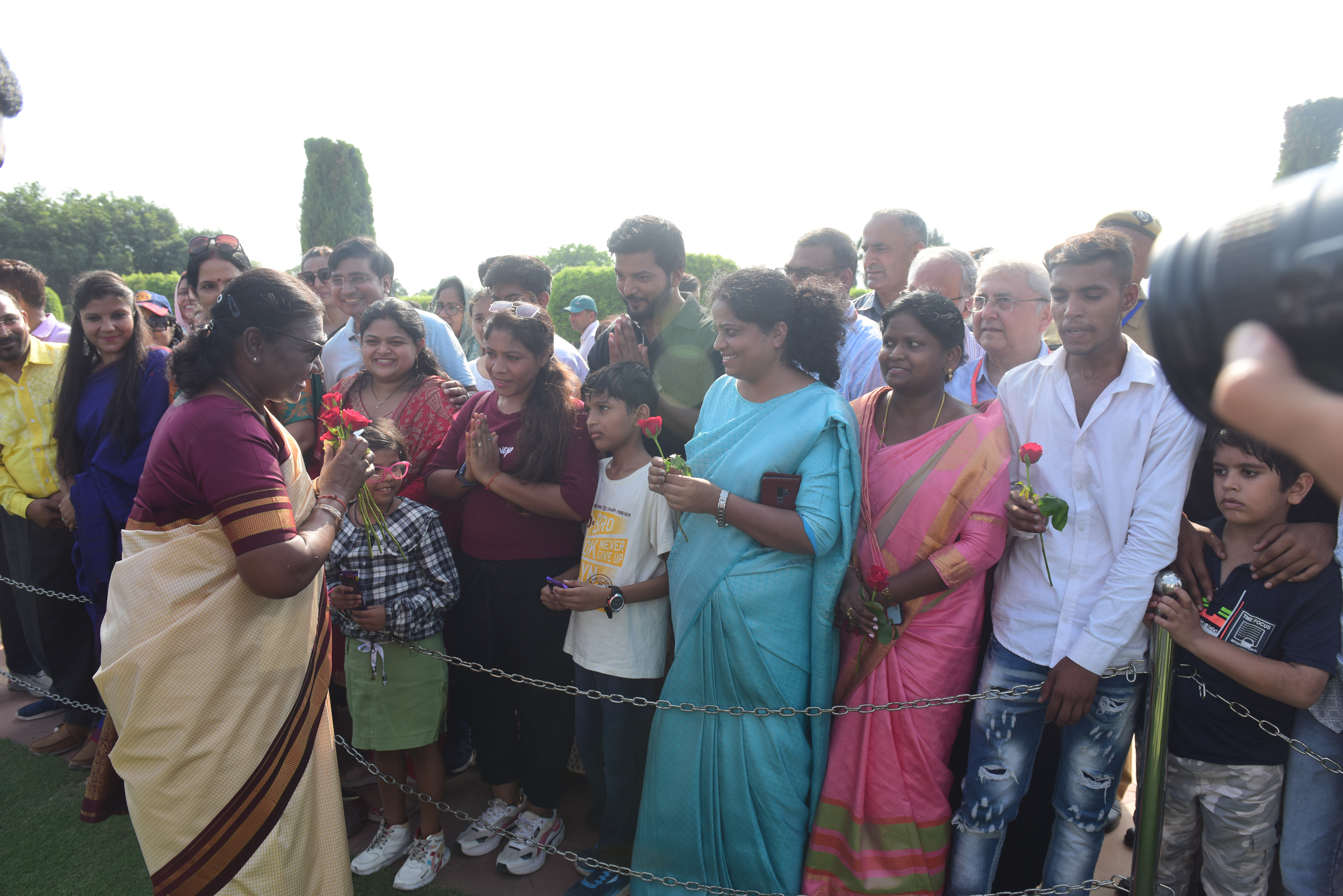 | Caption: | The President of India, Smt. Droupadi Murmu Interaction with the teachers invited to visit the Amrit Udyan as special invitees at Rashtrapati Bhavan on September 5, 2023. |