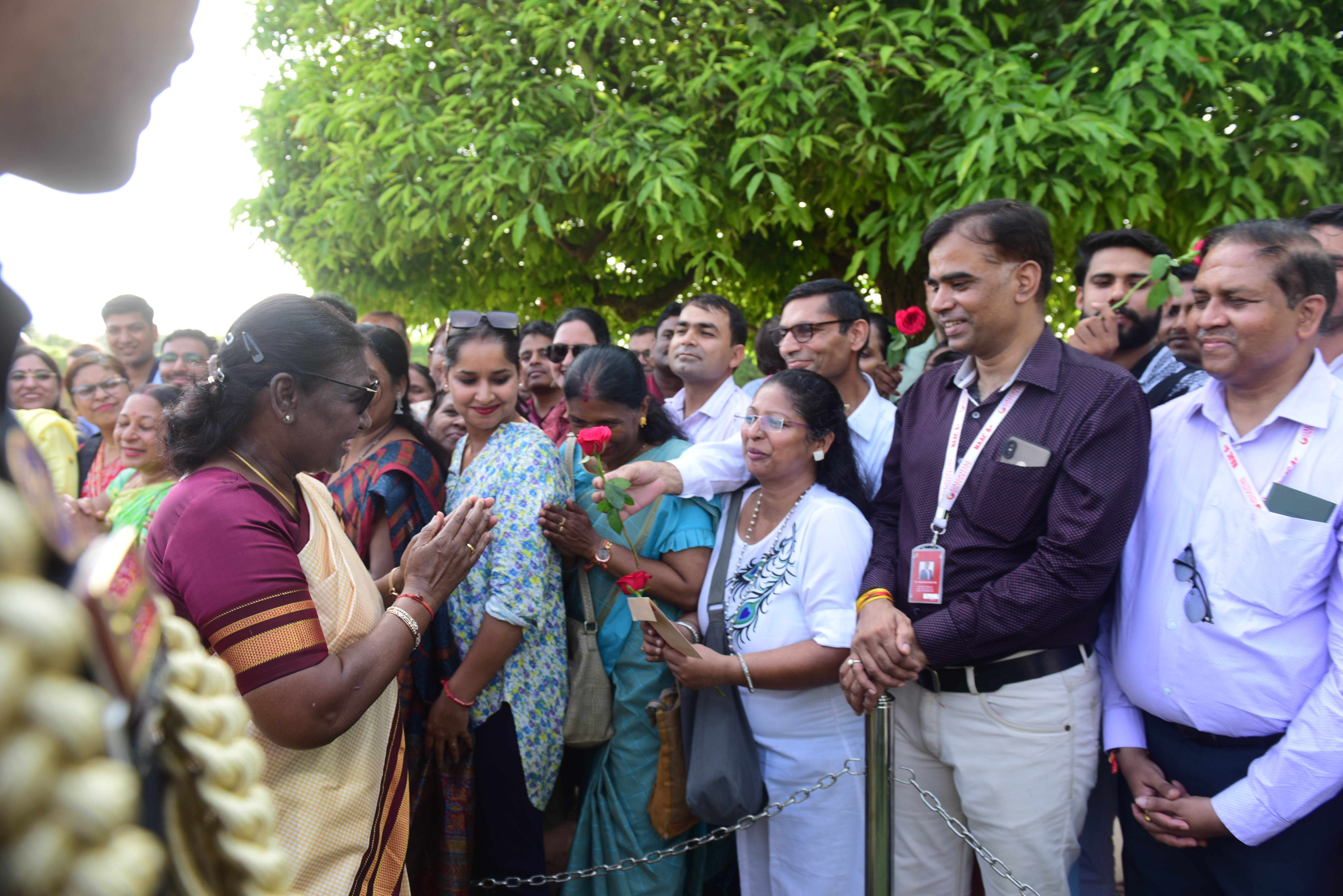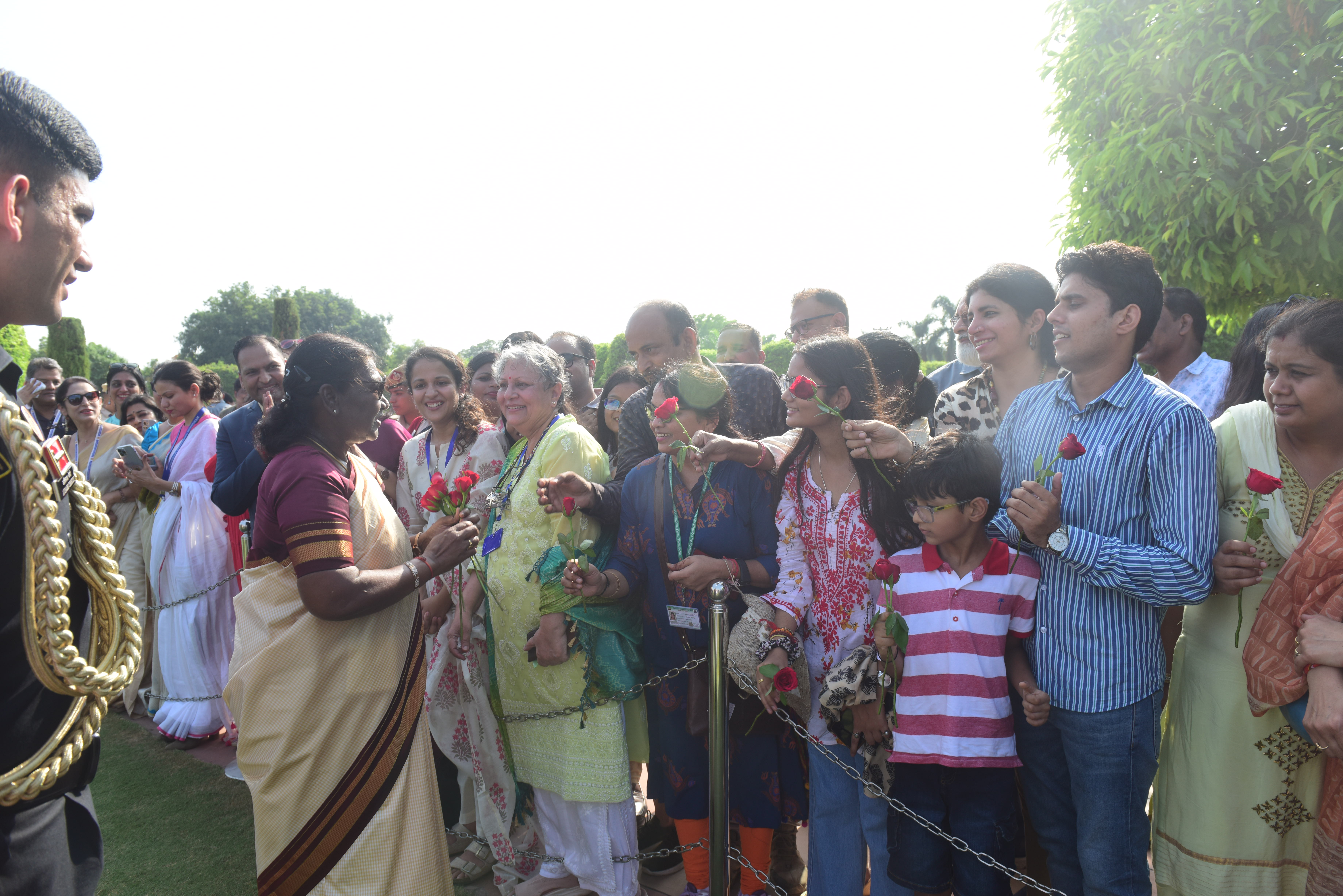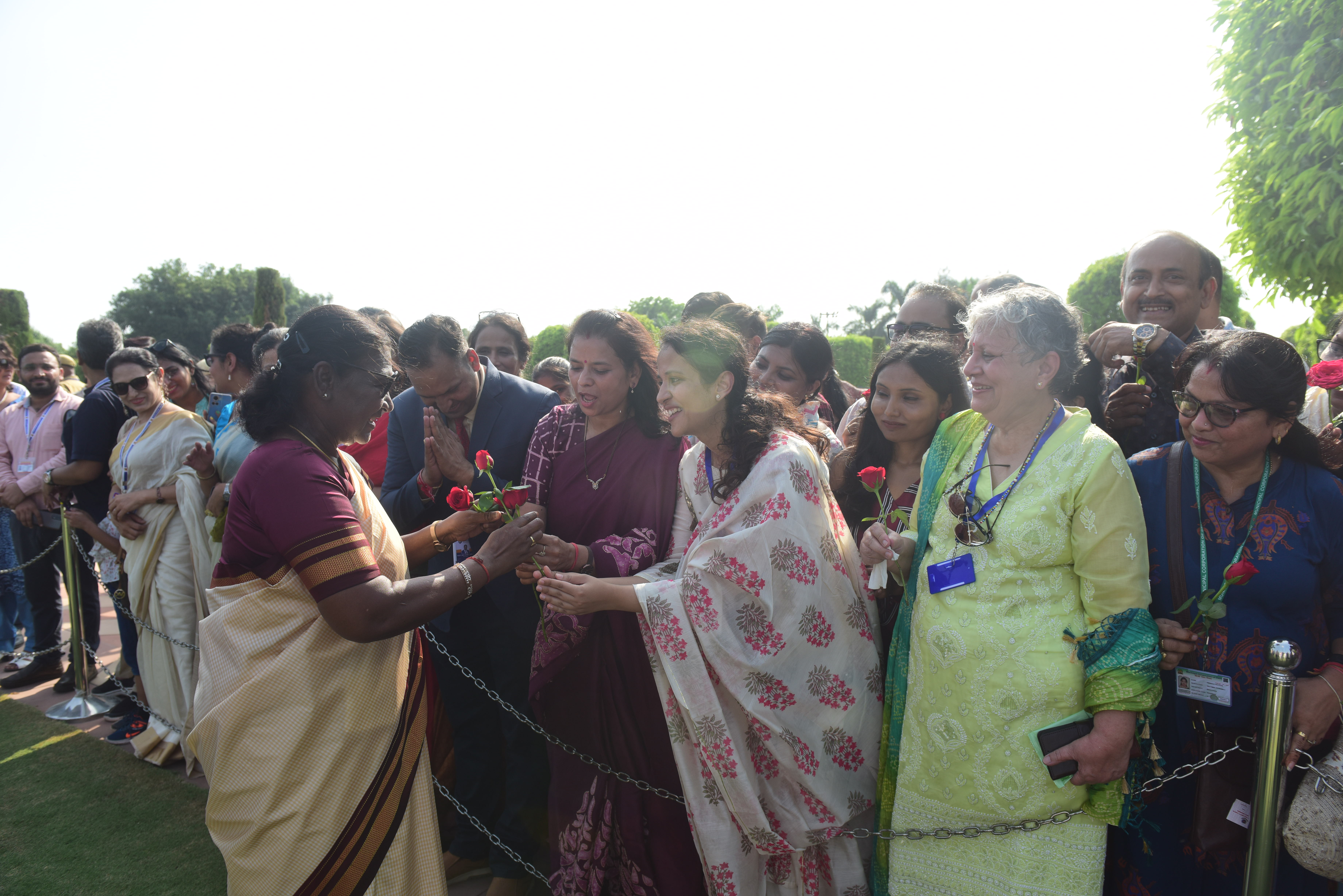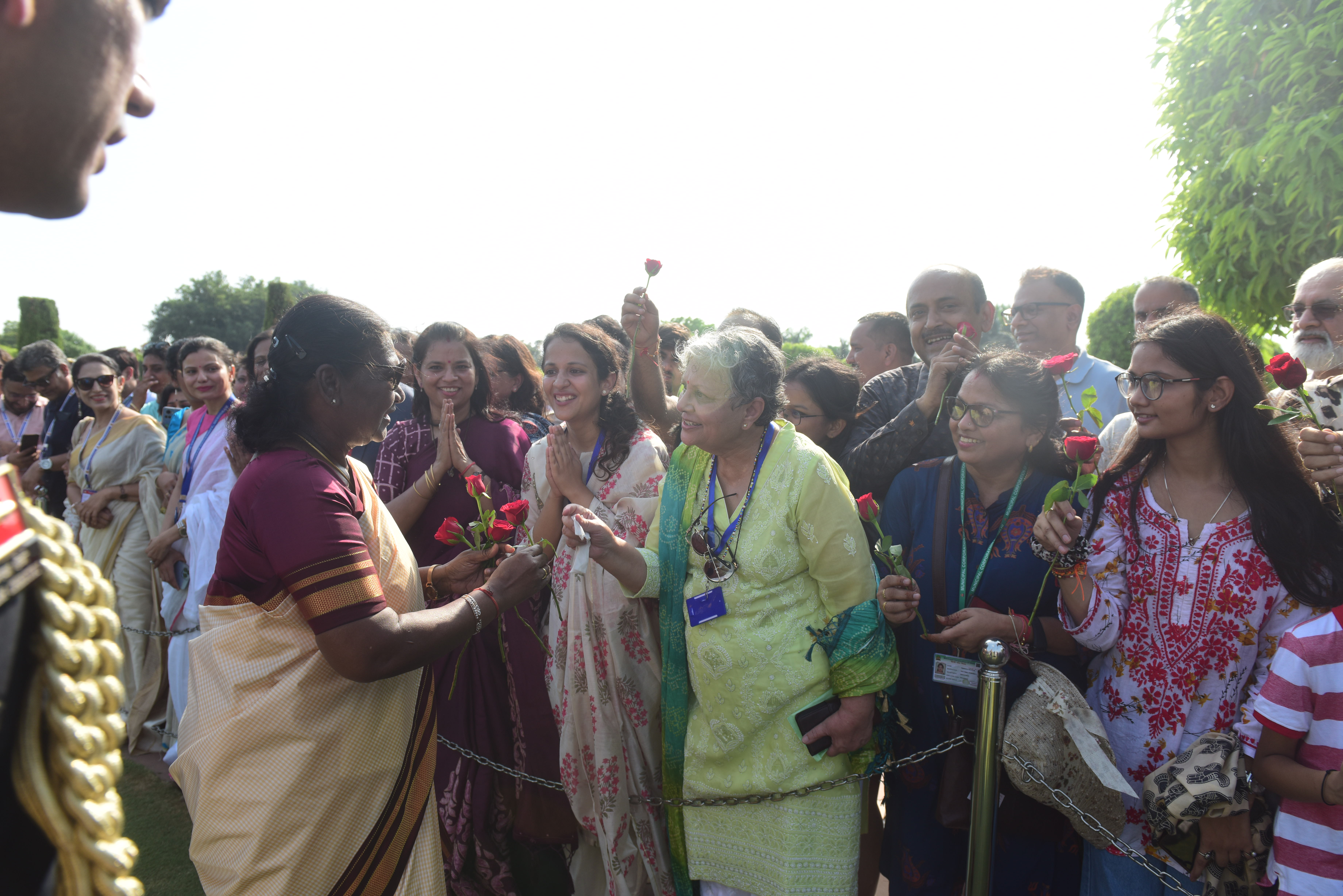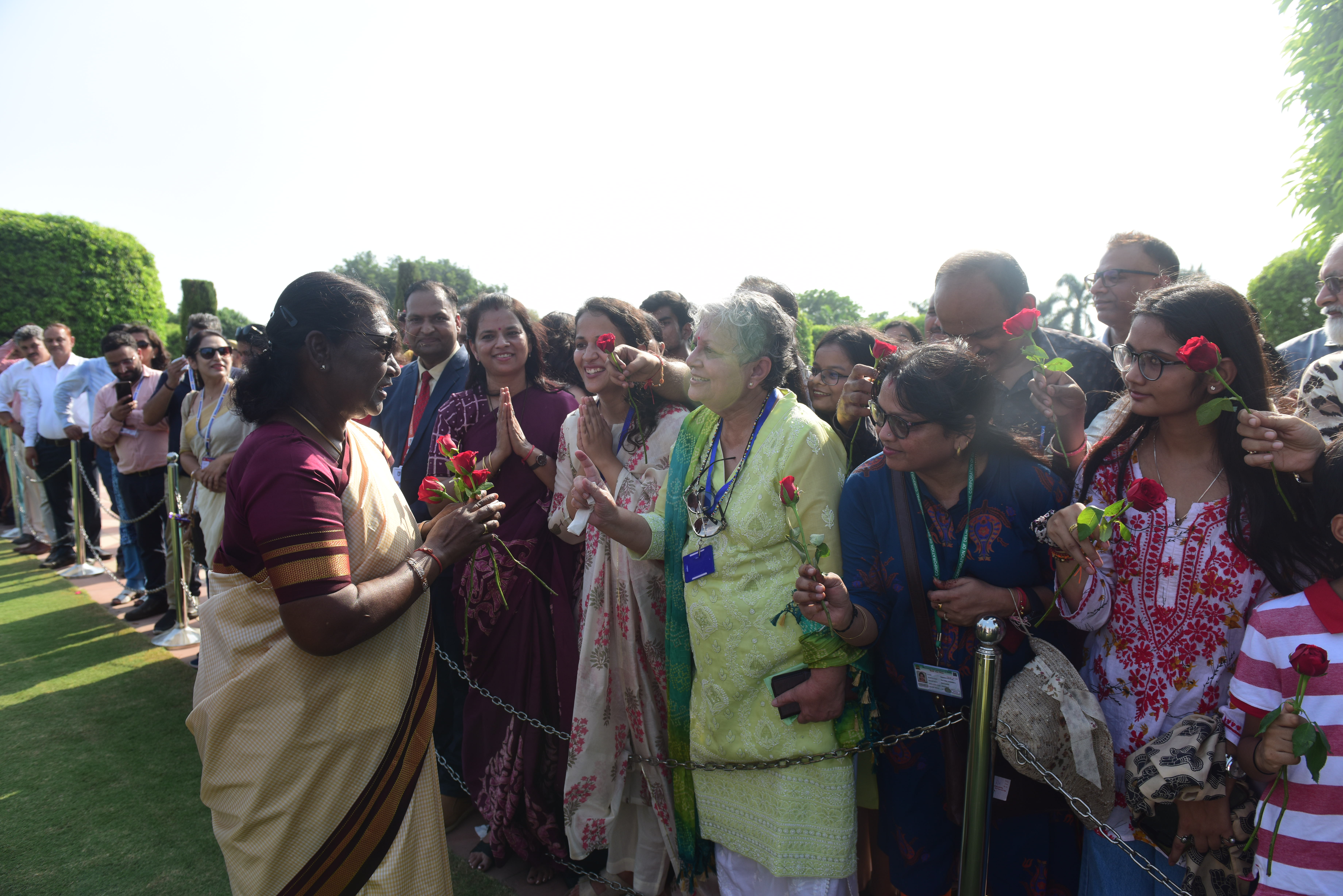 | Caption: | The President of India, Smt. Droupadi Murmu Interaction with the teachers invited to visit the Amrit Udyan as special invitees at Rashtrapati Bhavan on September 5, 2023. |