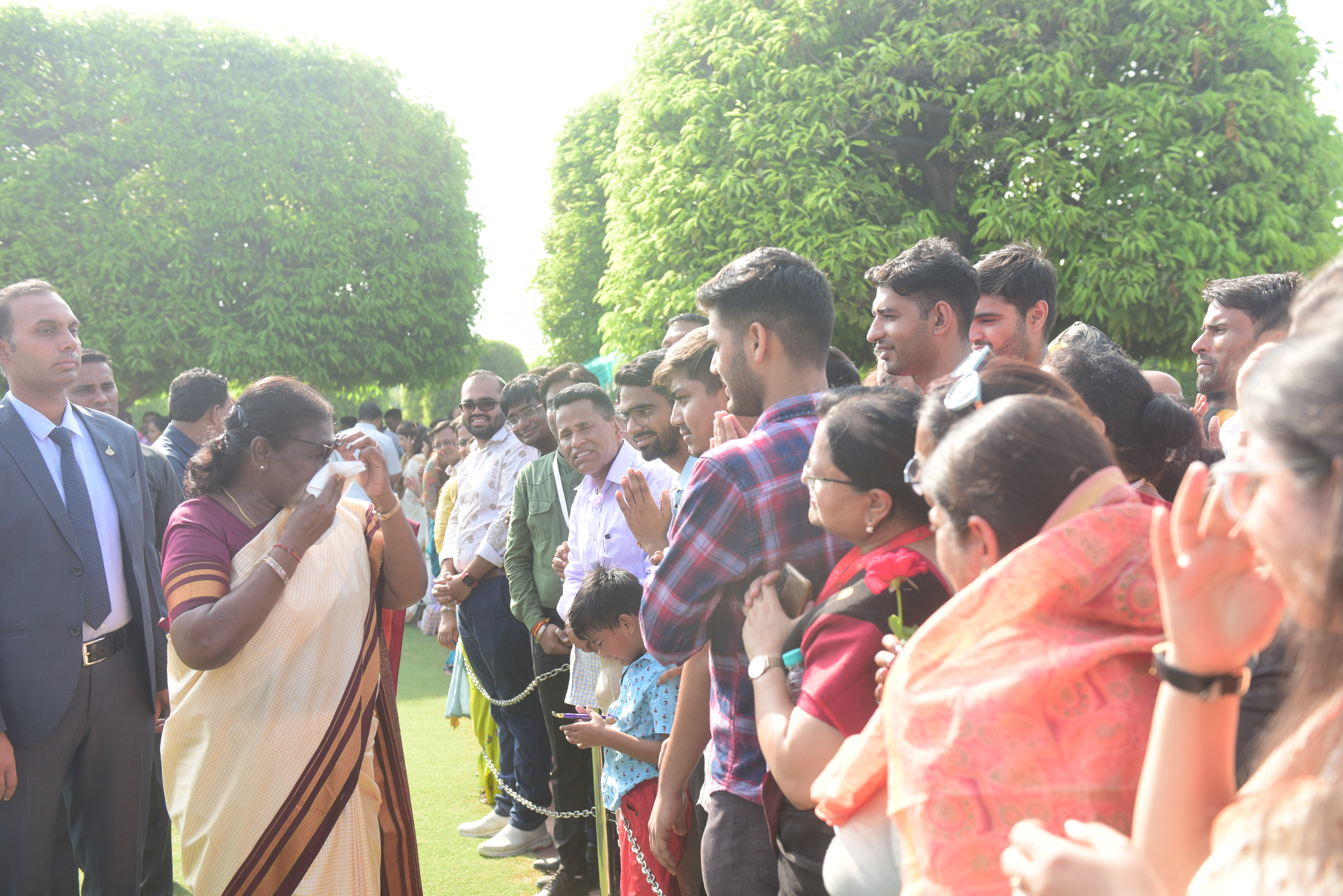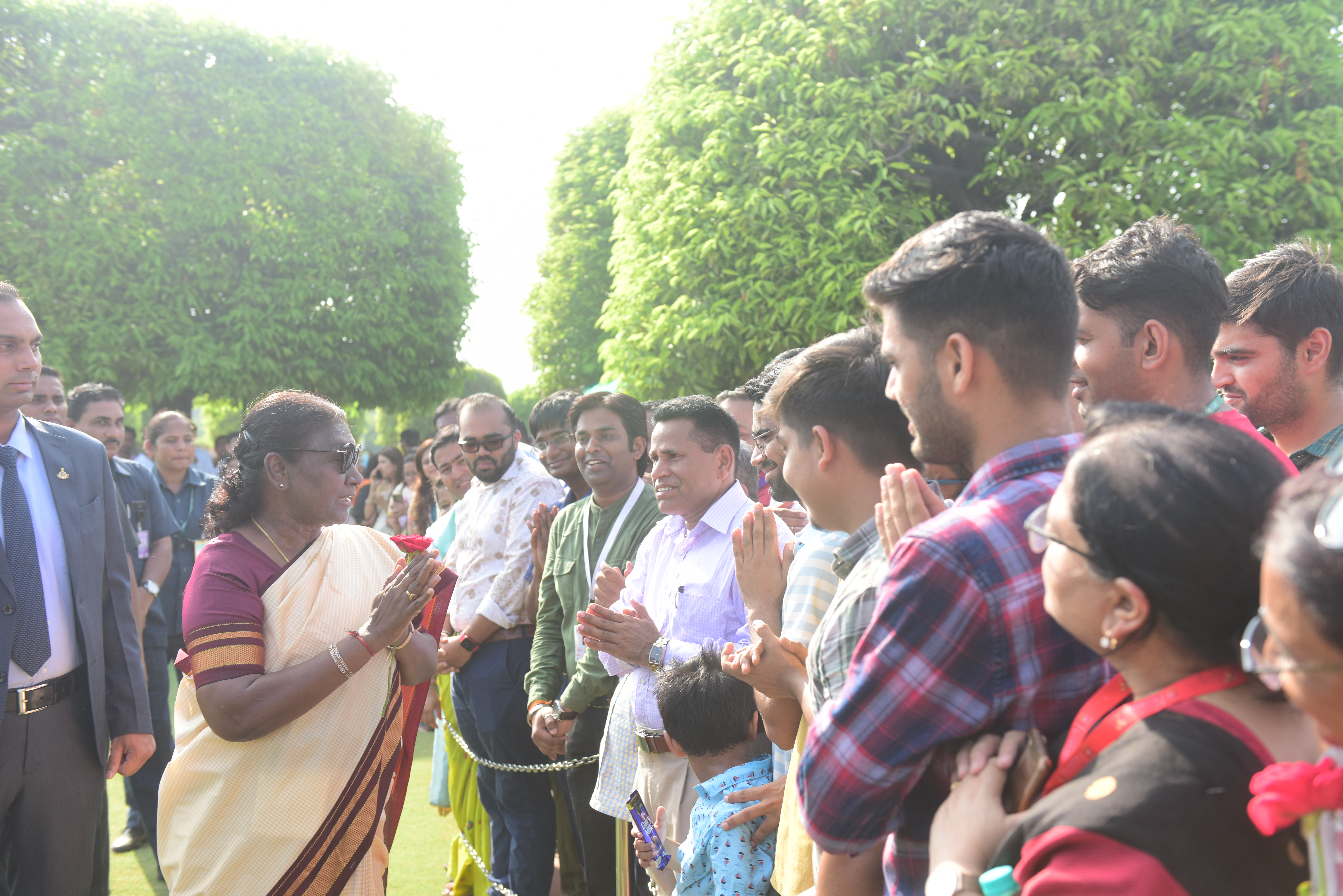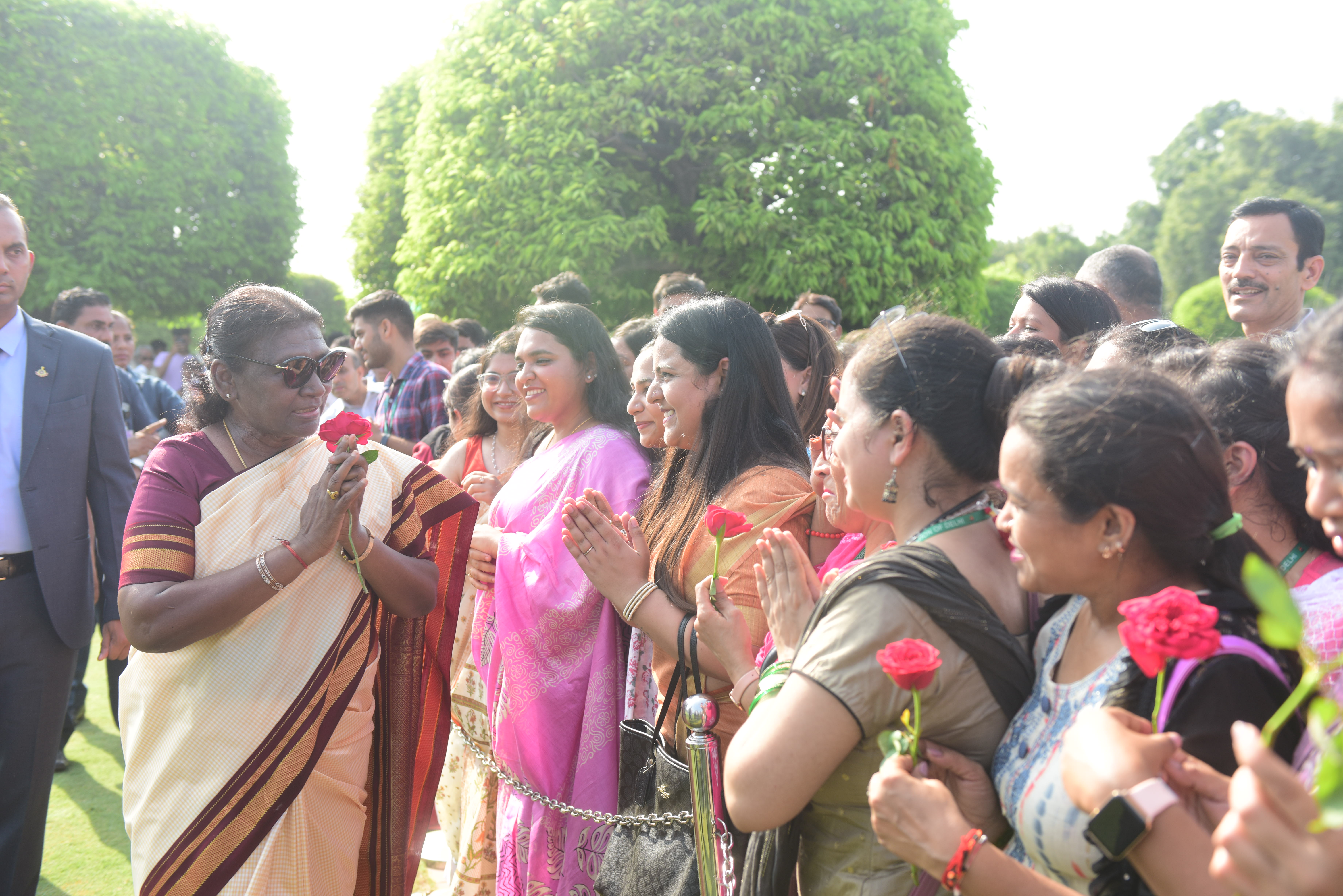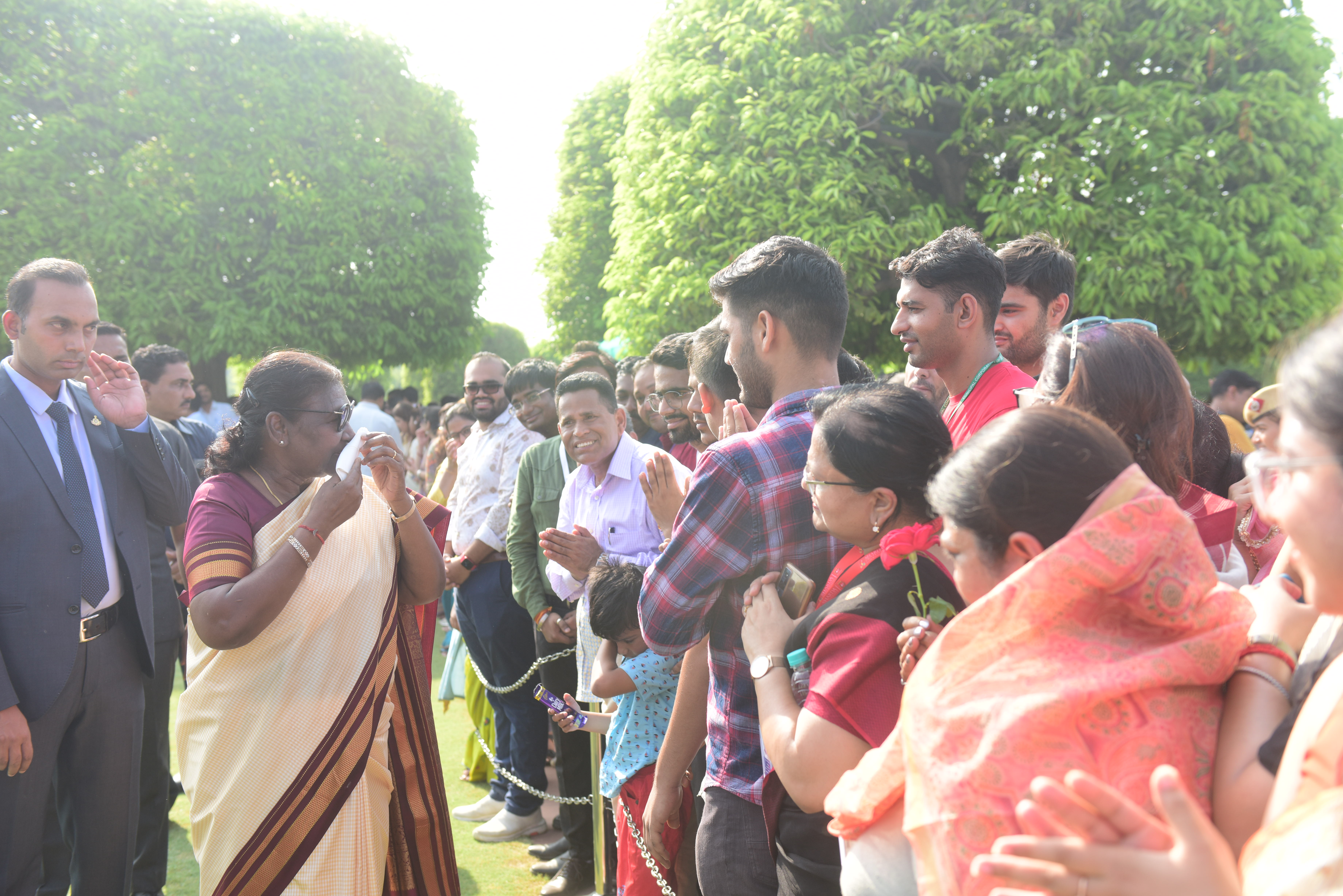 | Caption: | The President of India, Smt. Droupadi Murmu Interaction with the teachers invited to visit the Amrit Udyan as special invitees at Rashtrapati Bhavan on September 5, 2023. |