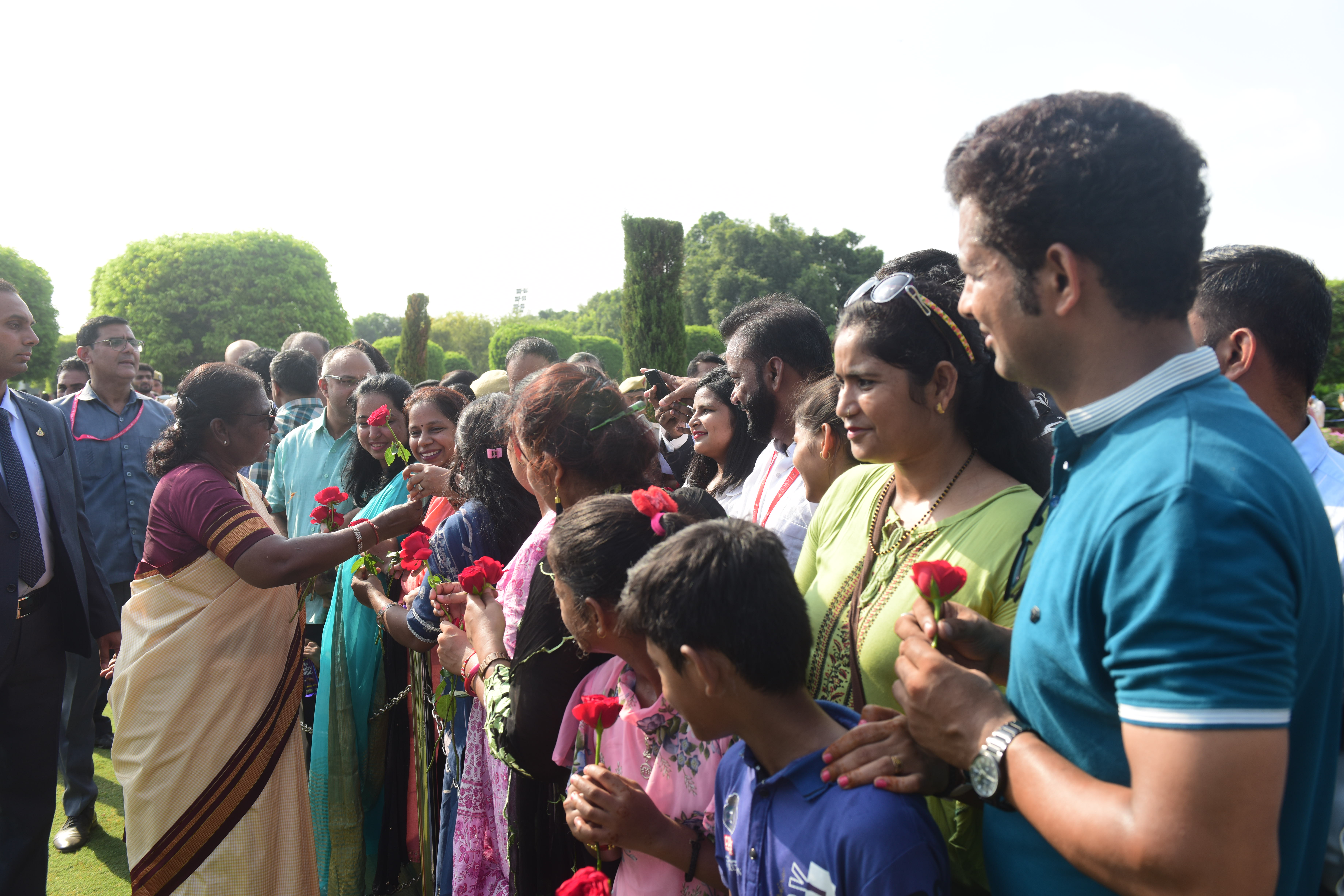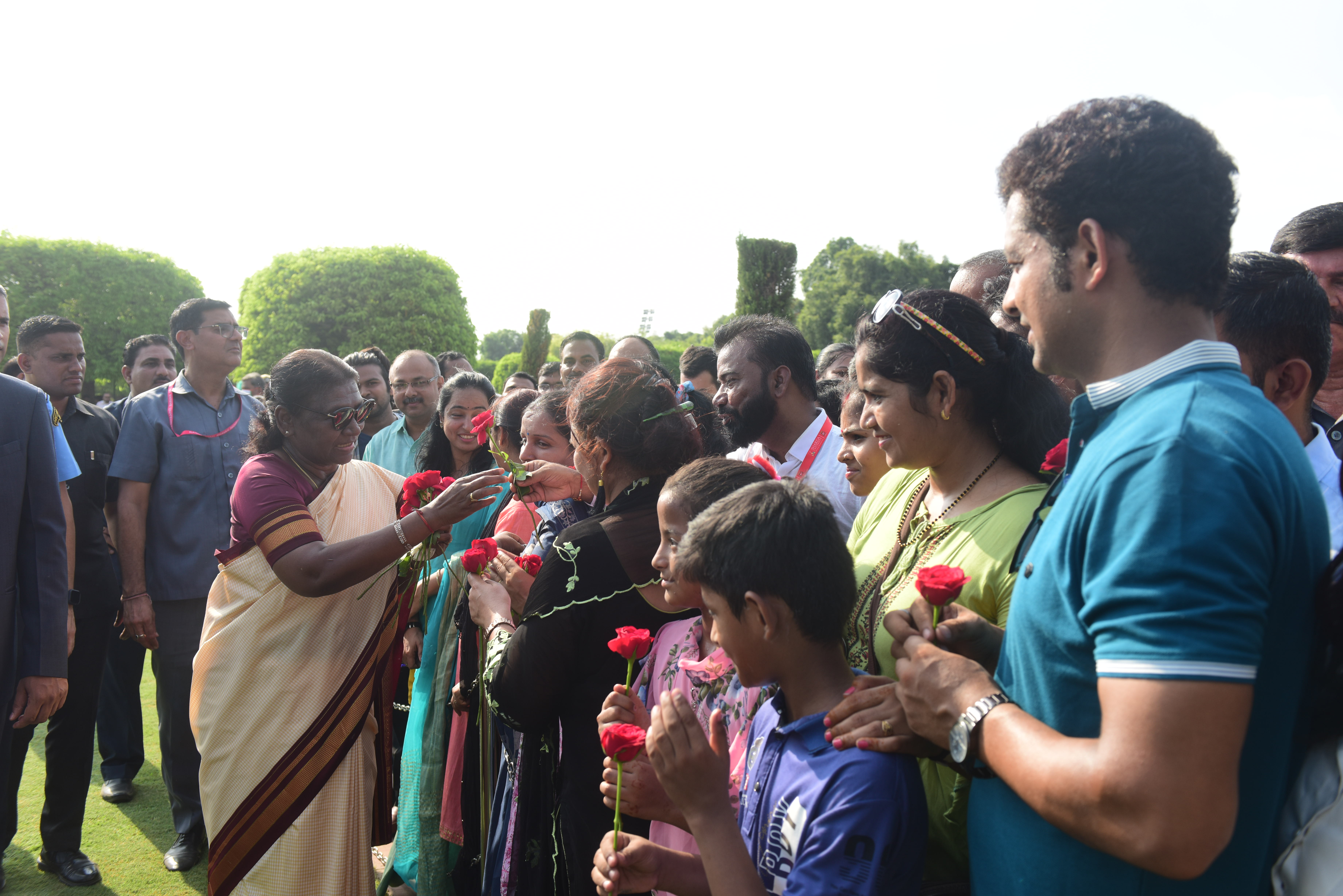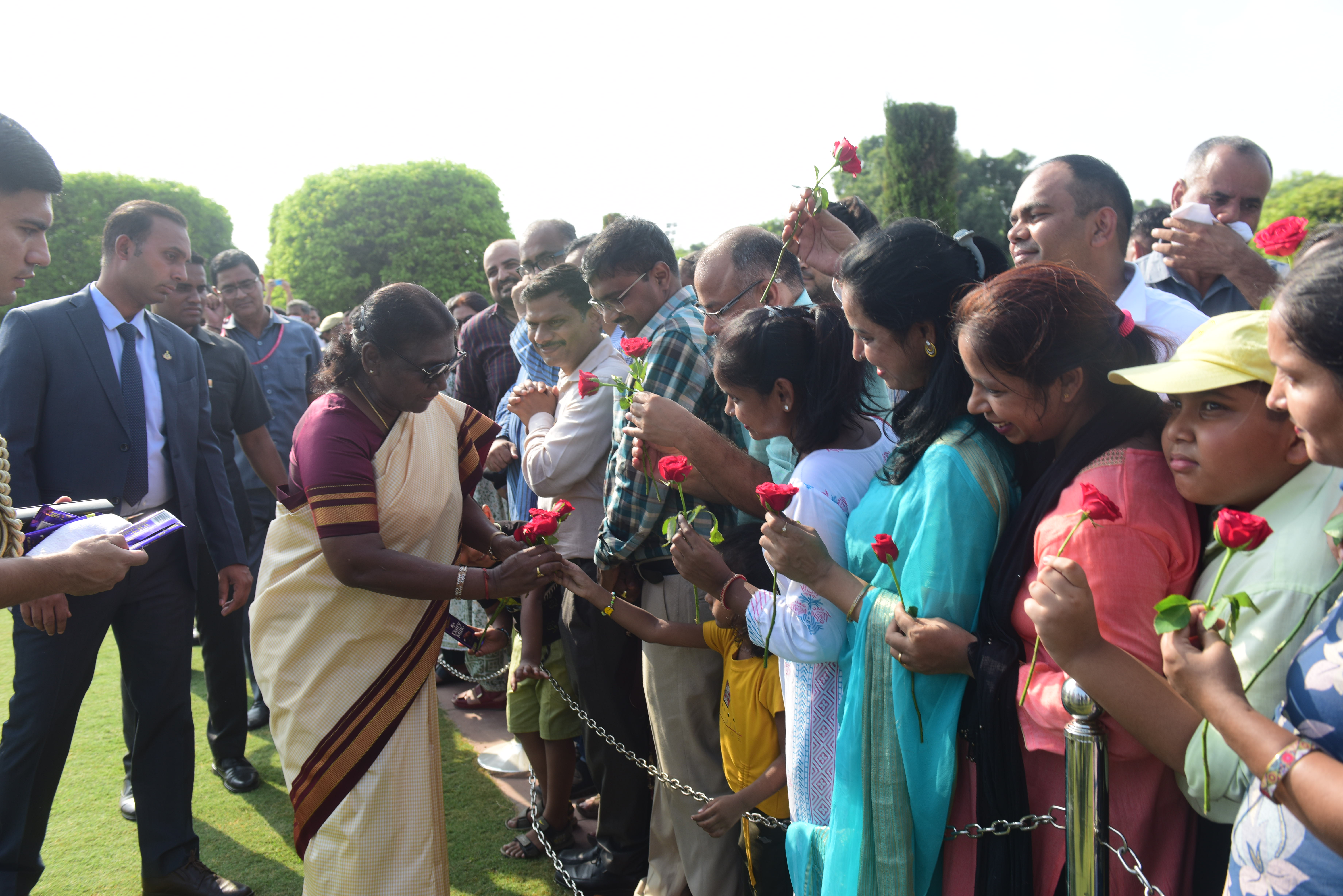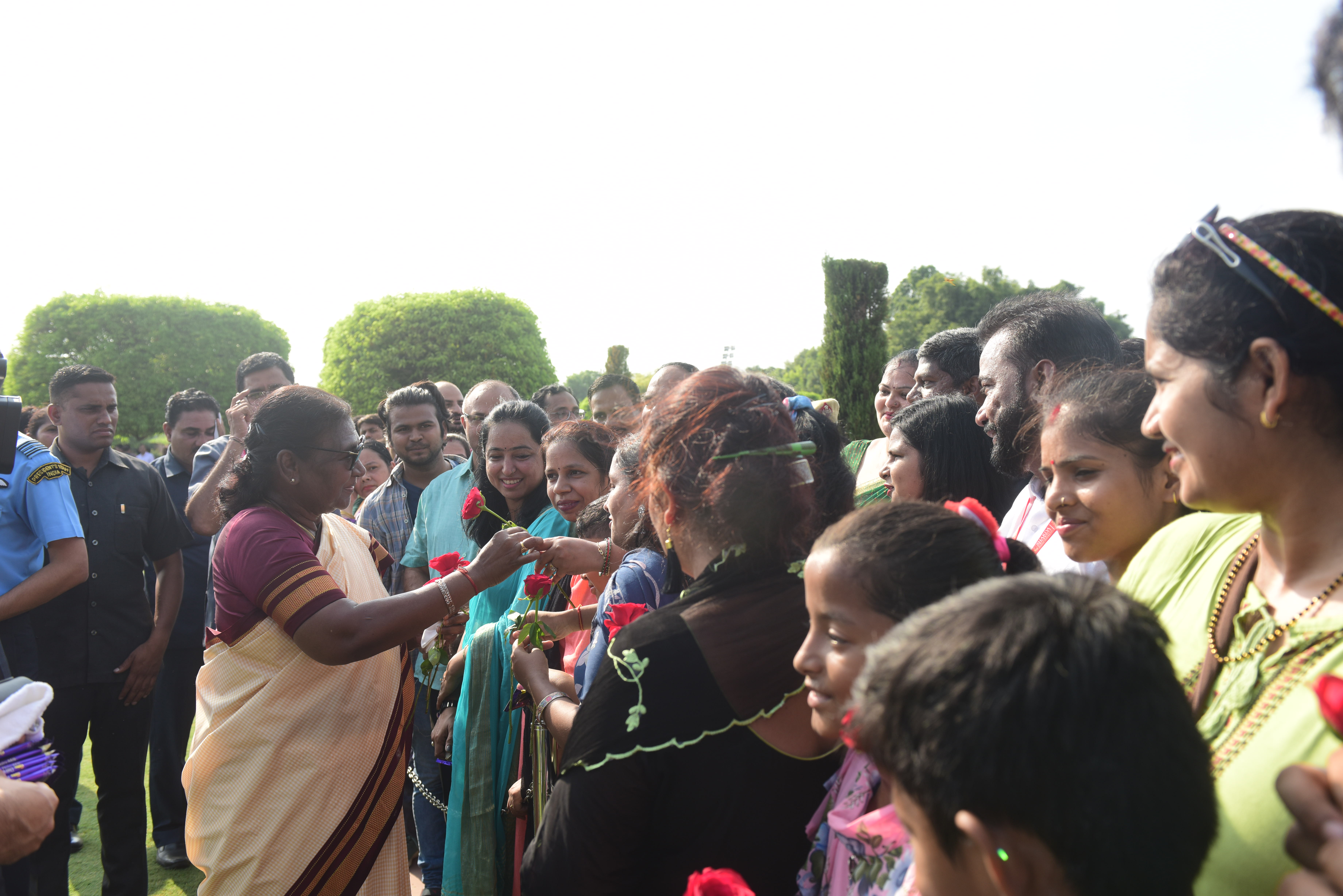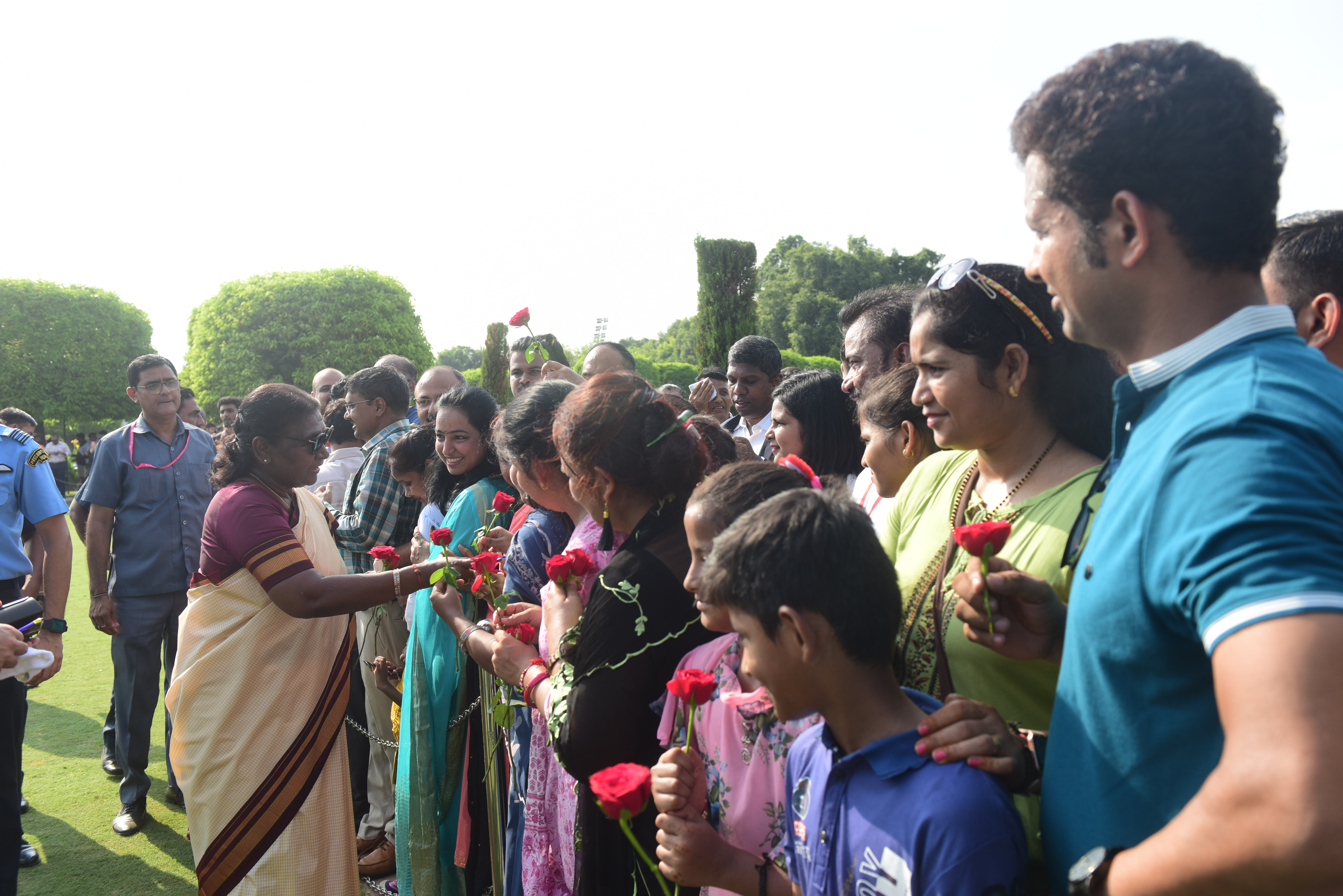 | Caption: | The President of India, Smt. Droupadi Murmu Interaction with the teachers invited to visit the Amrit Udyan as special invitees at Rashtrapati Bhavan on September 5, 2023. |