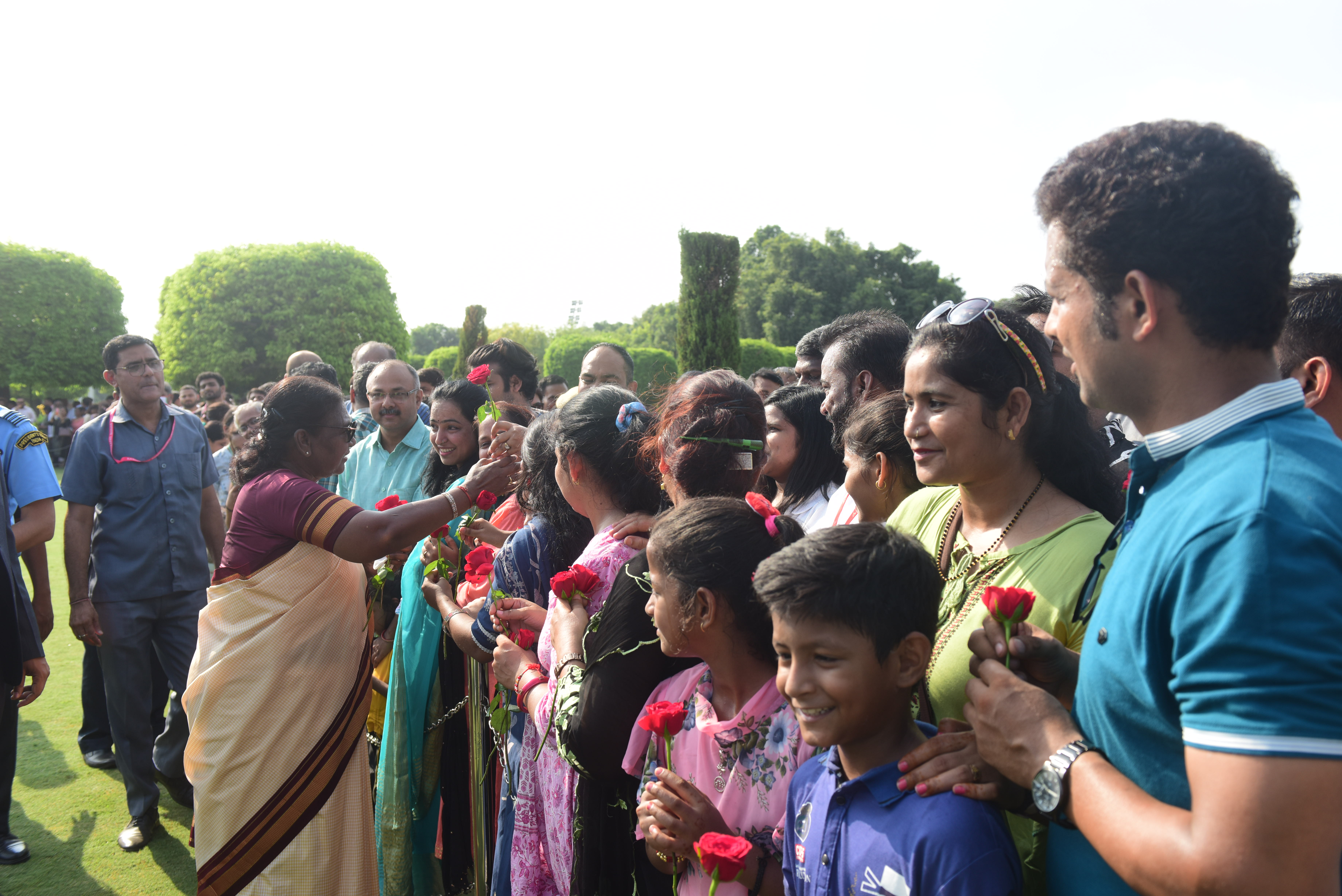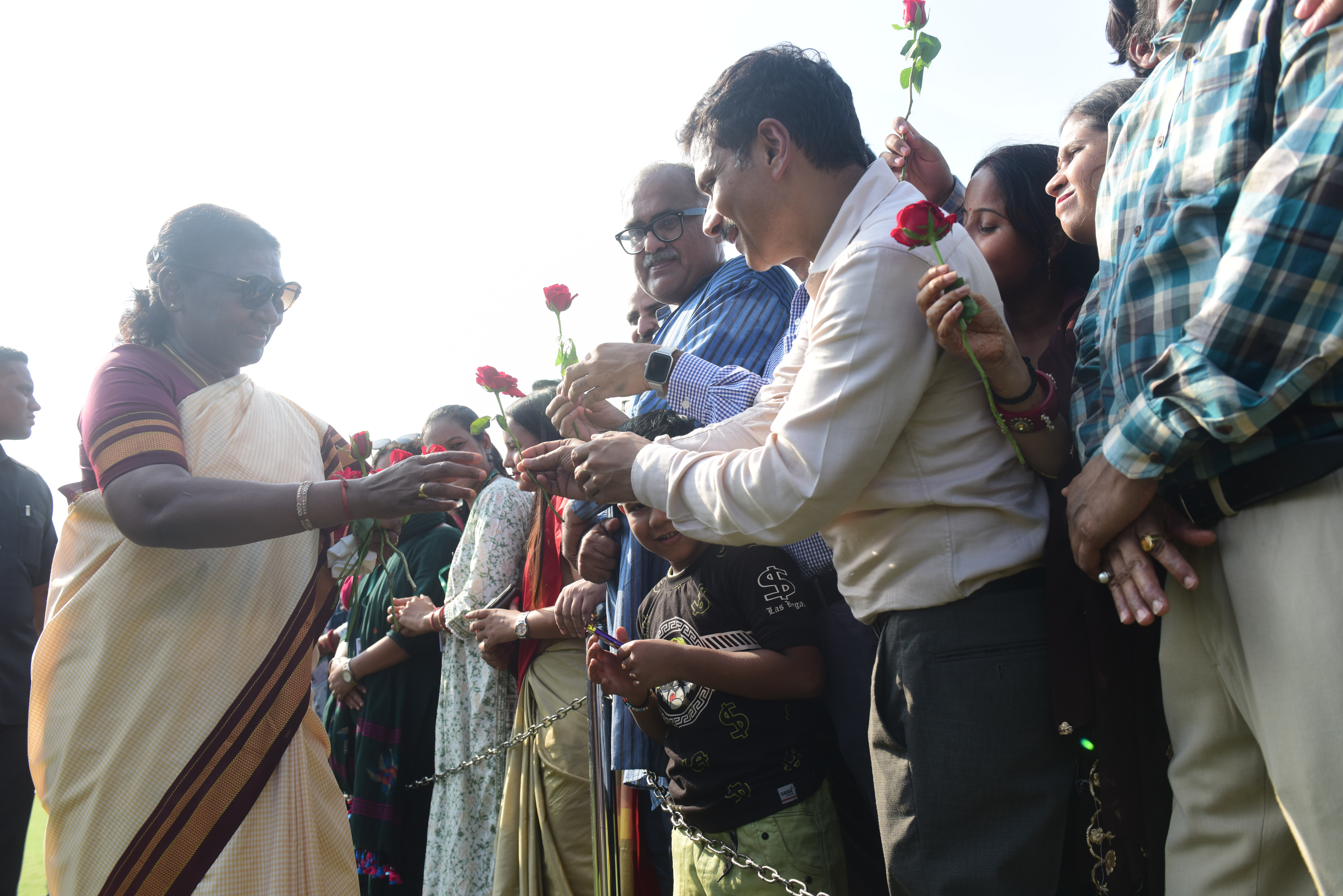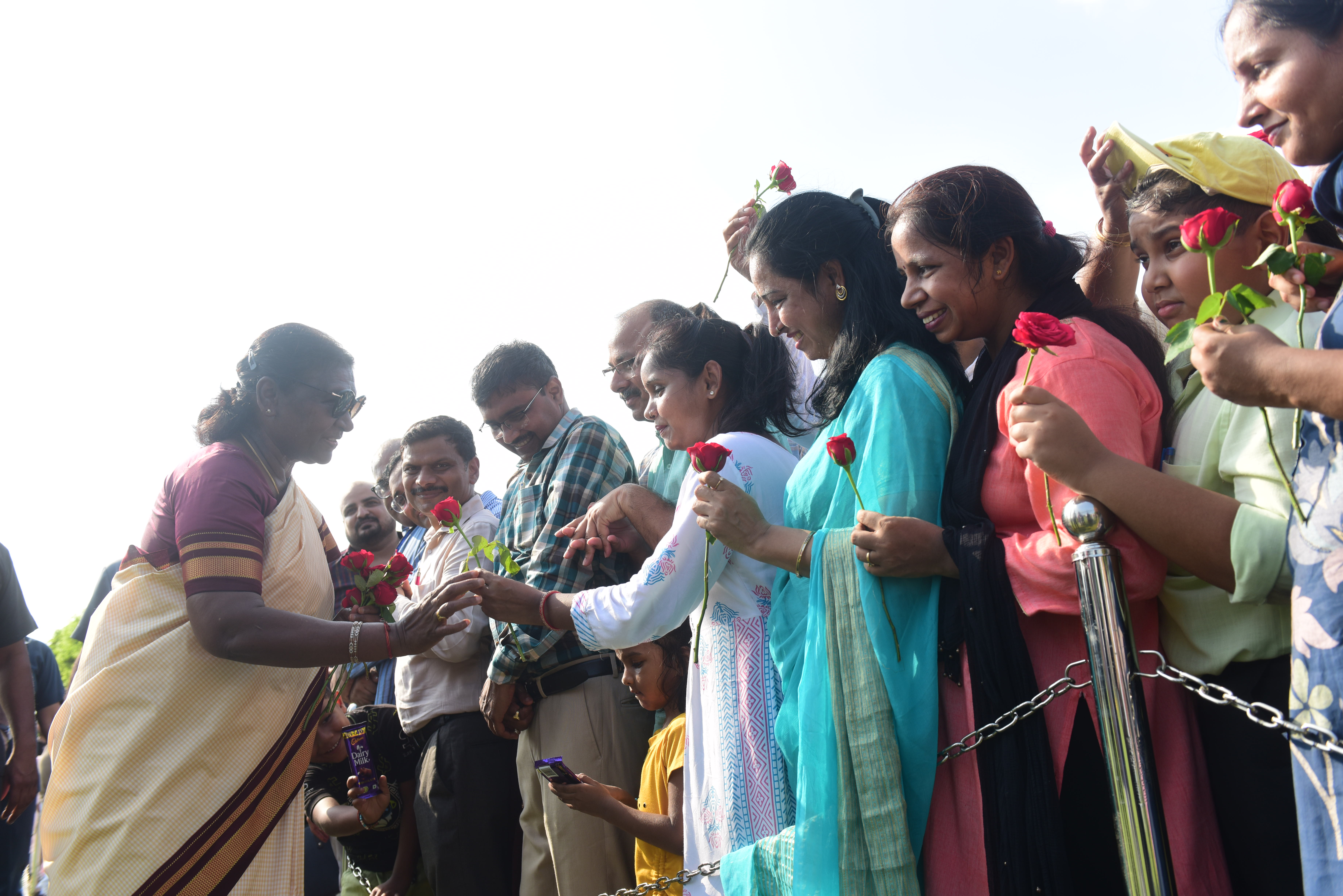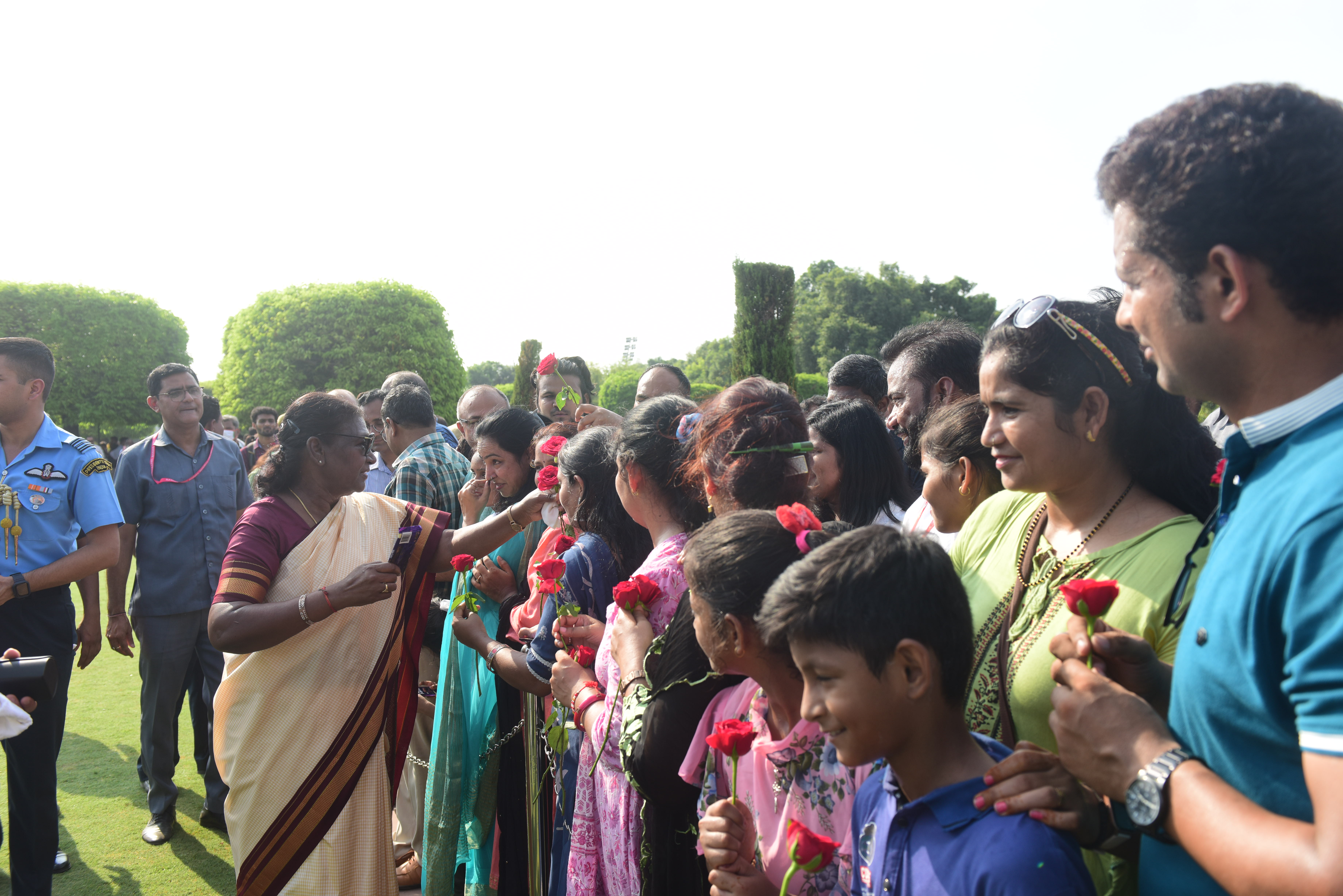 | Caption: | The President of India, Smt. Droupadi Murmu Interaction with the teachers invited to visit the Amrit Udyan as special invitees at Rashtrapati Bhavan on September 5, 2023. |