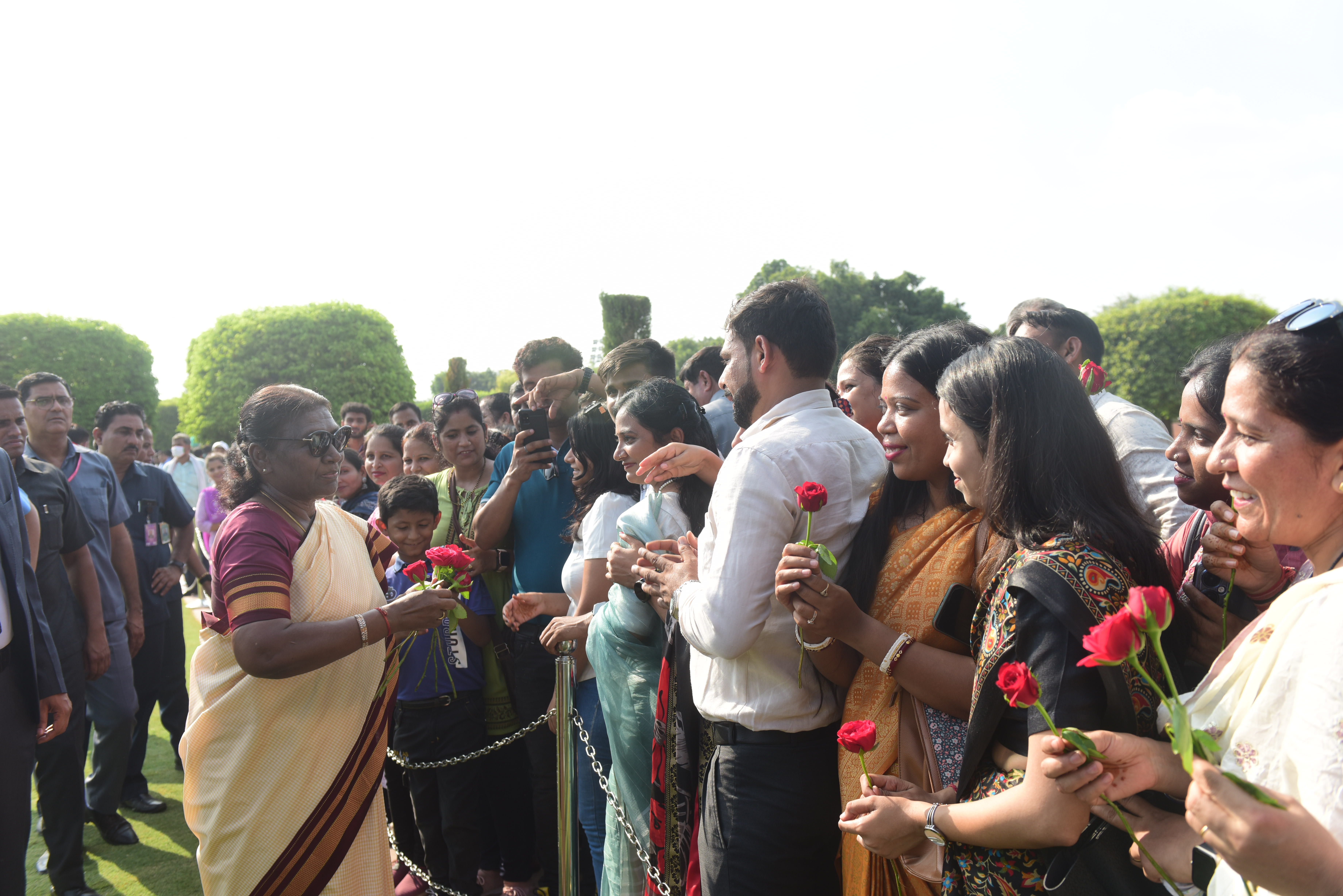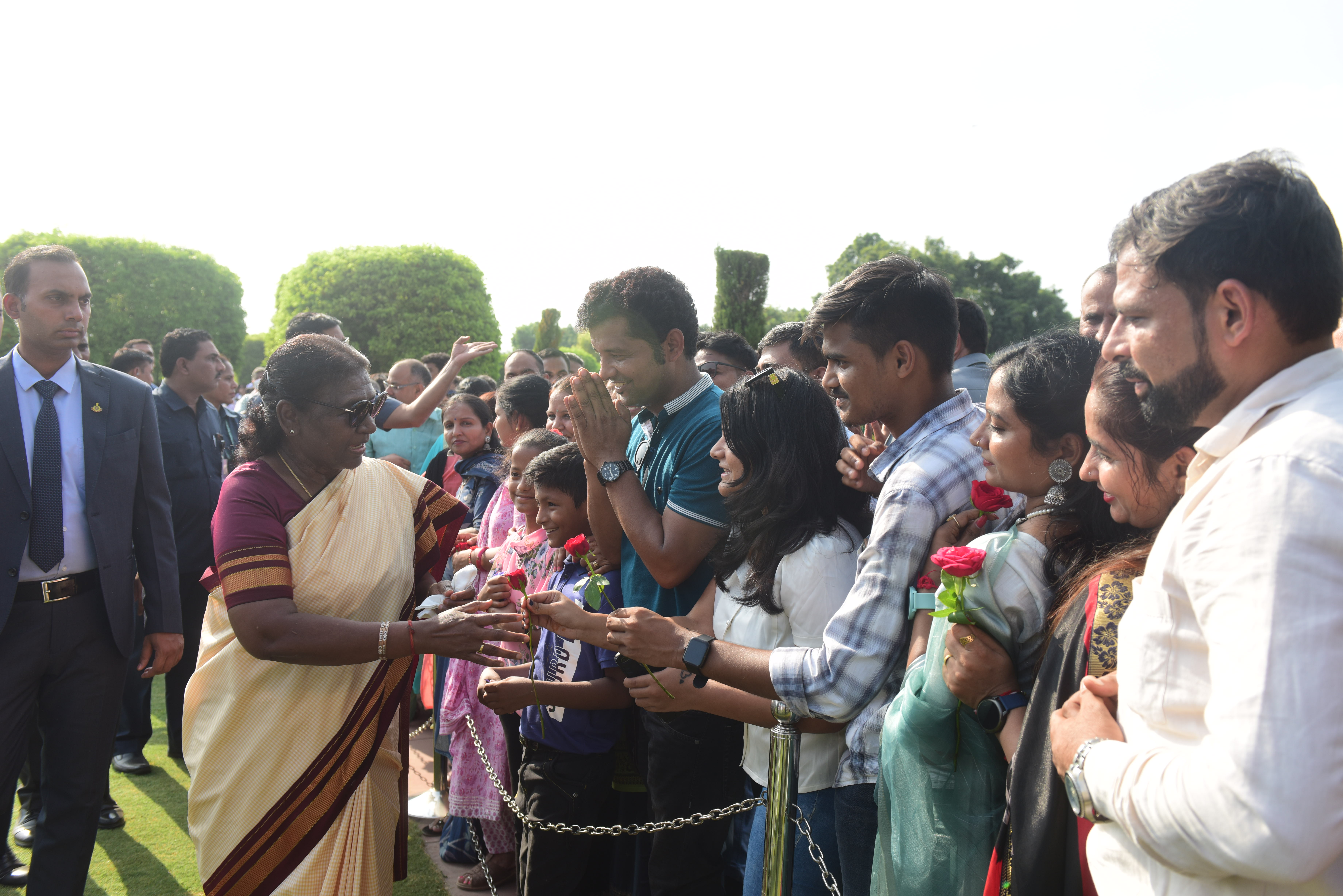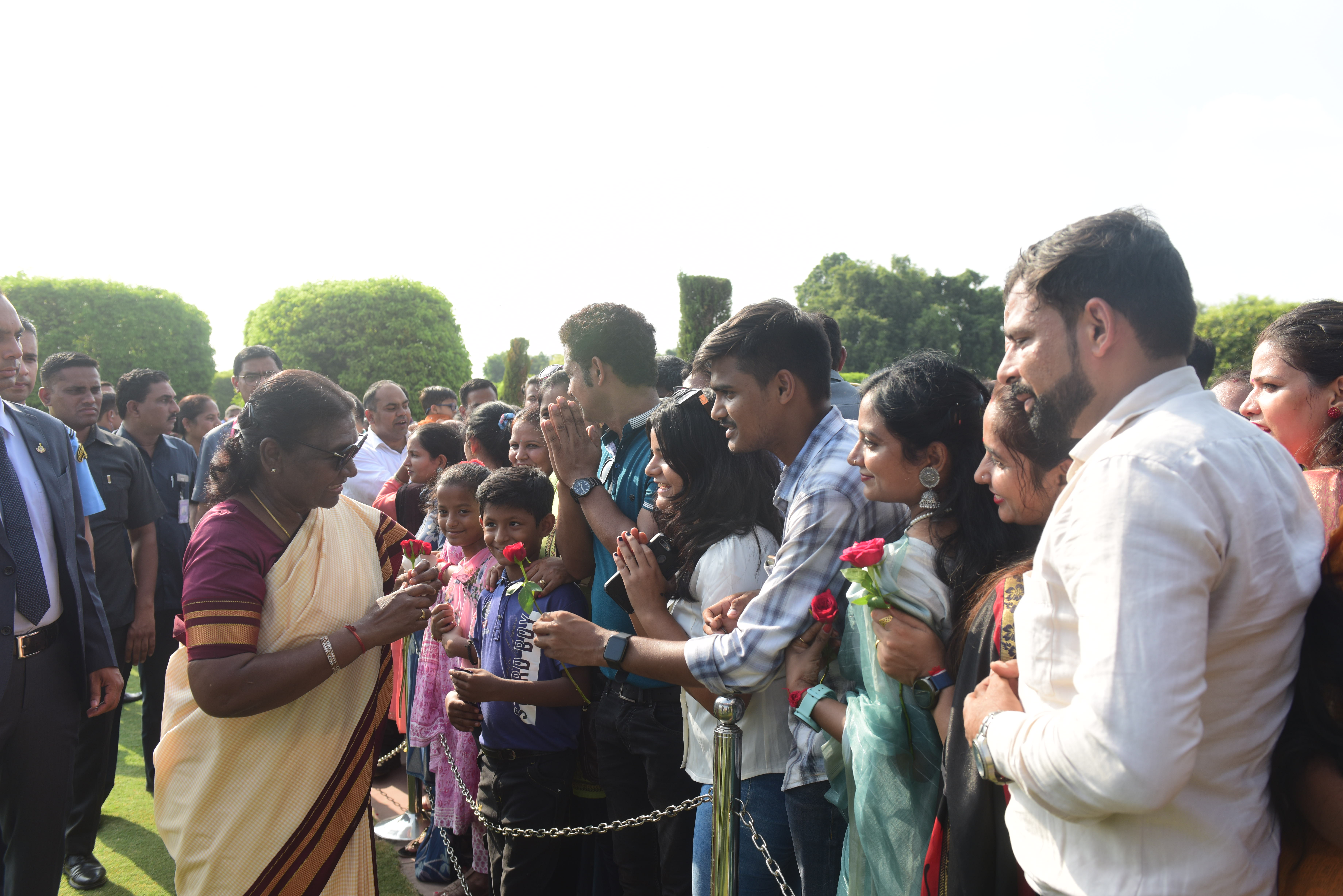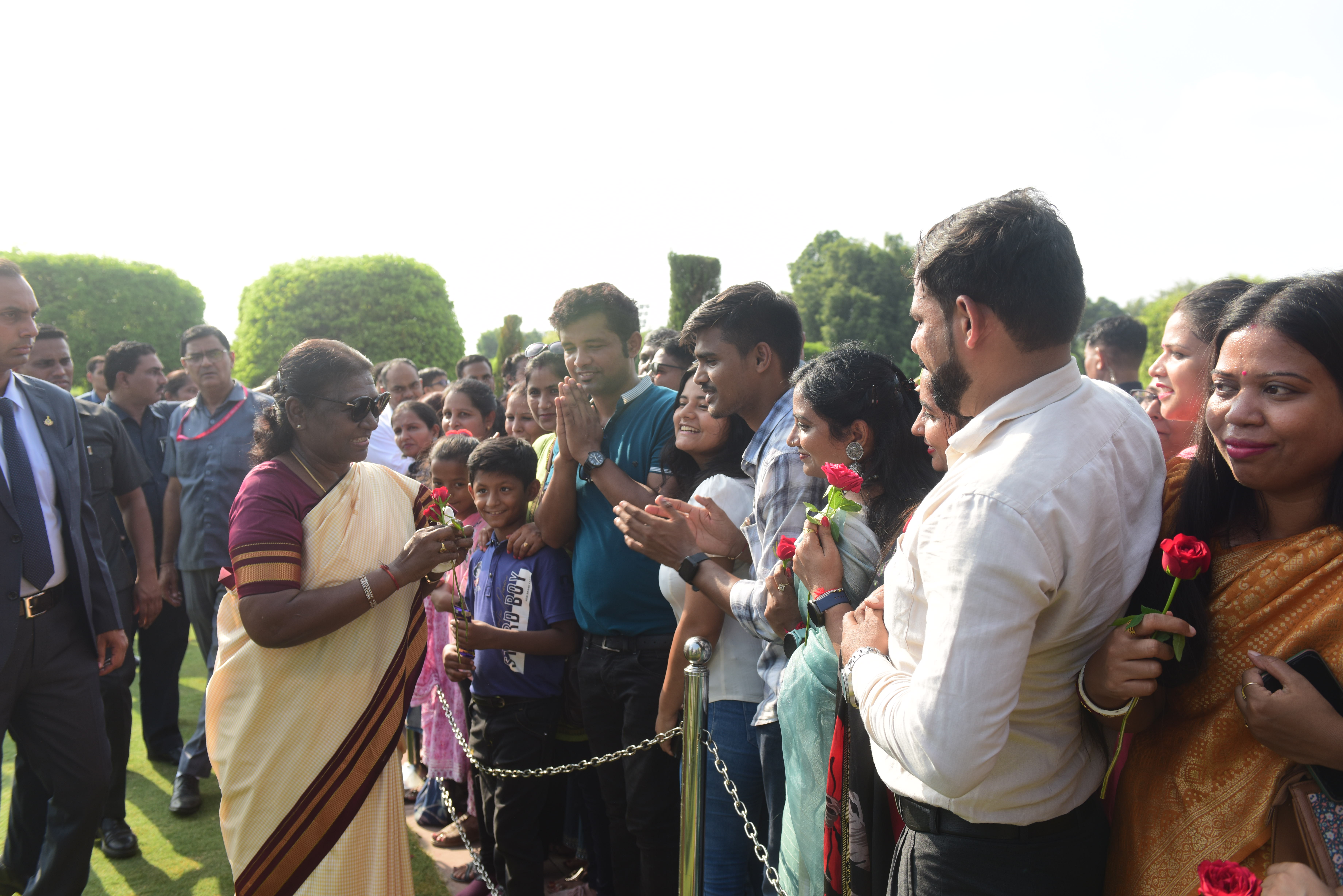 | Caption: | The President of India, Smt. Droupadi Murmu Interaction with the teachers invited to visit the Amrit Udyan as special invitees at Rashtrapati Bhavan on September 5, 2023. |