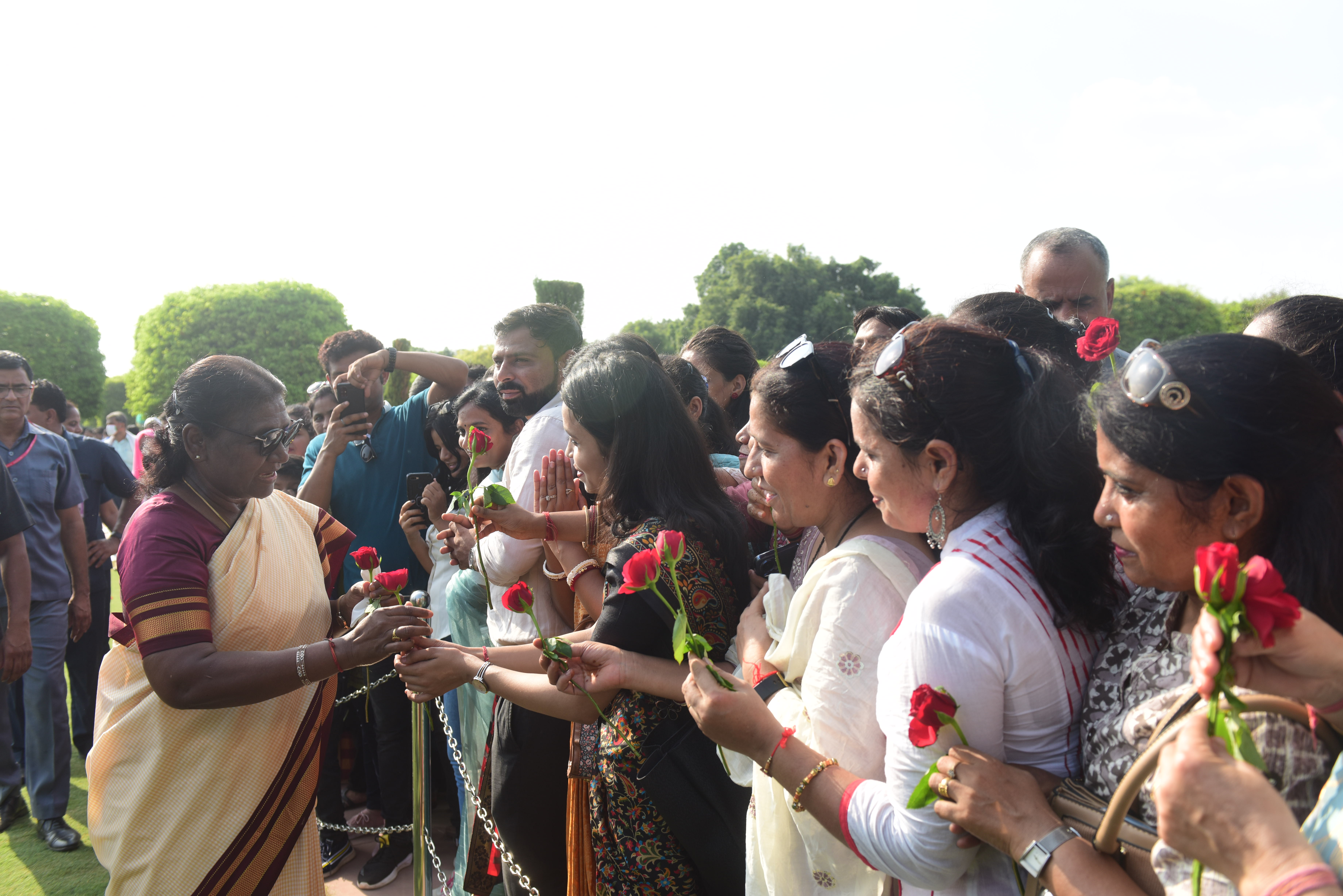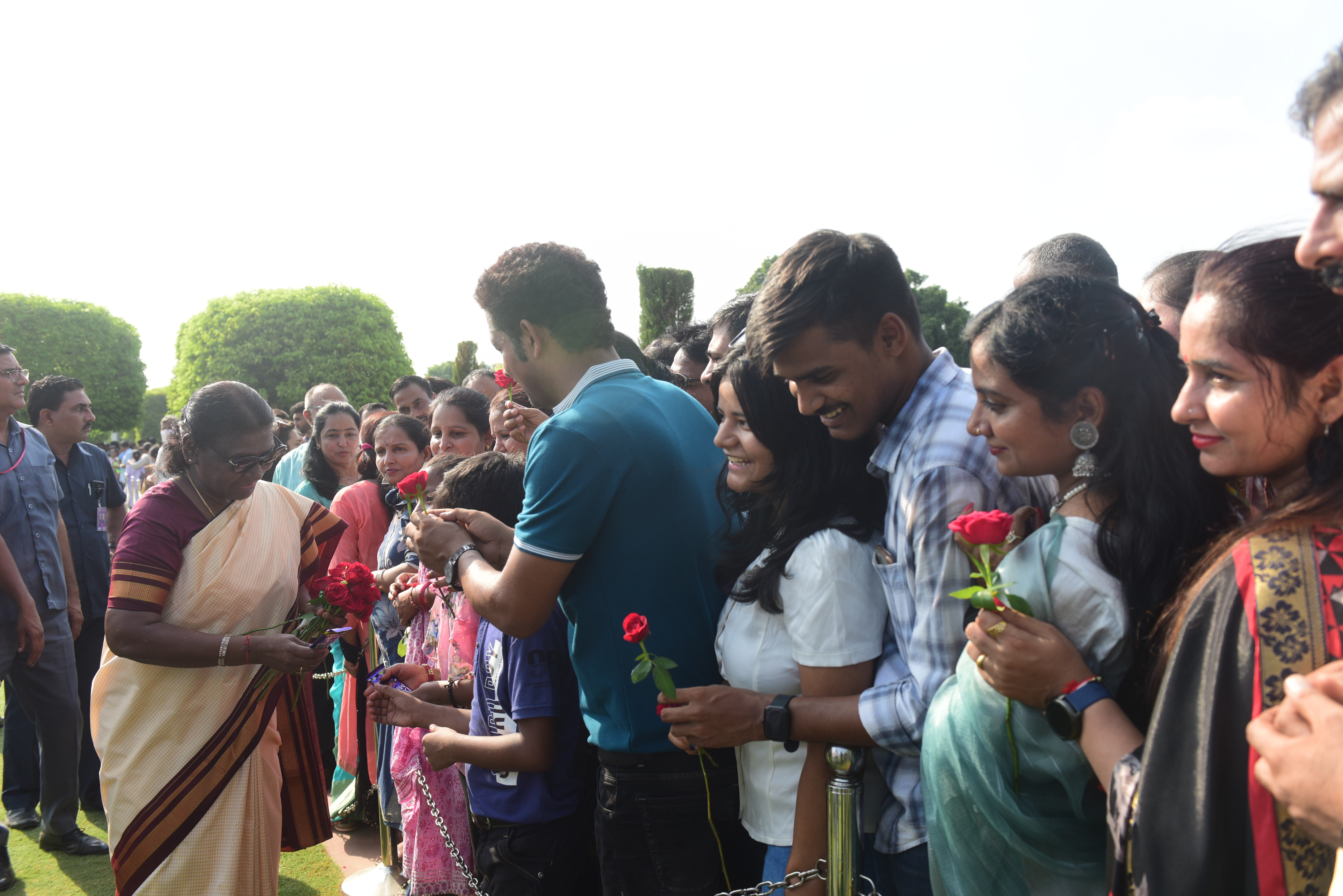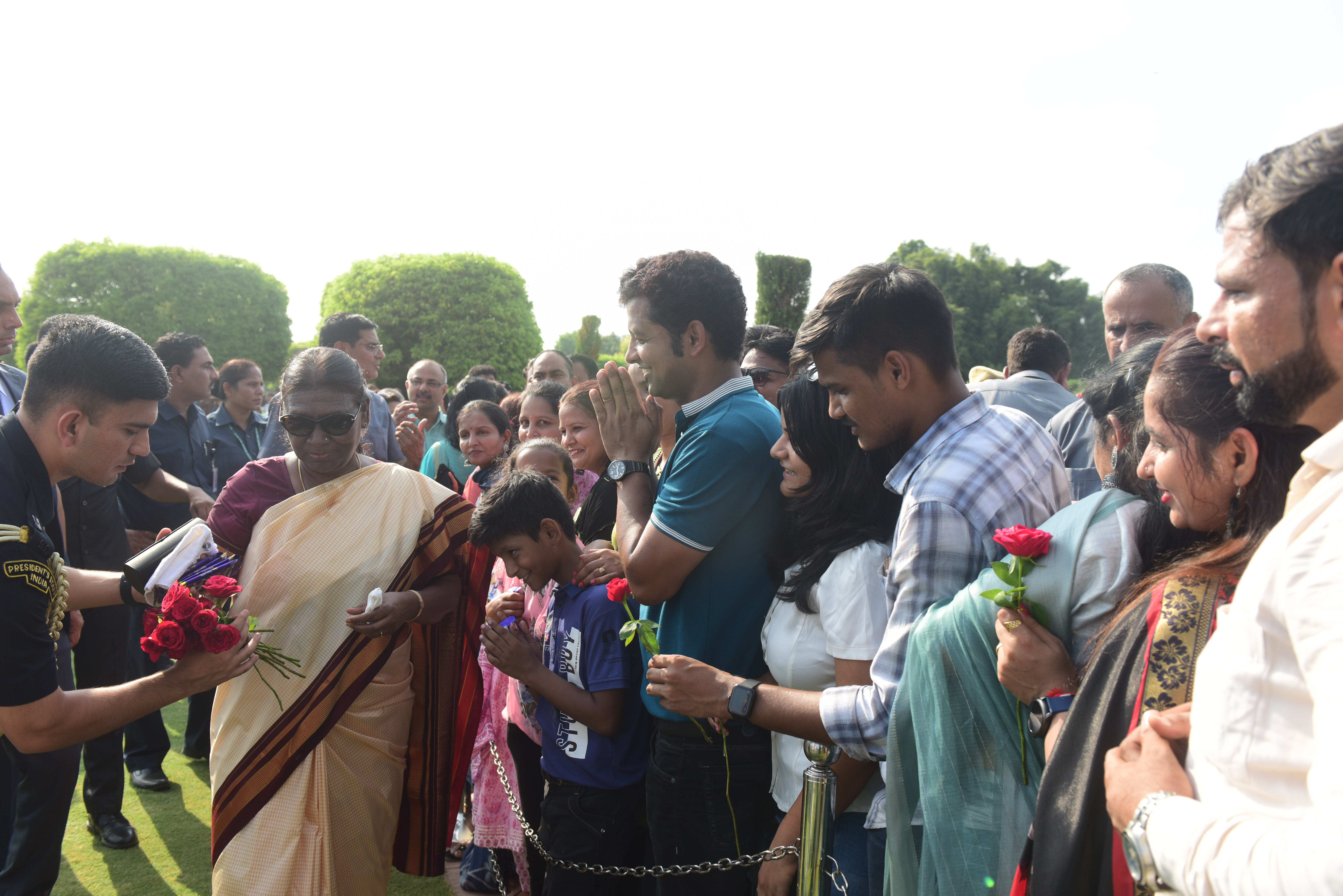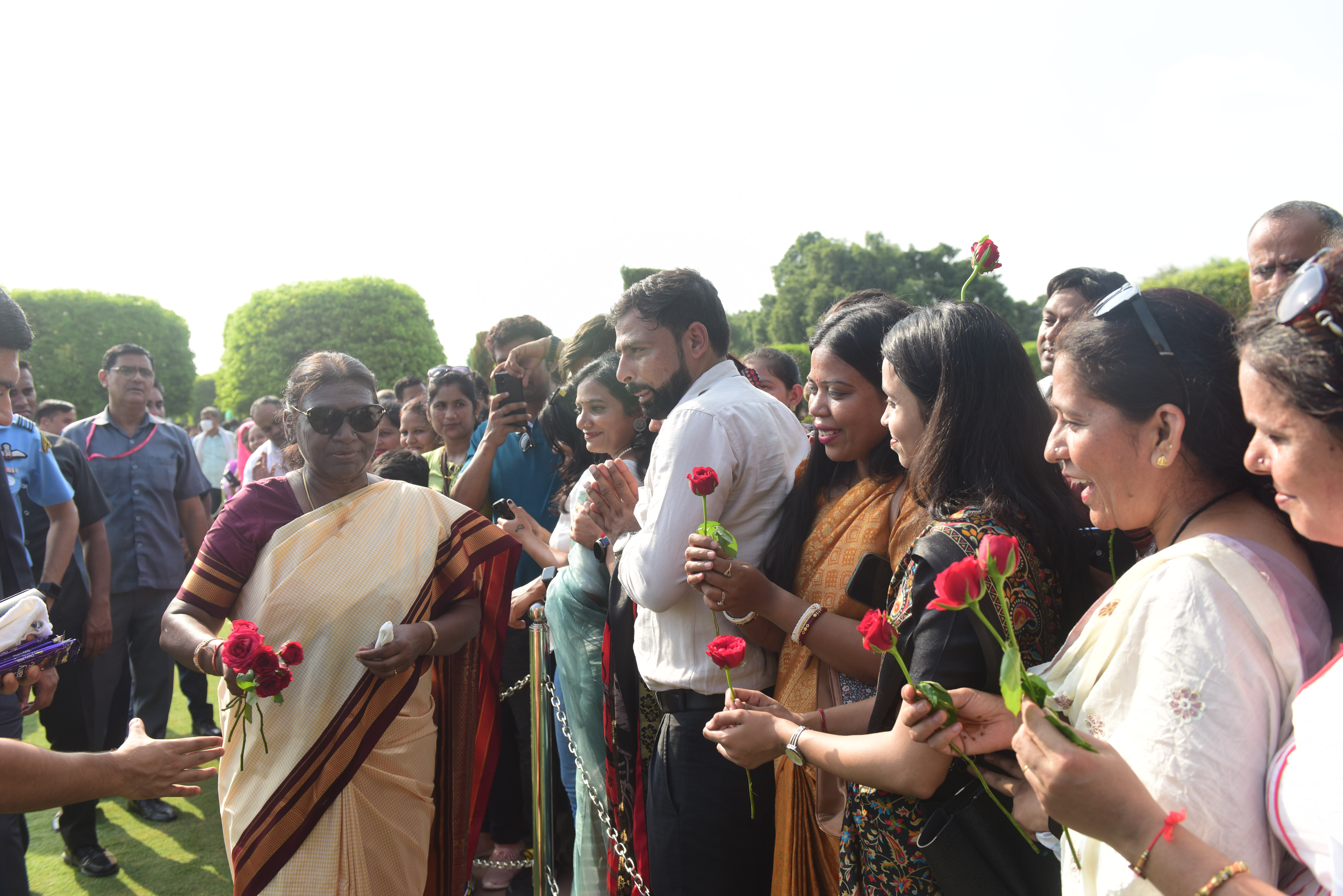 | Caption: | The President of India, Smt. Droupadi Murmu Interaction with the teachers invited to visit the Amrit Udyan as special invitees at Rashtrapati Bhavan on September 5, 2023. |