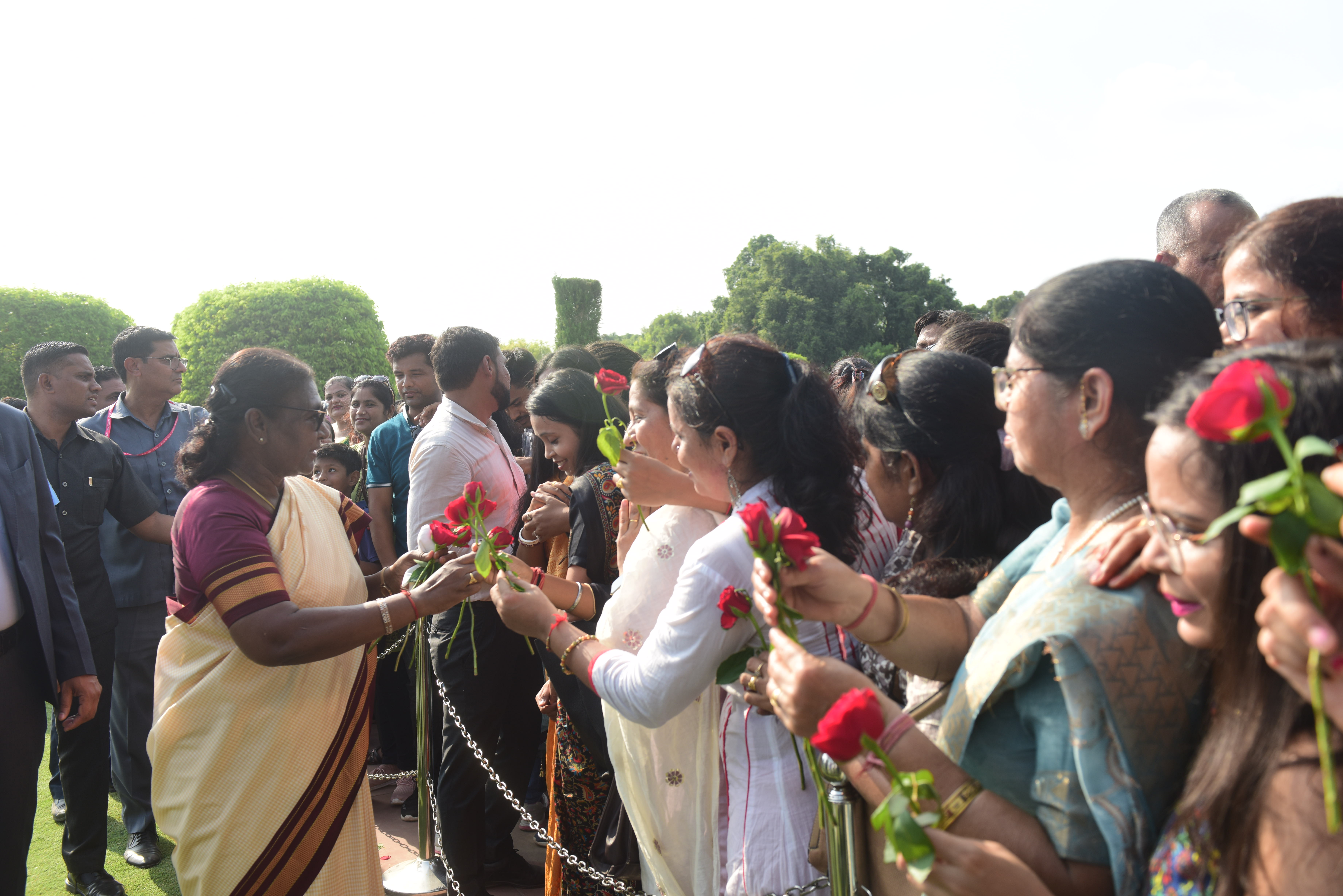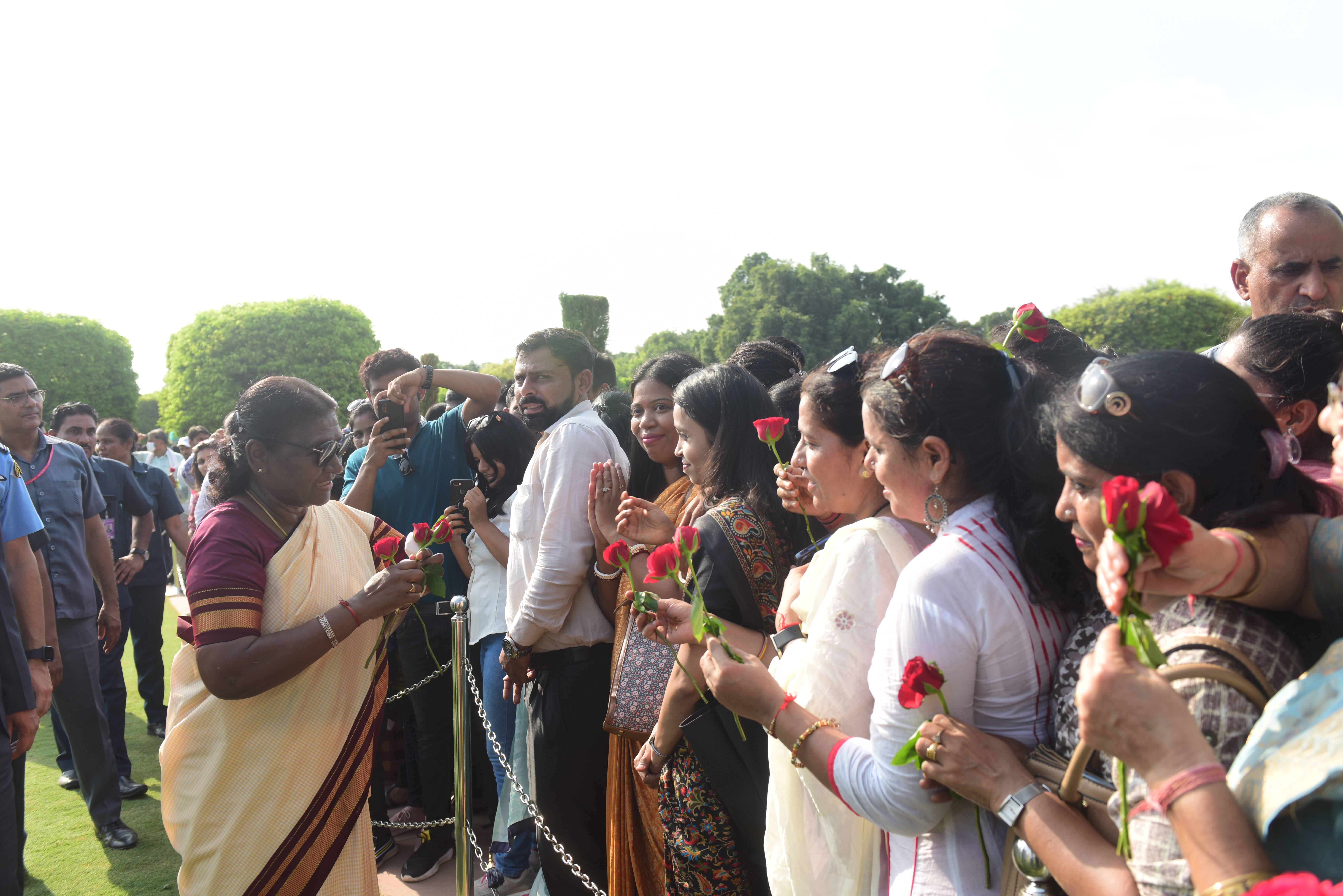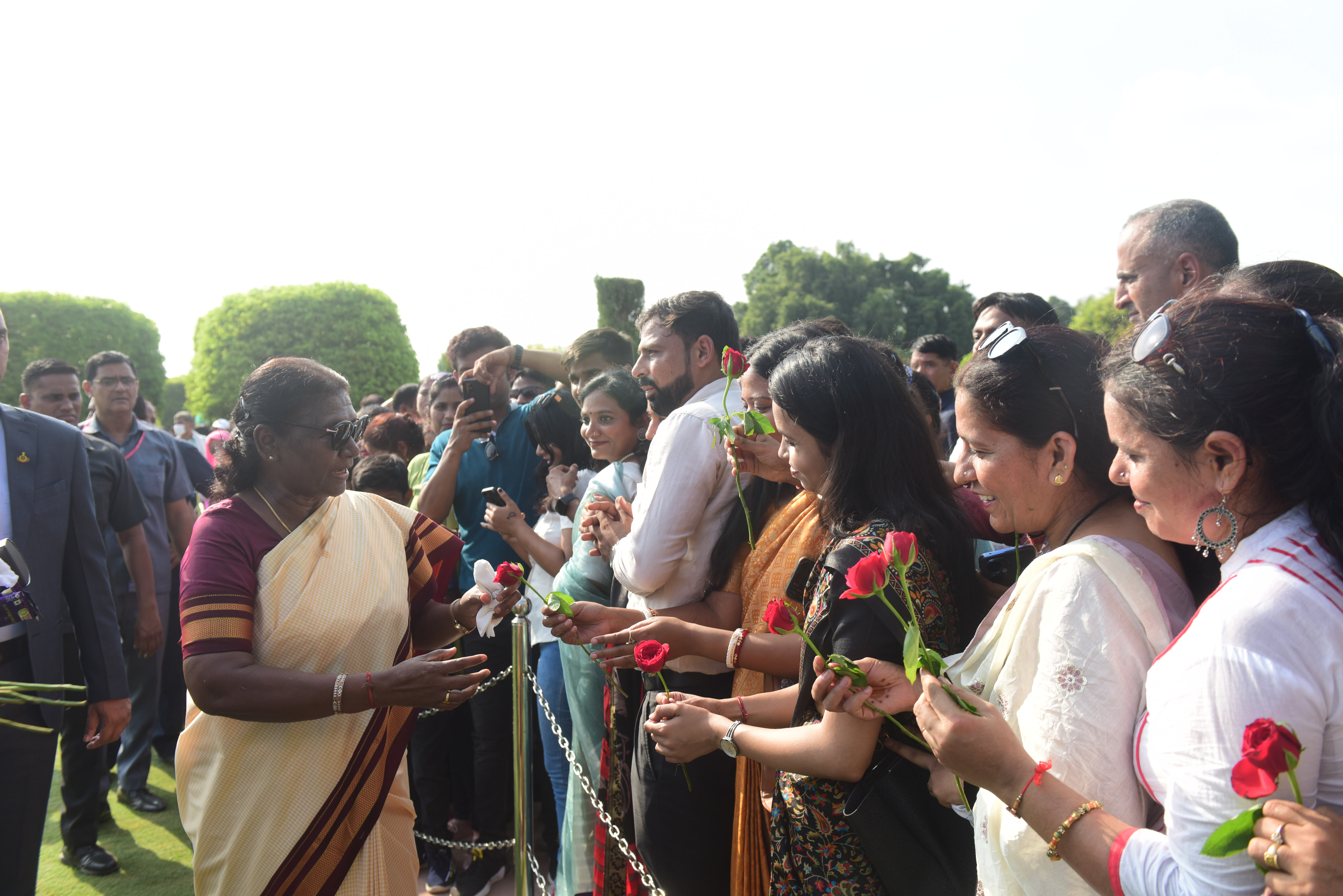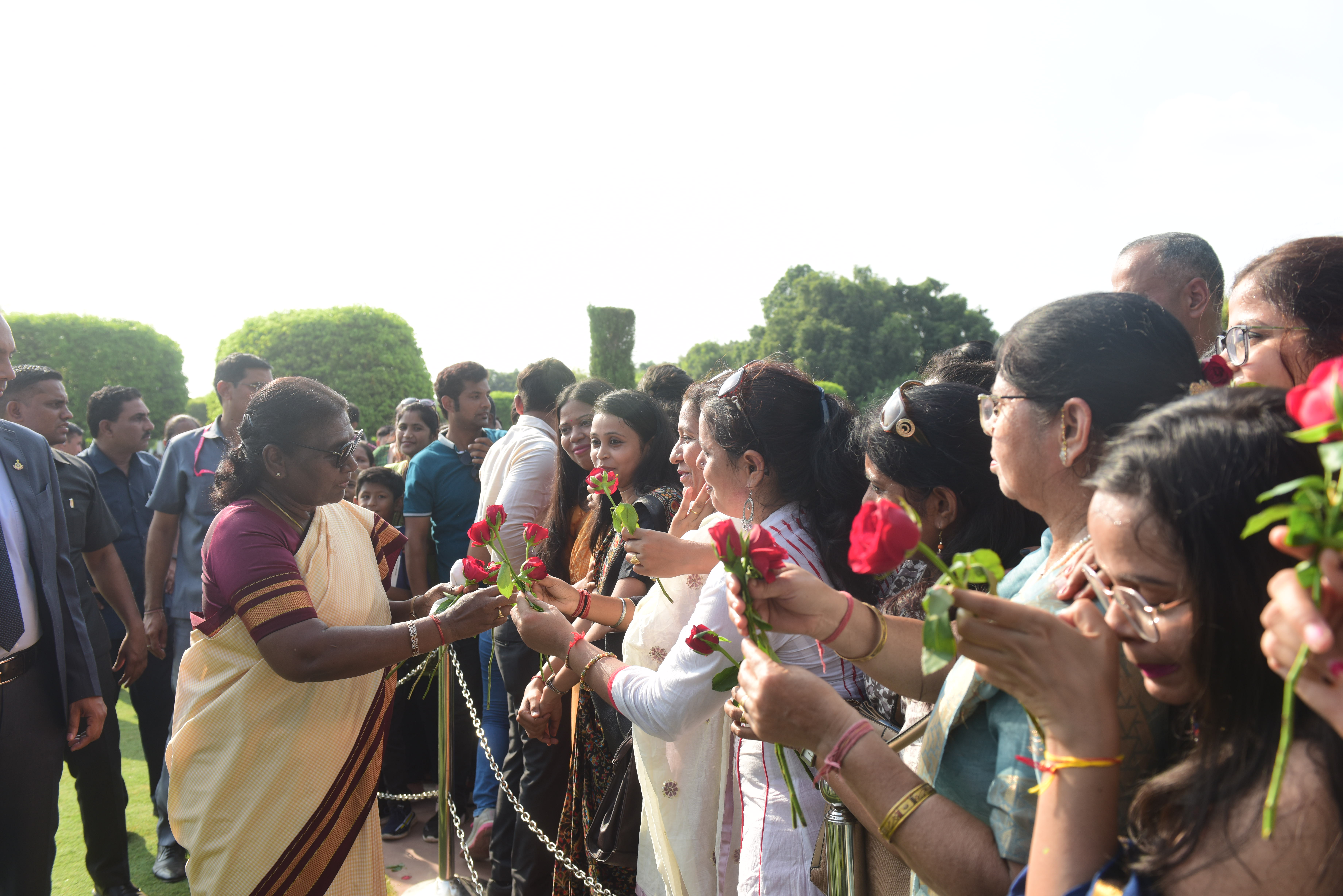 | Caption: | The President of India, Smt. Droupadi Murmu Interaction with the teachers invited to visit the Amrit Udyan as special invitees at Rashtrapati Bhavan on September 5, 2023. |