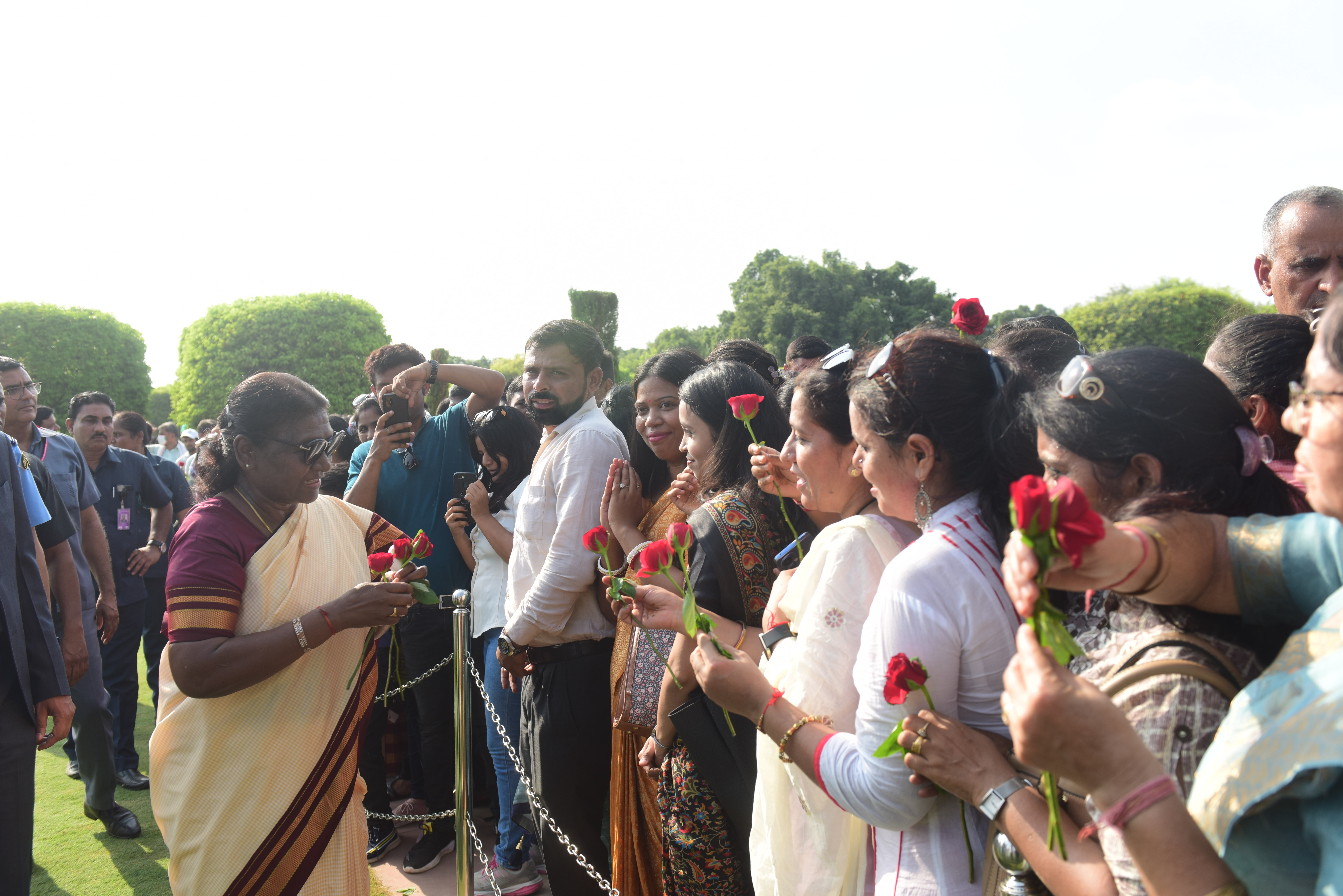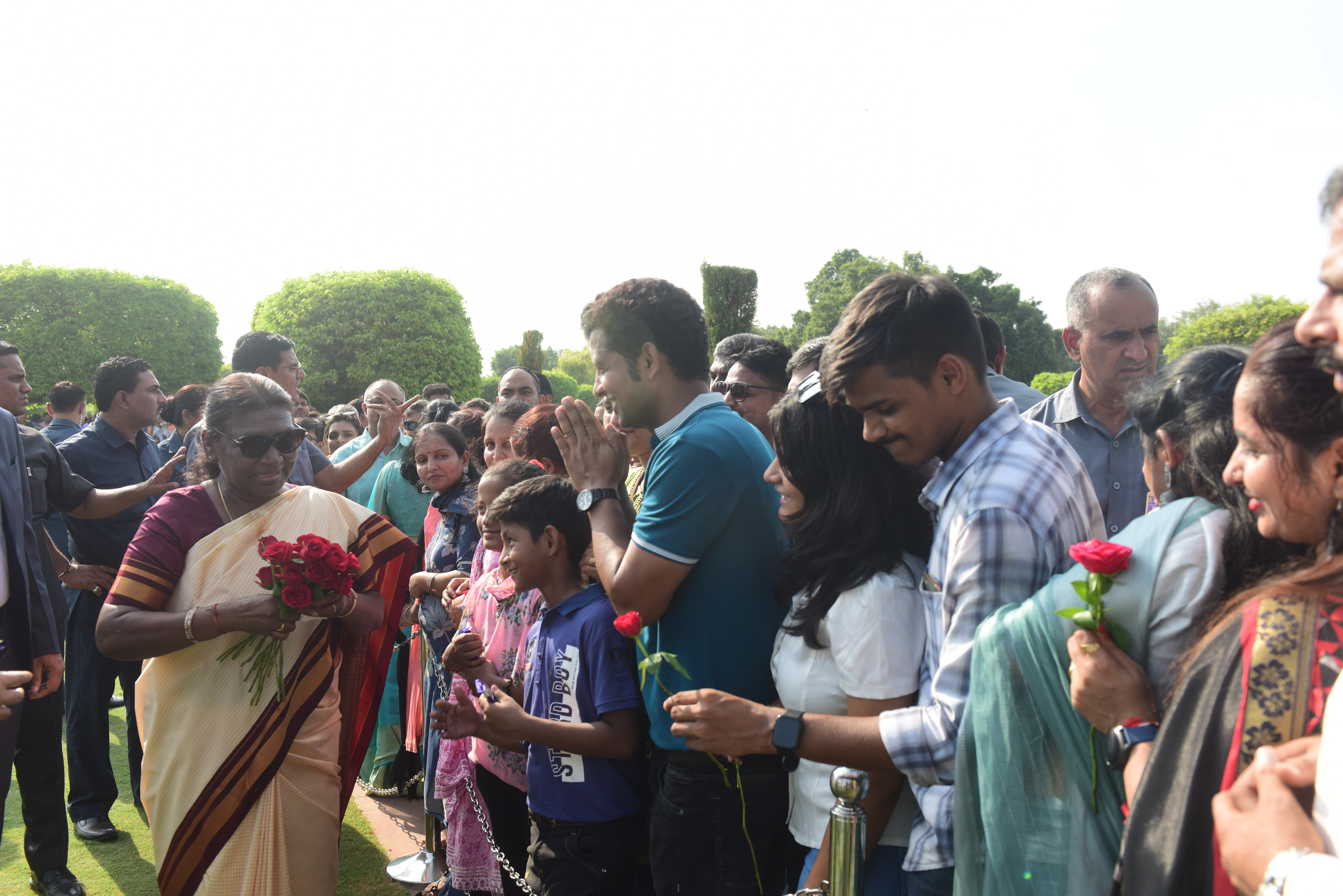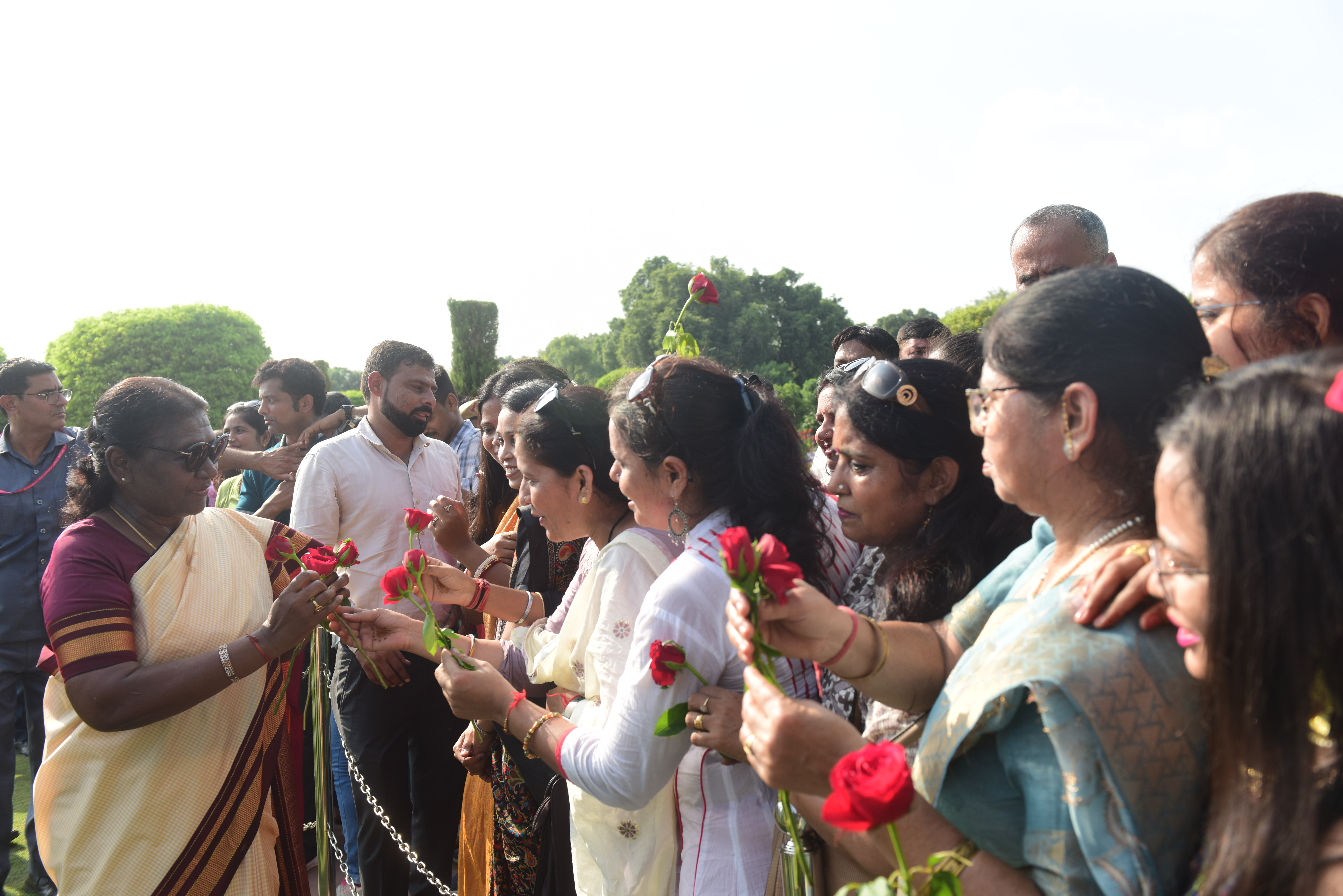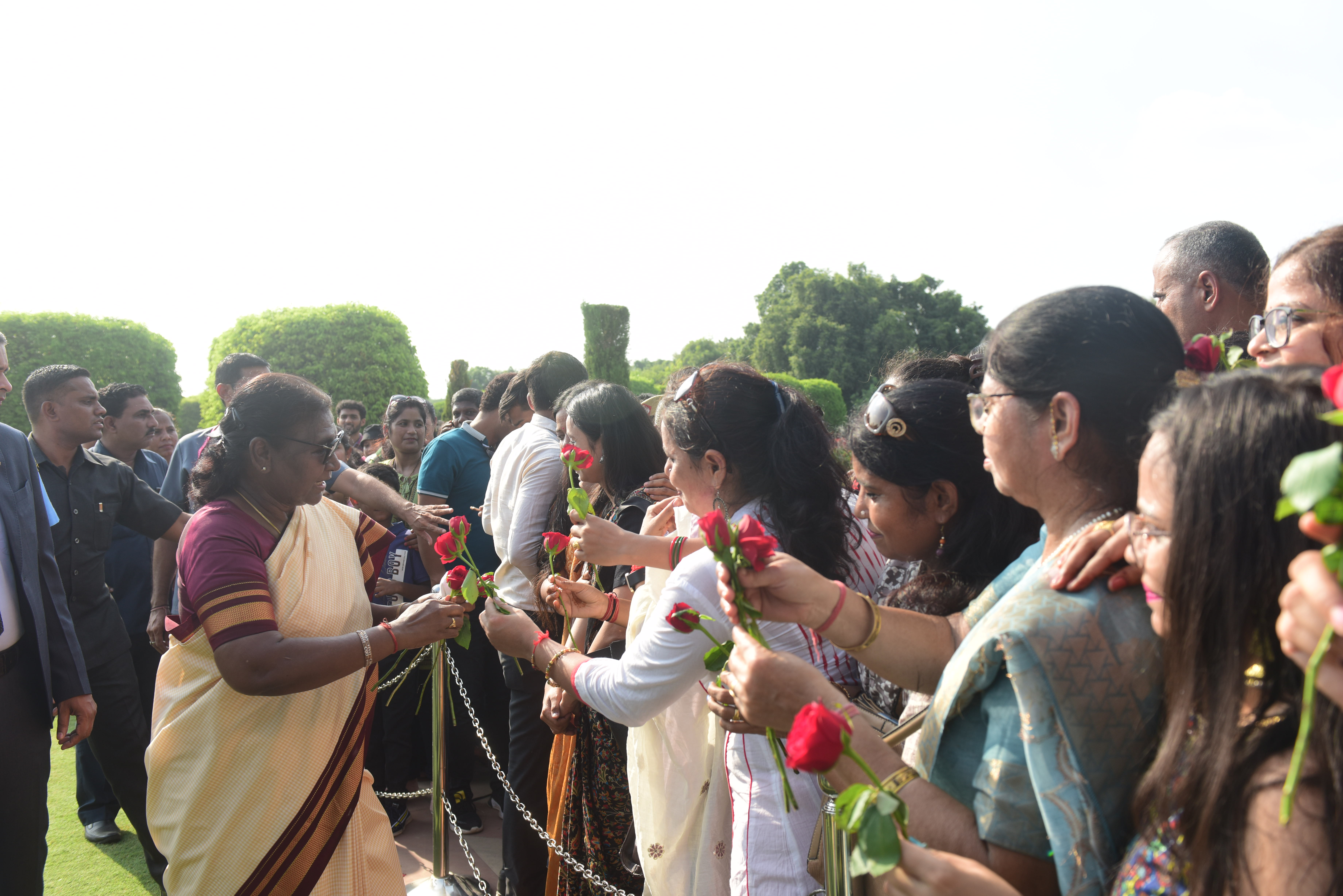 | Caption: | The President of India, Smt. Droupadi Murmu Interaction with the teachers invited to visit the Amrit Udyan as special invitees at Rashtrapati Bhavan on September 5, 2023. |