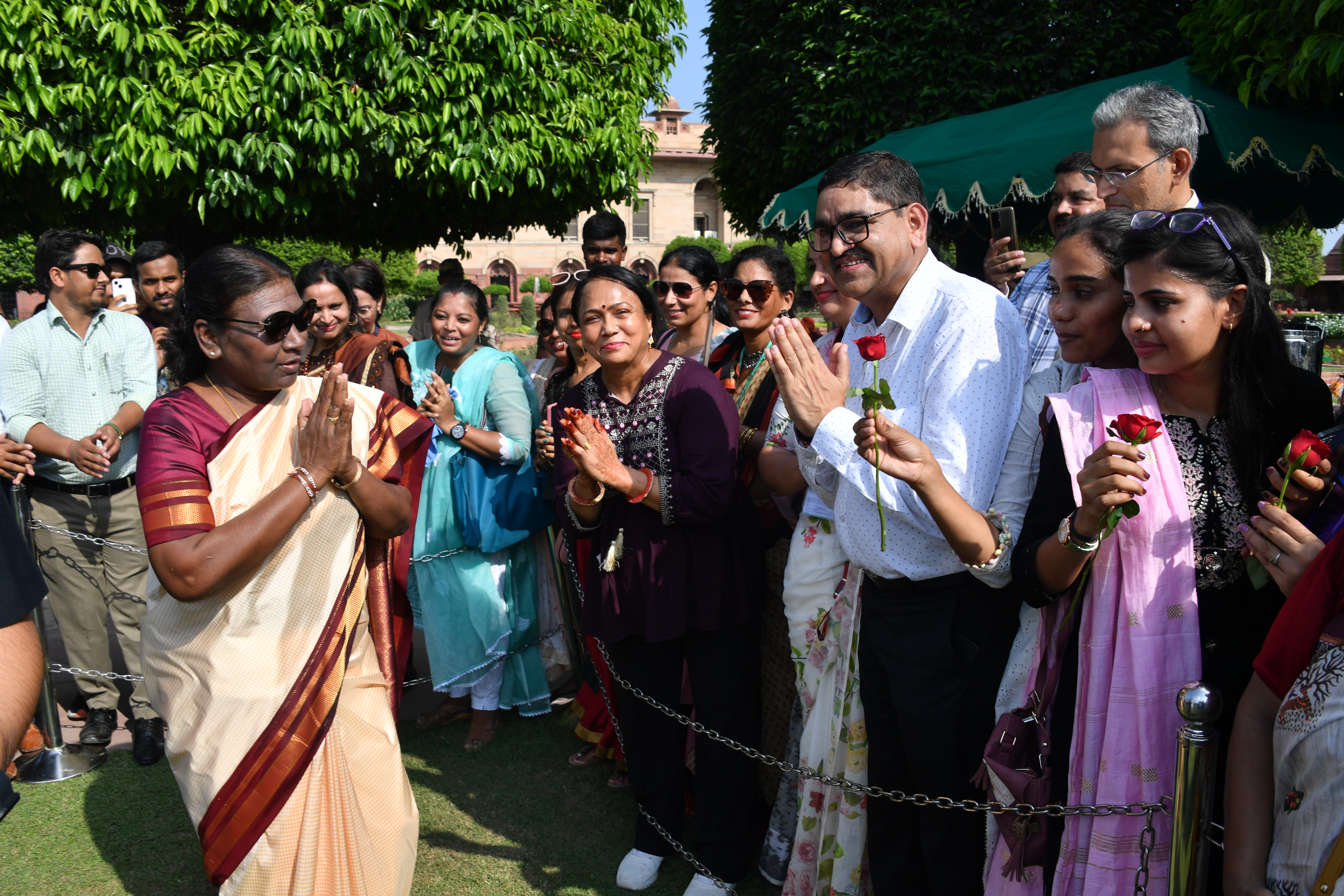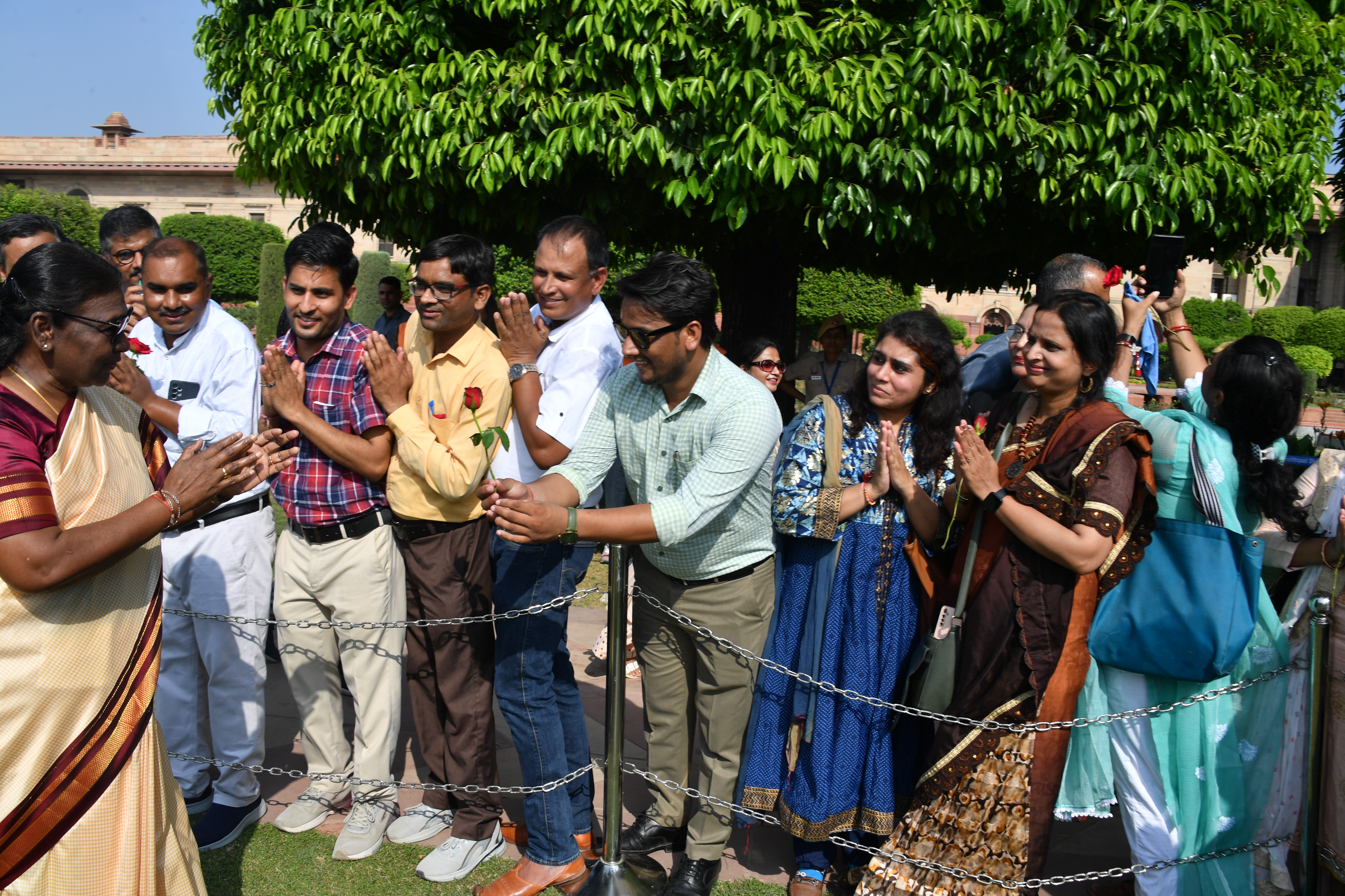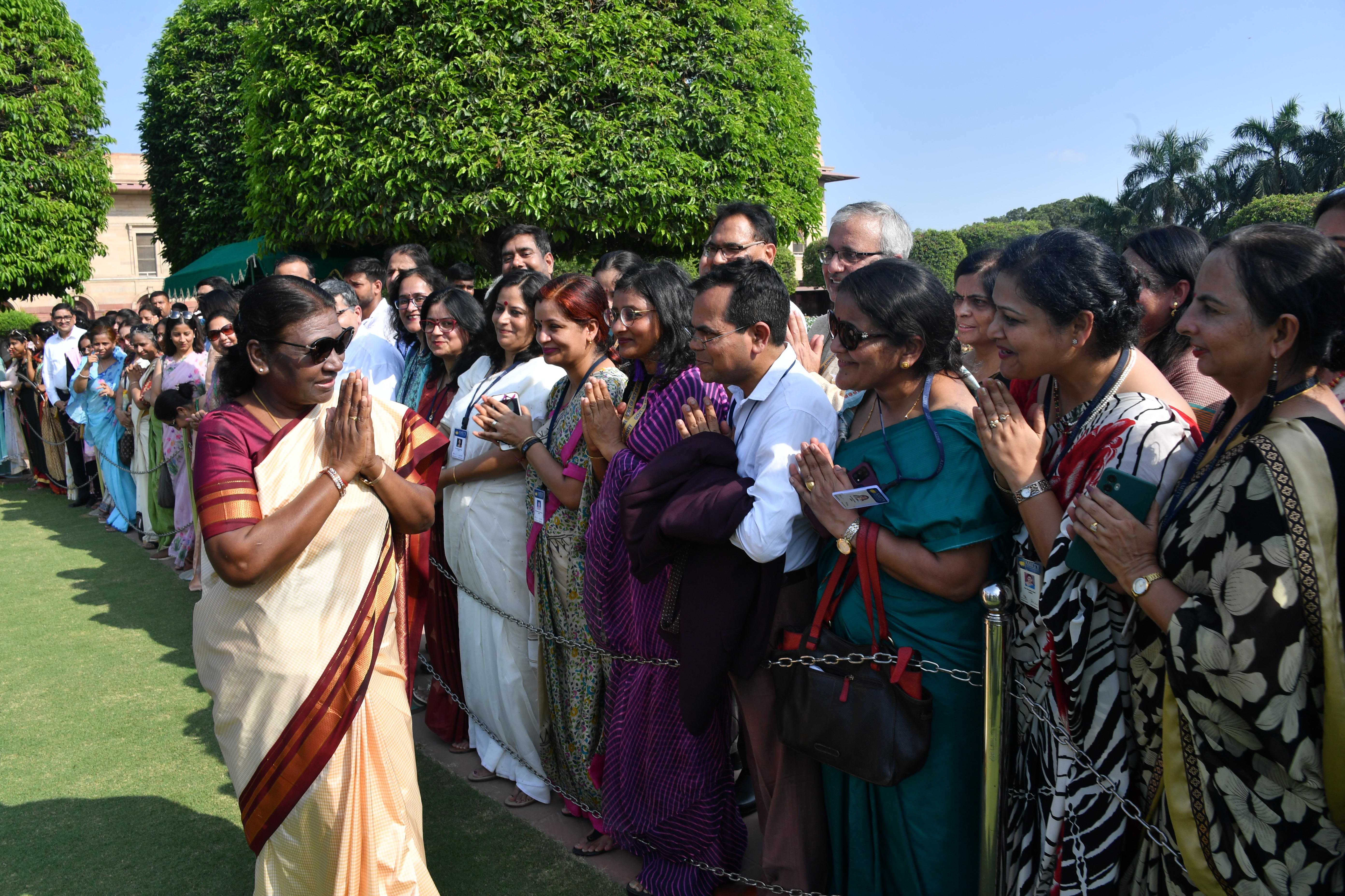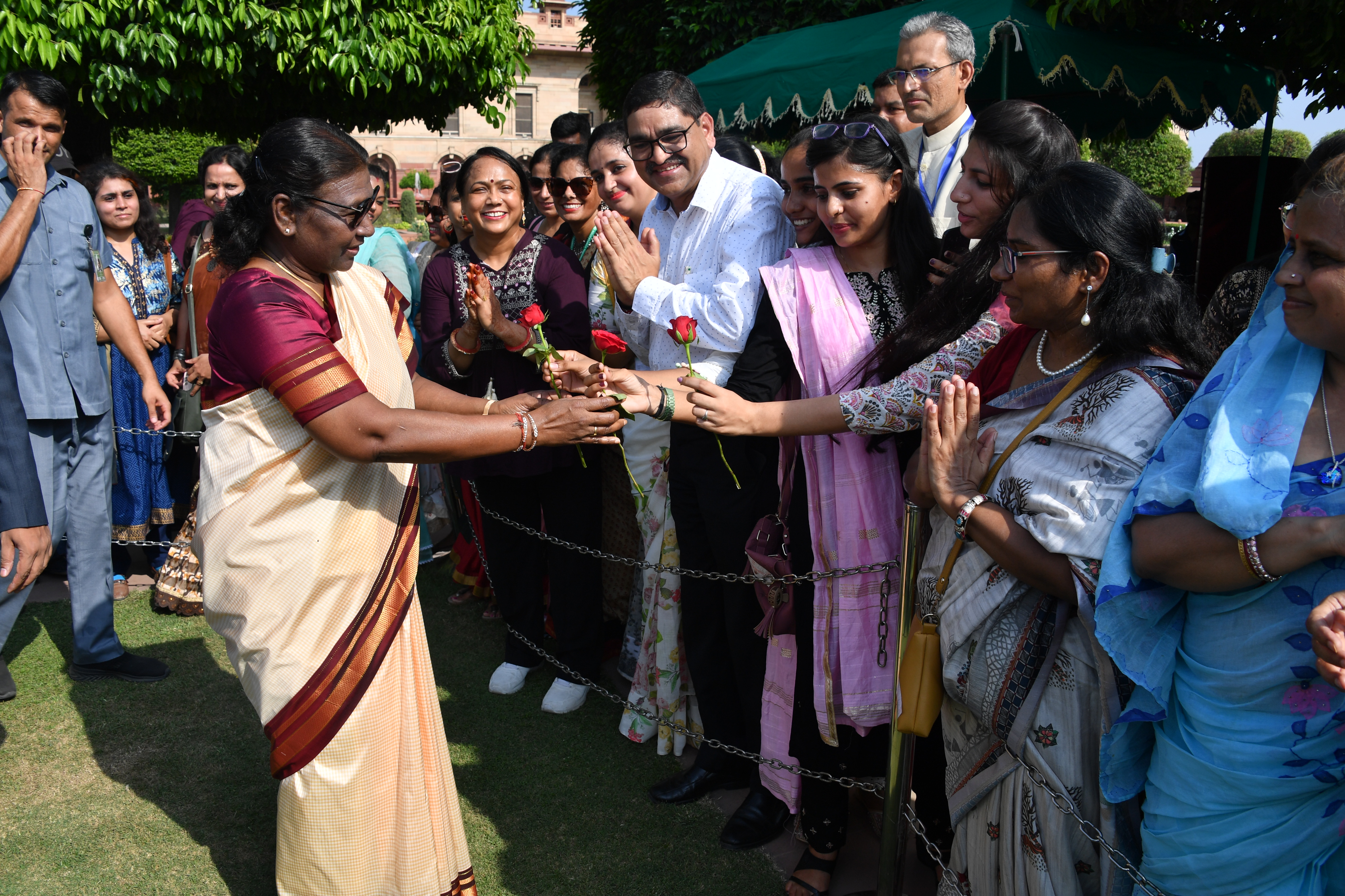 | Caption: | The President of India, Smt. Droupadi Murmu Interaction with the teachers invited to visit the Amrit Udyan as special invitees at Rashtrapati Bhavan on September 5, 2023. |