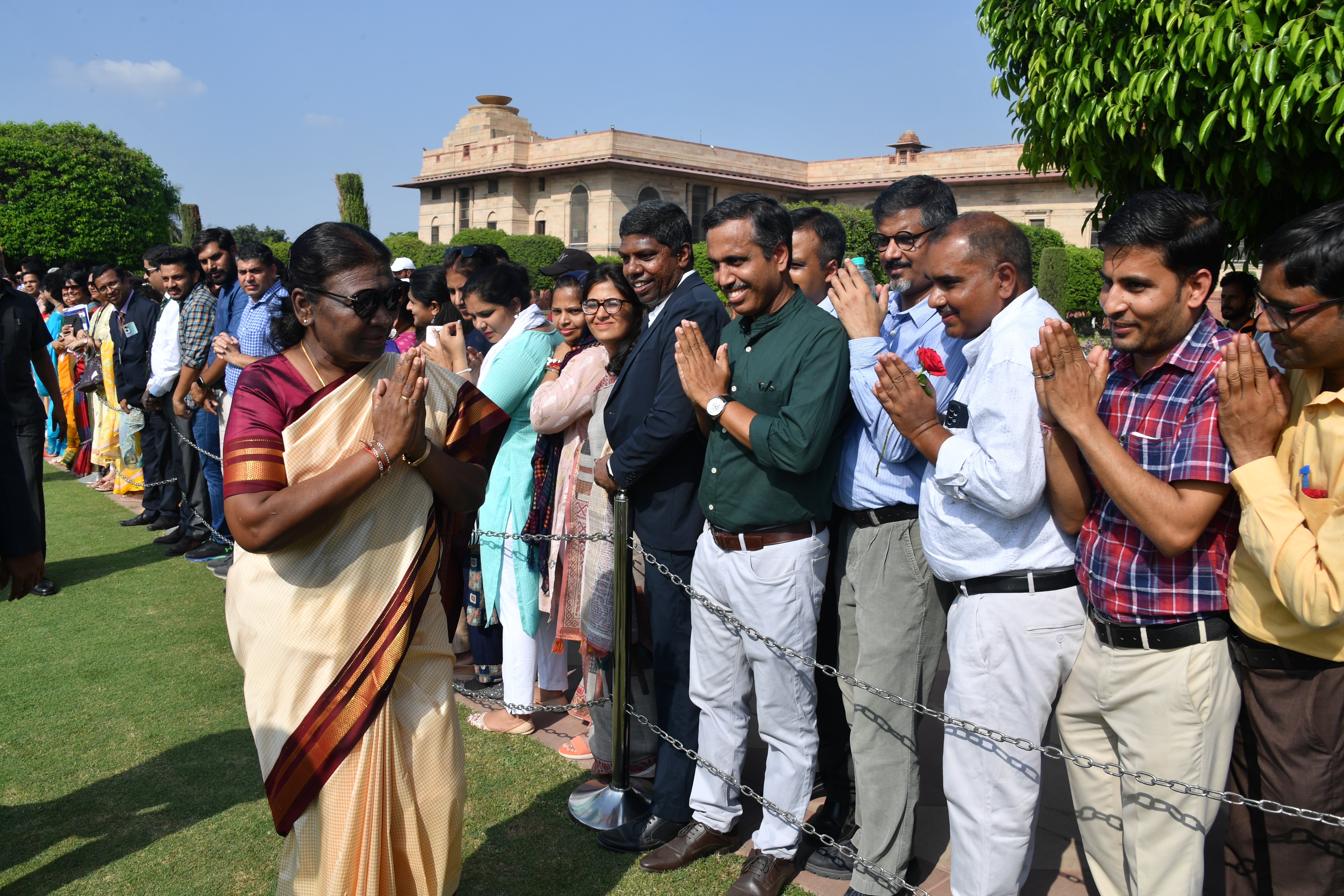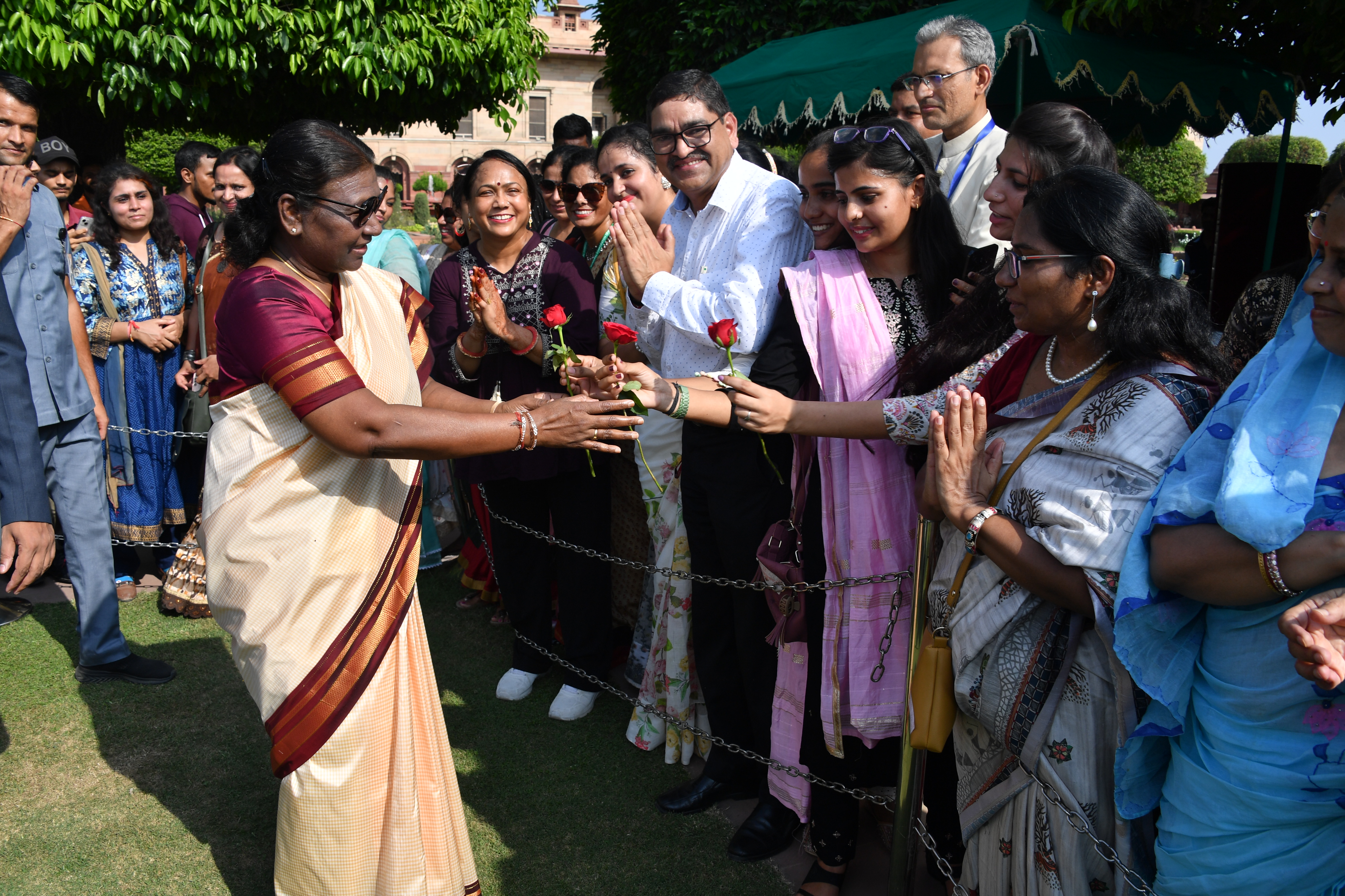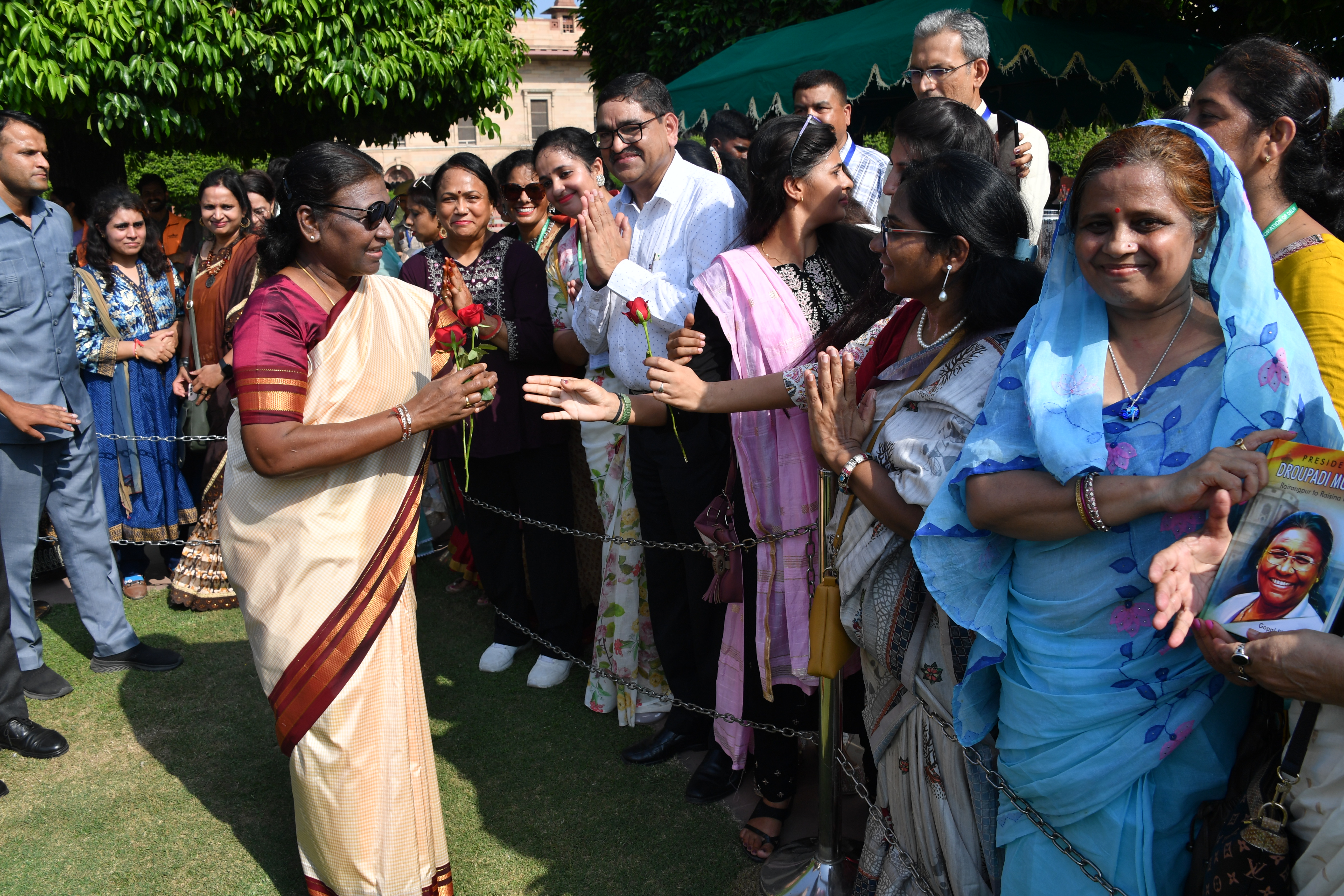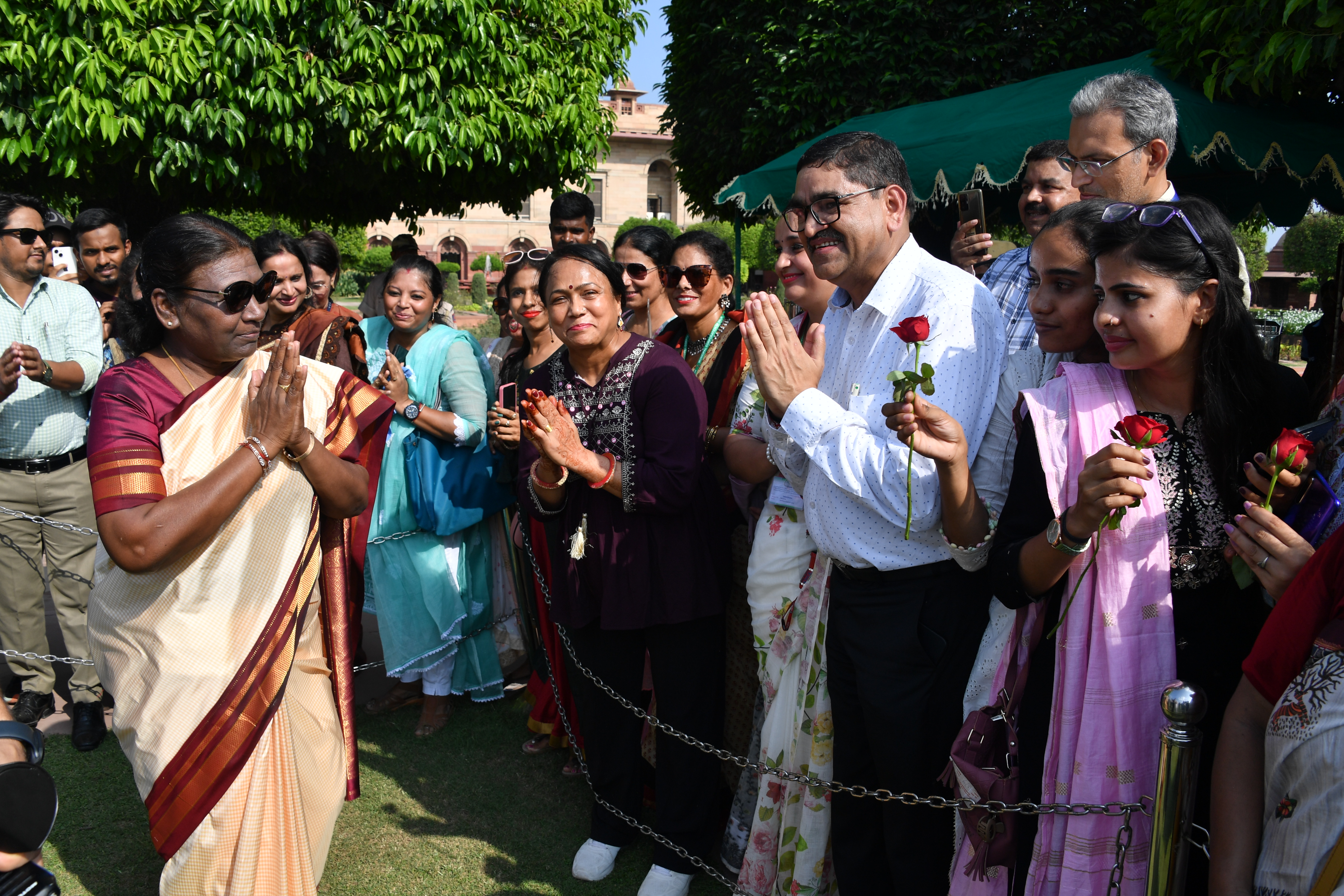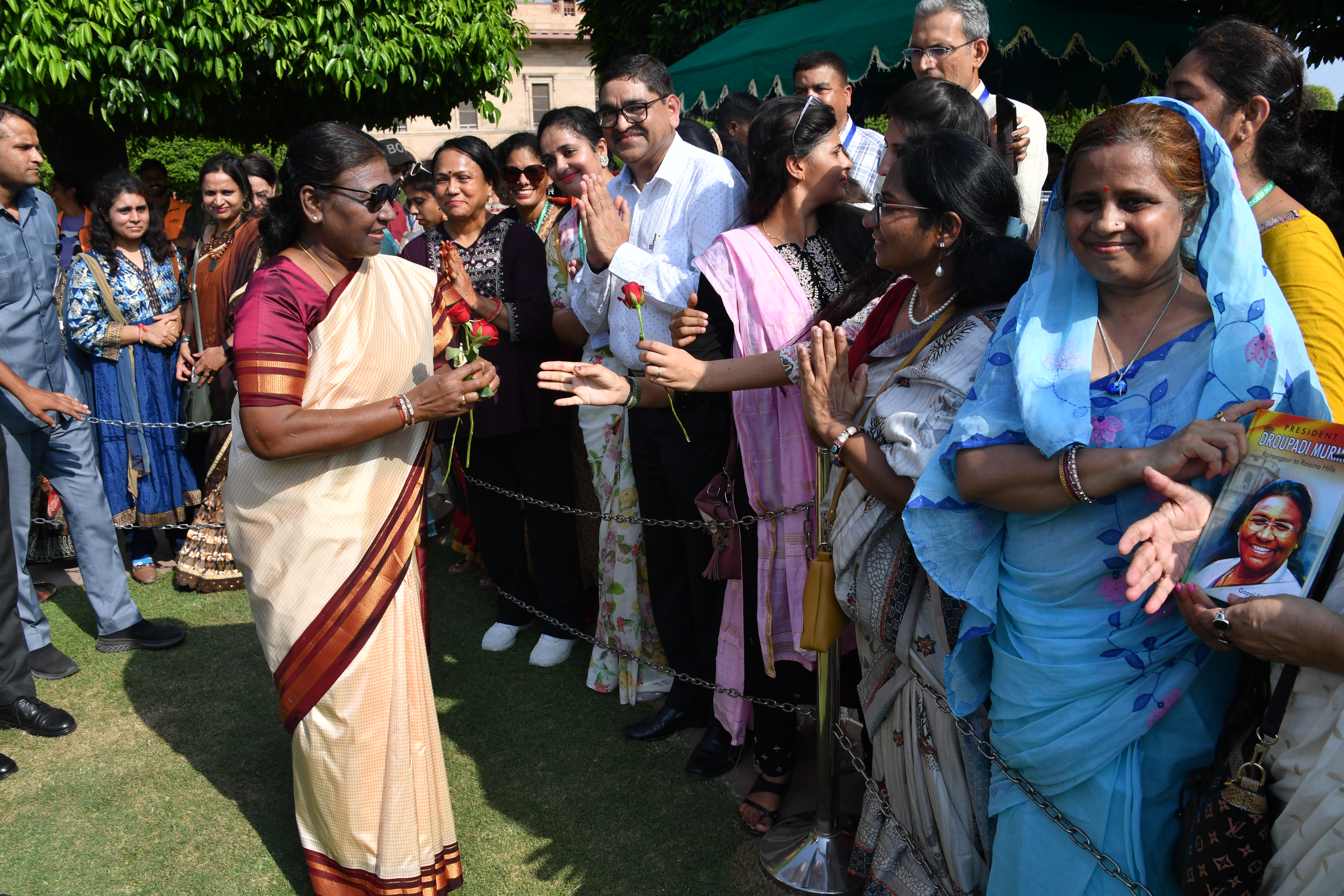 | Caption: | The President of India, Smt. Droupadi Murmu Interaction with the teachers invited to visit the Amrit Udyan as special invitees at Rashtrapati Bhavan on September 5, 2023. |
