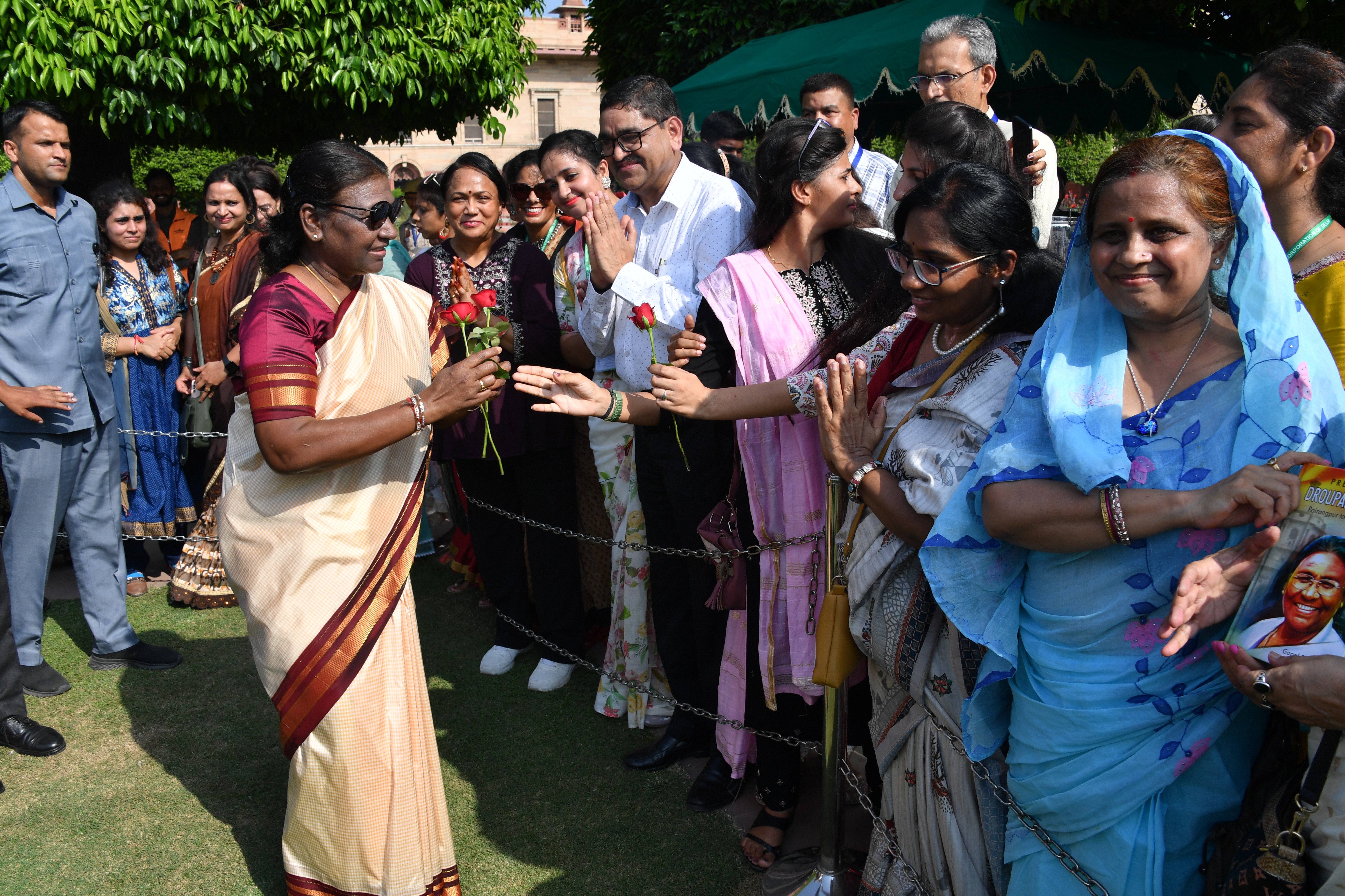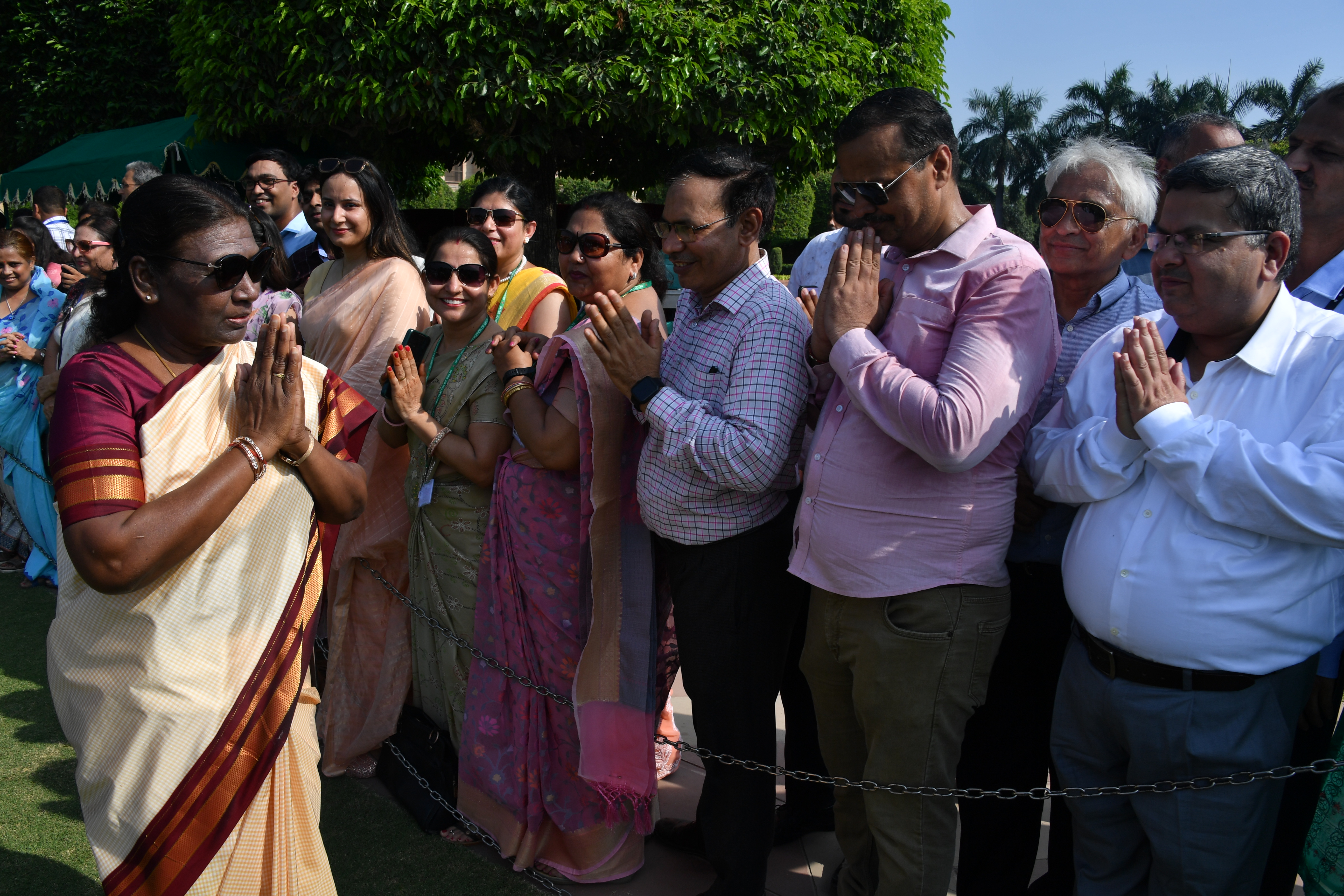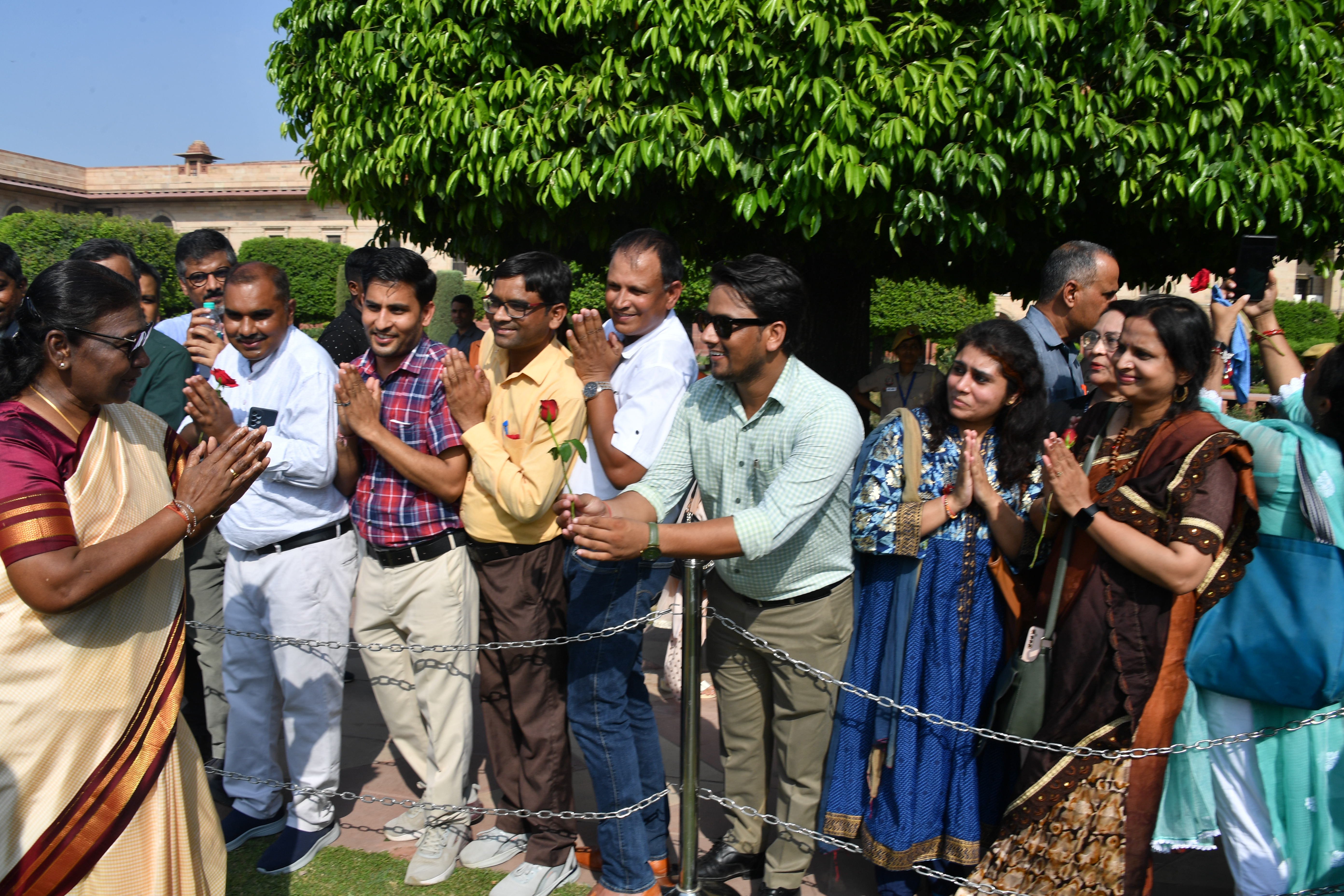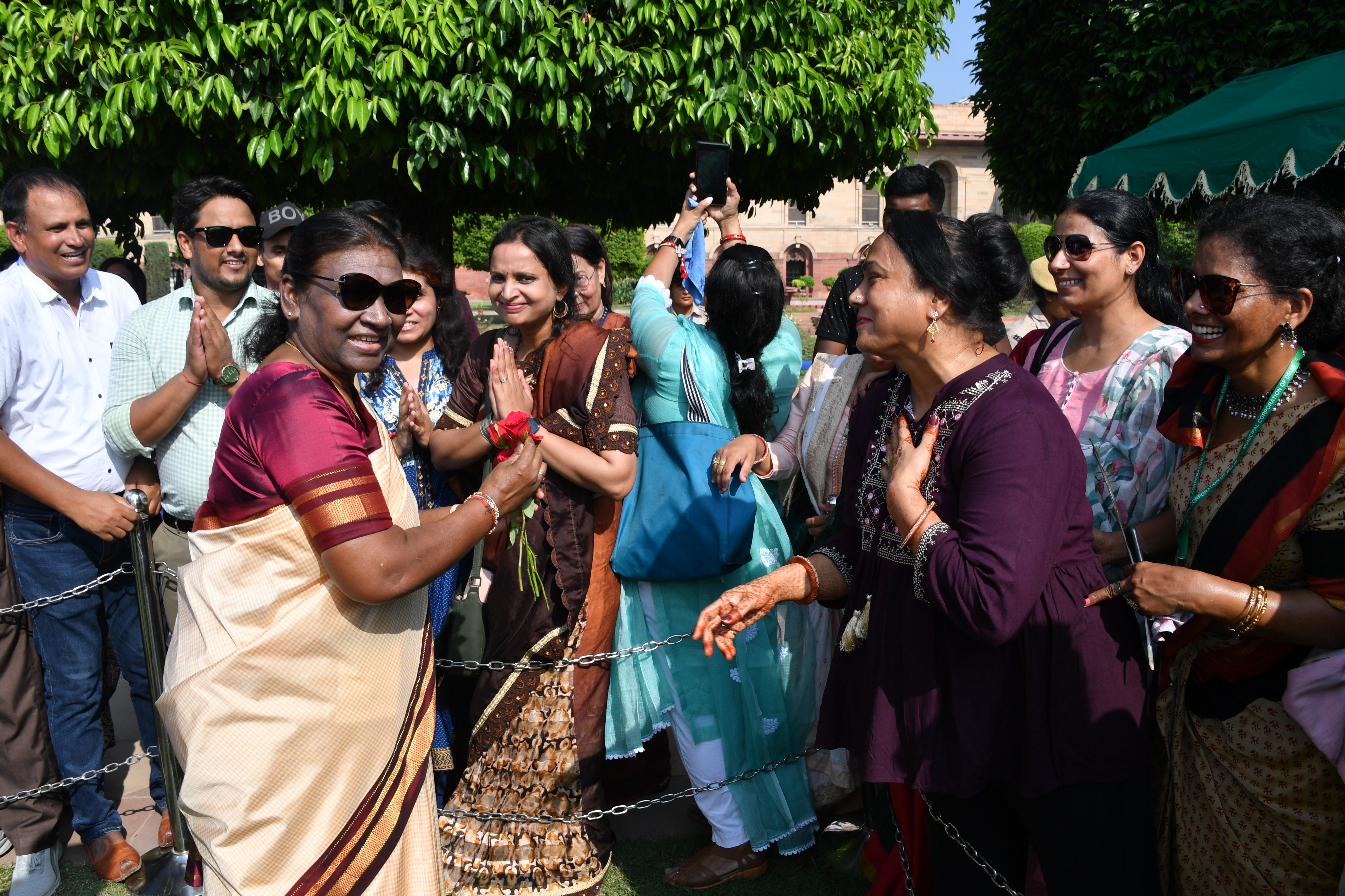 | Caption: | The President of India, Smt. Droupadi Murmu Interaction with the teachers invited to visit the Amrit Udyan as special invitees at Rashtrapati Bhavan on September 5, 2023. |