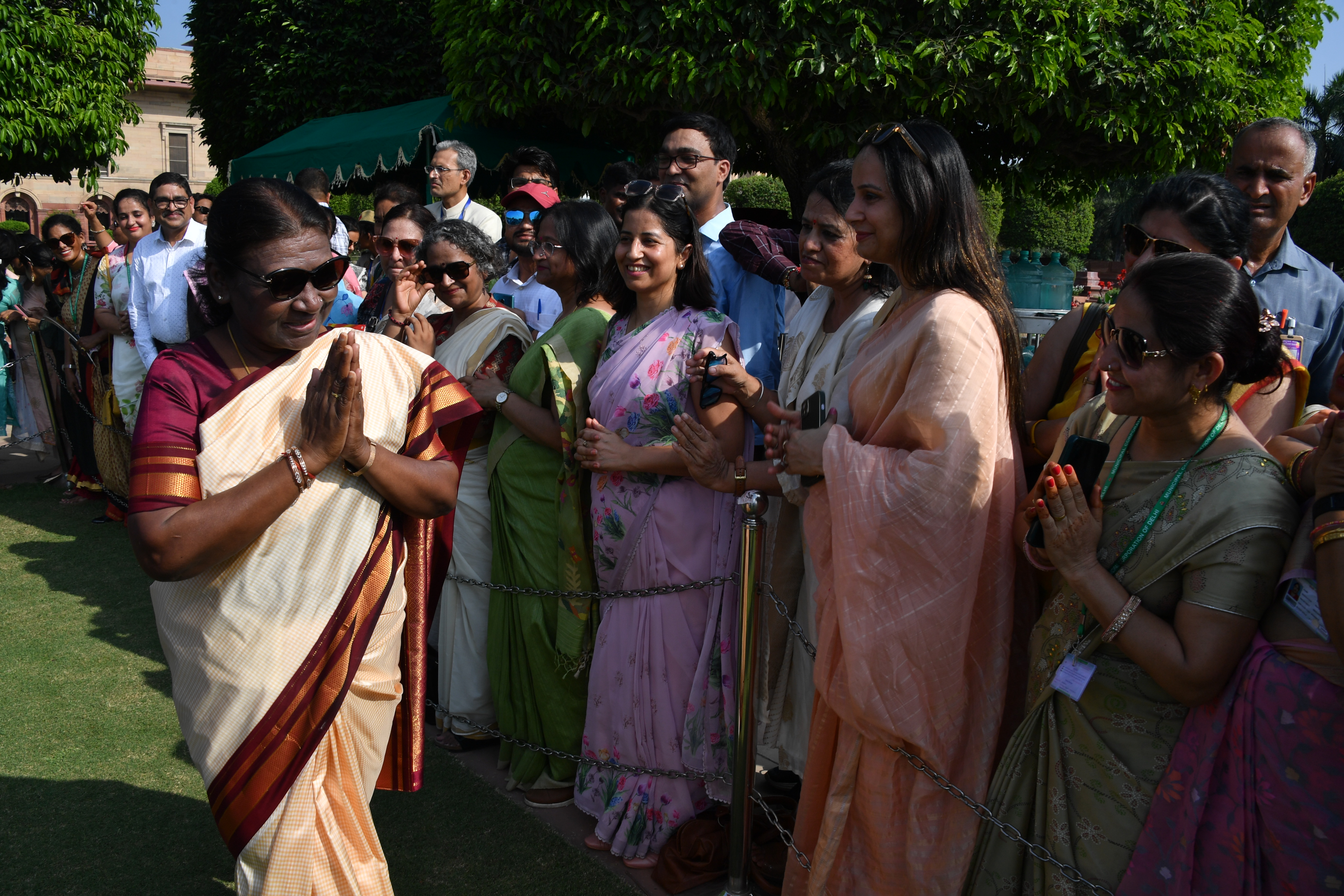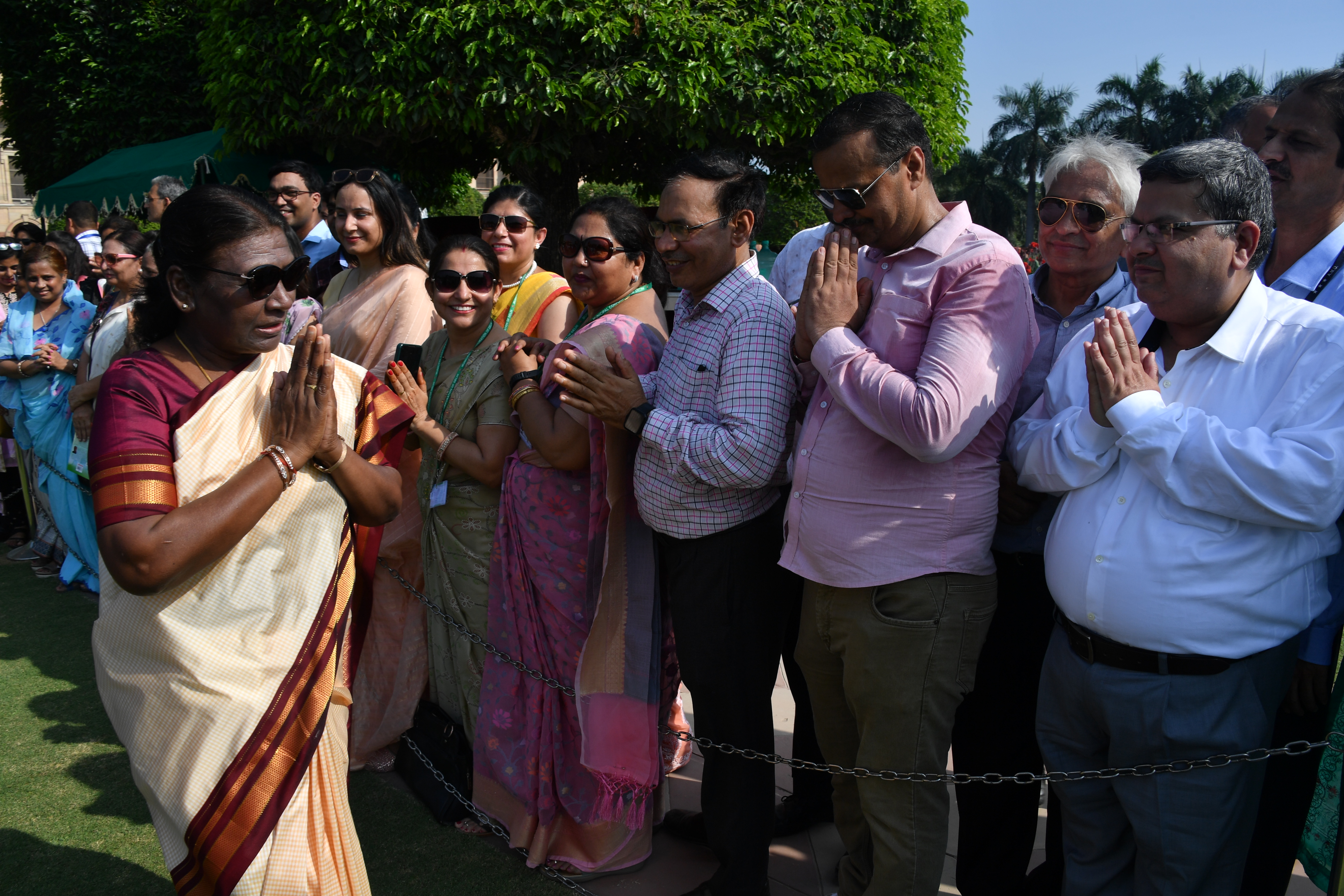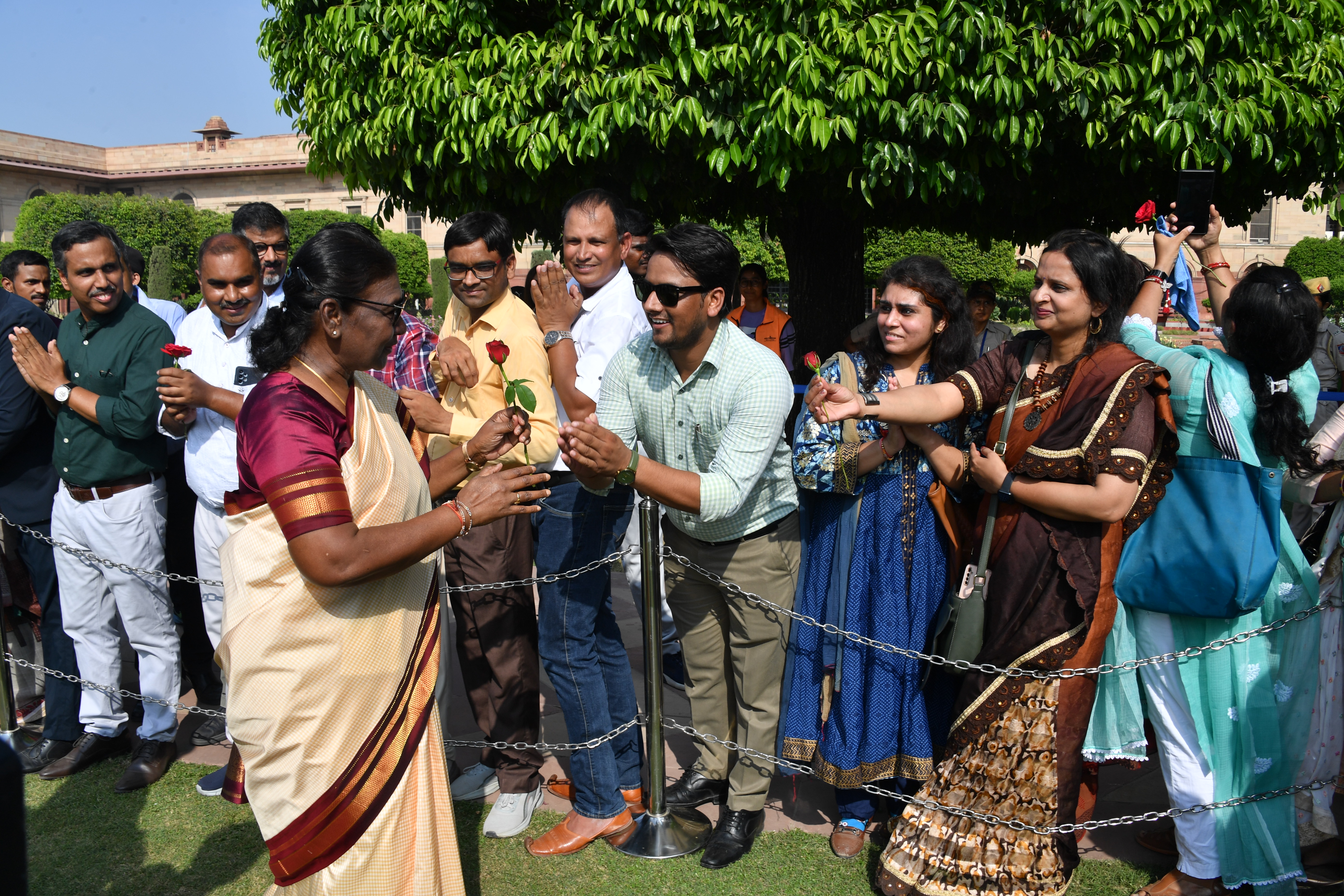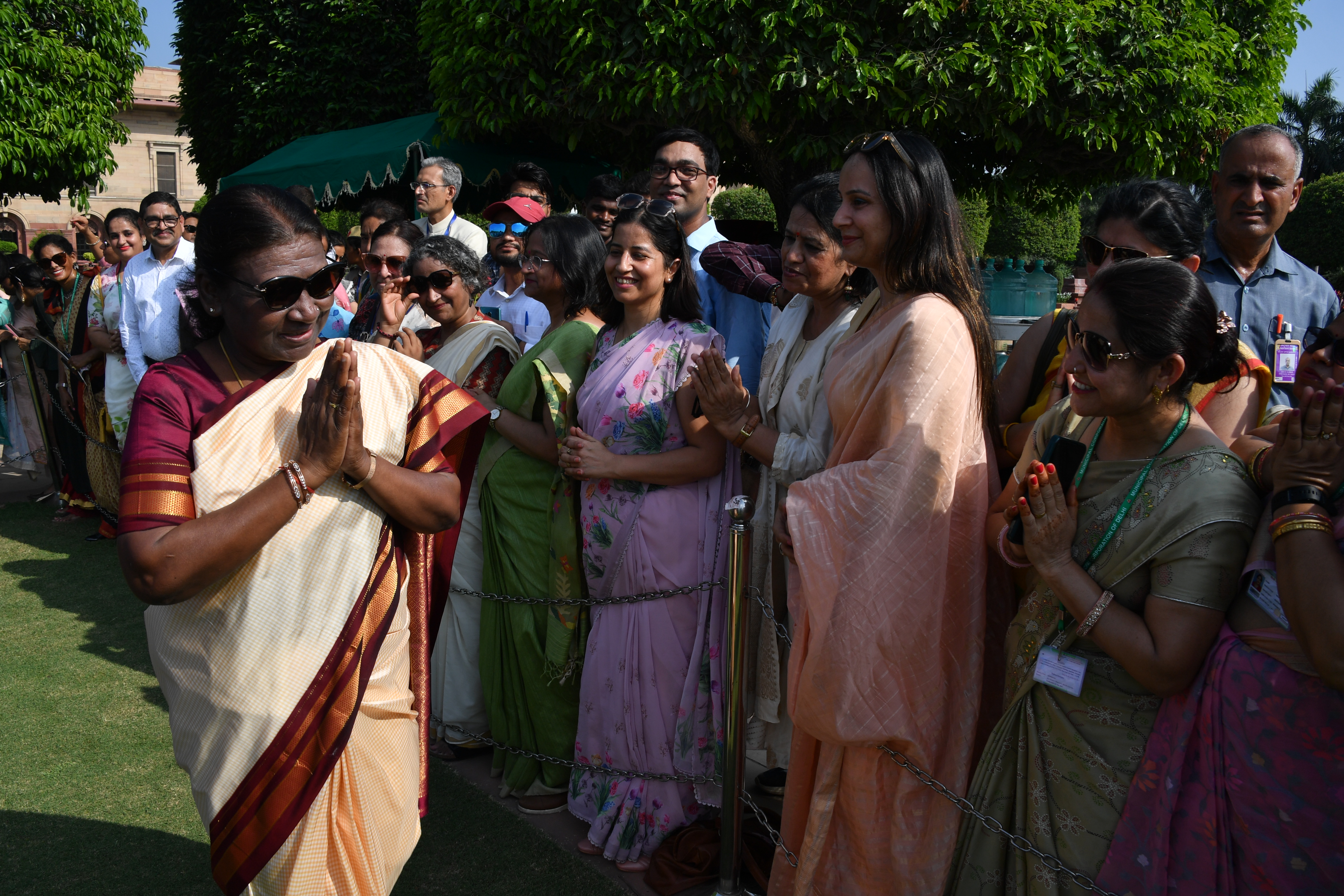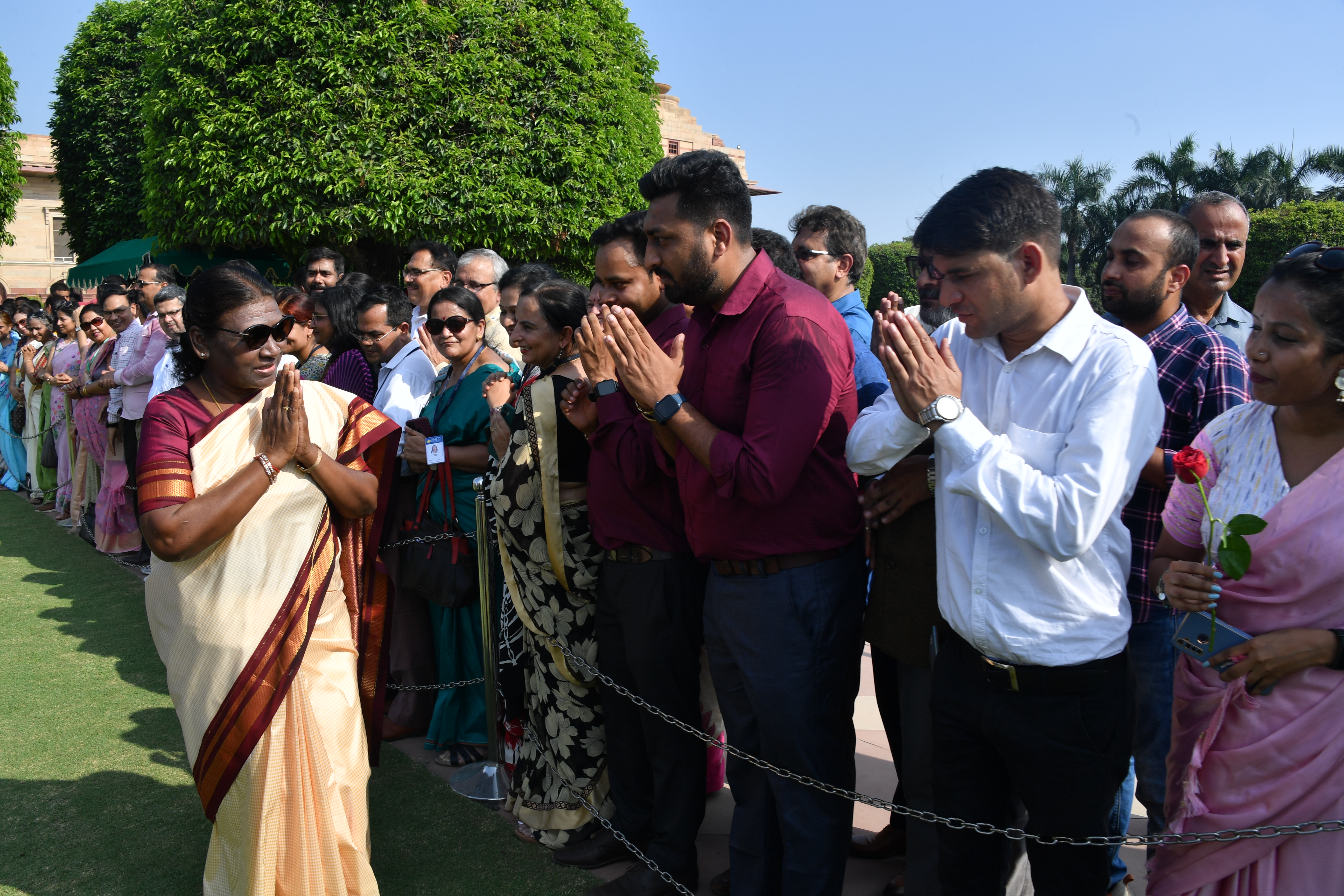 | Caption: | The President of India, Smt. Droupadi Murmu Interaction with the teachers invited to visit the Amrit Udyan as special invitees at Rashtrapati Bhavan on September 5, 2023. |
