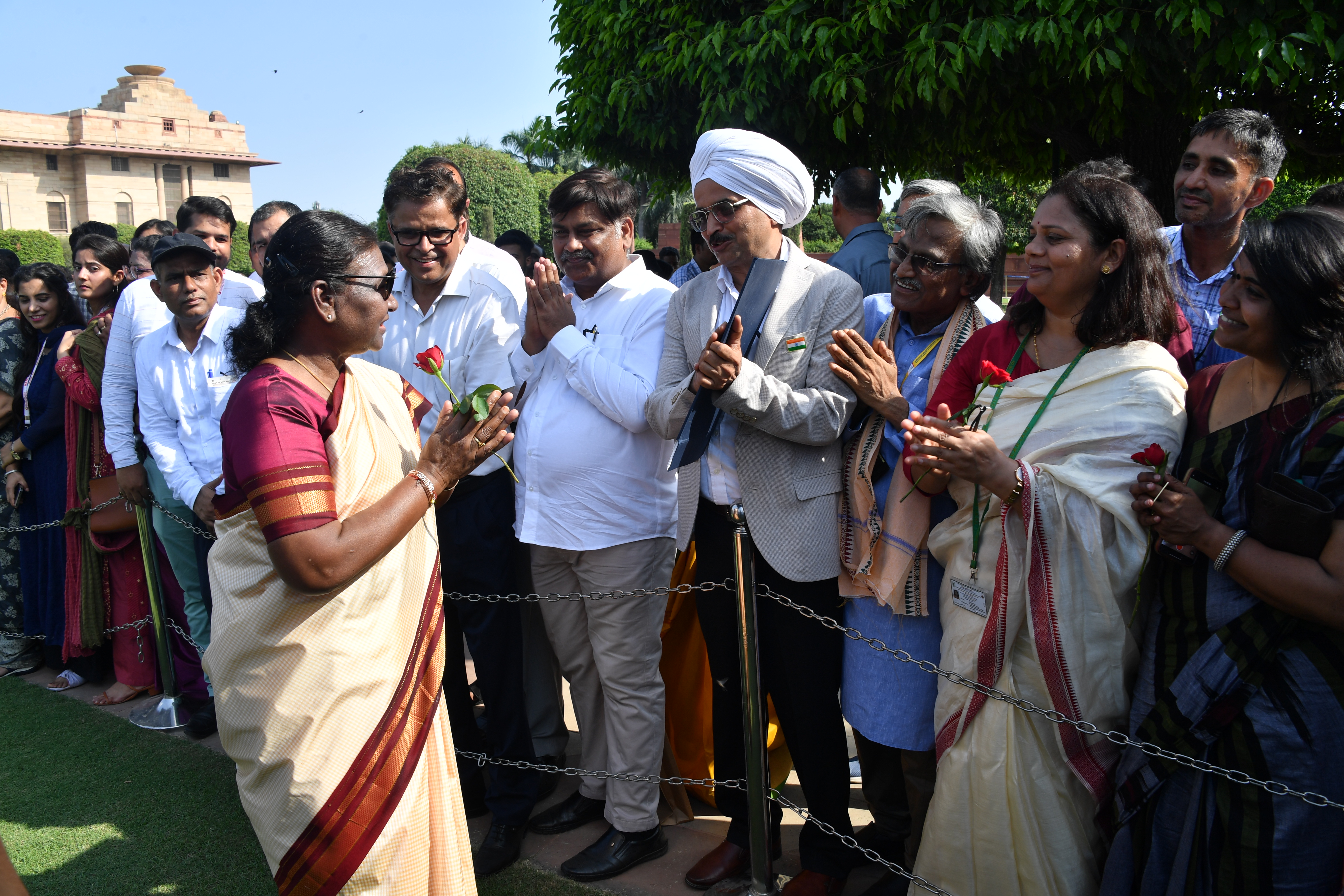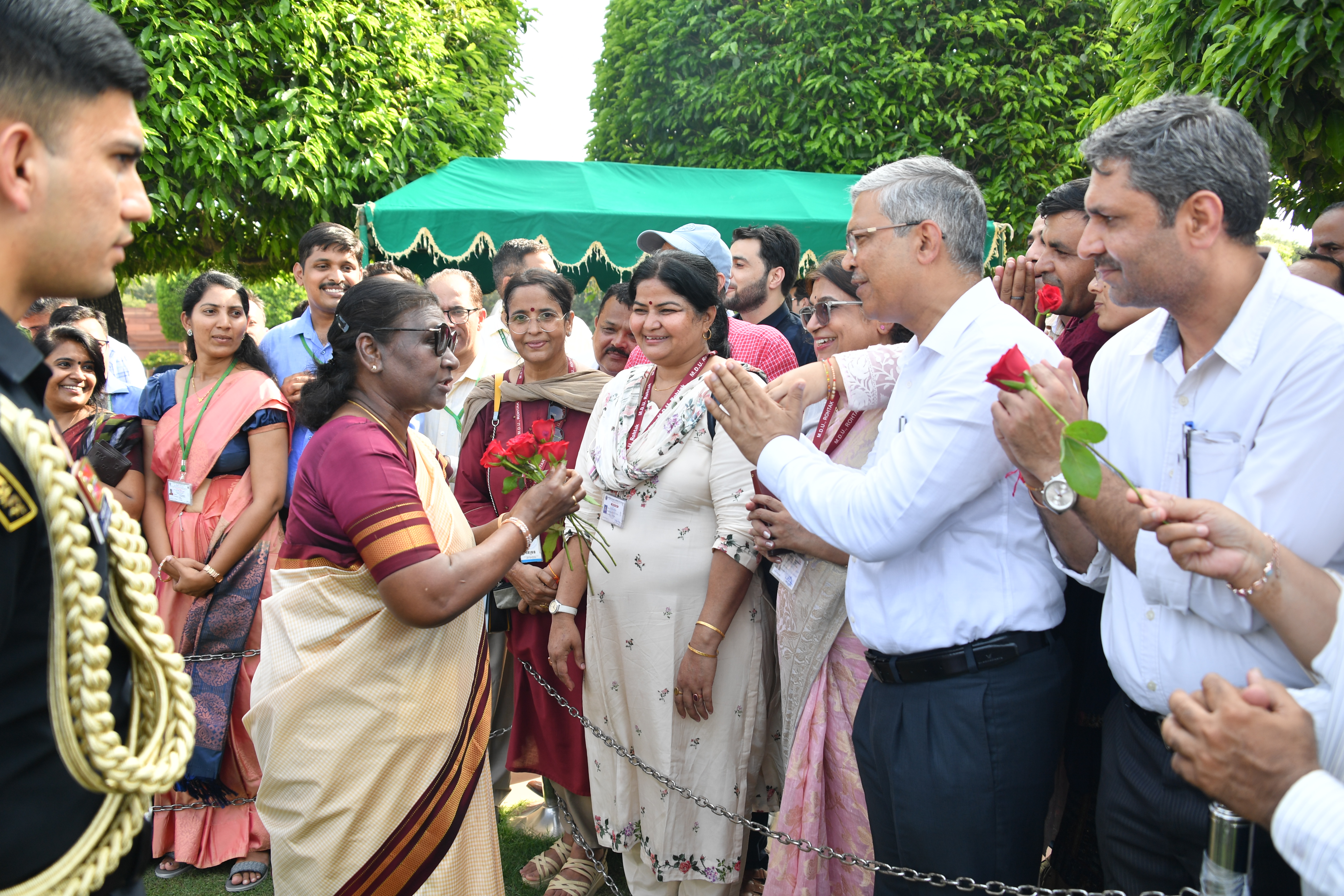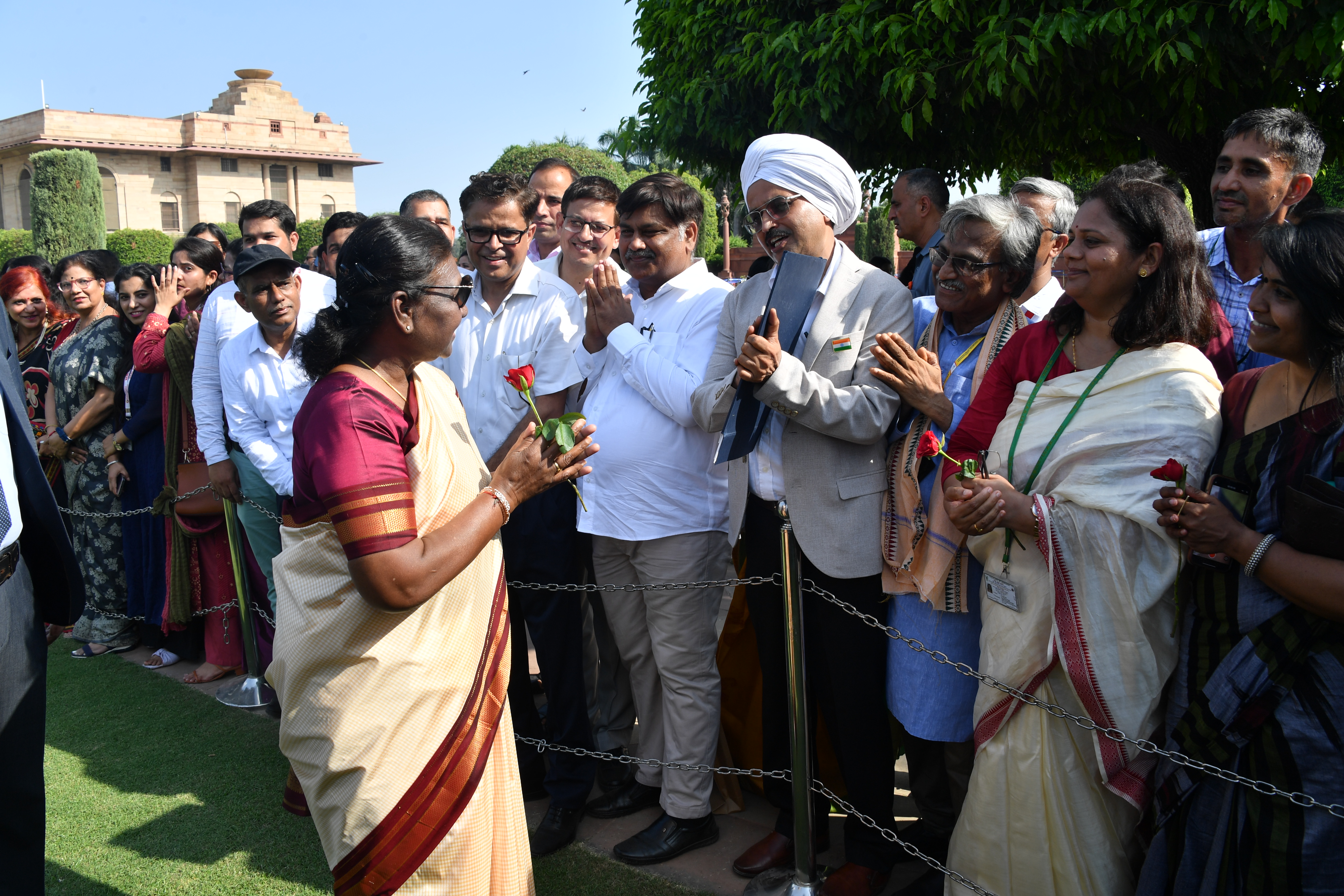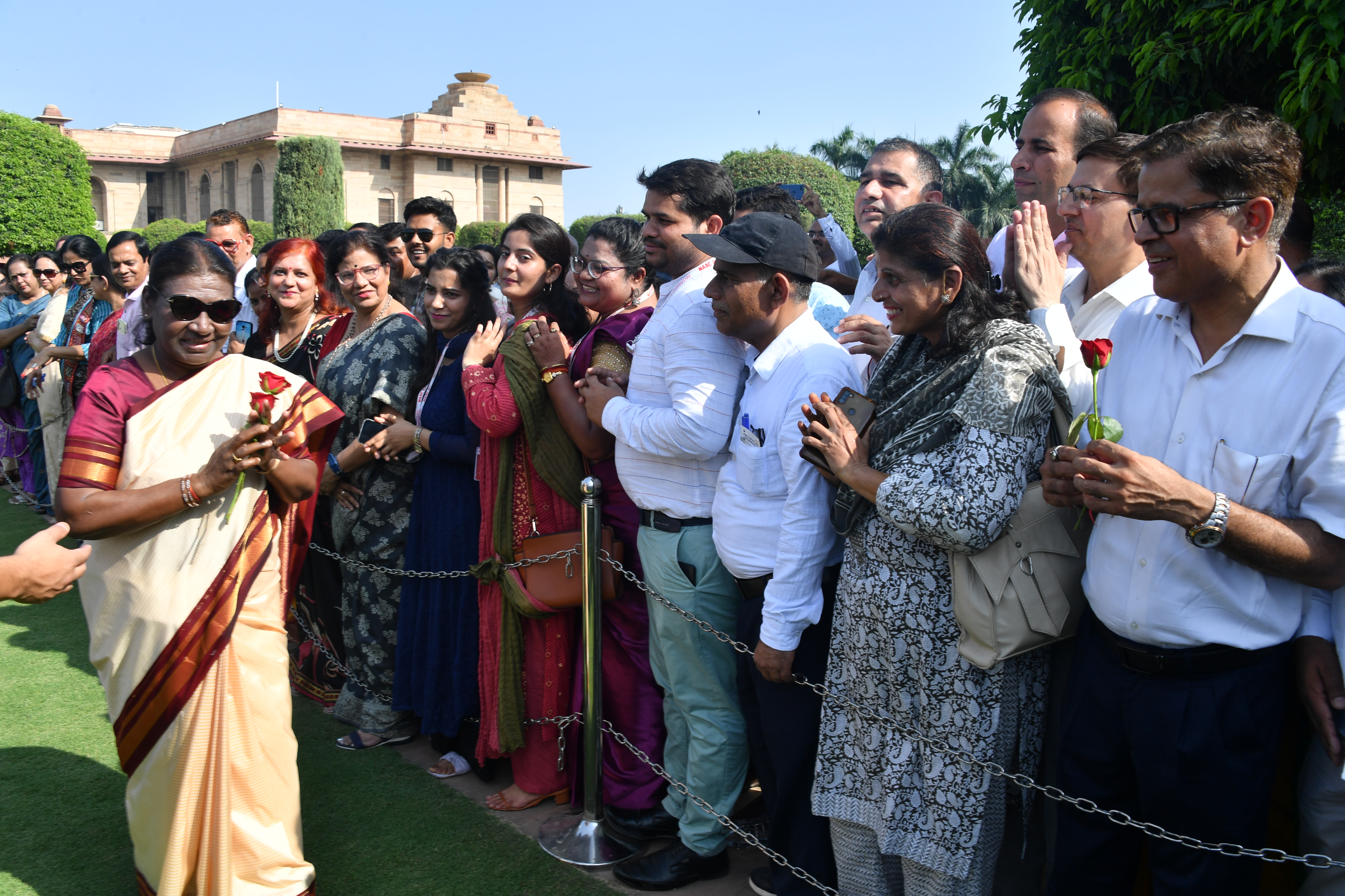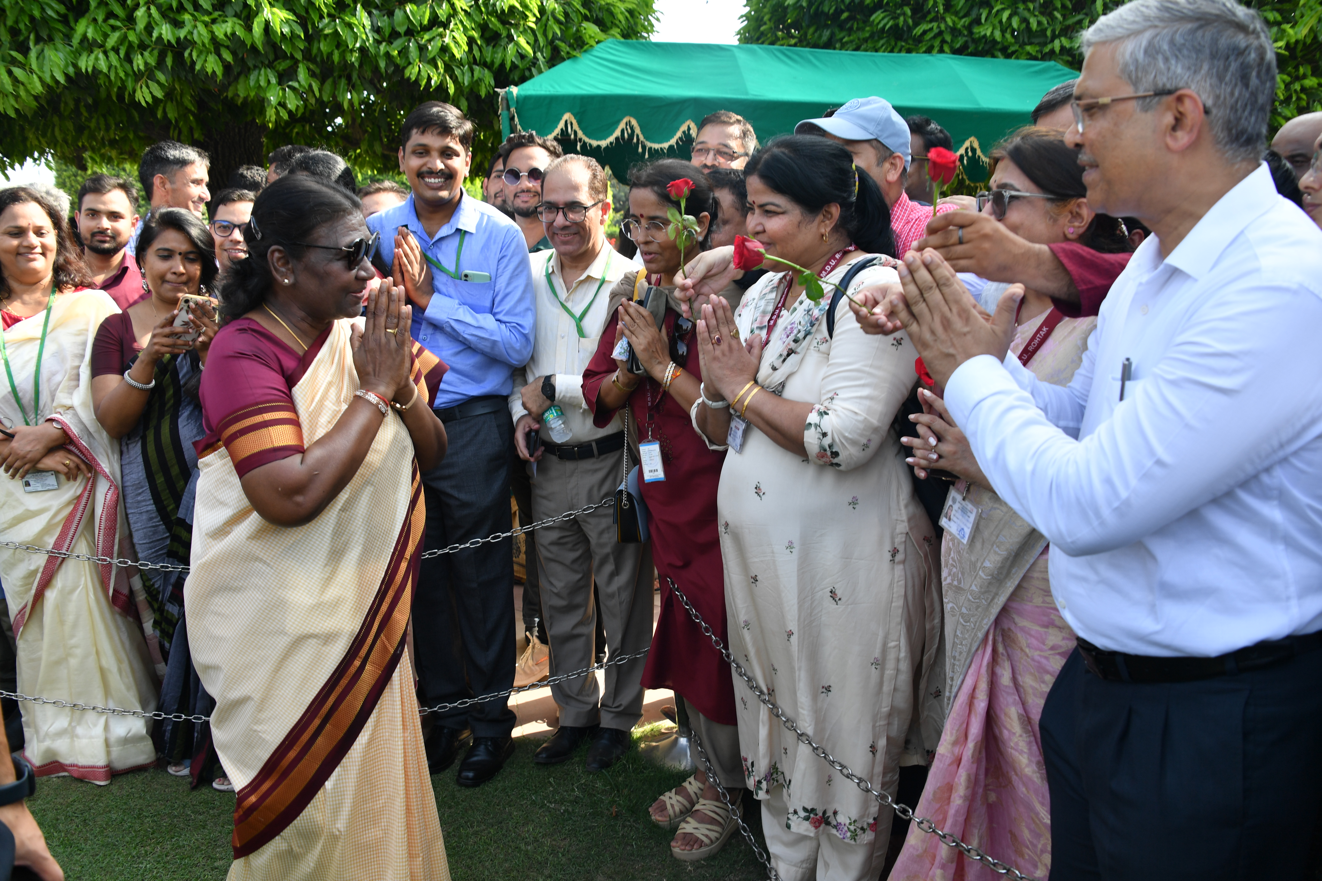 | Caption: | The President of India, Smt. Droupadi Murmu Interaction with the teachers invited to visit the Amrit Udyan as special invitees at Rashtrapati Bhavan on September 5, 2023. |