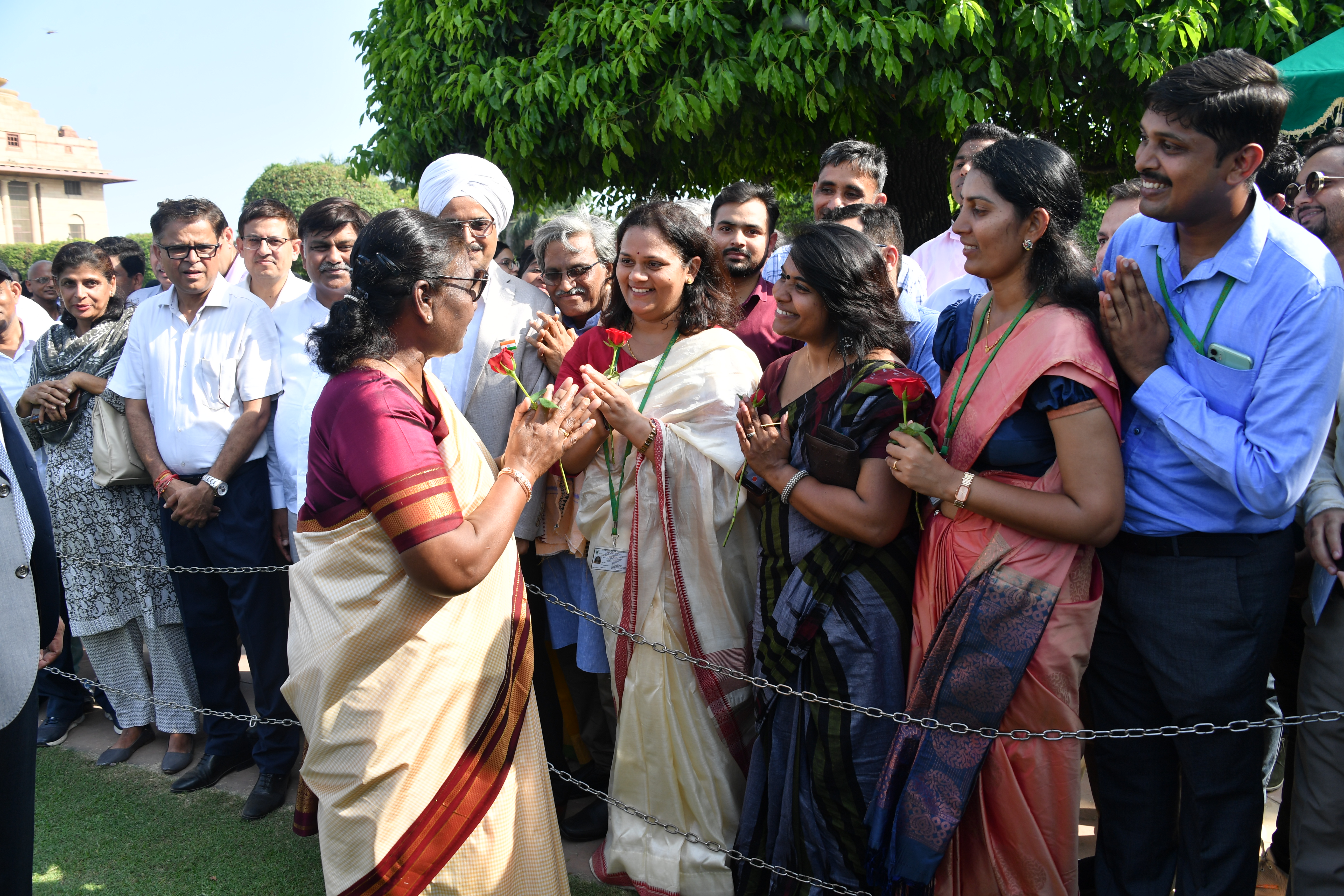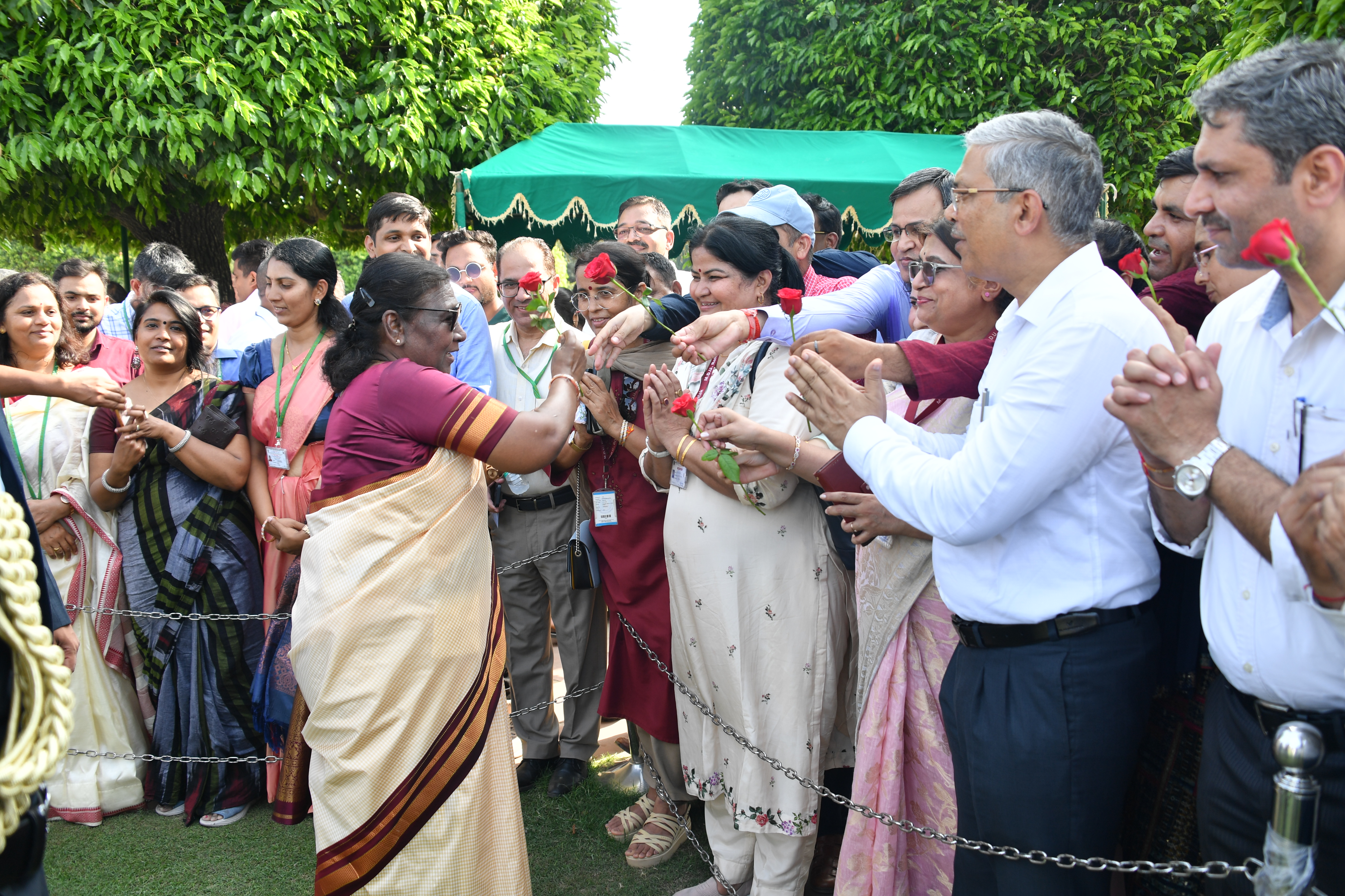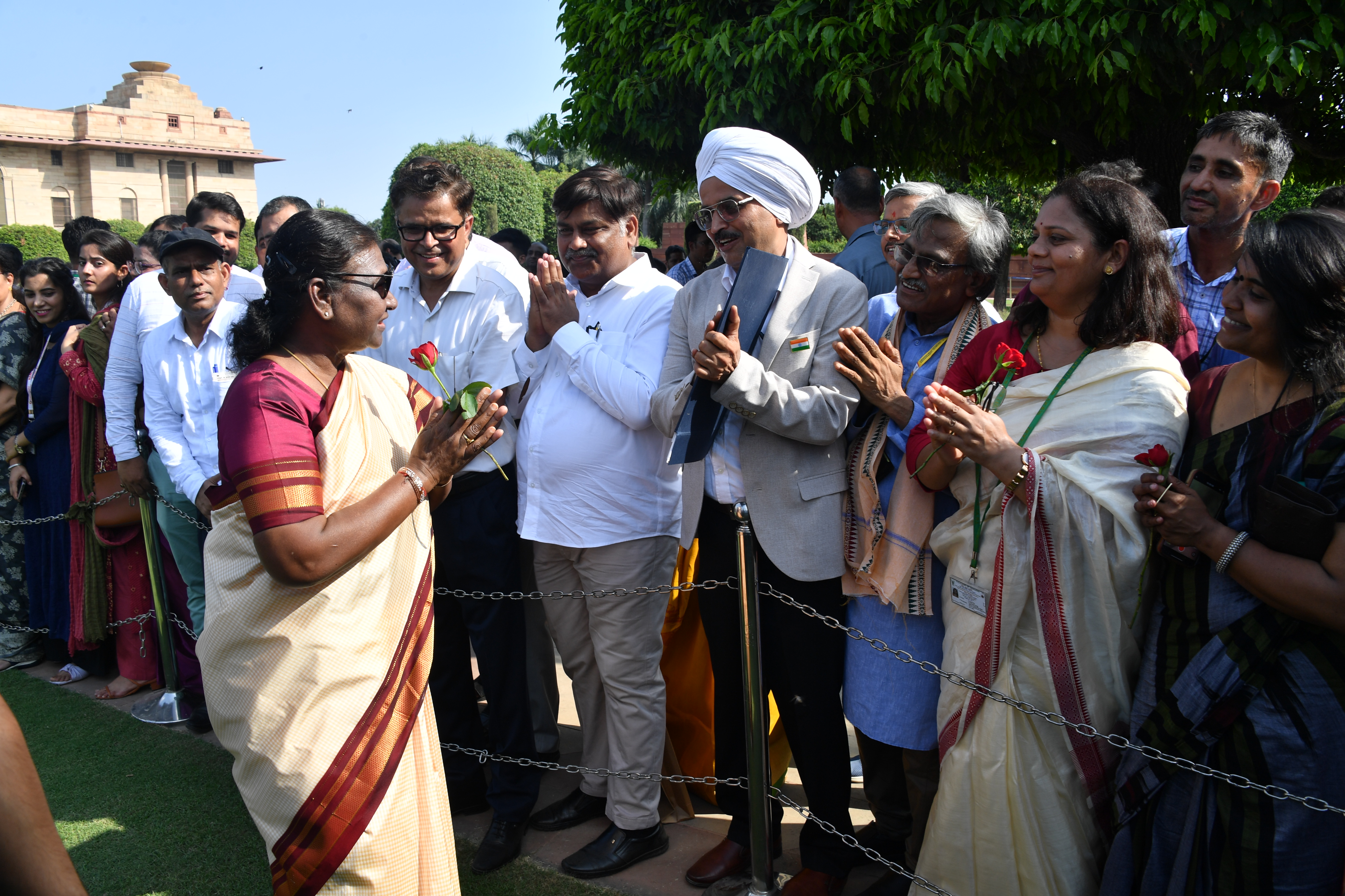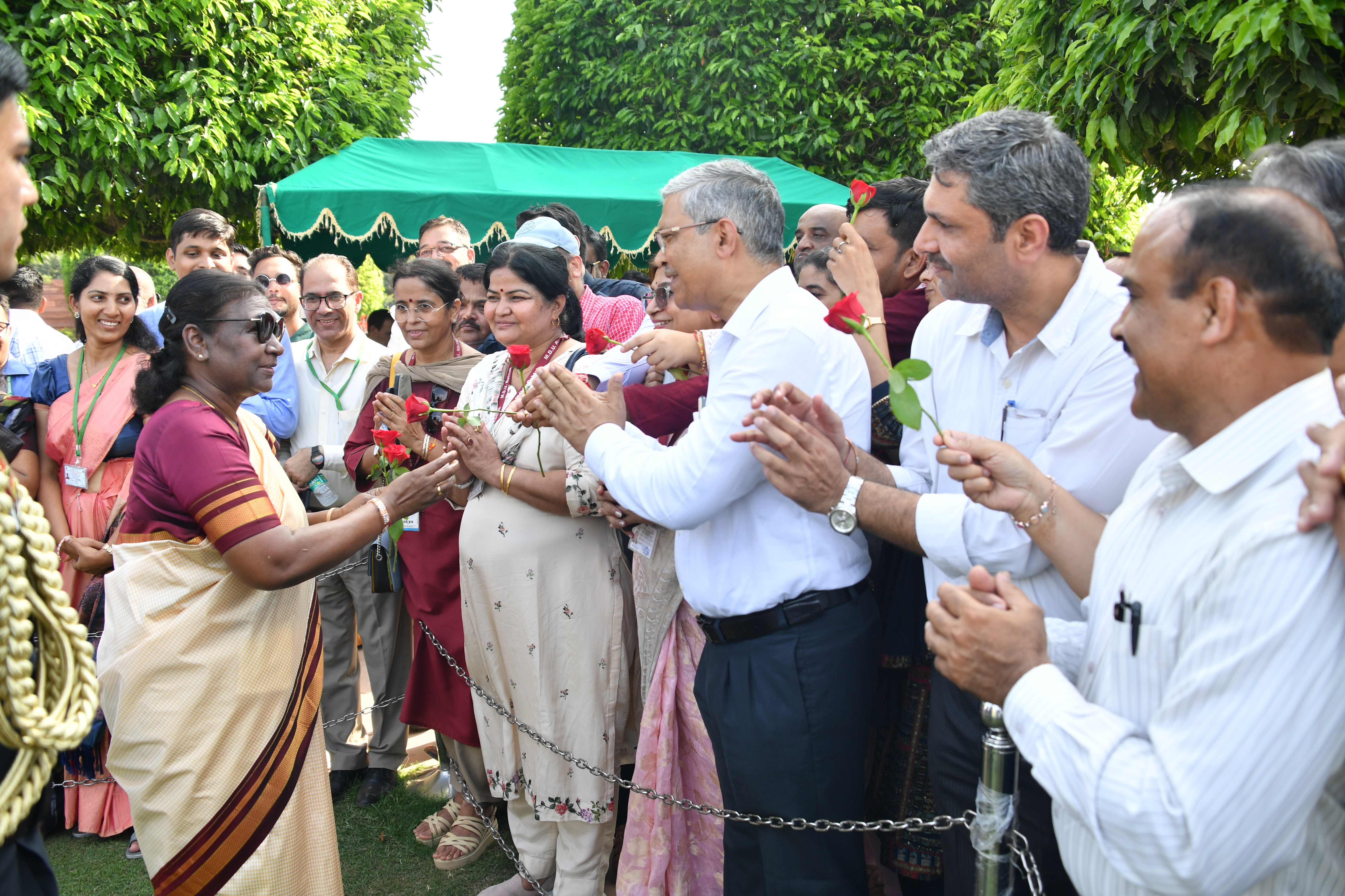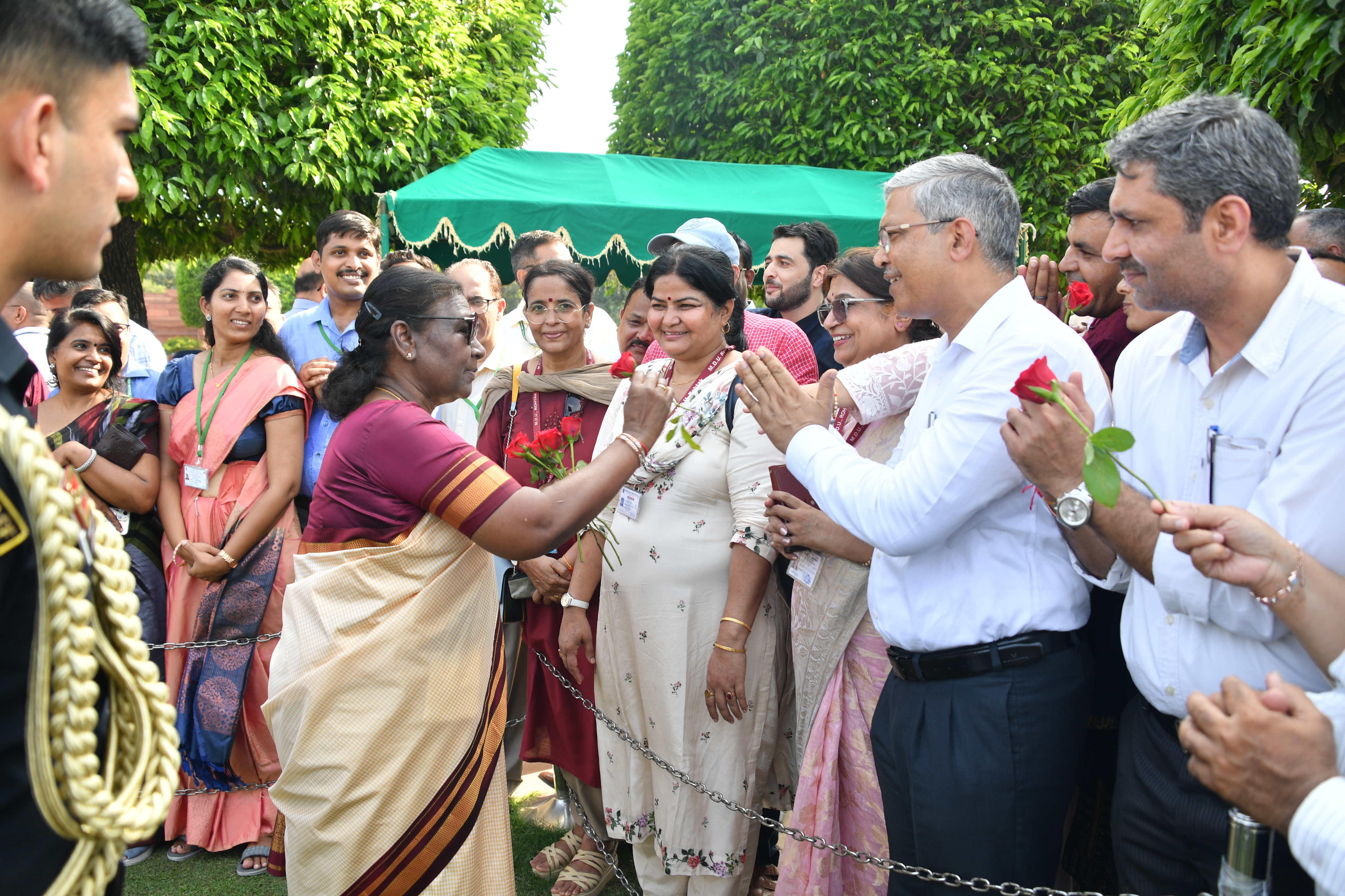 | Caption: | The President of India, Smt. Droupadi Murmu Interaction with the teachers invited to visit the Amrit Udyan as special invitees at Rashtrapati Bhavan on September 5, 2023. |