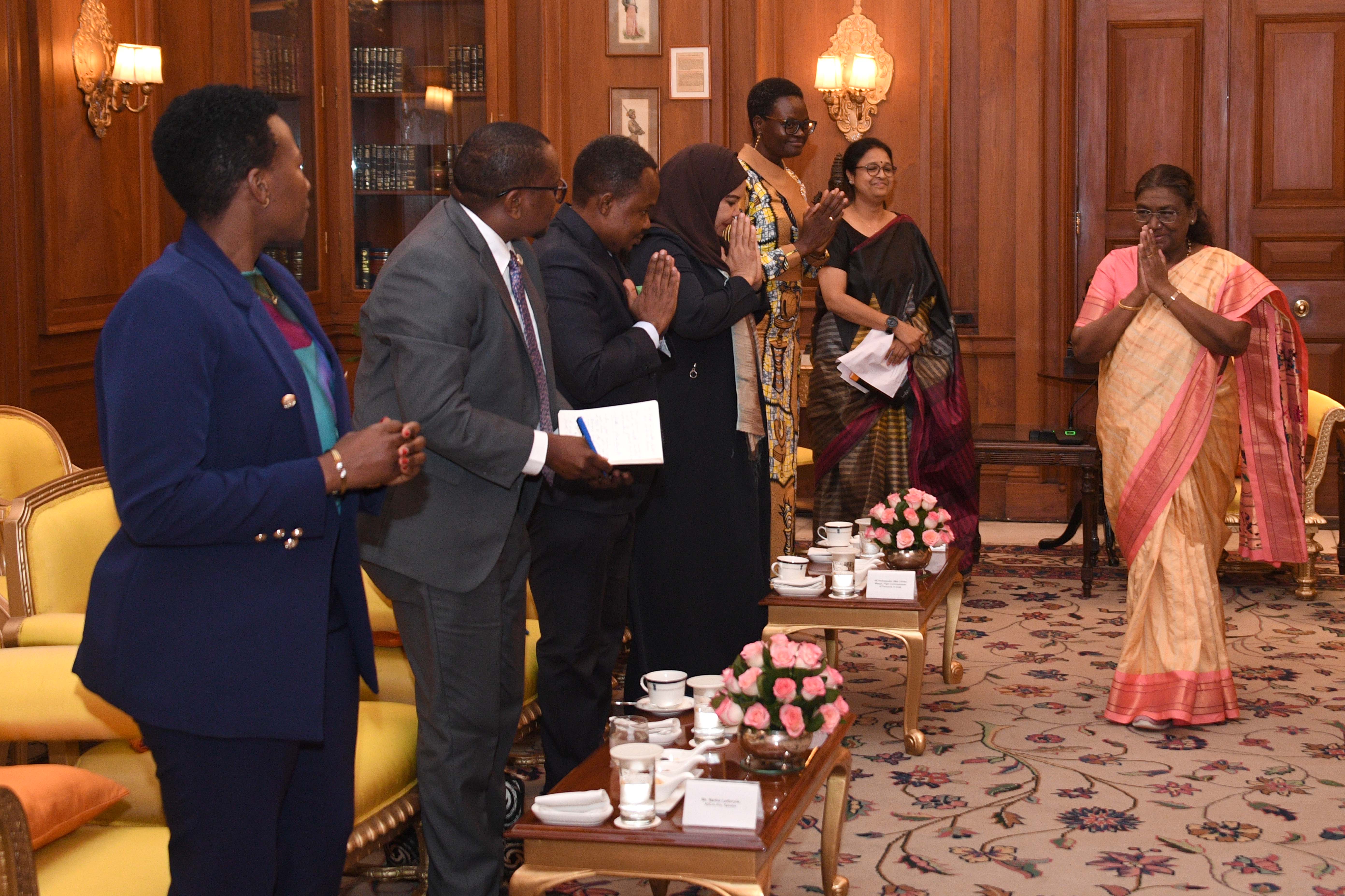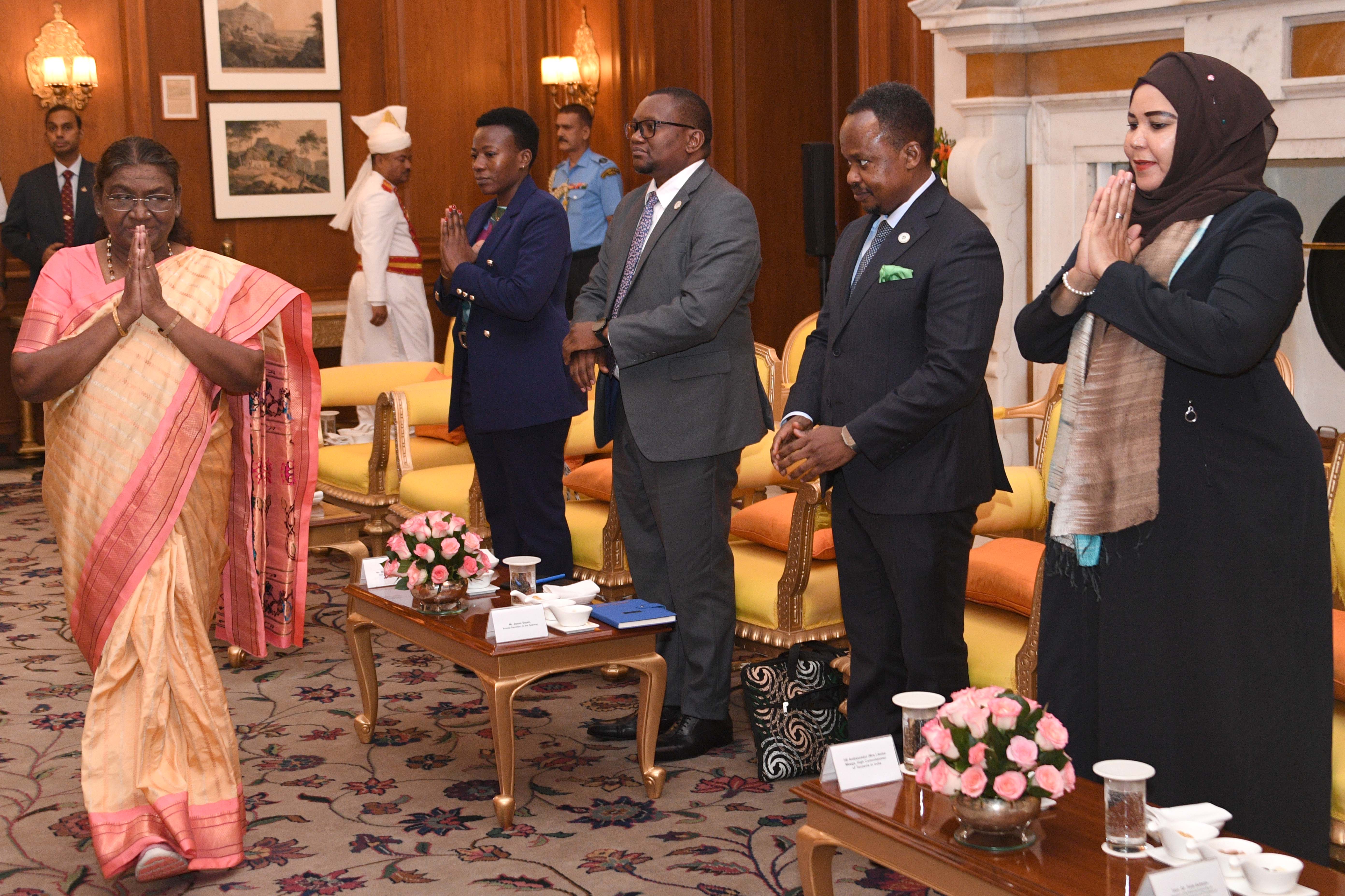 | Caption: | The Speaker of the National Assembly of the United Republic of Tanzania and President of Inter-Parliamentary Union, Dr Tulia Ackson called on the President of India, Smt Droupadi Murmu at Rashtrapati Bhavan on July 24, 2024. |