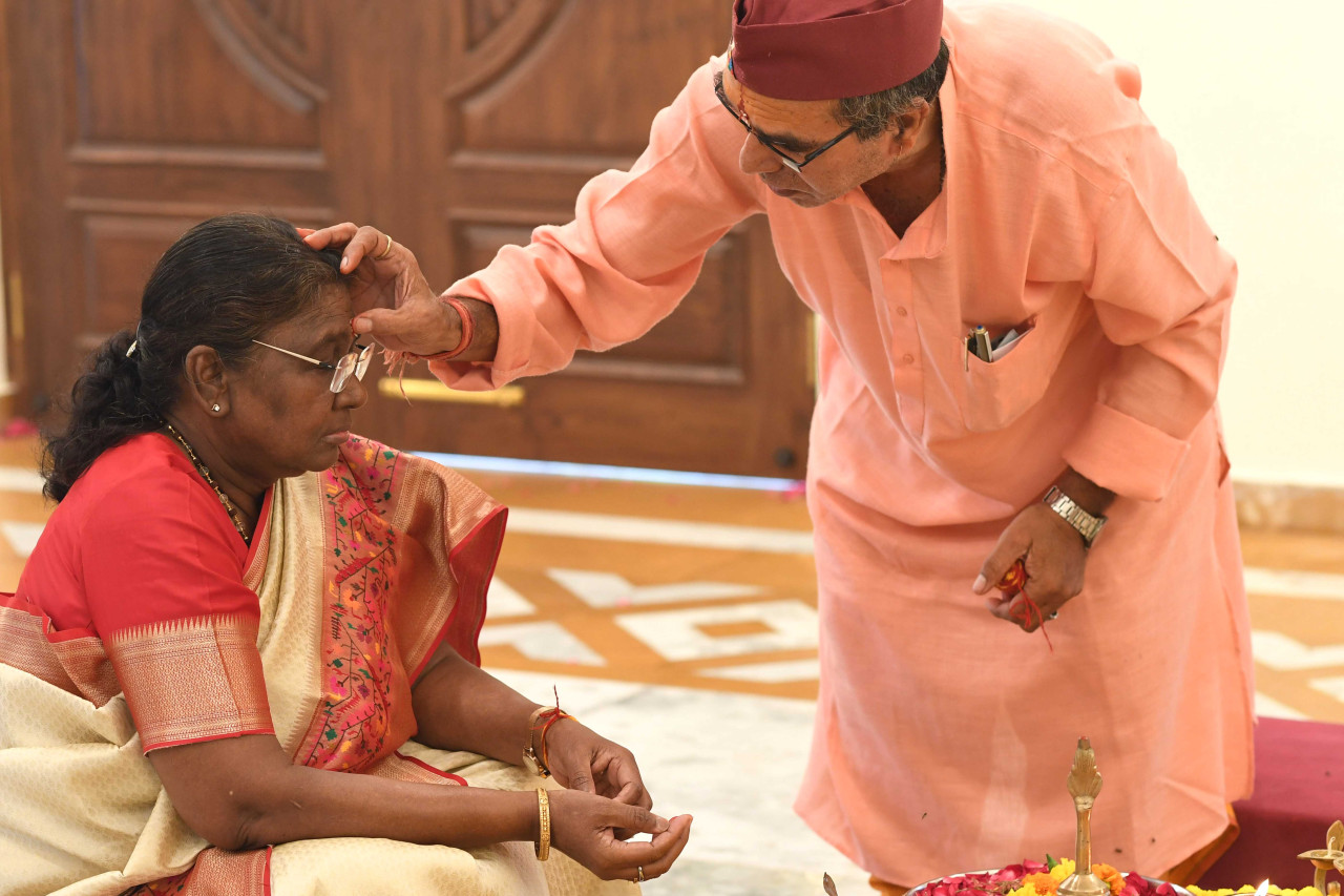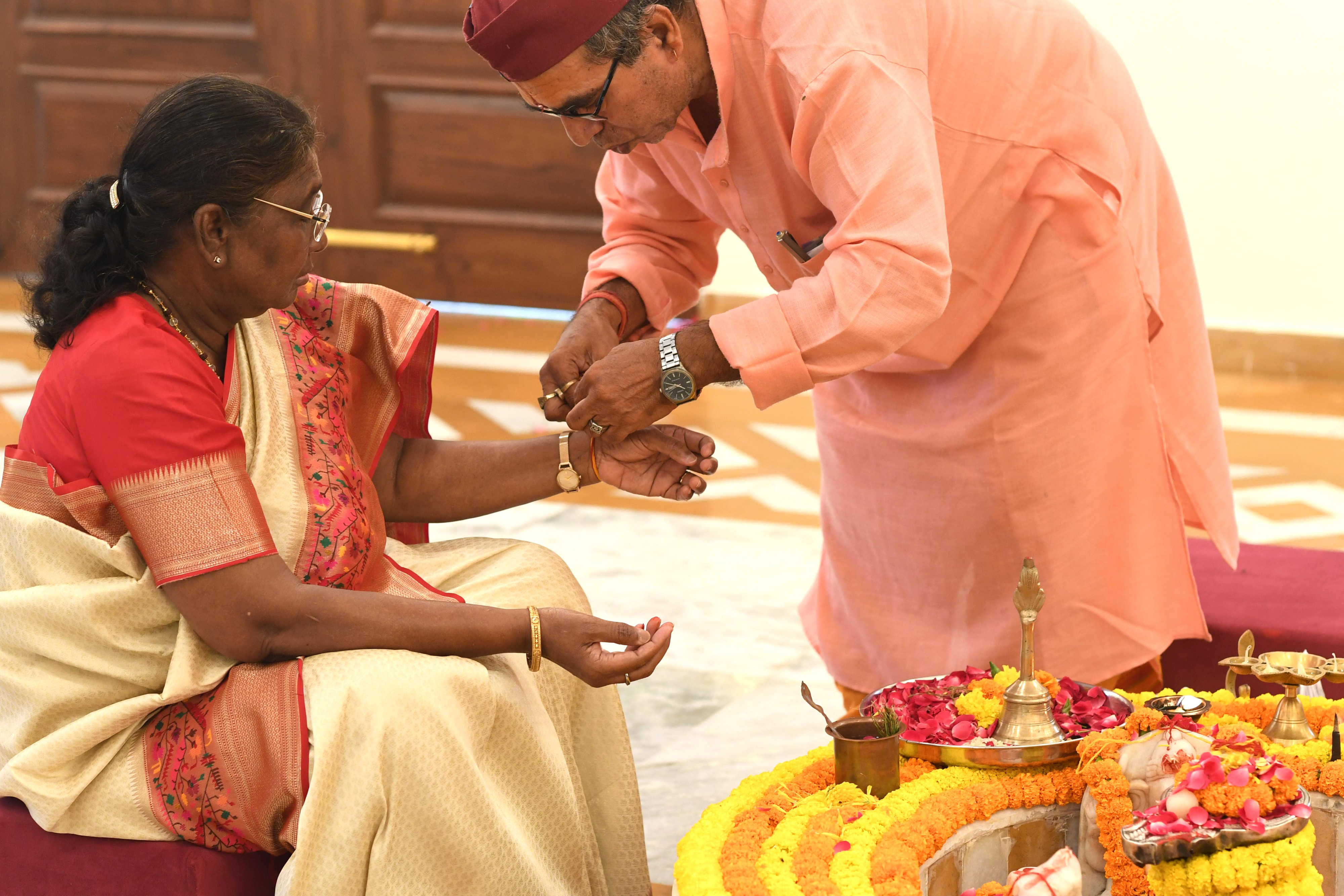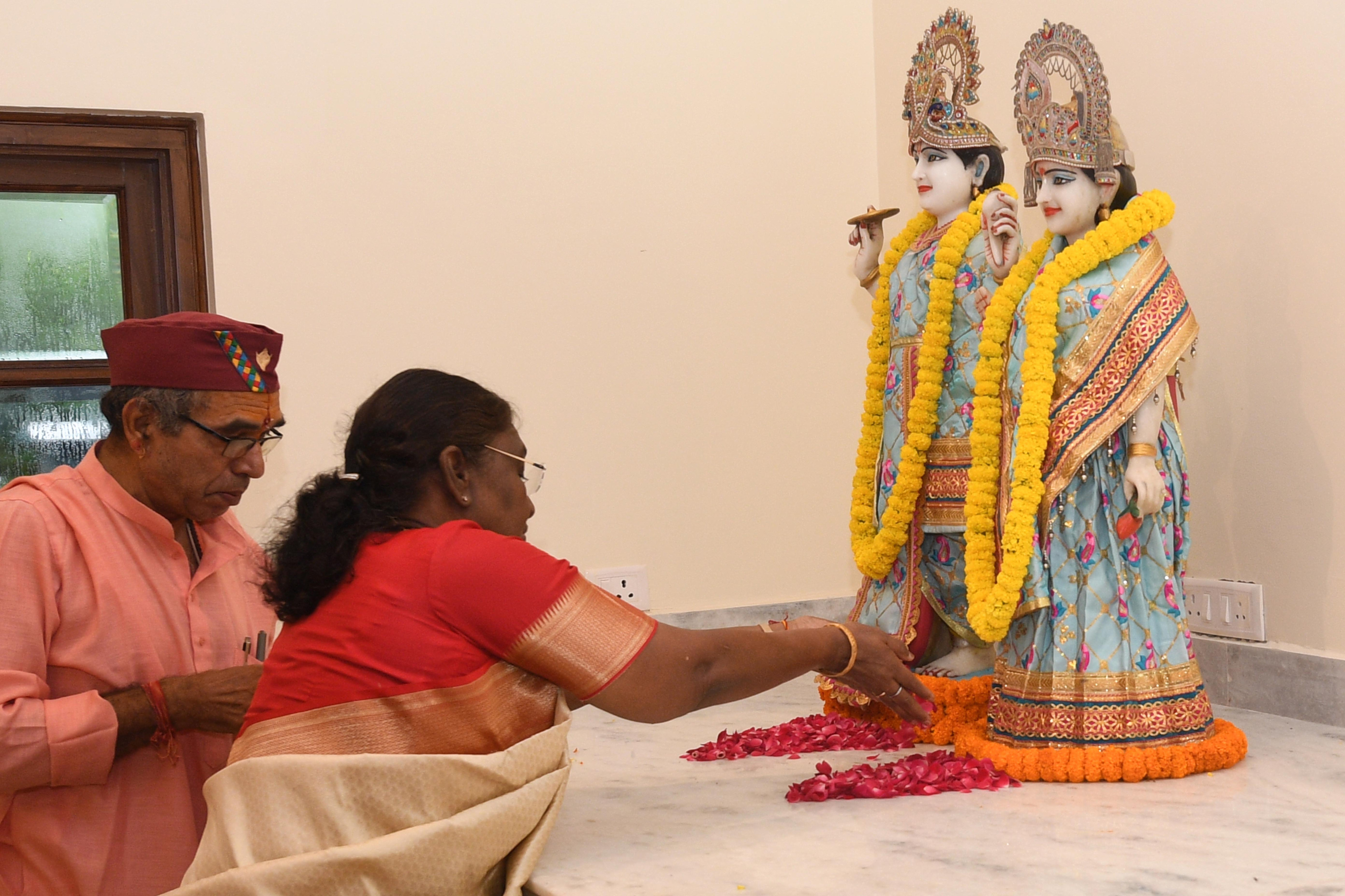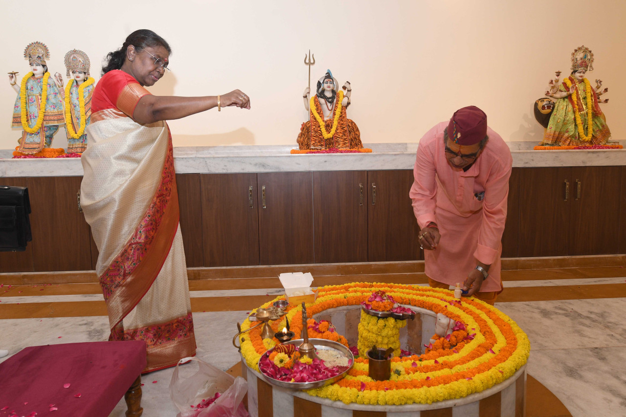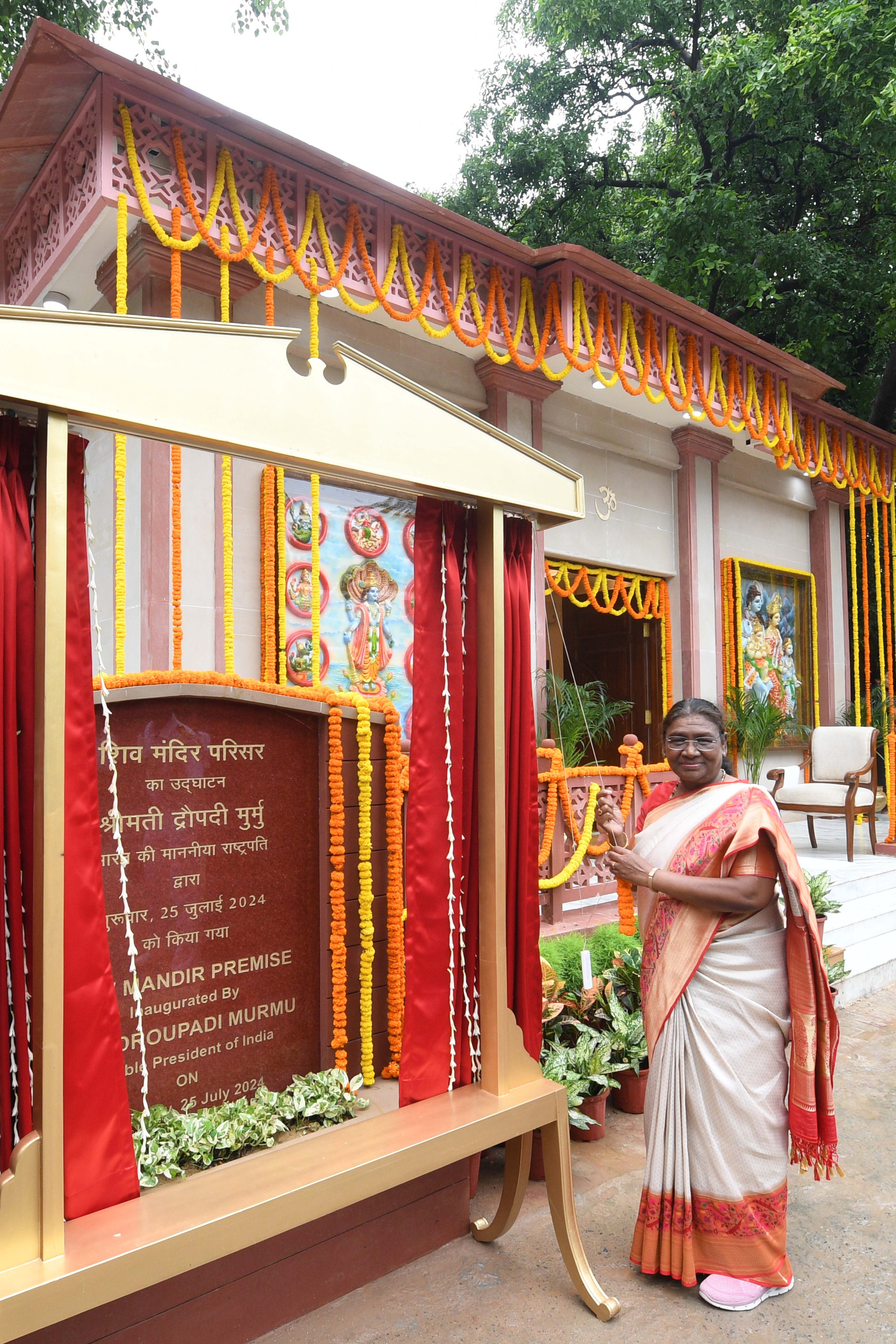 | Caption: | The President of India, Smt Droupadi Murmu inauguration of Shri Shiv Temple Premise, Sch-B President Estate at Rashtrapati Bhavan on July 25, 2024. |