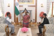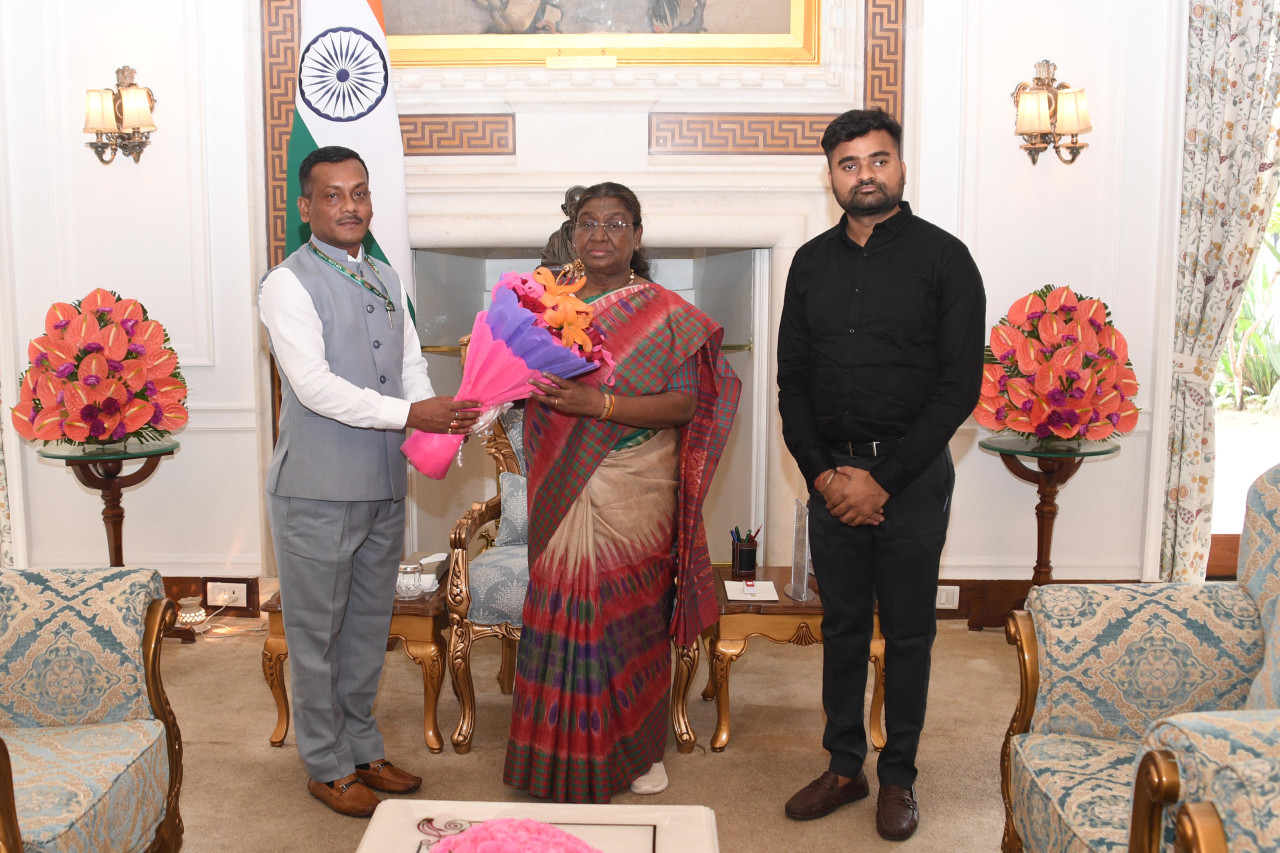 | Caption: | Shri Manoj Tigga, Member of Parliament from Alipurduar, West Bengal along with Shri Aman Gupta meeting with the President of India, Smt Droupadi Murmu at Rashtrapati Bhavan on July 26, 2024 |