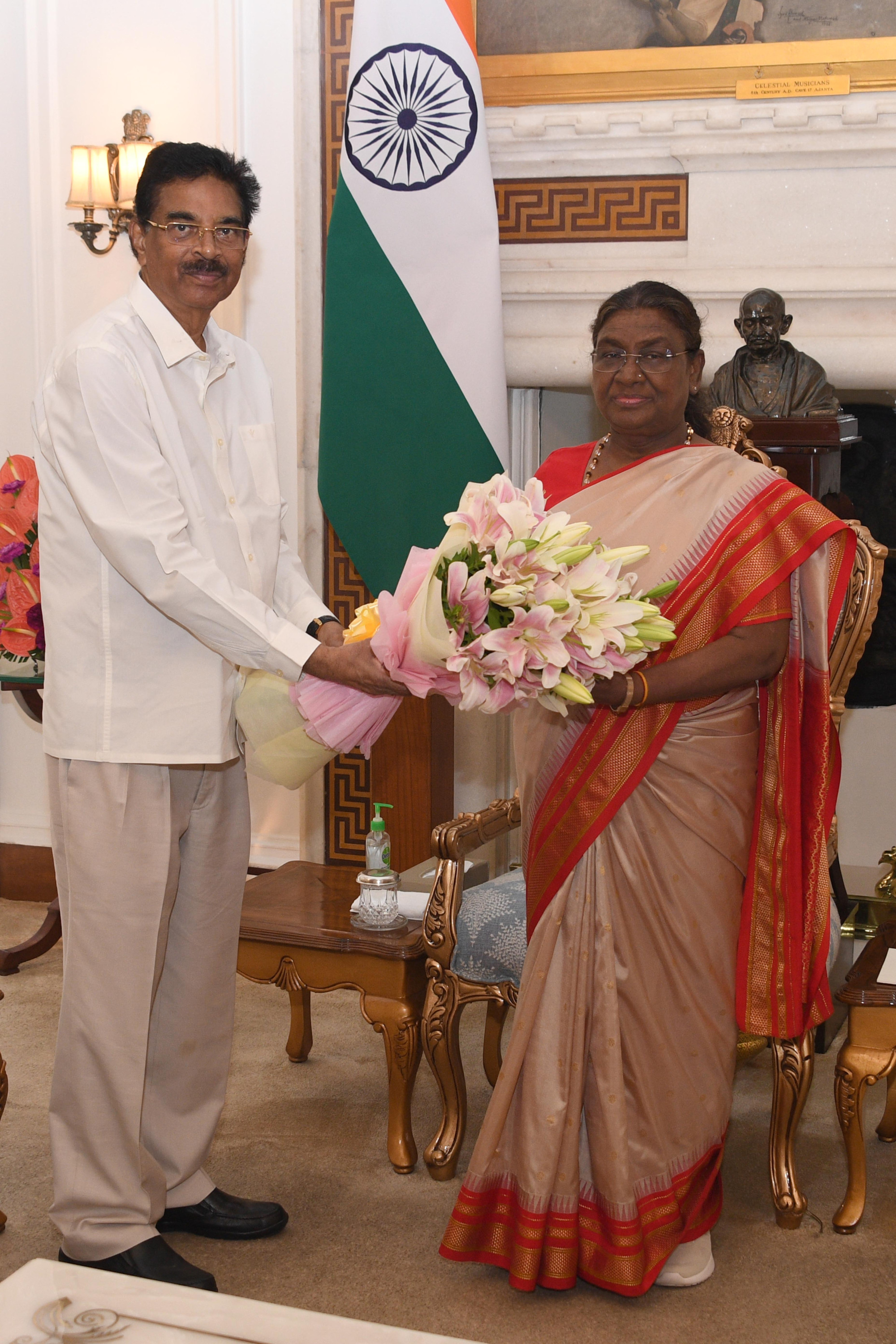 | Caption: | The Governor of Mizoram, Dr. Hari Babu Kambhampati called on the President of India, Smt Droupadi Murmu at Rashtrapati Bhavan on July 26, 2024. |