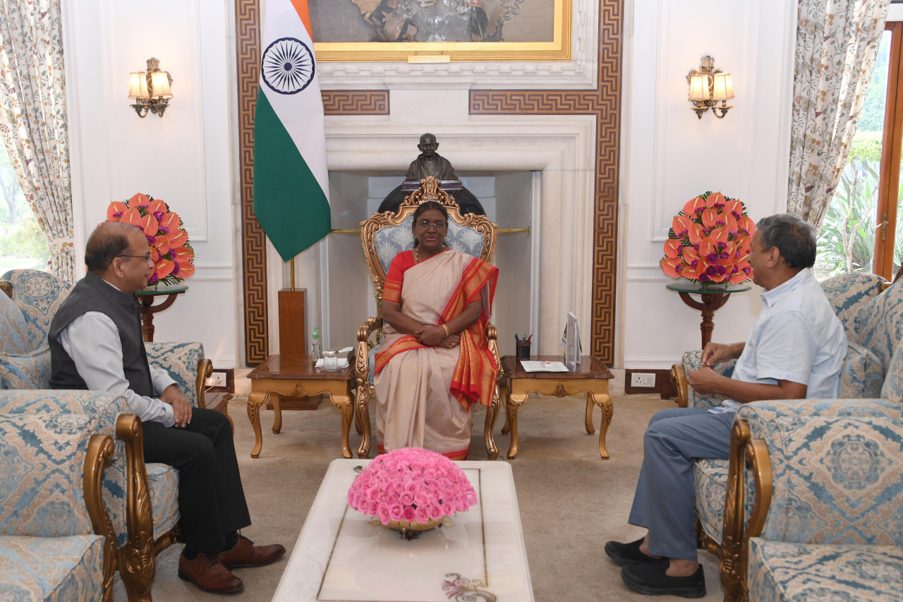| Caption: | Shri Vijoy Shanker Agrawalla along with other meeting with the President of India, Smt Droupadi Murmu at Rashtrapati Bhavan on July 26, 2024. |