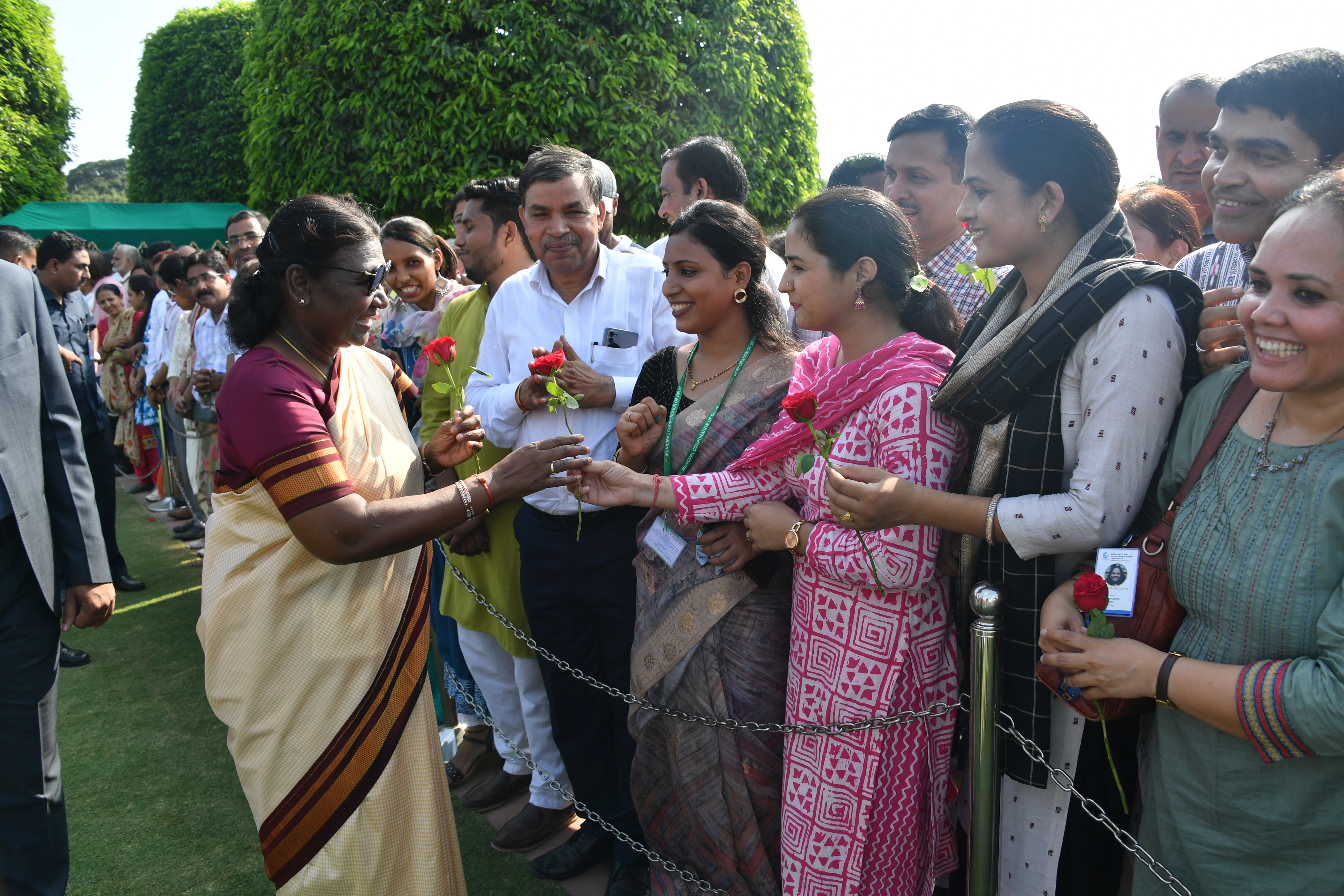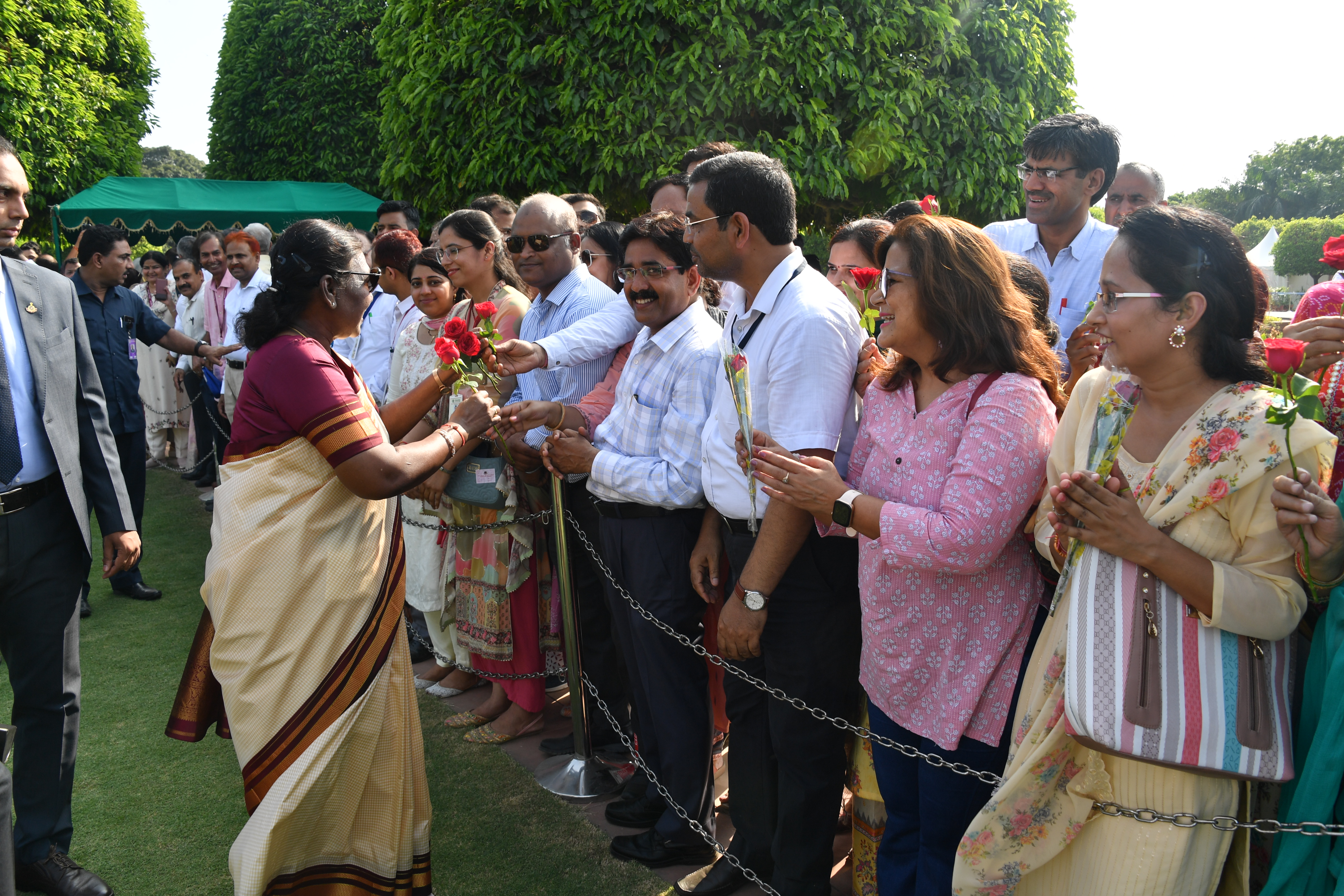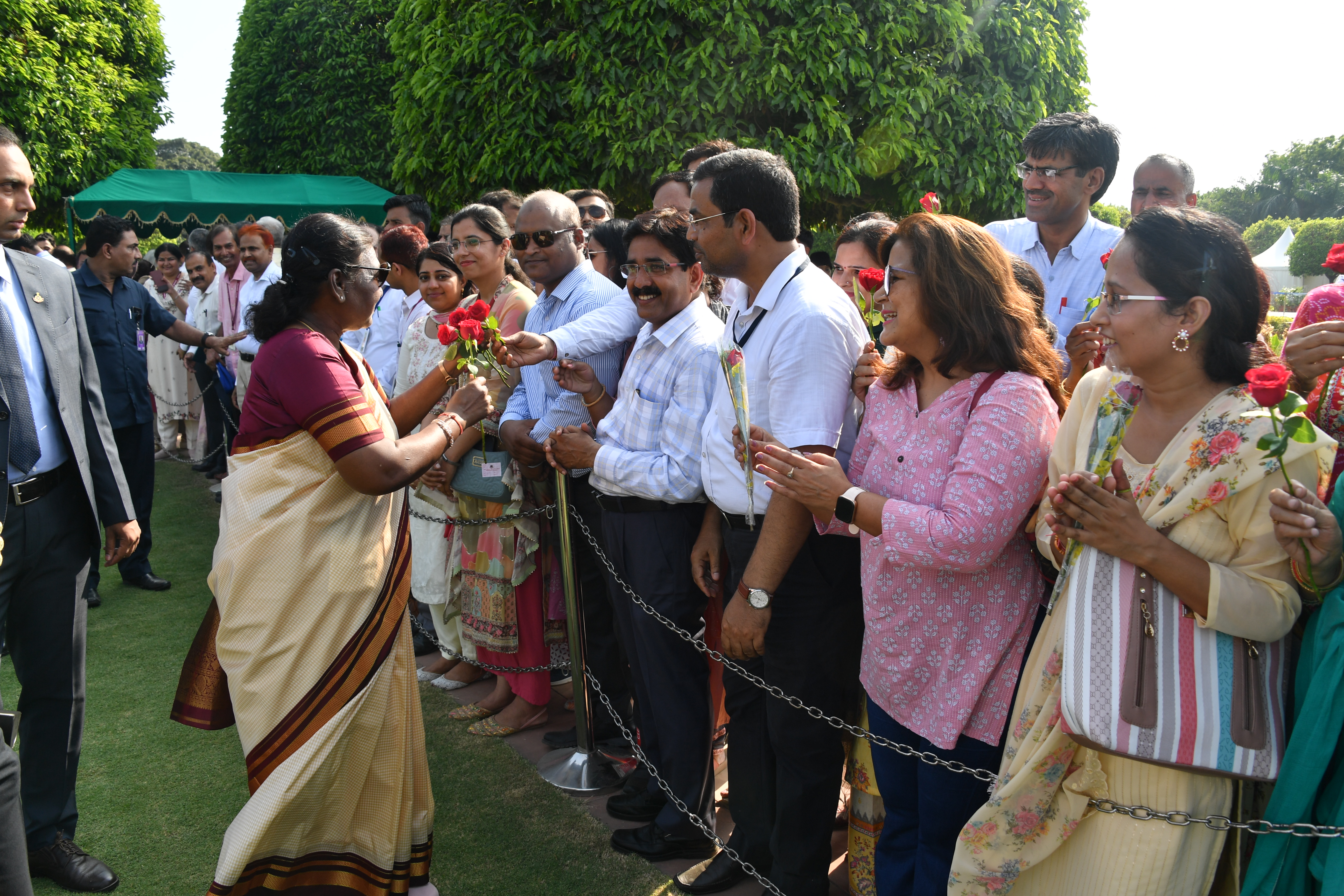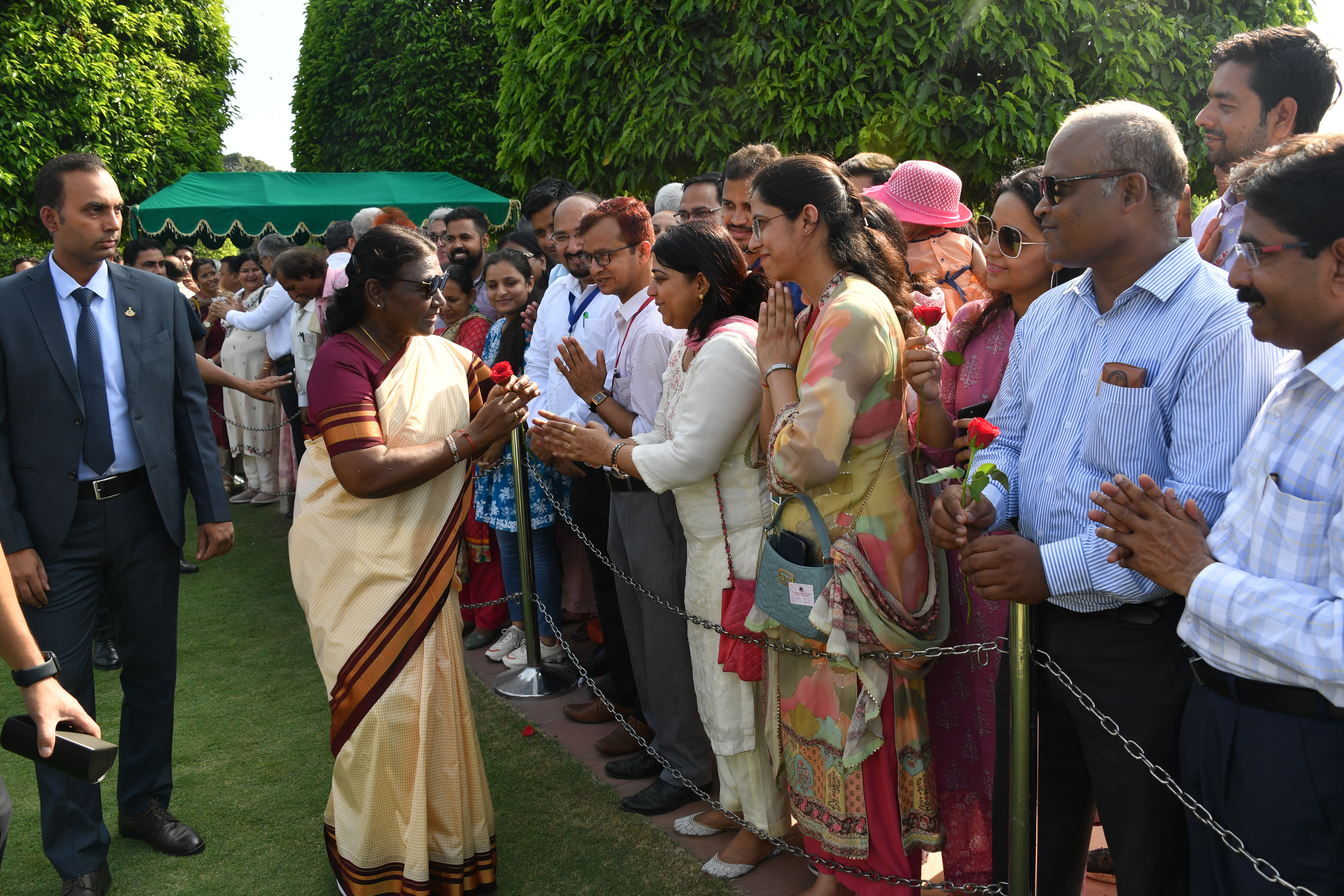 | Caption: | The President of India, Smt. Droupadi Murmu Interaction with the teachers invited to visit the Amrit Udyan as special invitees at Rashtrapati Bhavan on September 5, 2023. |