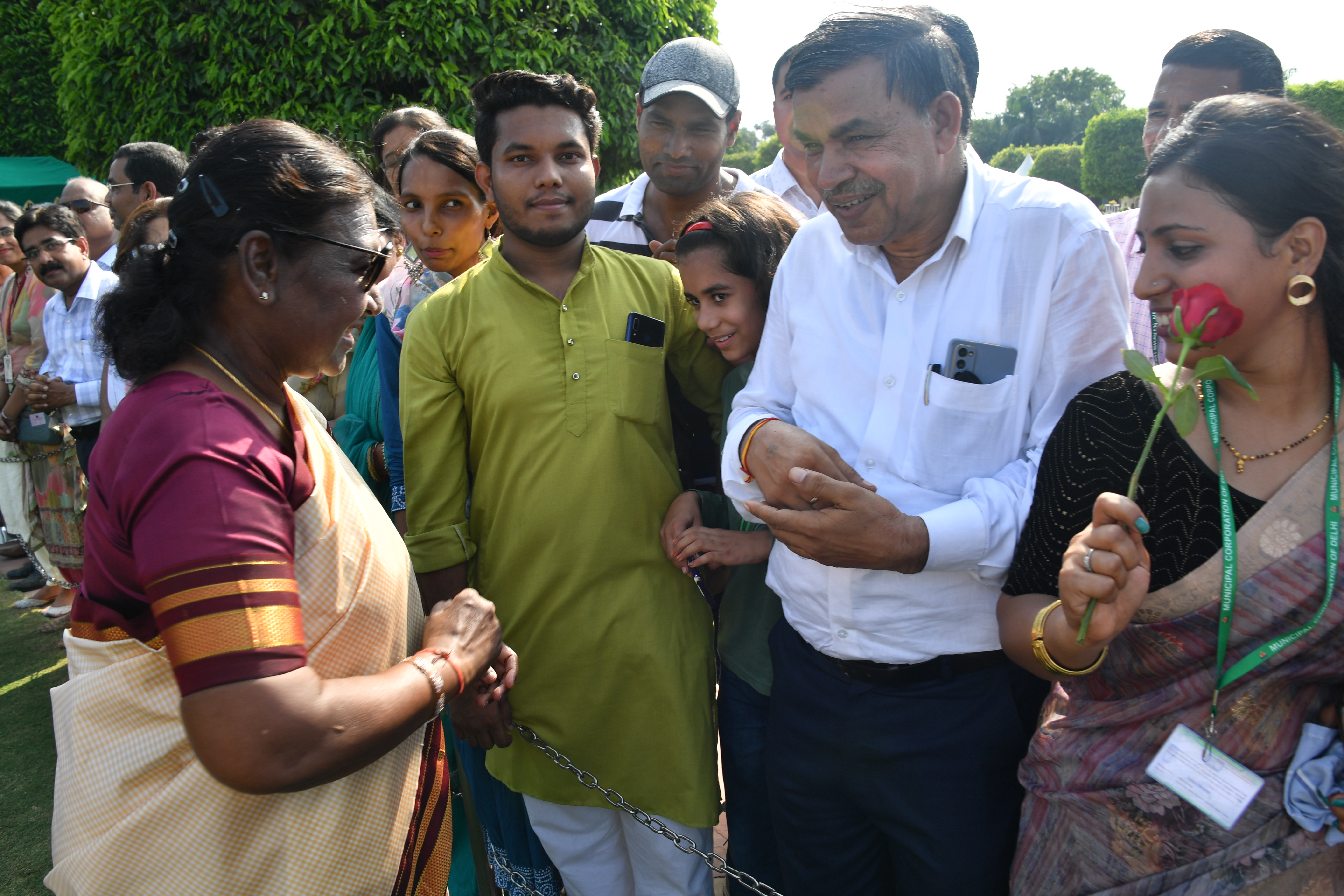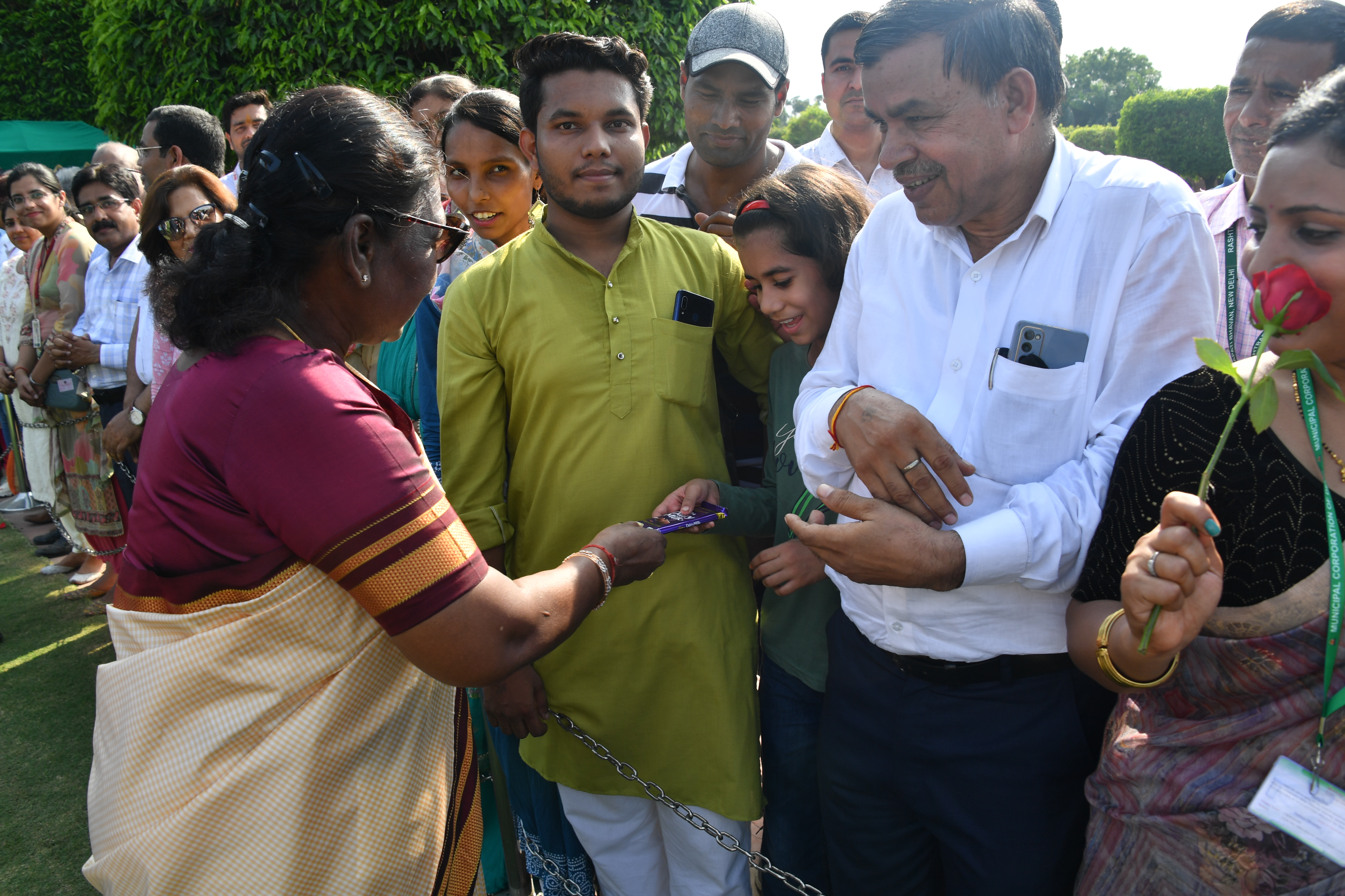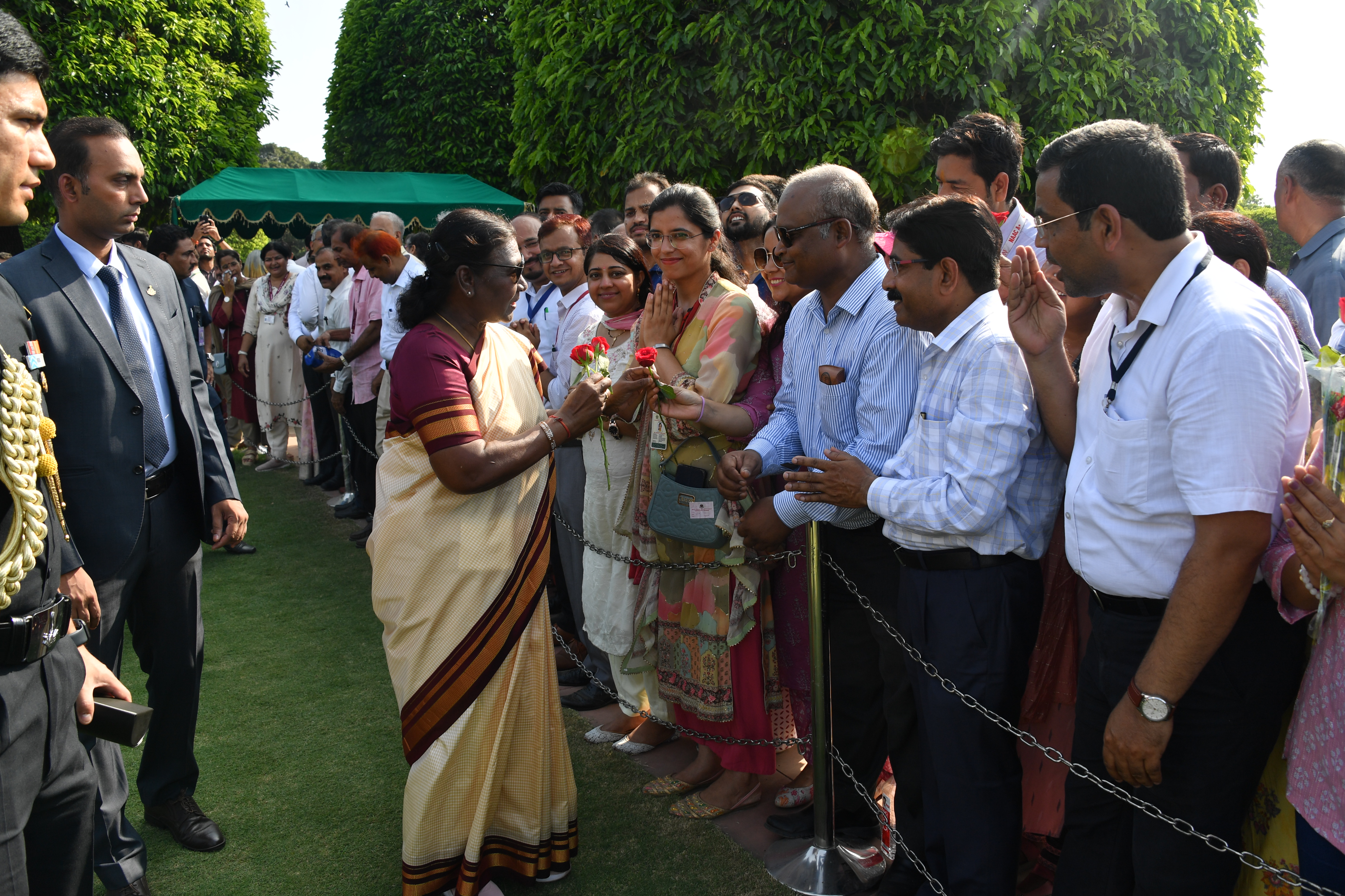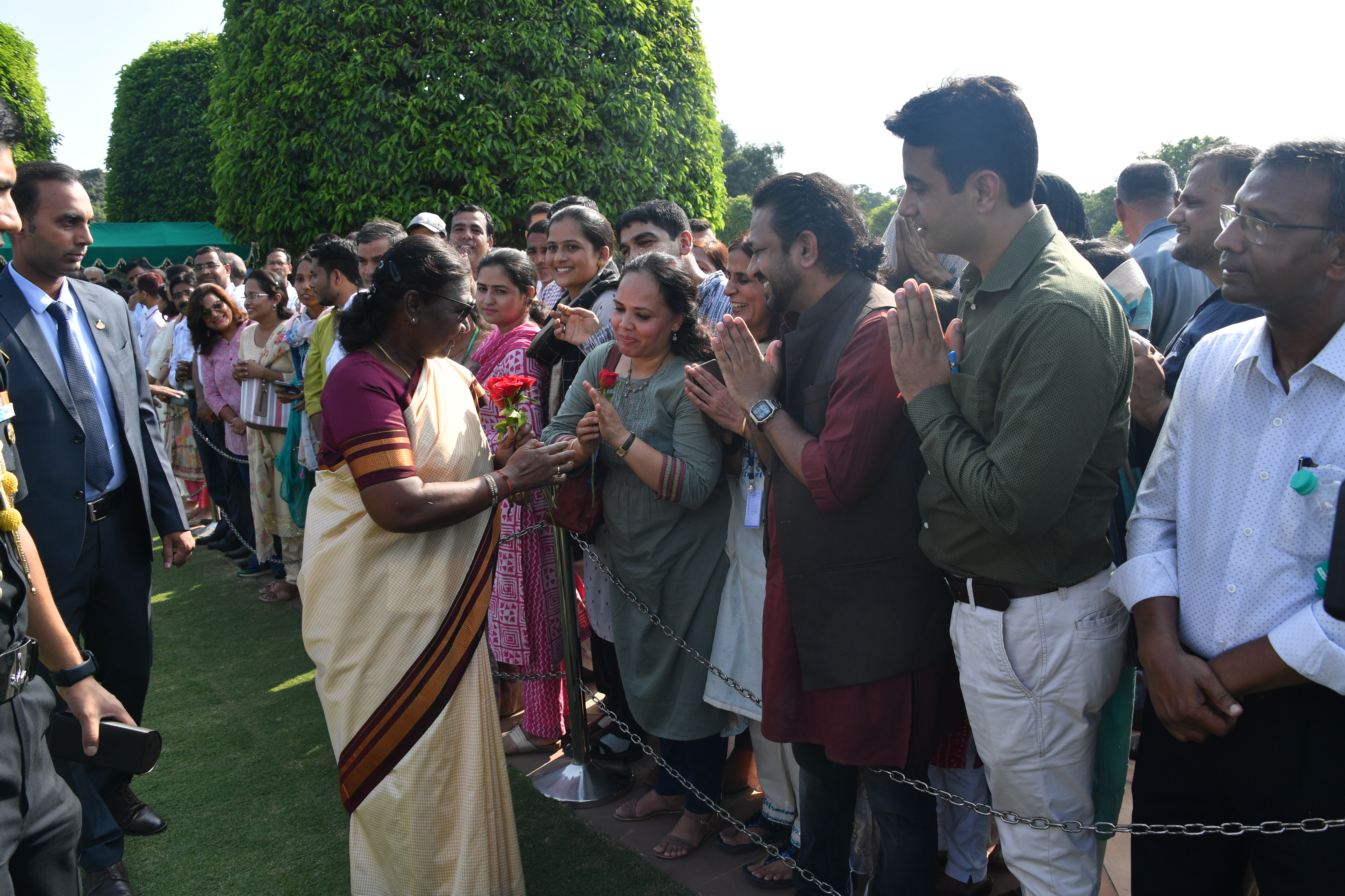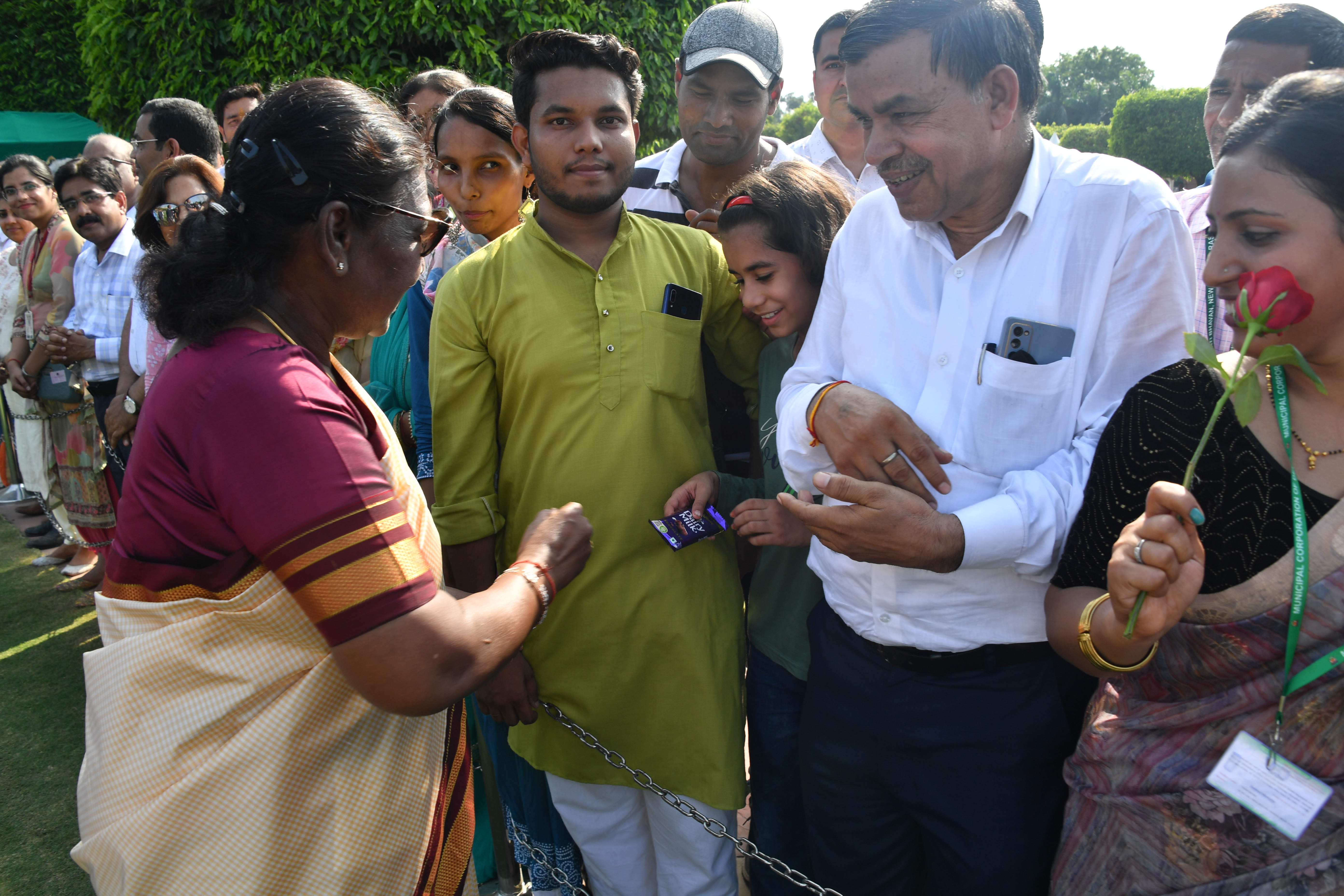 | Caption: | The President of India, Smt. Droupadi Murmu Interaction with the teachers invited to visit the Amrit Udyan as special invitees at Rashtrapati Bhavan on September 5, 2023. |