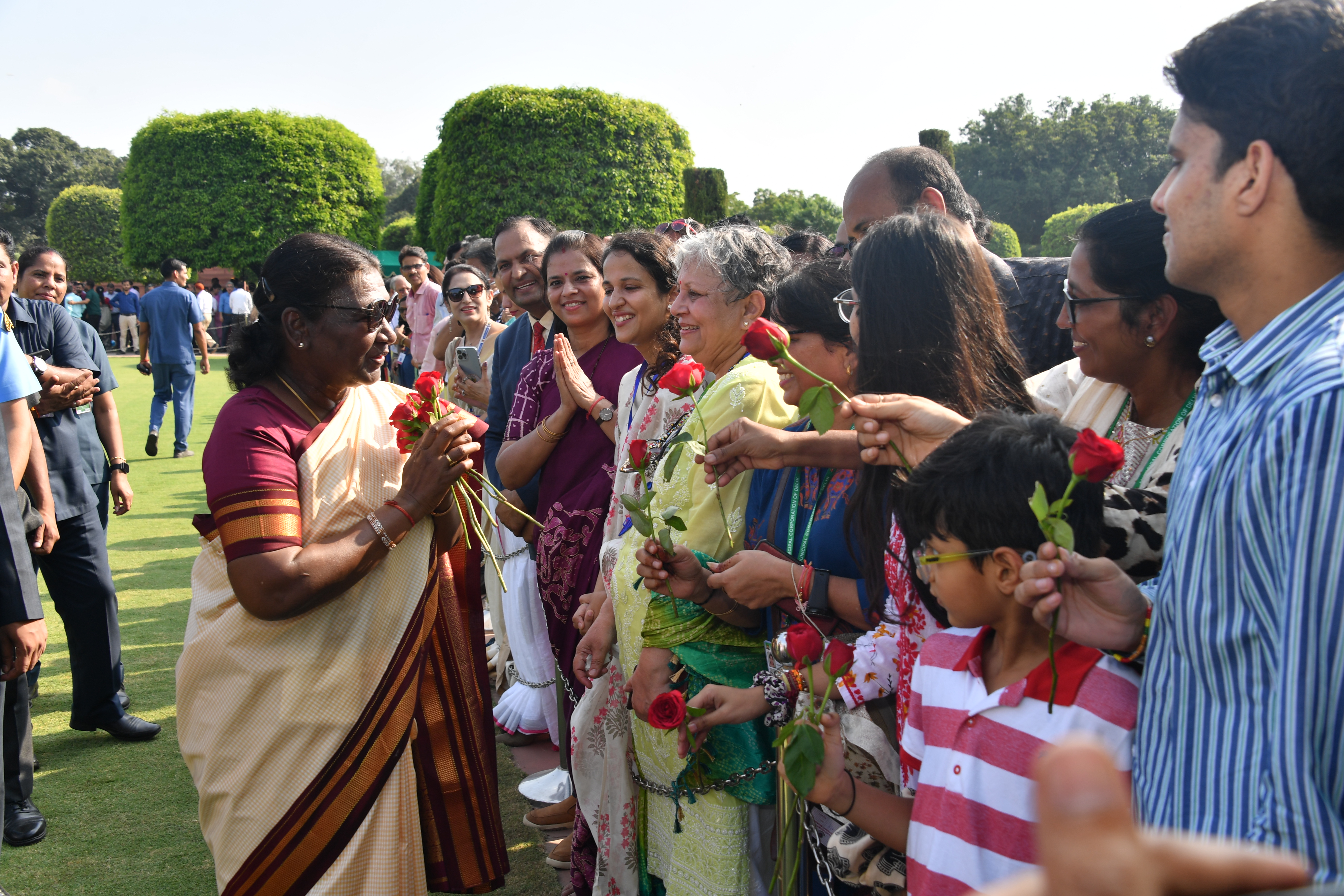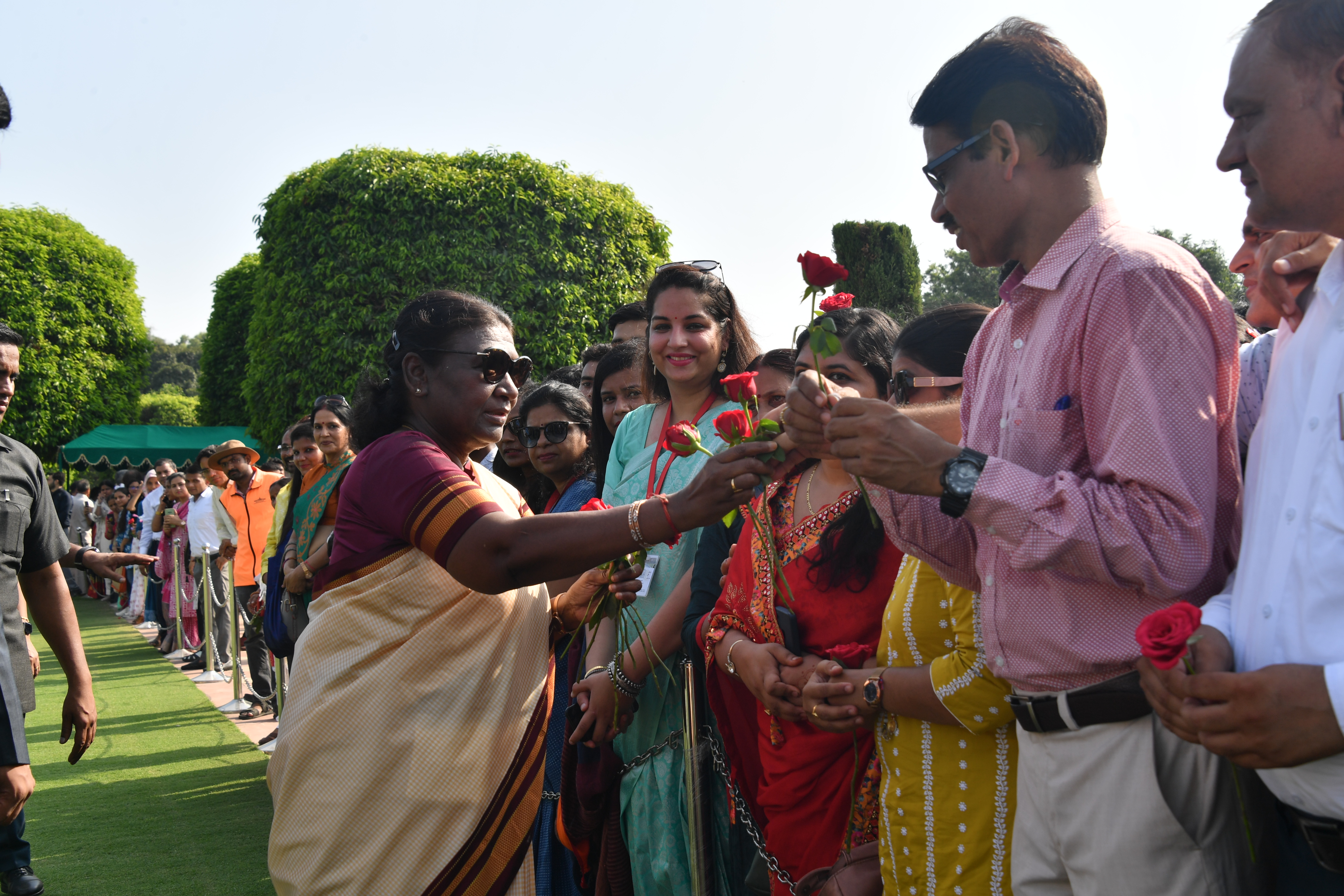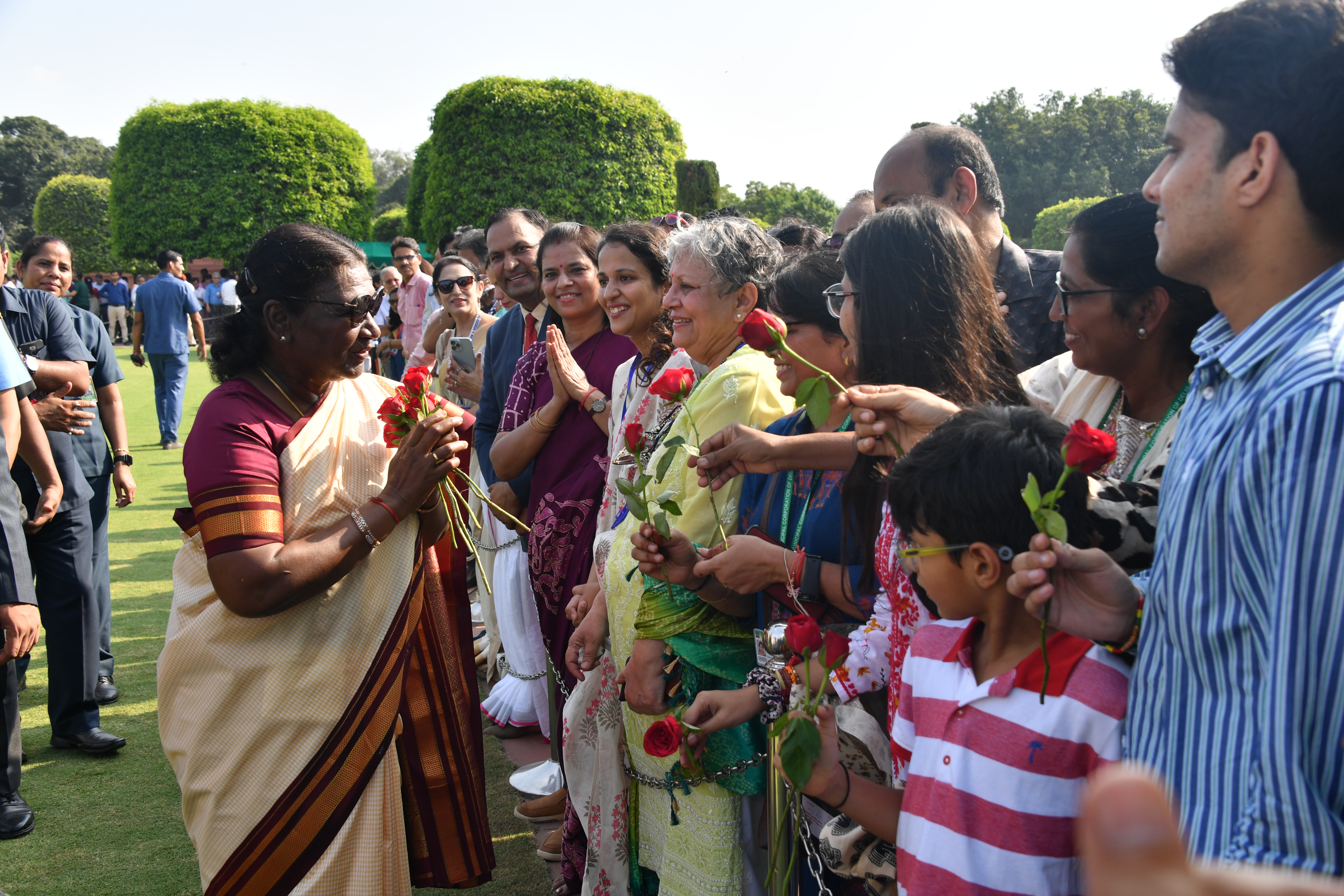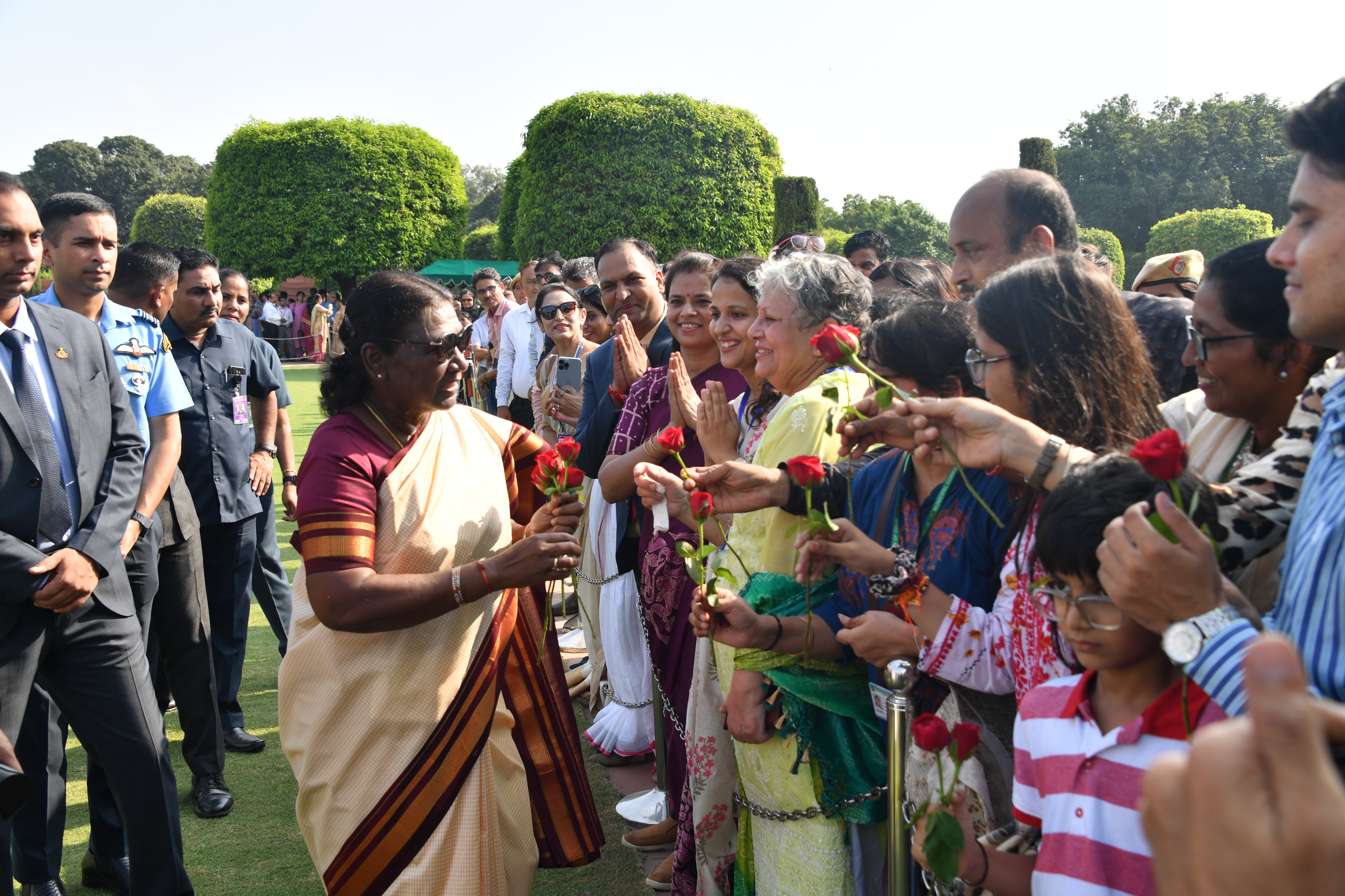 | Caption: | The President of India, Smt. Droupadi Murmu Interaction with the teachers invited to visit the Amrit Udyan as special invitees at Rashtrapati Bhavan on September 5, 2023. |