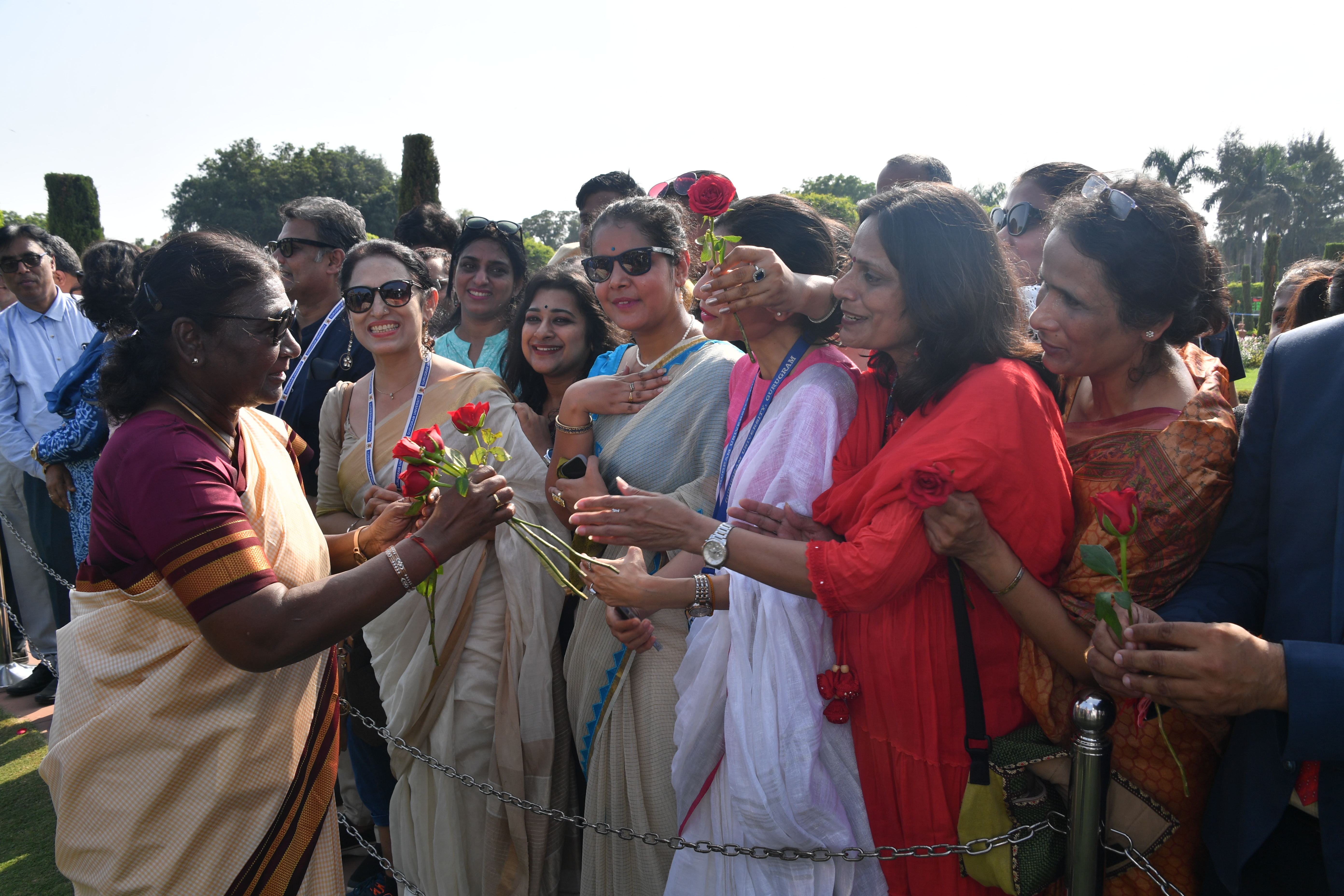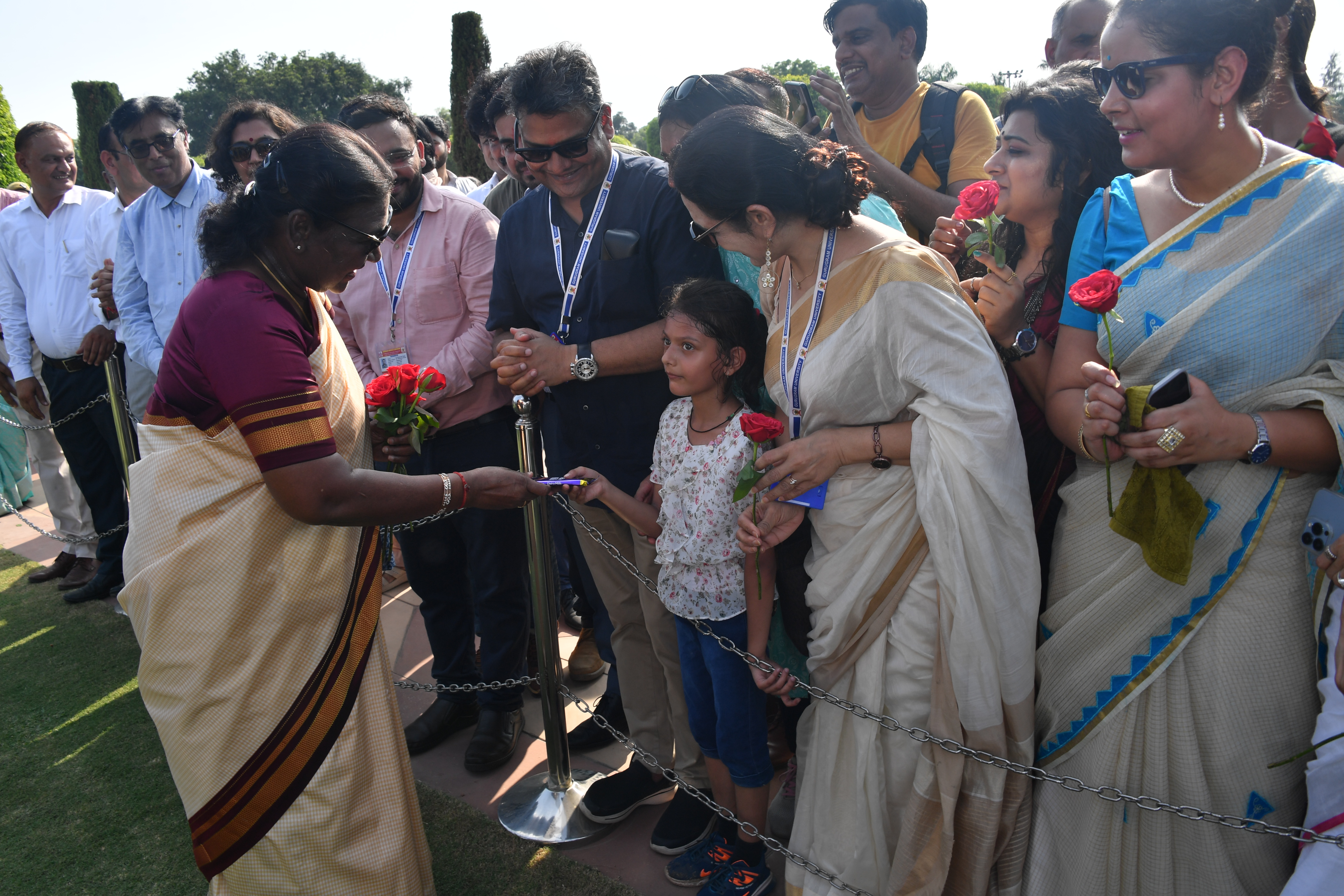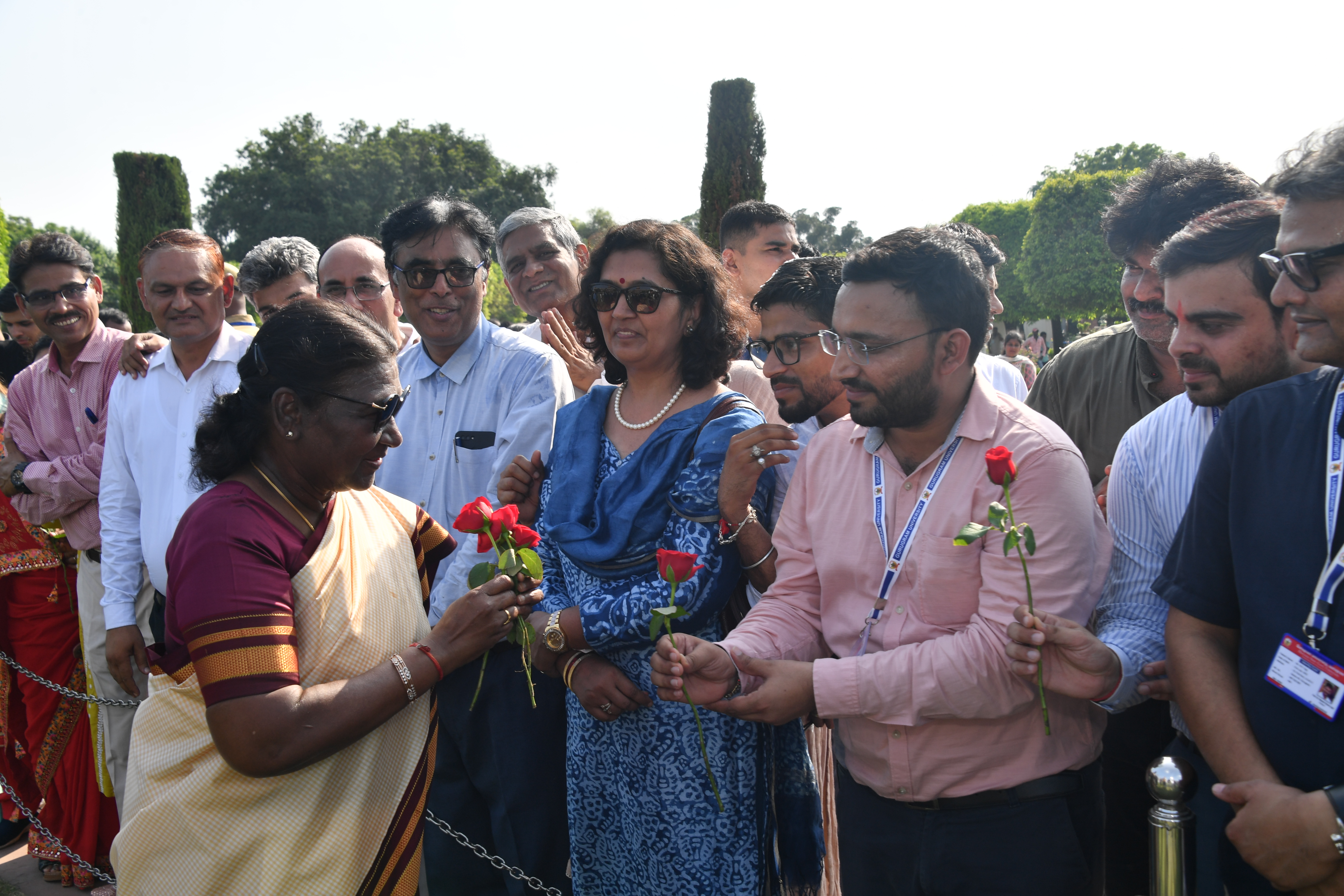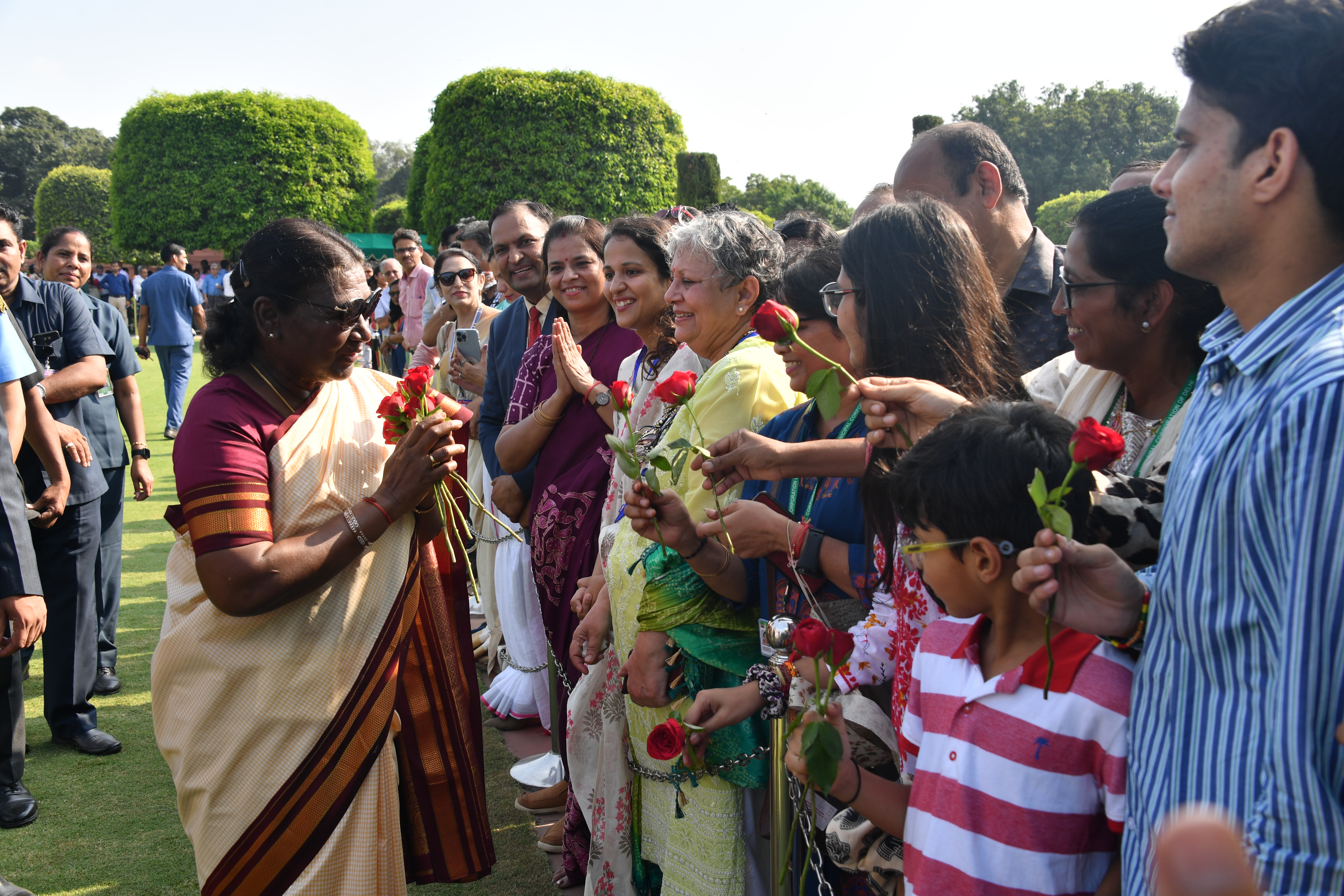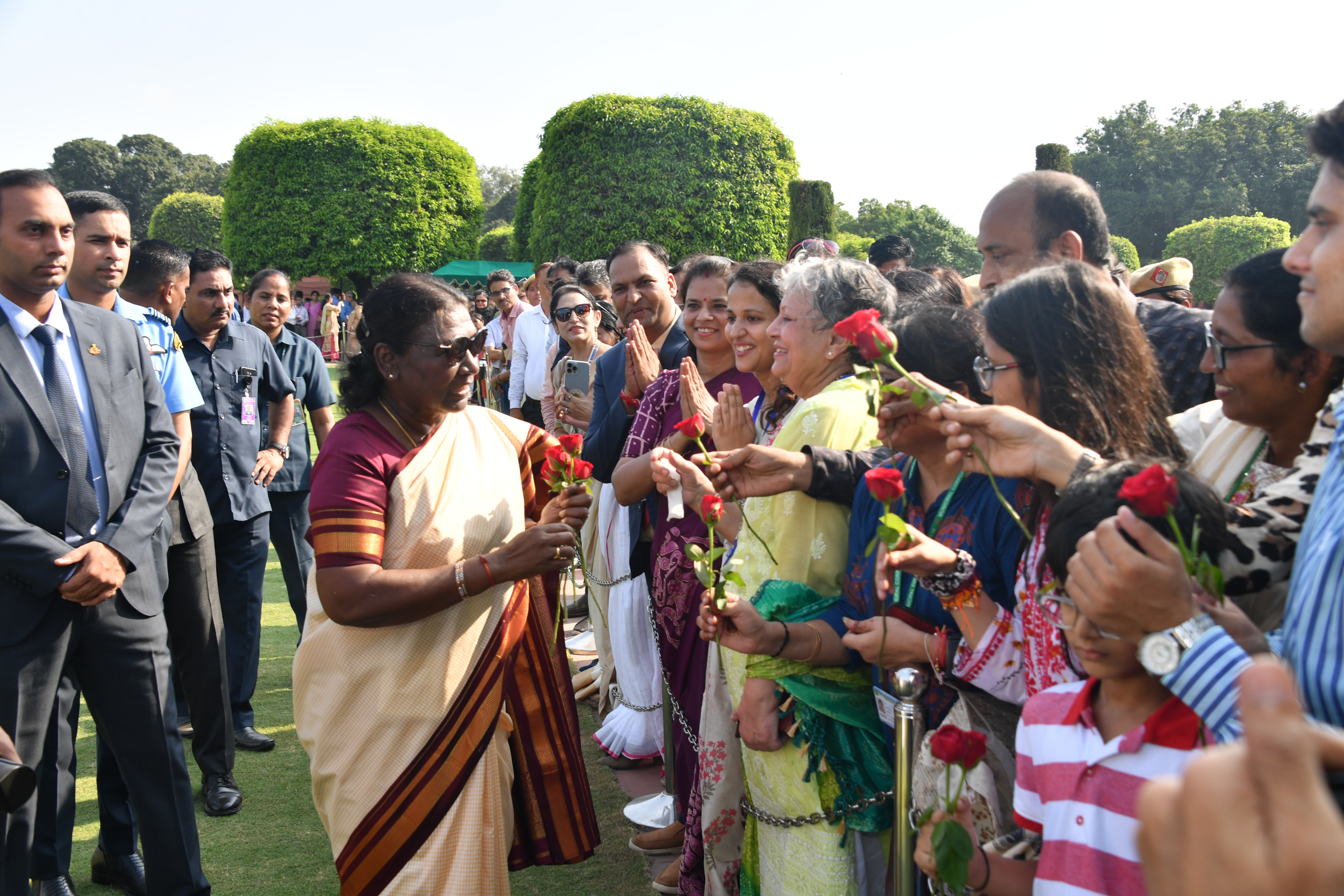 | Caption: | The President of India, Smt. Droupadi Murmu Interaction with the teachers invited to visit the Amrit Udyan as special invitees at Rashtrapati Bhavan on September 5, 2023. |