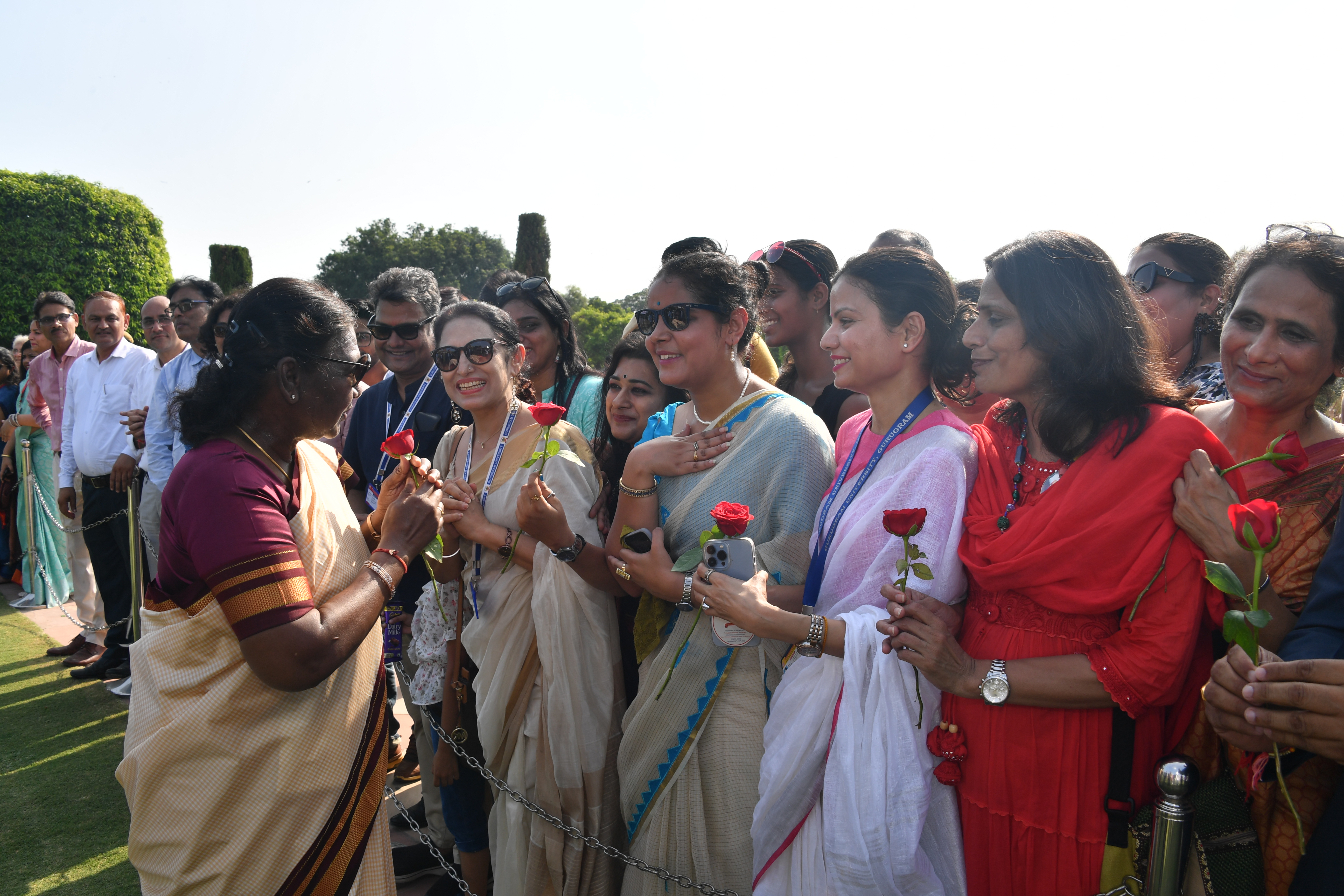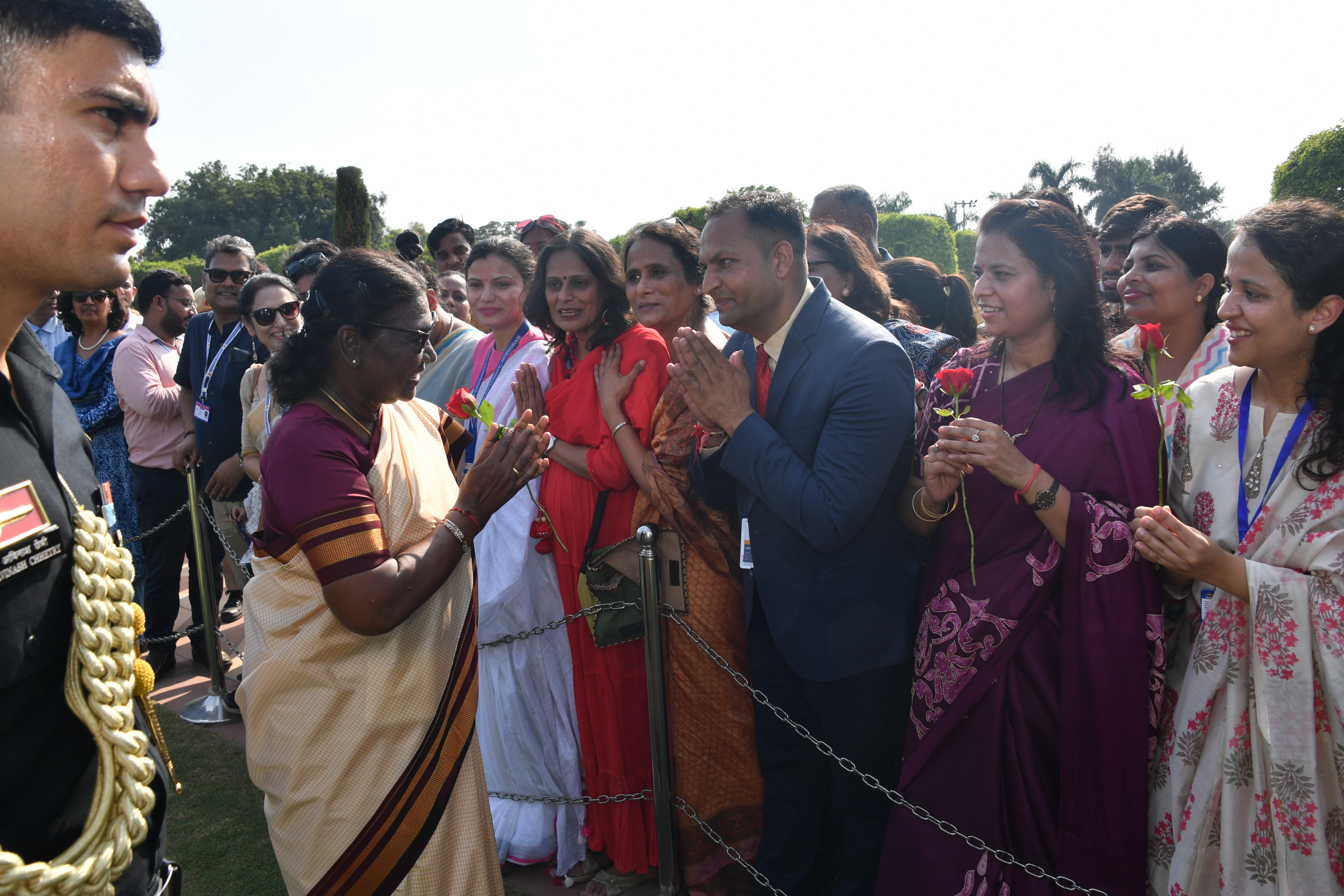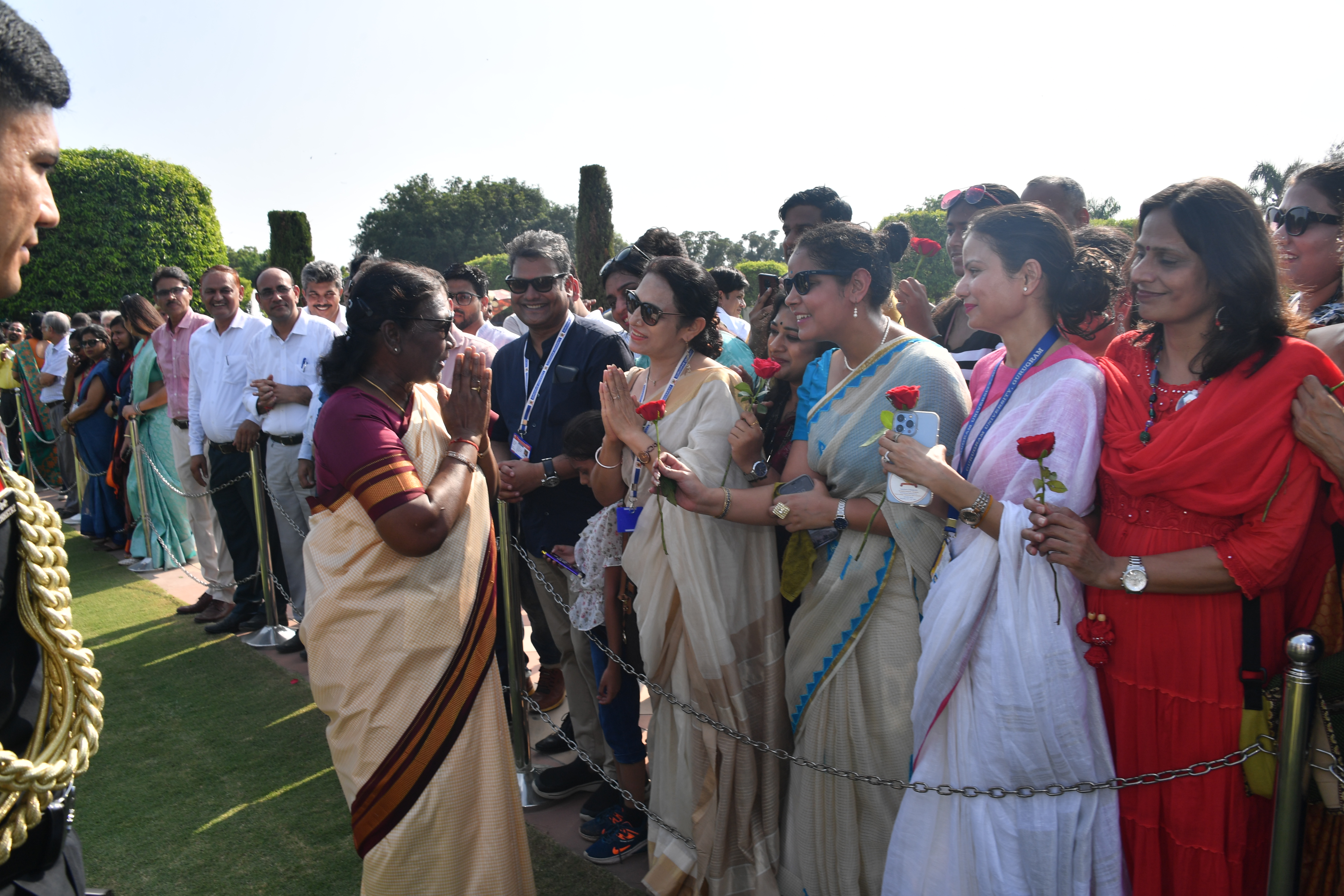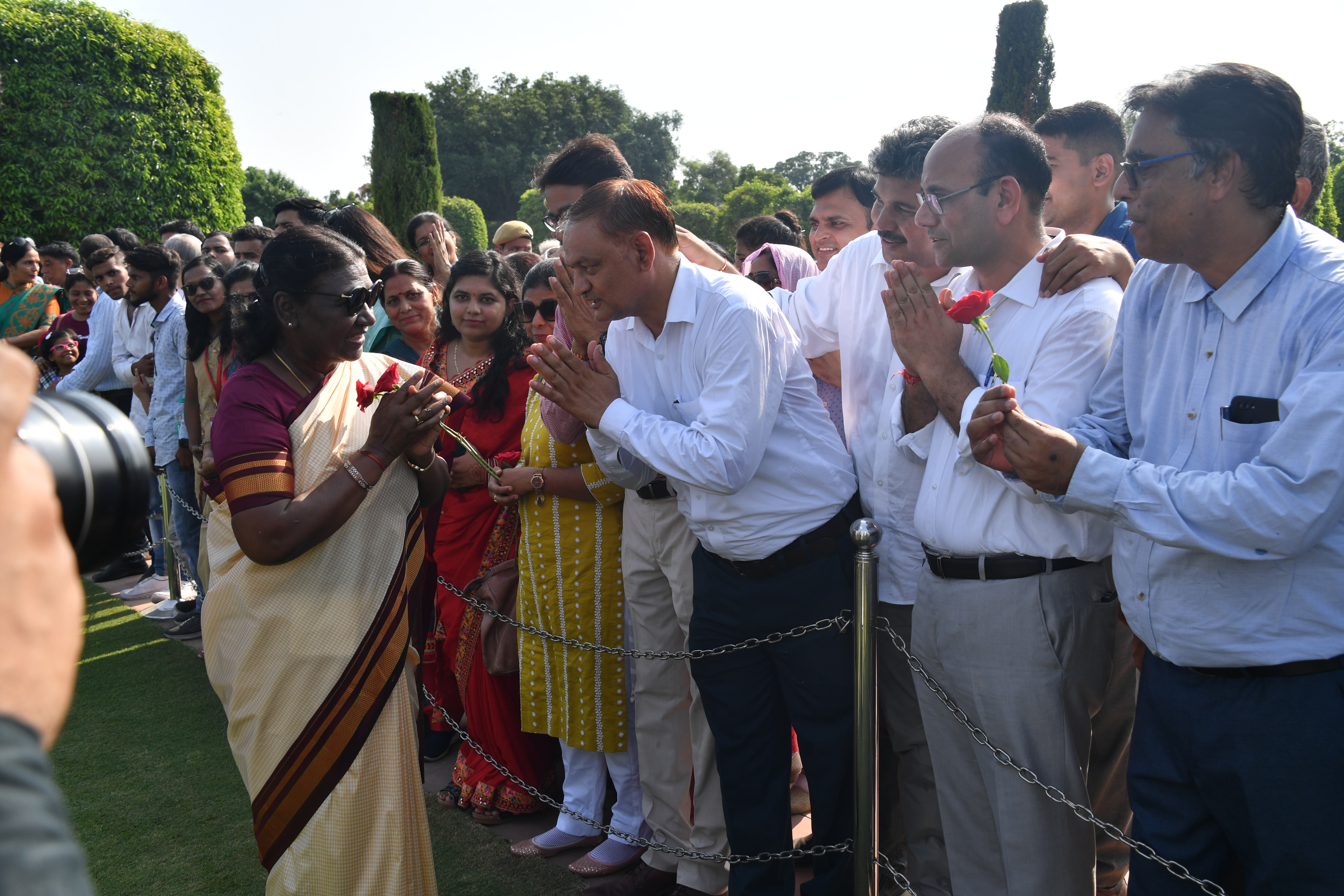 | Caption: | The President of India, Smt. Droupadi Murmu Interaction with the teachers invited to visit the Amrit Udyan as special invitees at Rashtrapati Bhavan on September 5, 2023. |