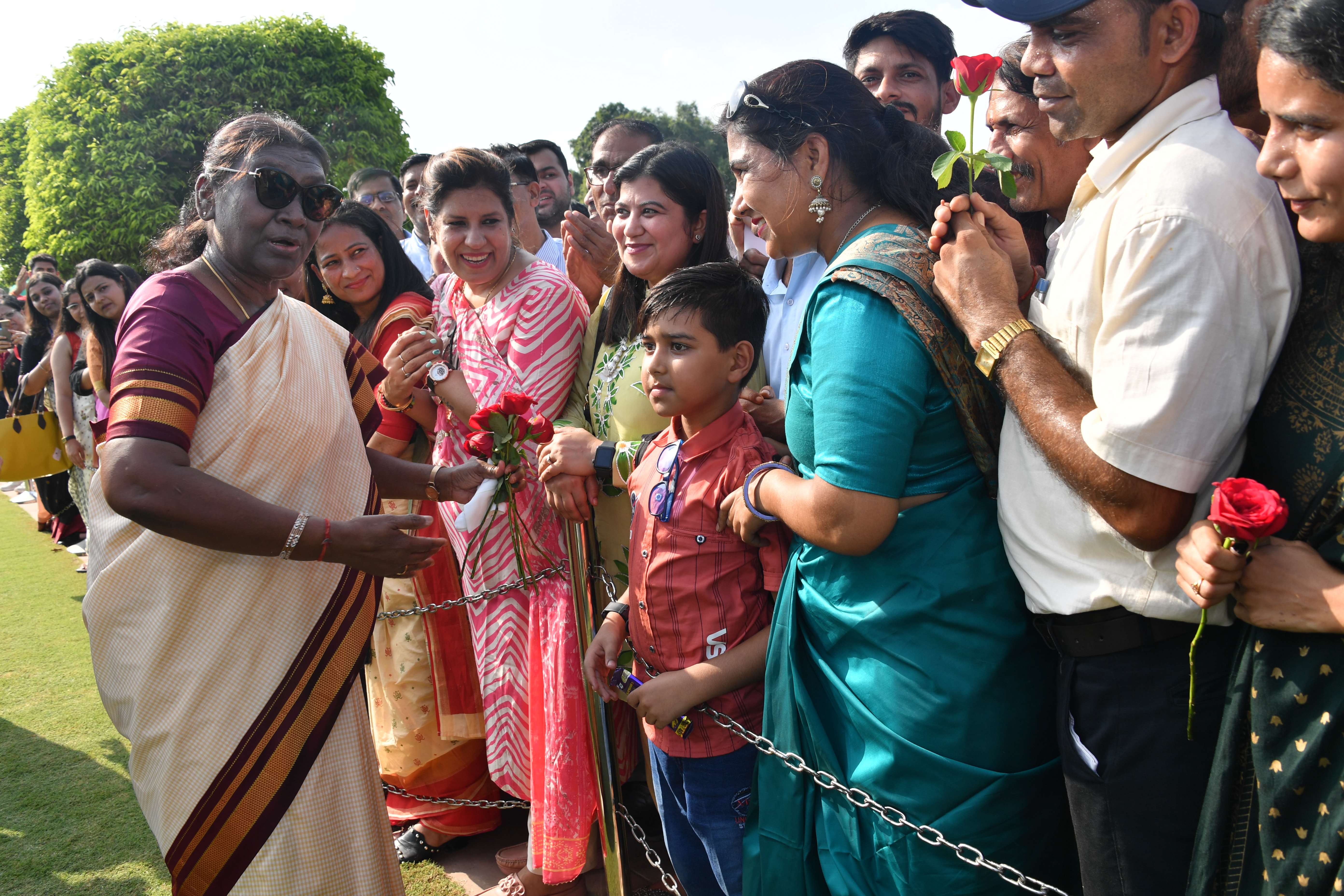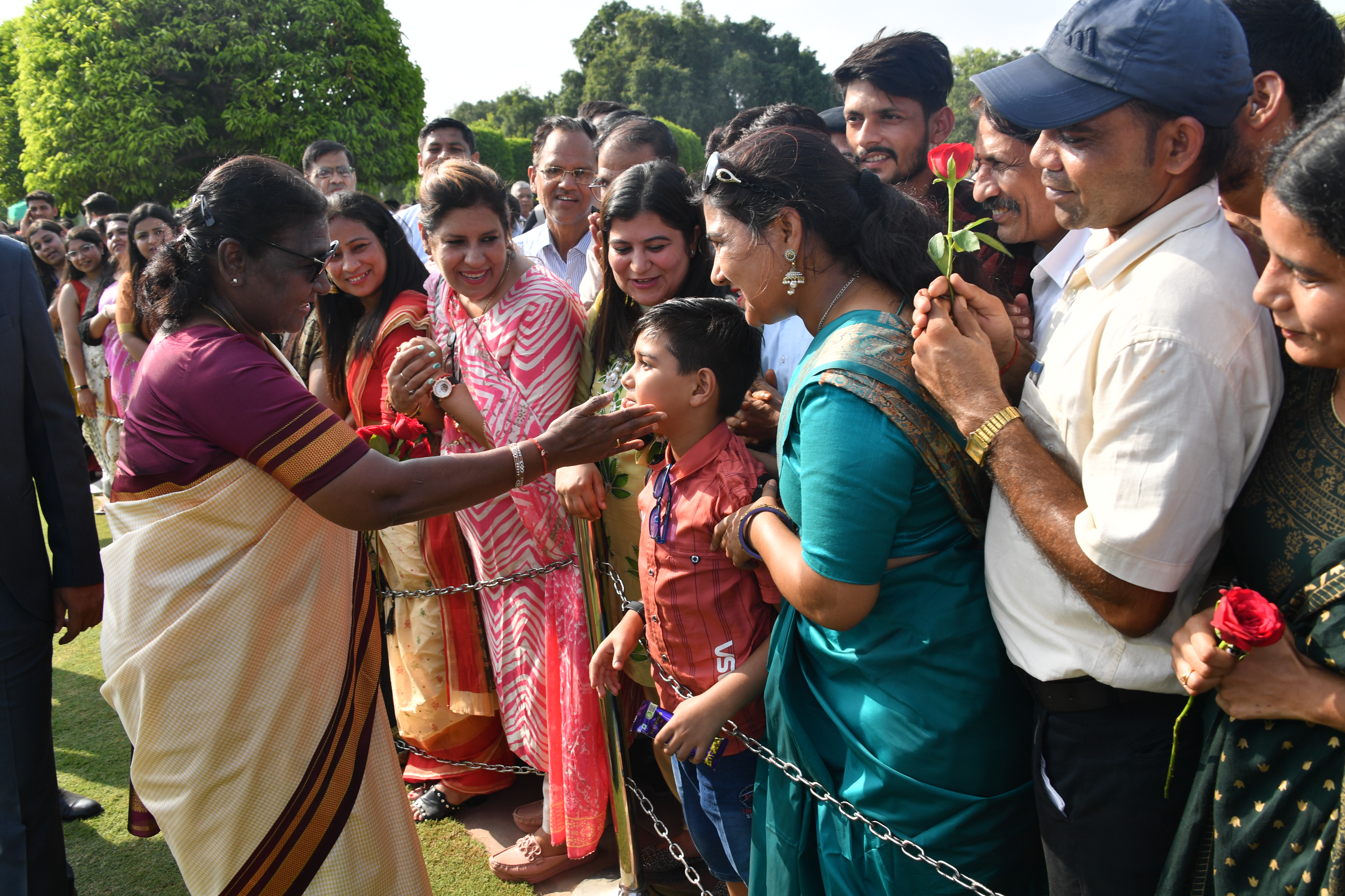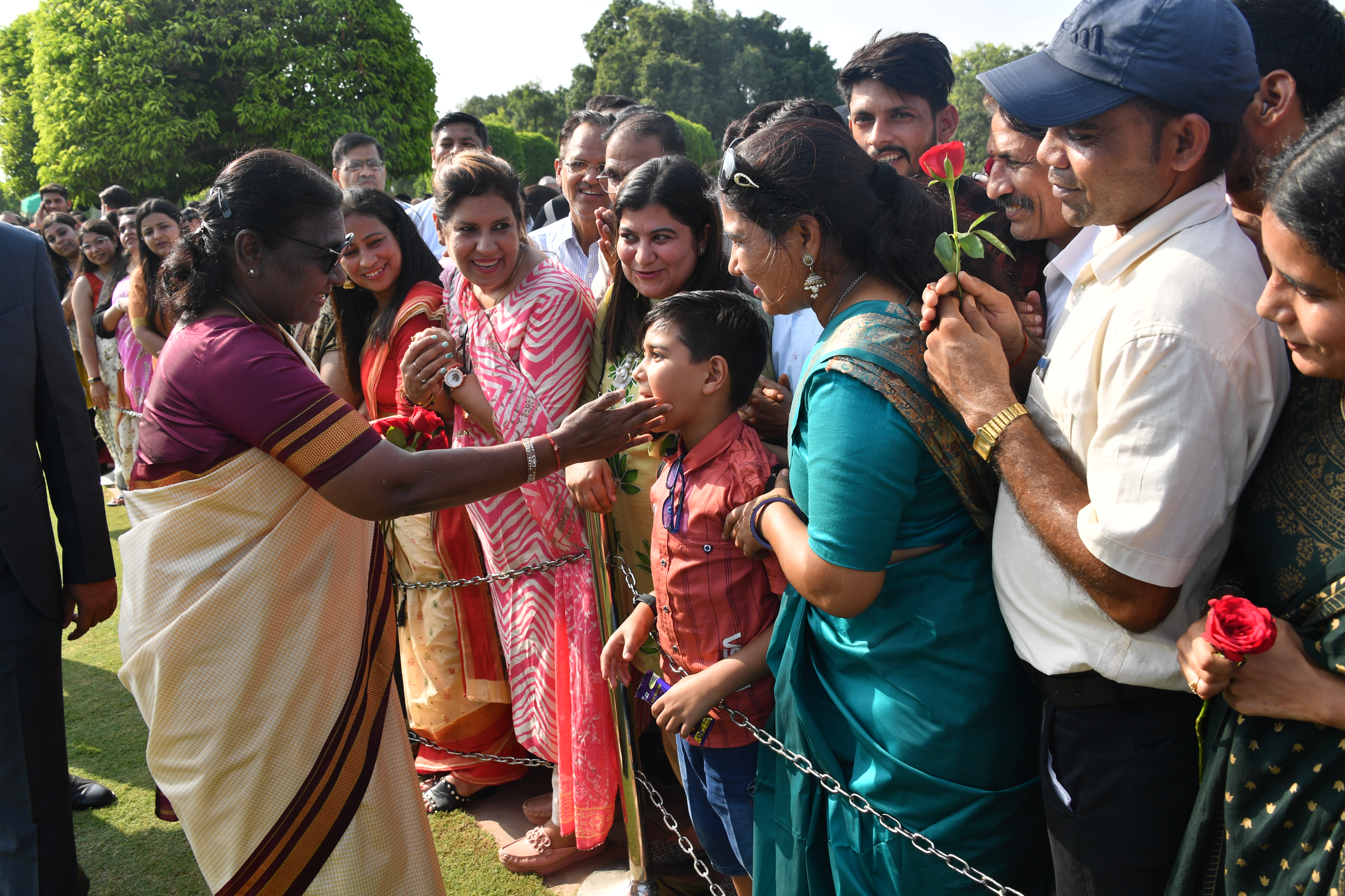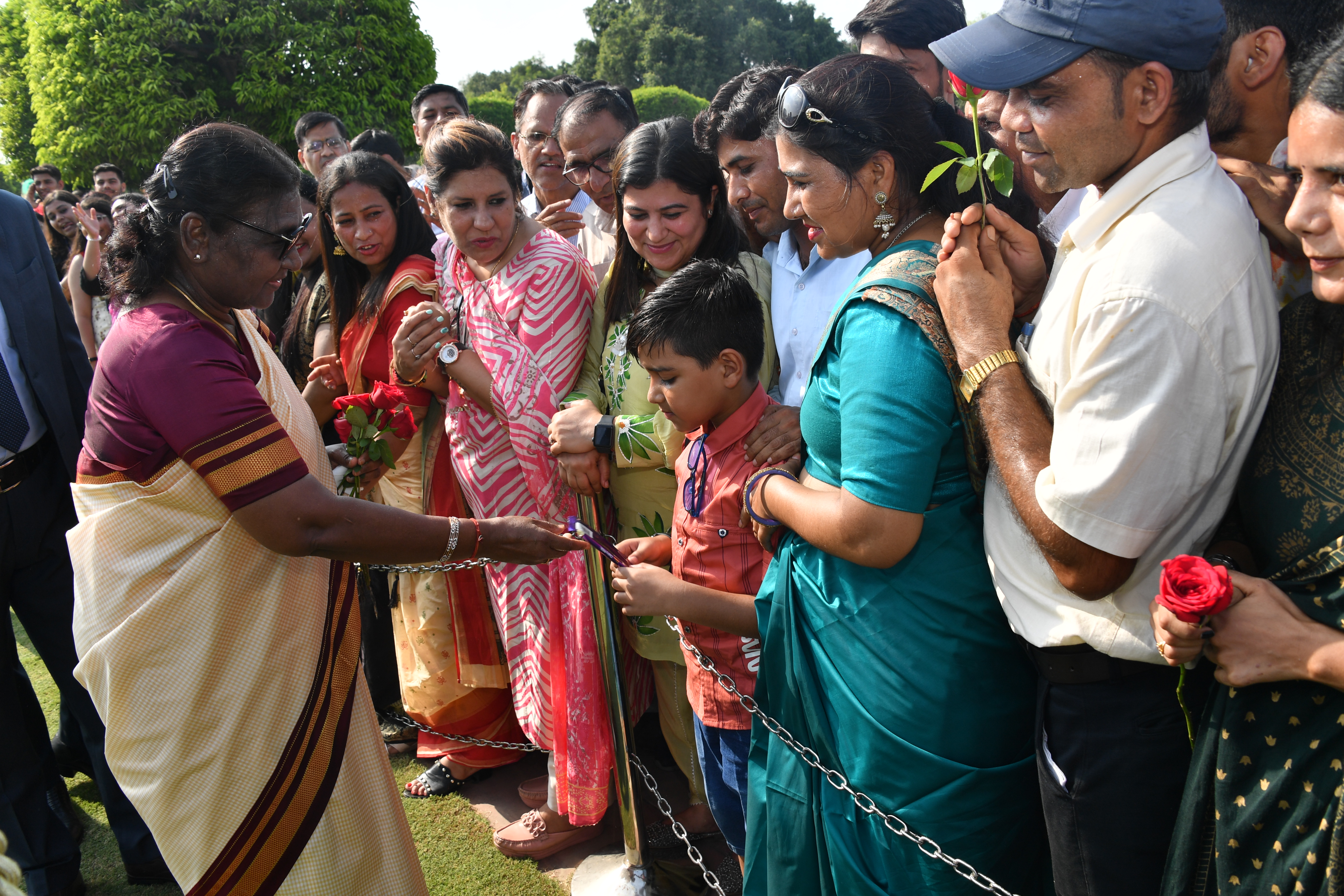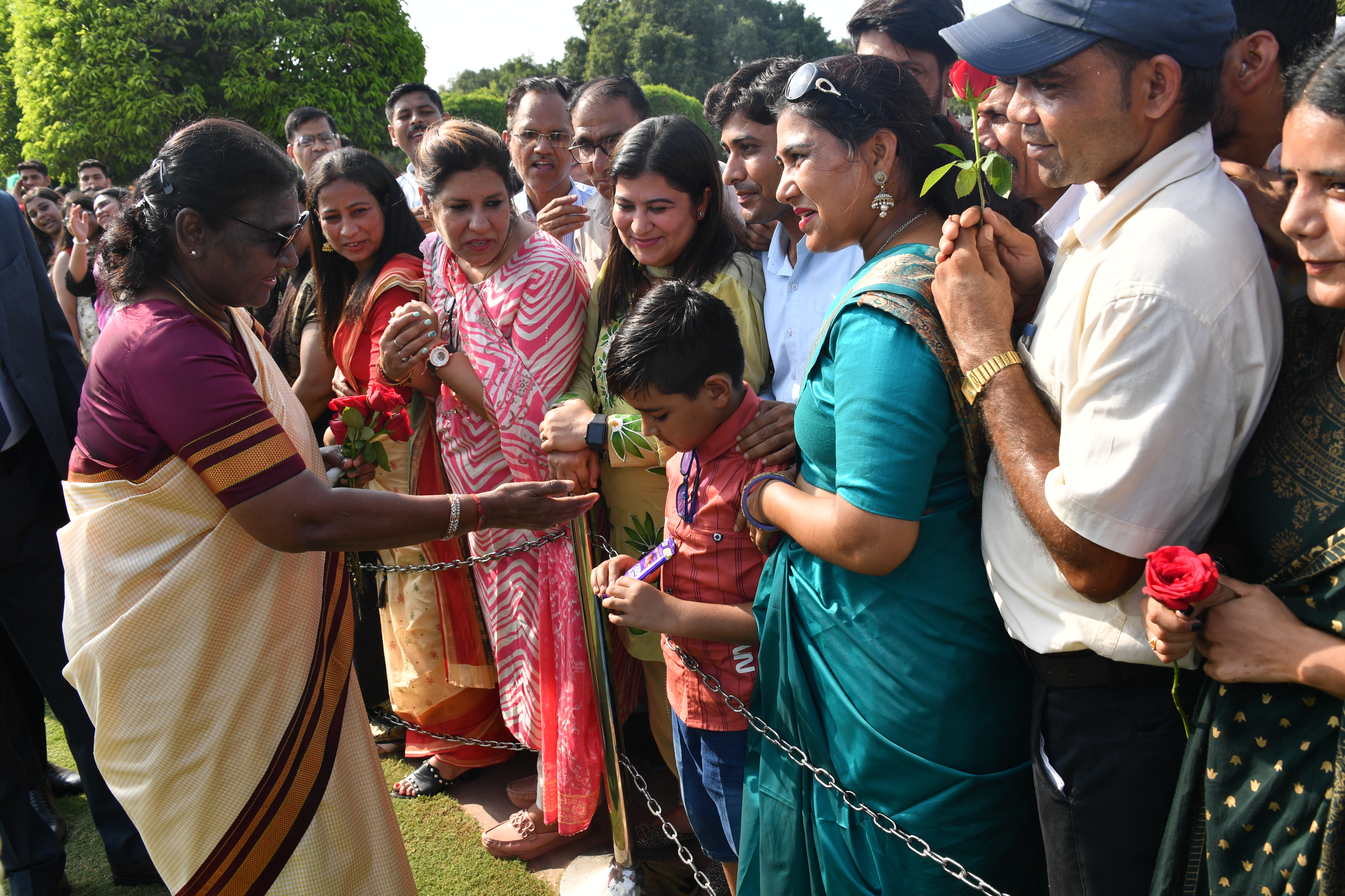 | Caption: | The President of India, Smt. Droupadi Murmu Interaction with the teachers invited to visit the Amrit Udyan as special invitees at Rashtrapati Bhavan on September 5, 2023. |