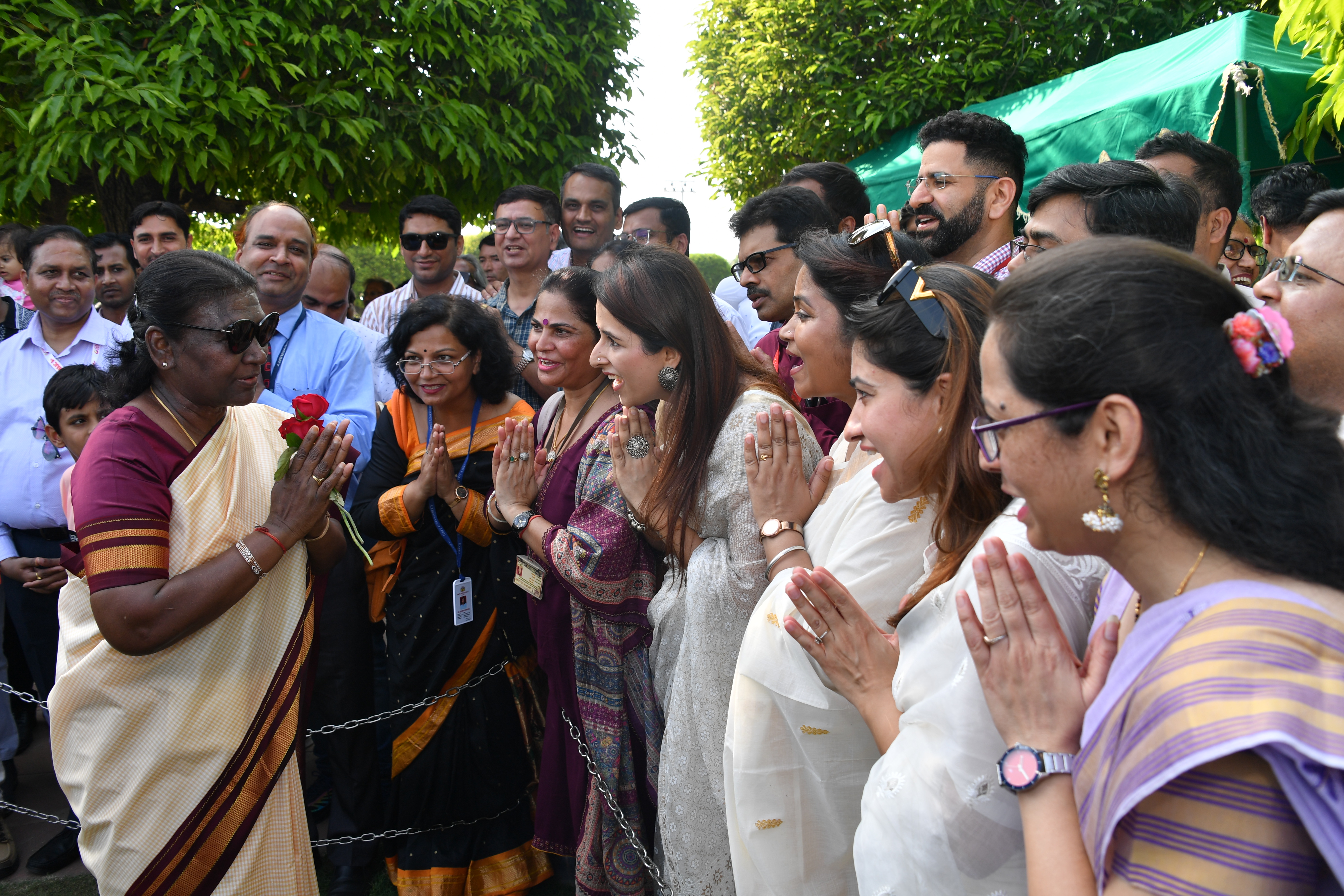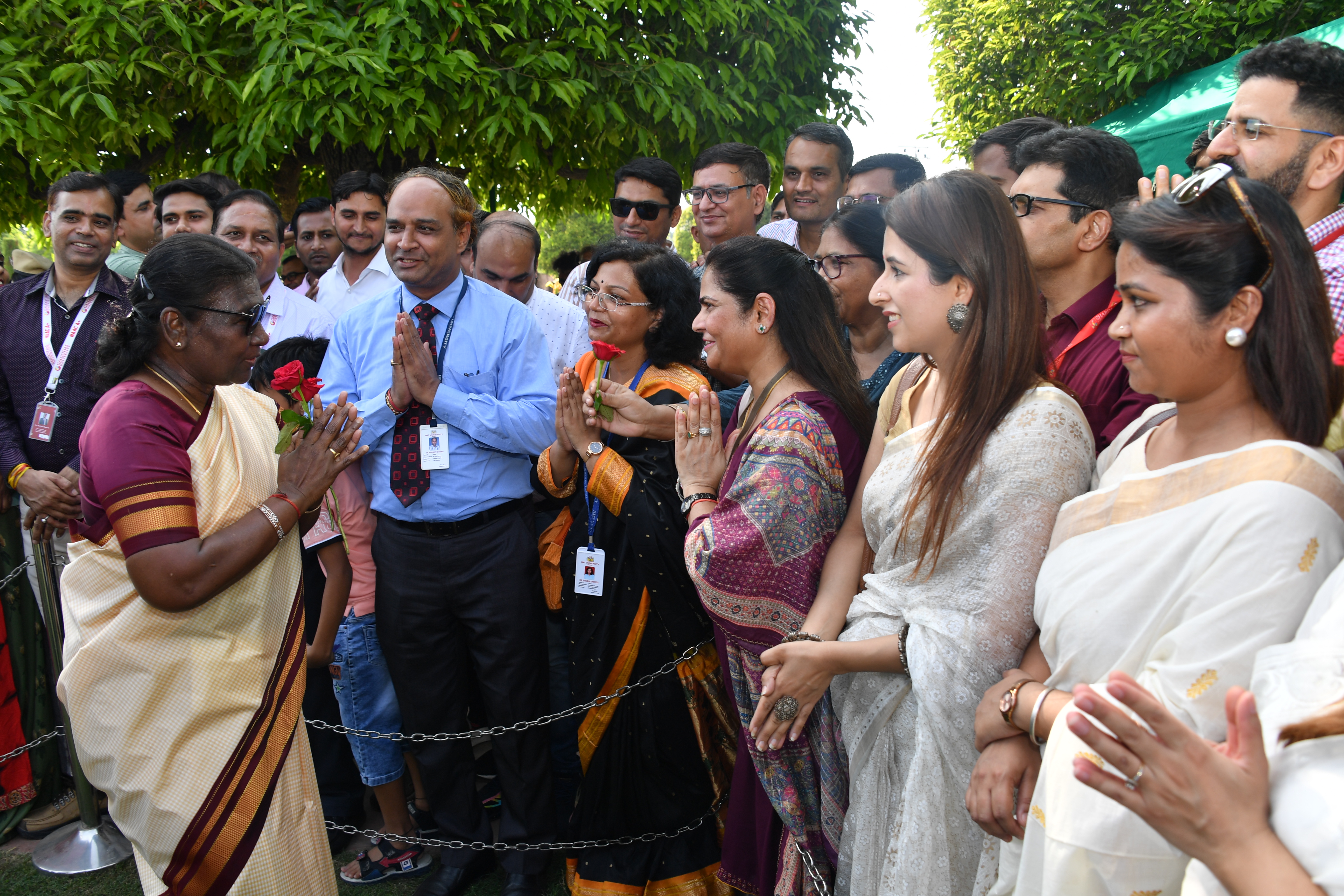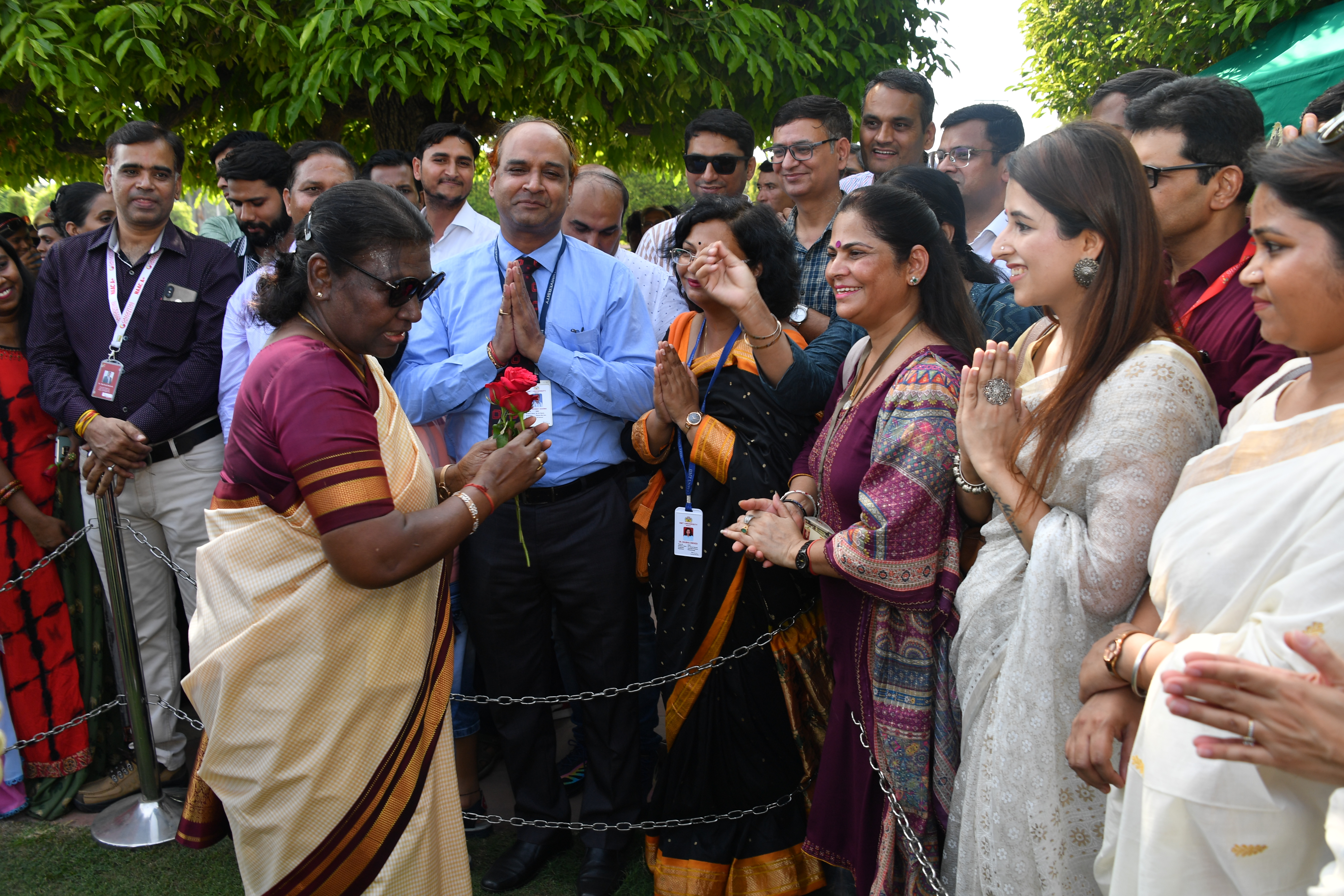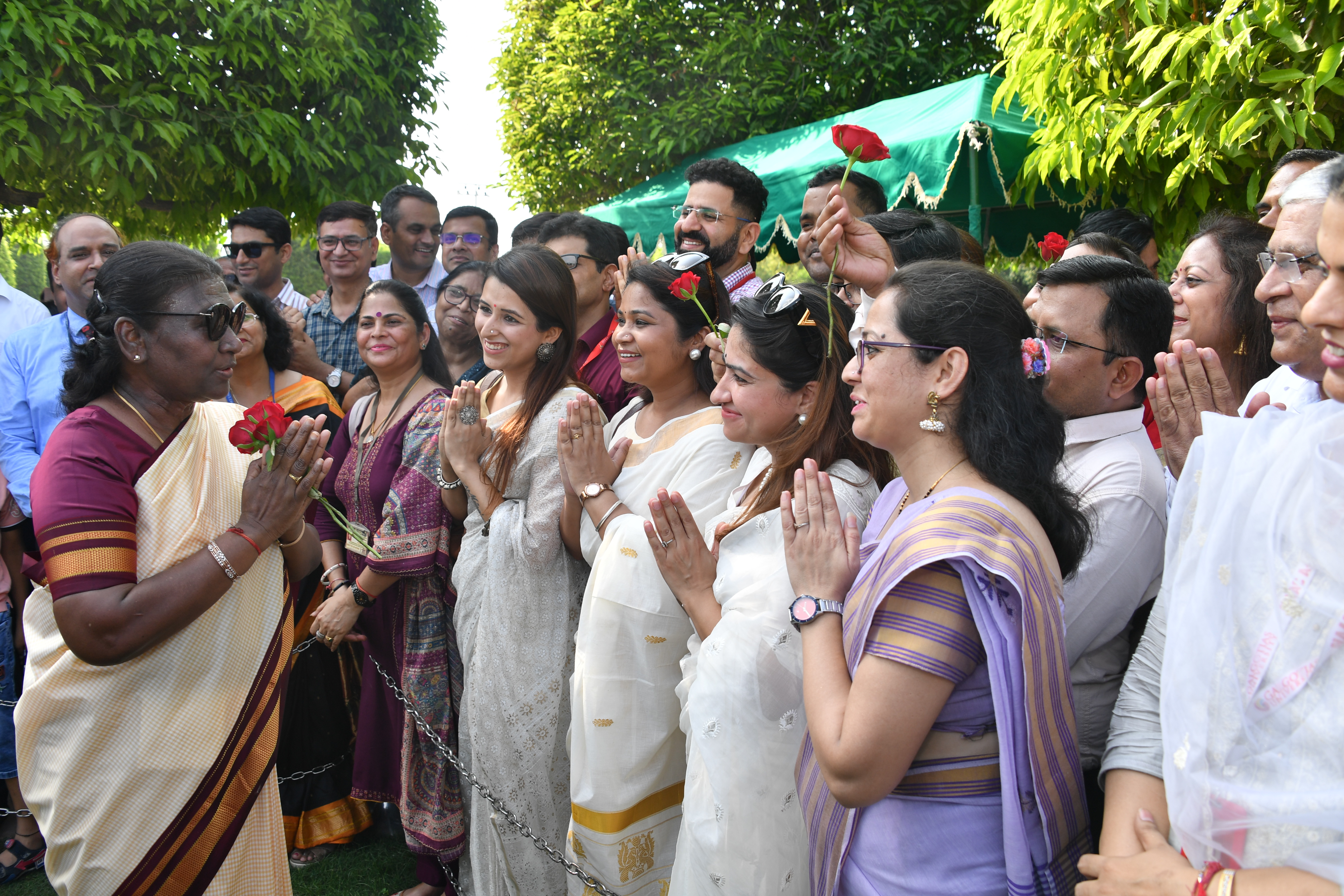 | Caption: | The President of India, Smt. Droupadi Murmu Interaction with the teachers invited to visit the Amrit Udyan as special invitees at Rashtrapati Bhavan on September 5, 2023. |