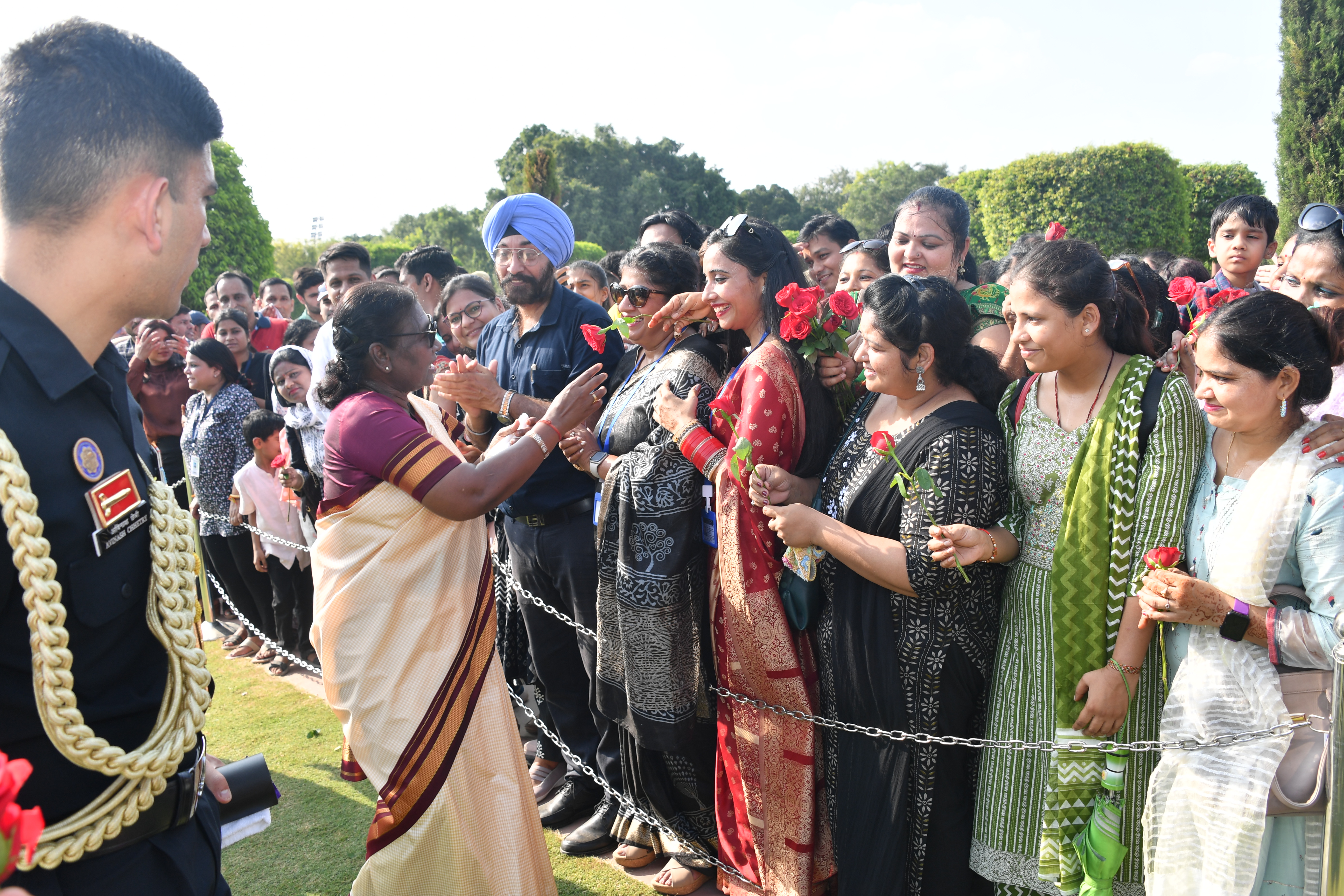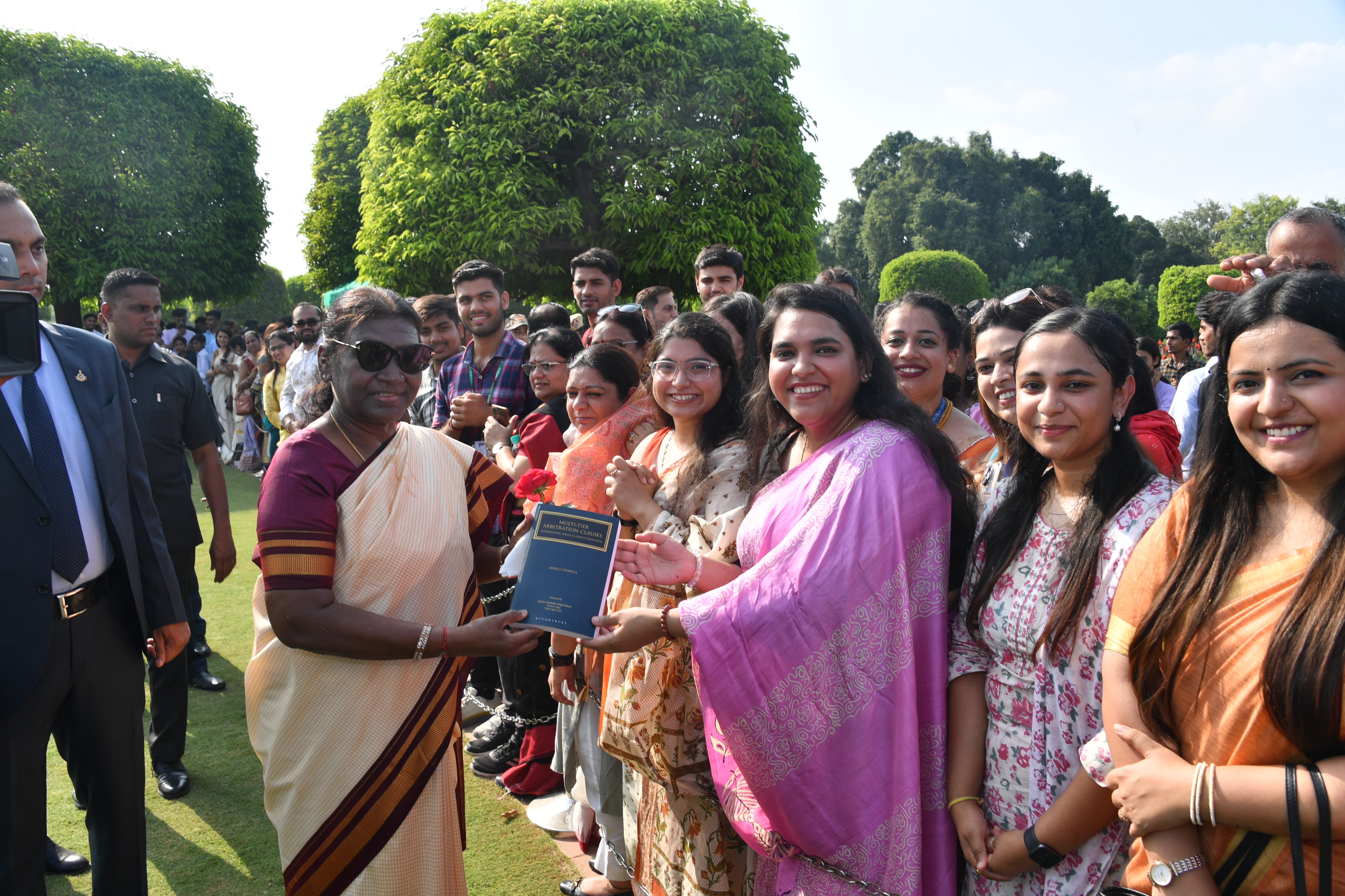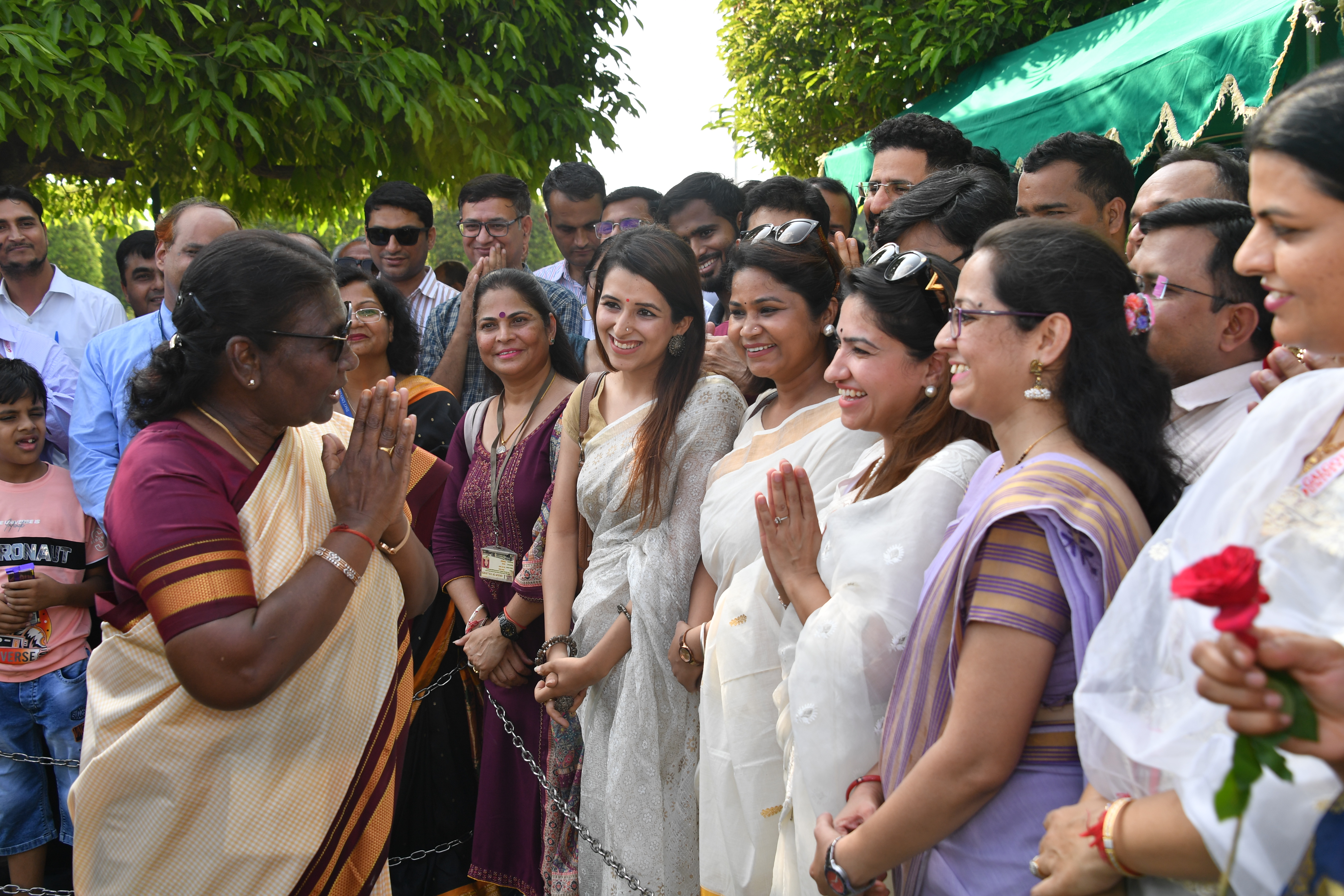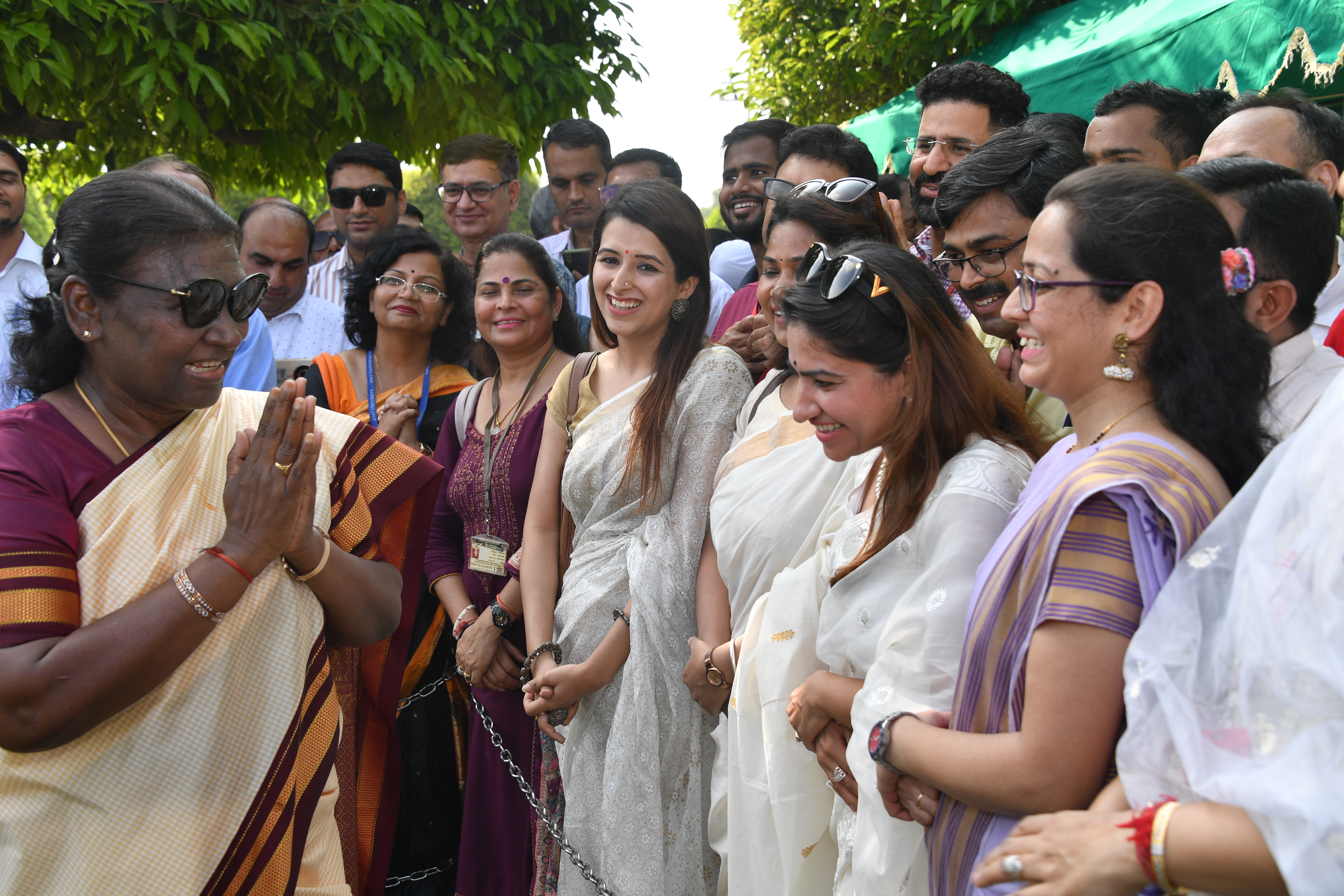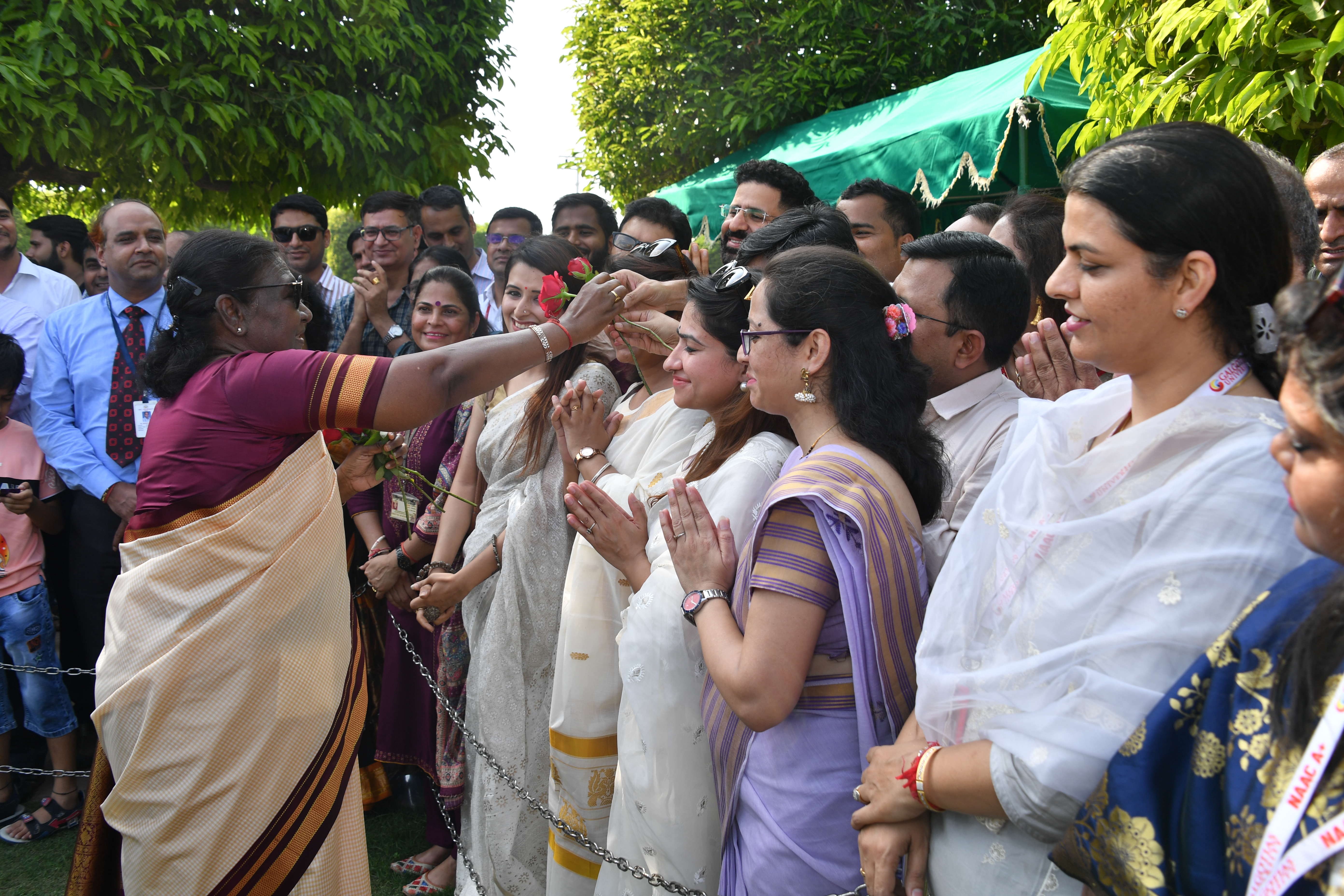 | Caption: | The President of India, Smt. Droupadi Murmu Interaction with the teachers invited to visit the Amrit Udyan as special invitees at Rashtrapati Bhavan on September 5, 2023. |