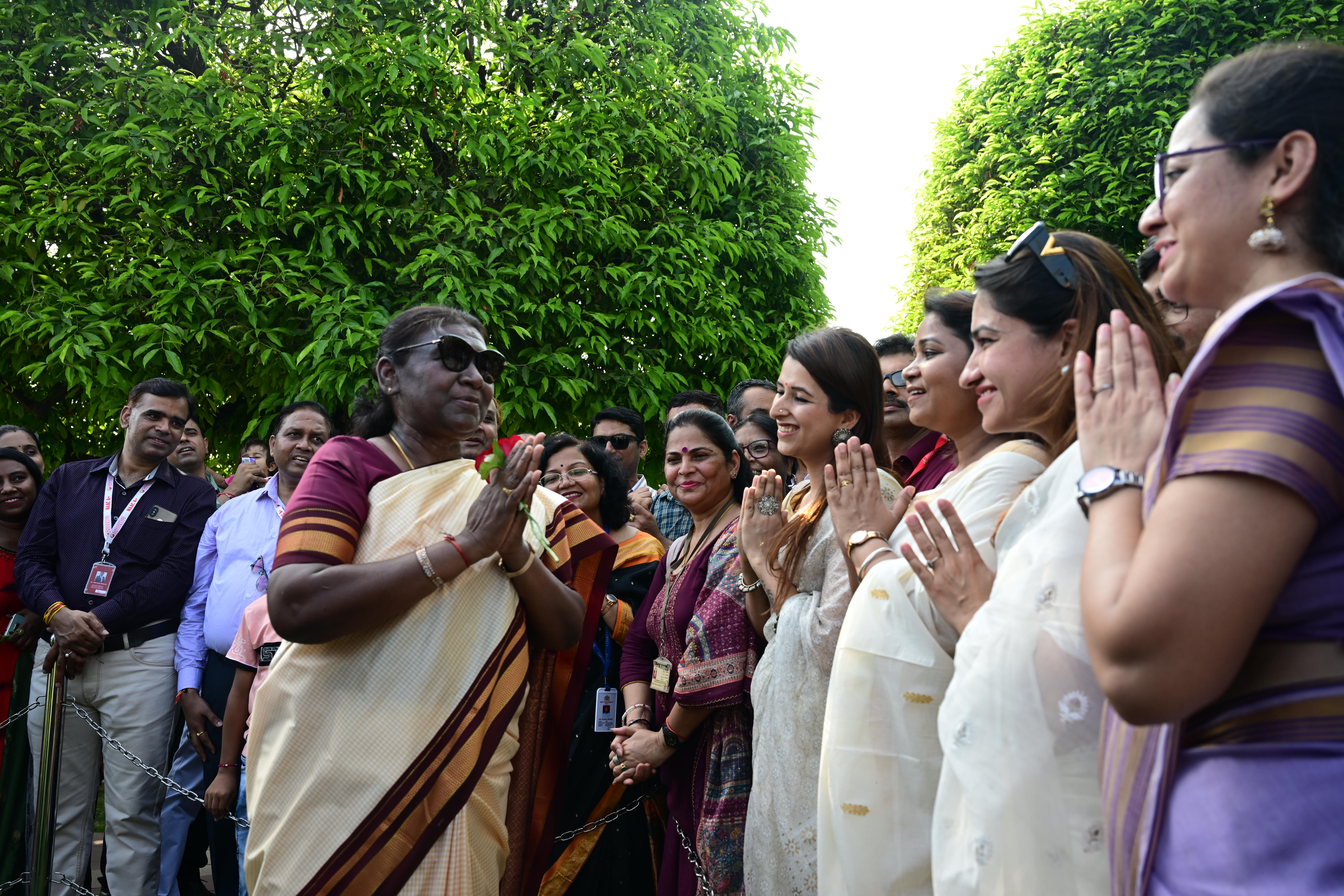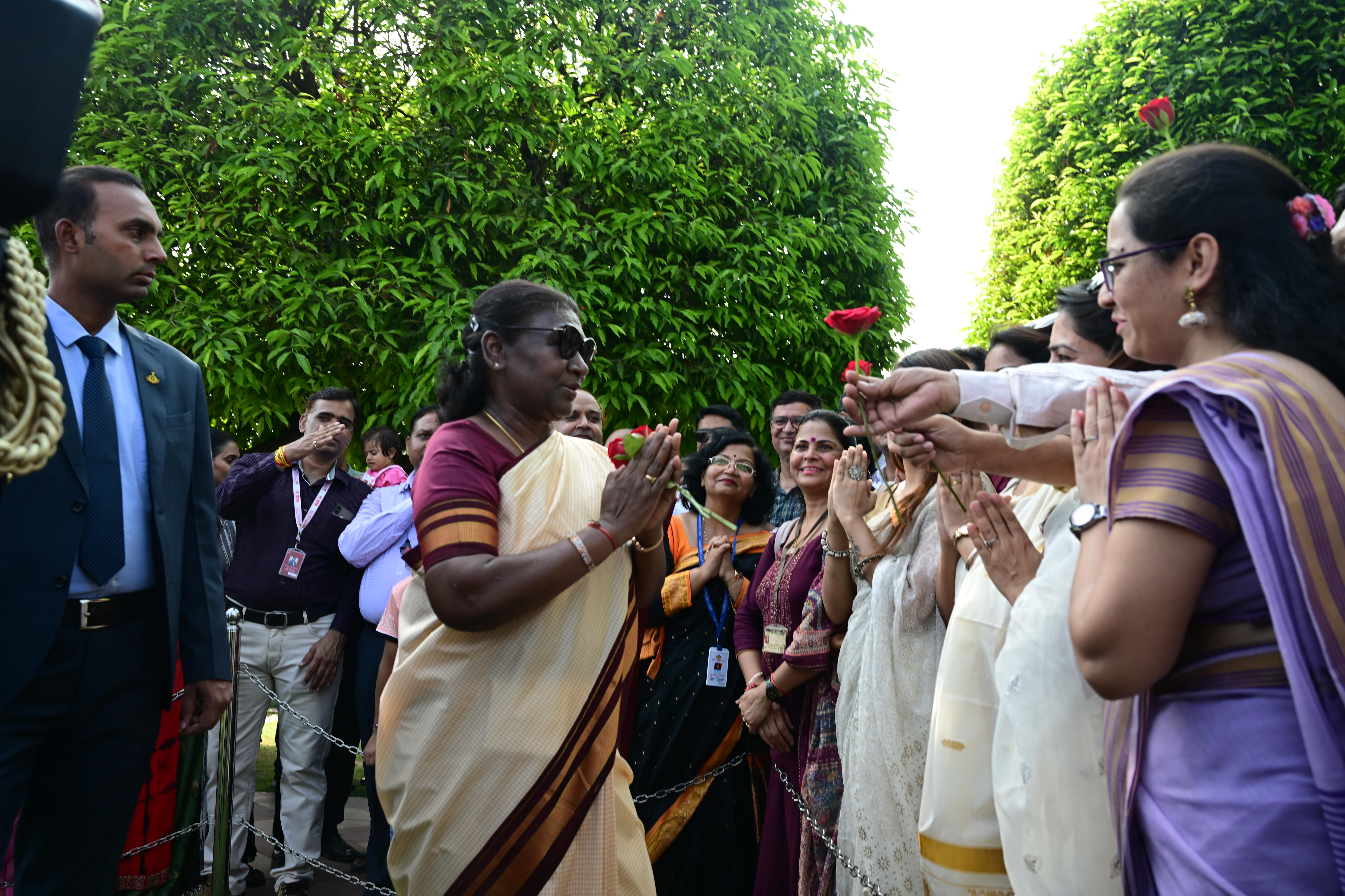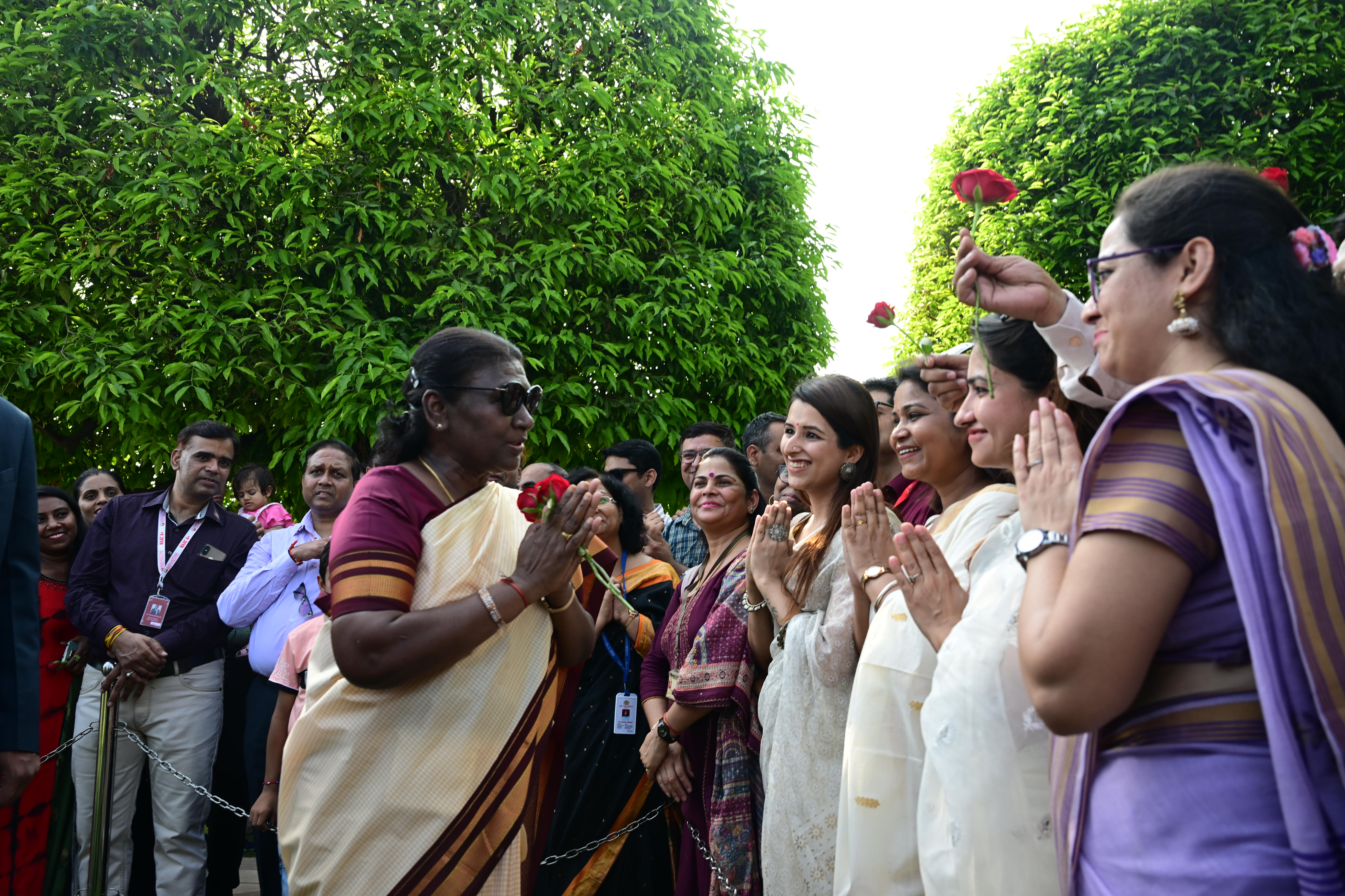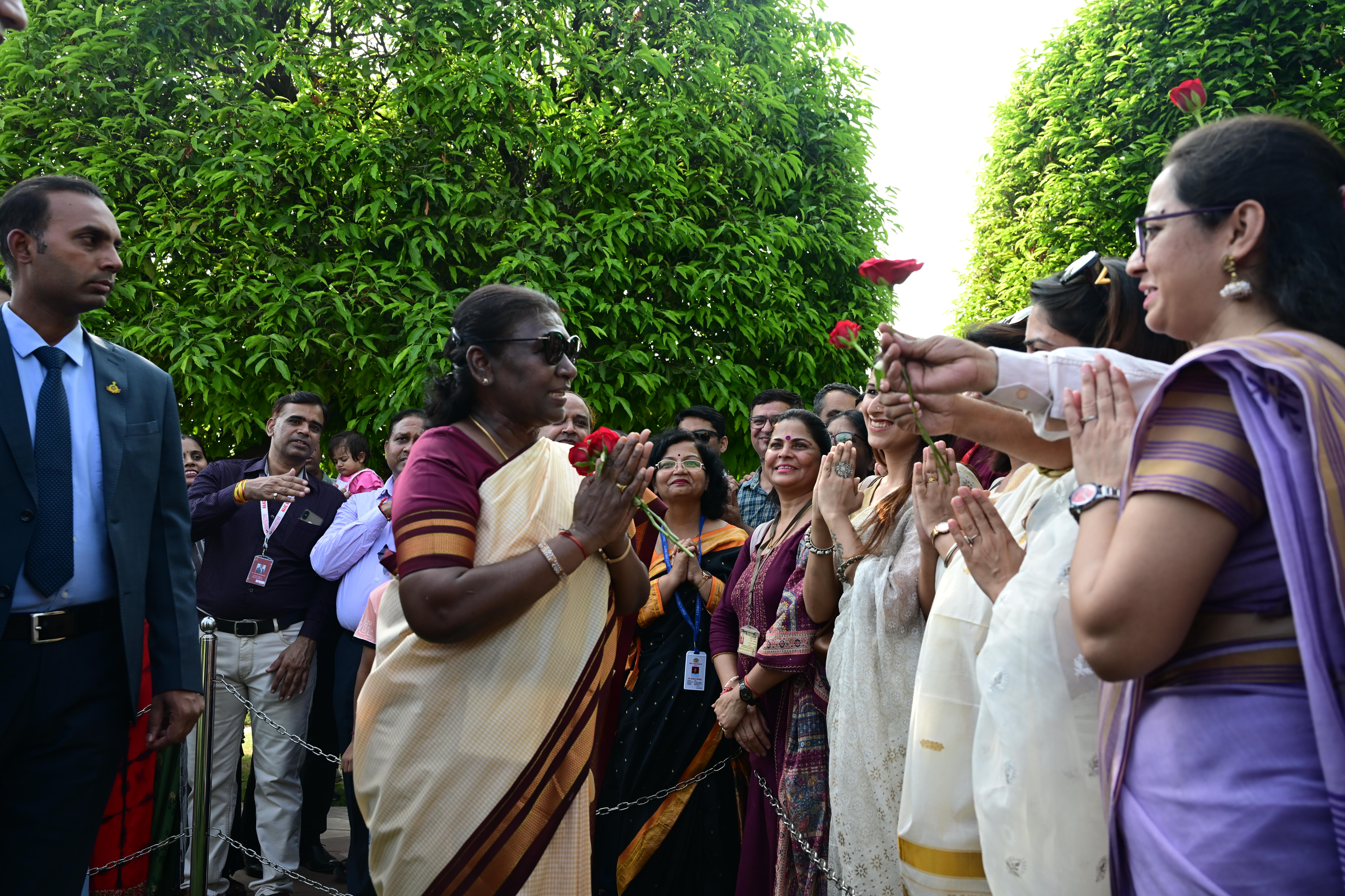 | Caption: | The President of India, Smt. Droupadi Murmu Interaction with the teachers invited to visit the Amrit Udyan as special invitees at Rashtrapati Bhavan on September 5, 2023. |