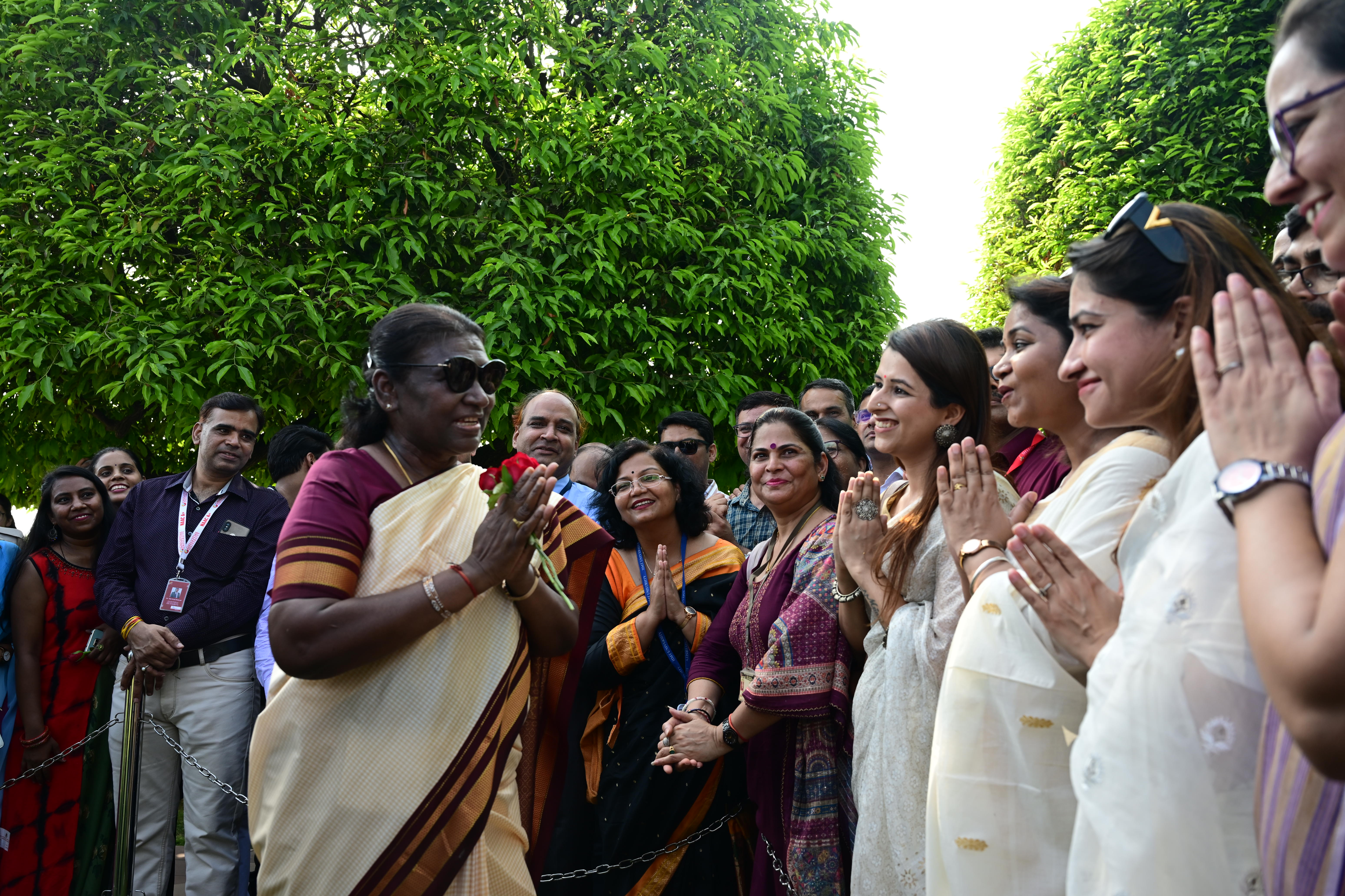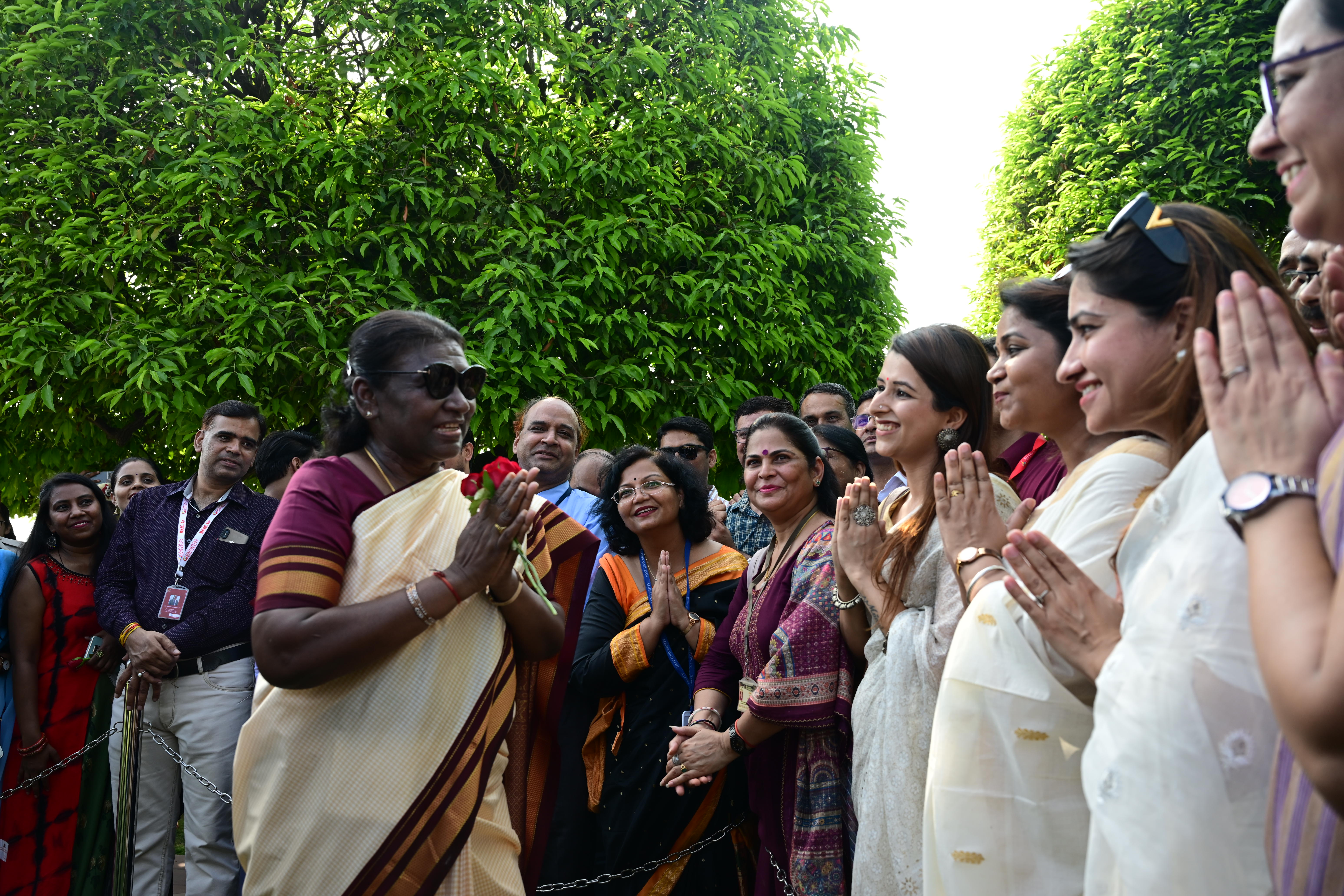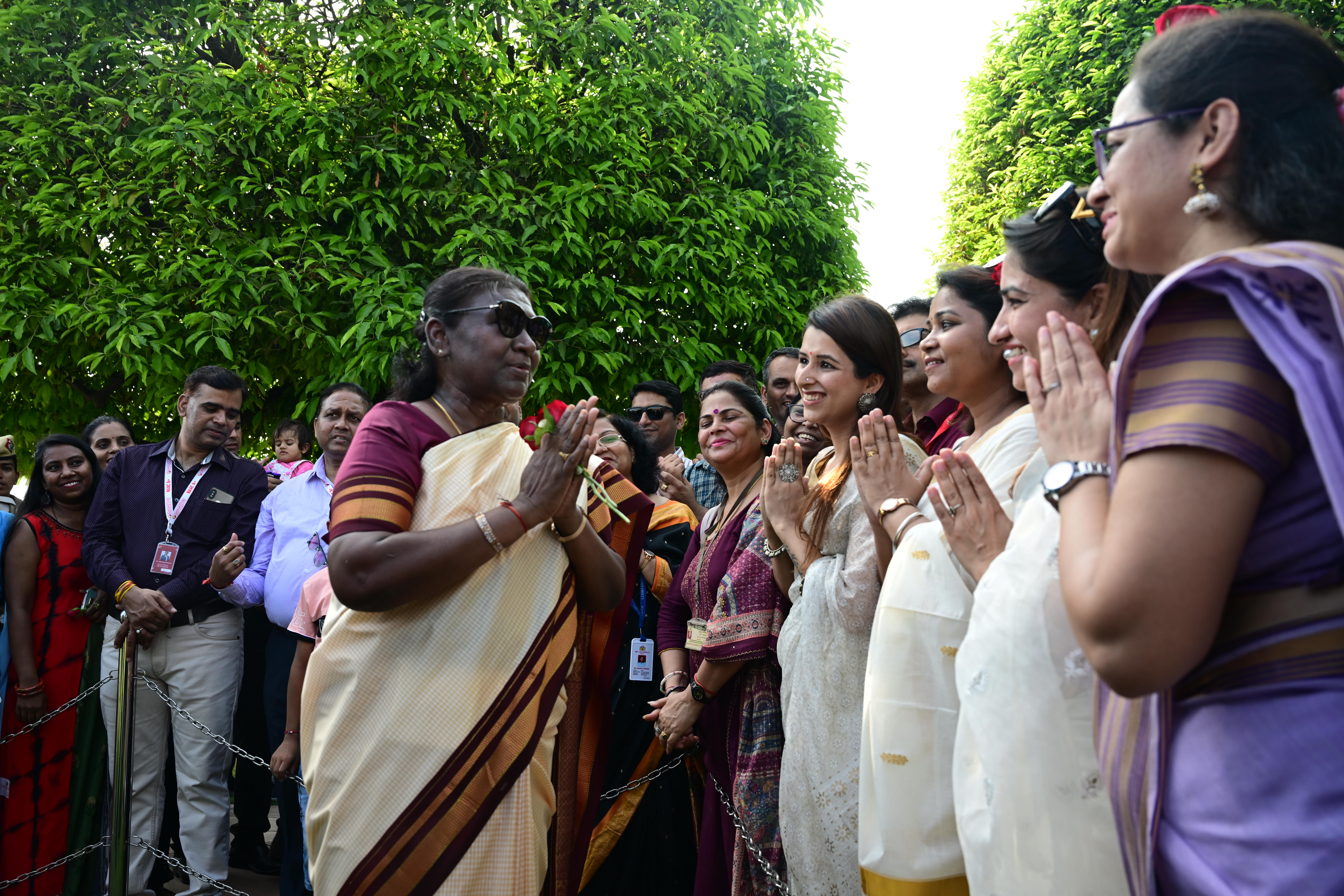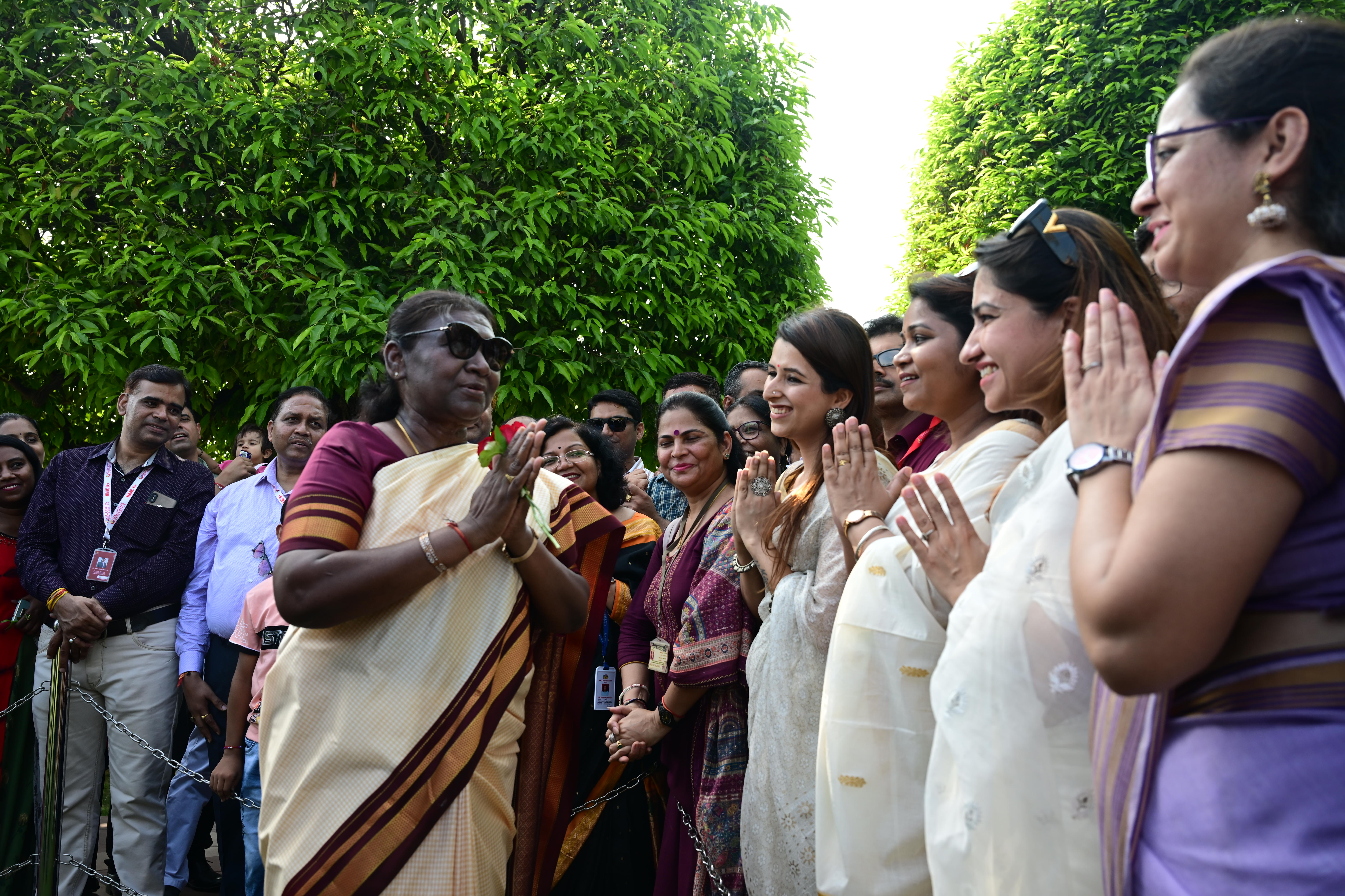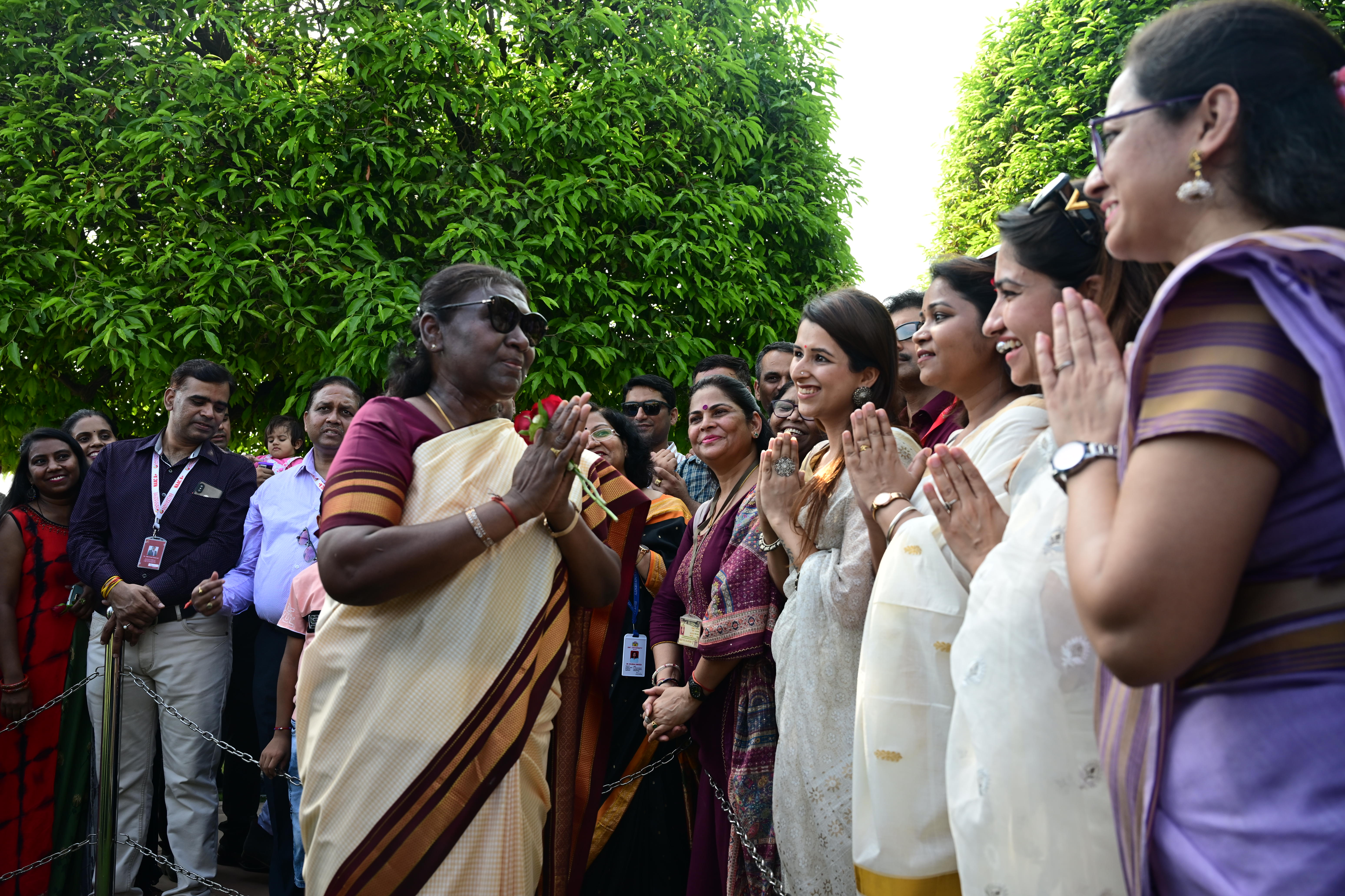 | Caption: | The President of India, Smt. Droupadi Murmu Interaction with the teachers invited to visit the Amrit Udyan as special invitees at Rashtrapati Bhavan on September 5, 2023. |